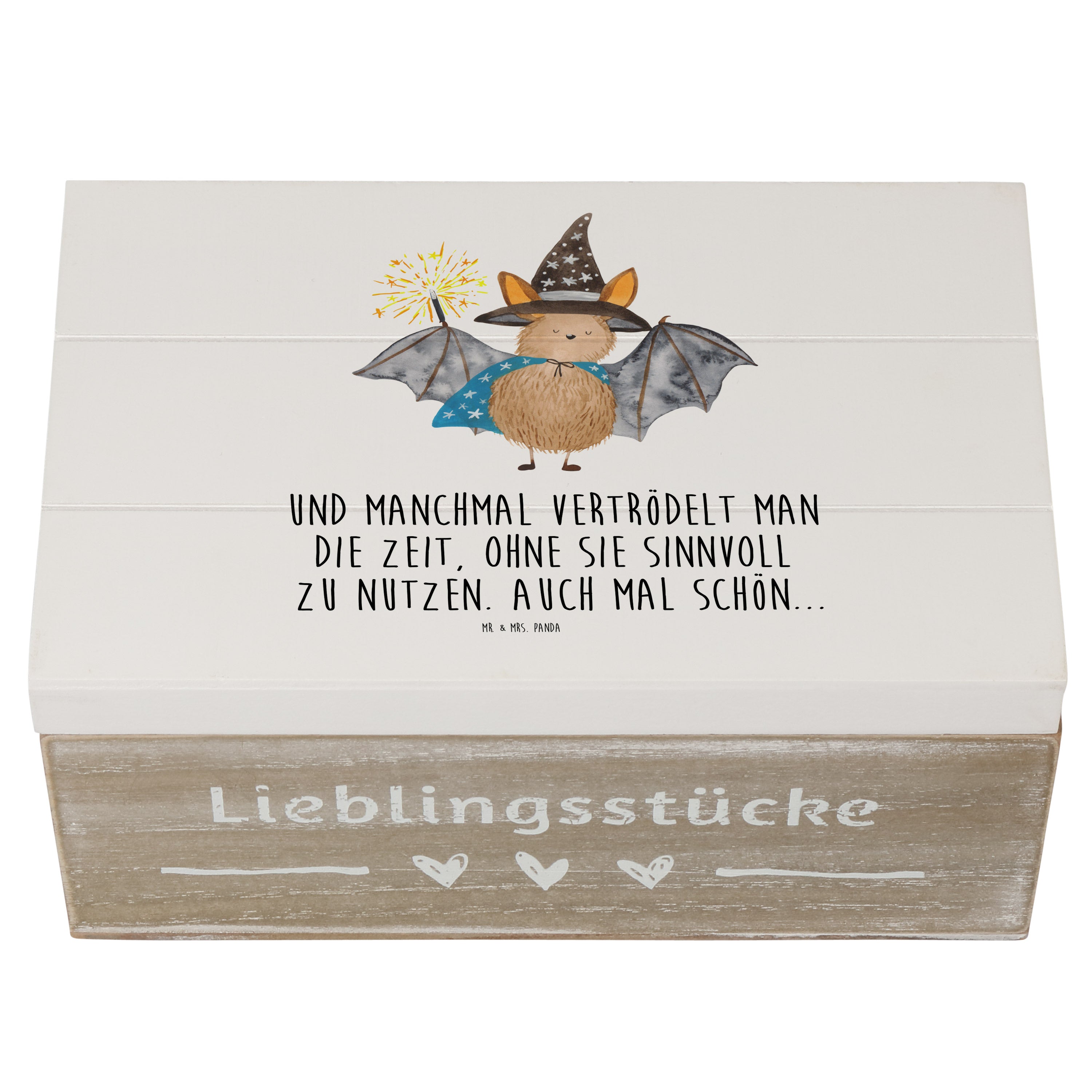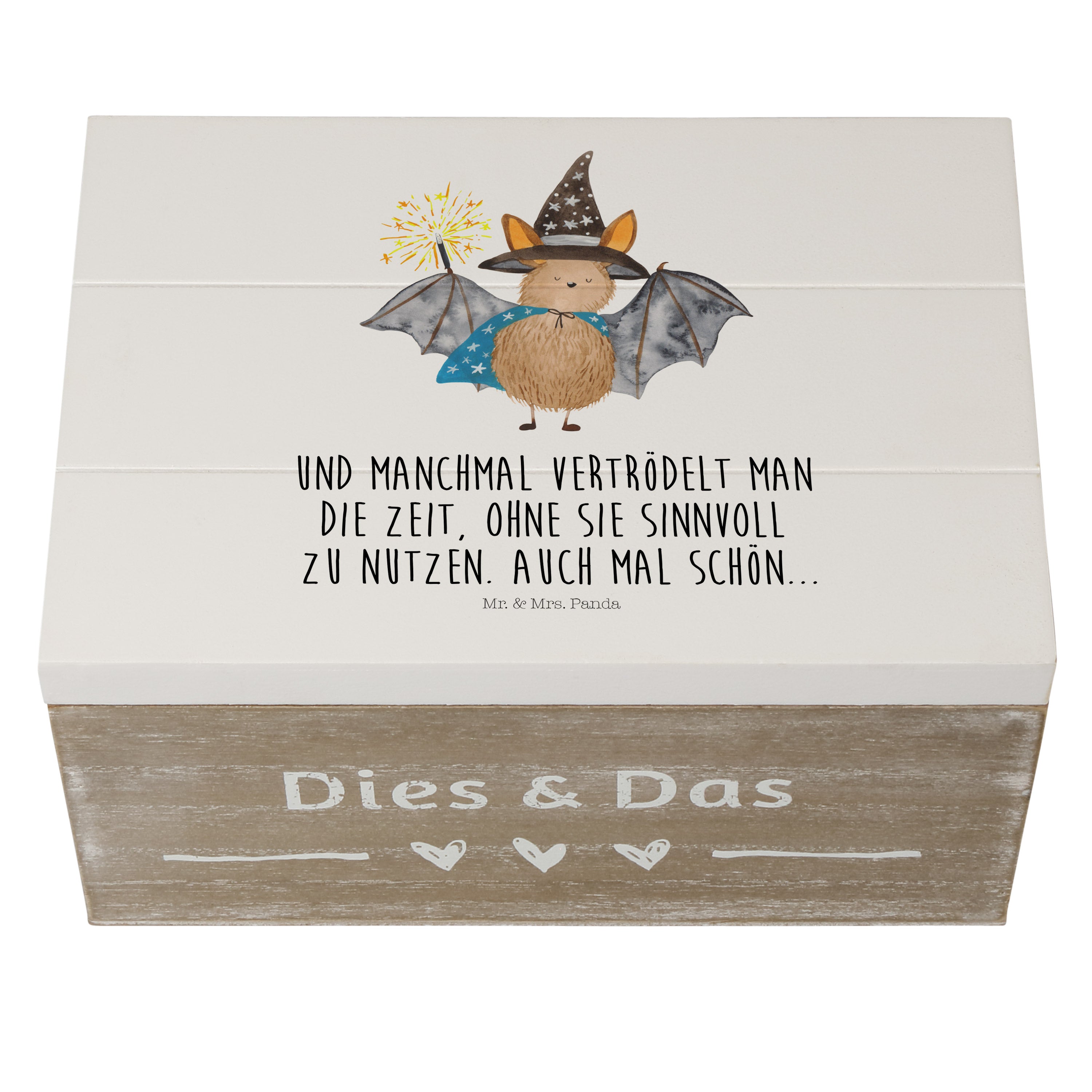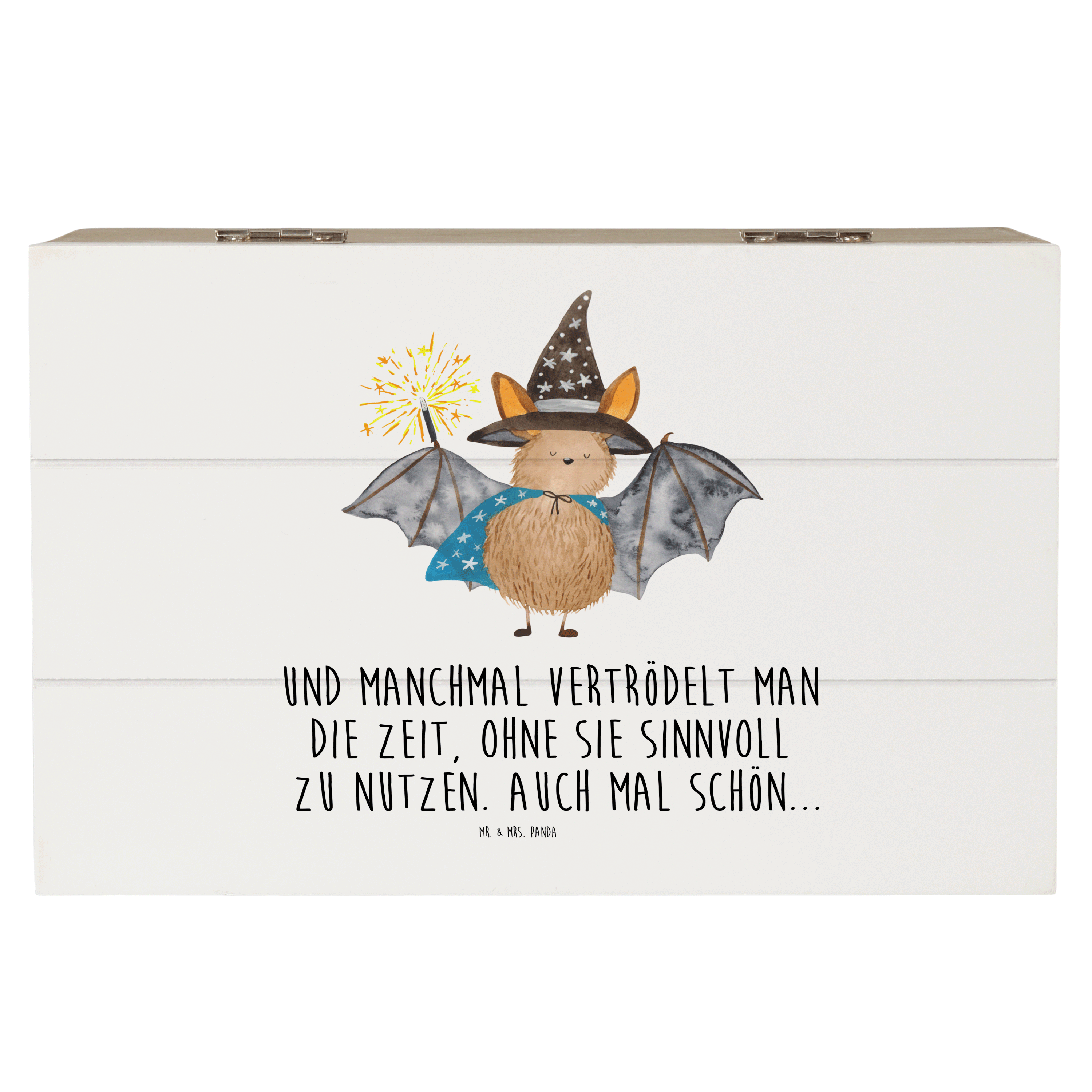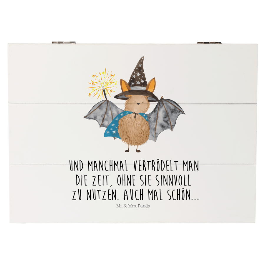 Holzkiste Fledermaus Zauberer - 25 x 18 cm - mit Spruch - Weiß