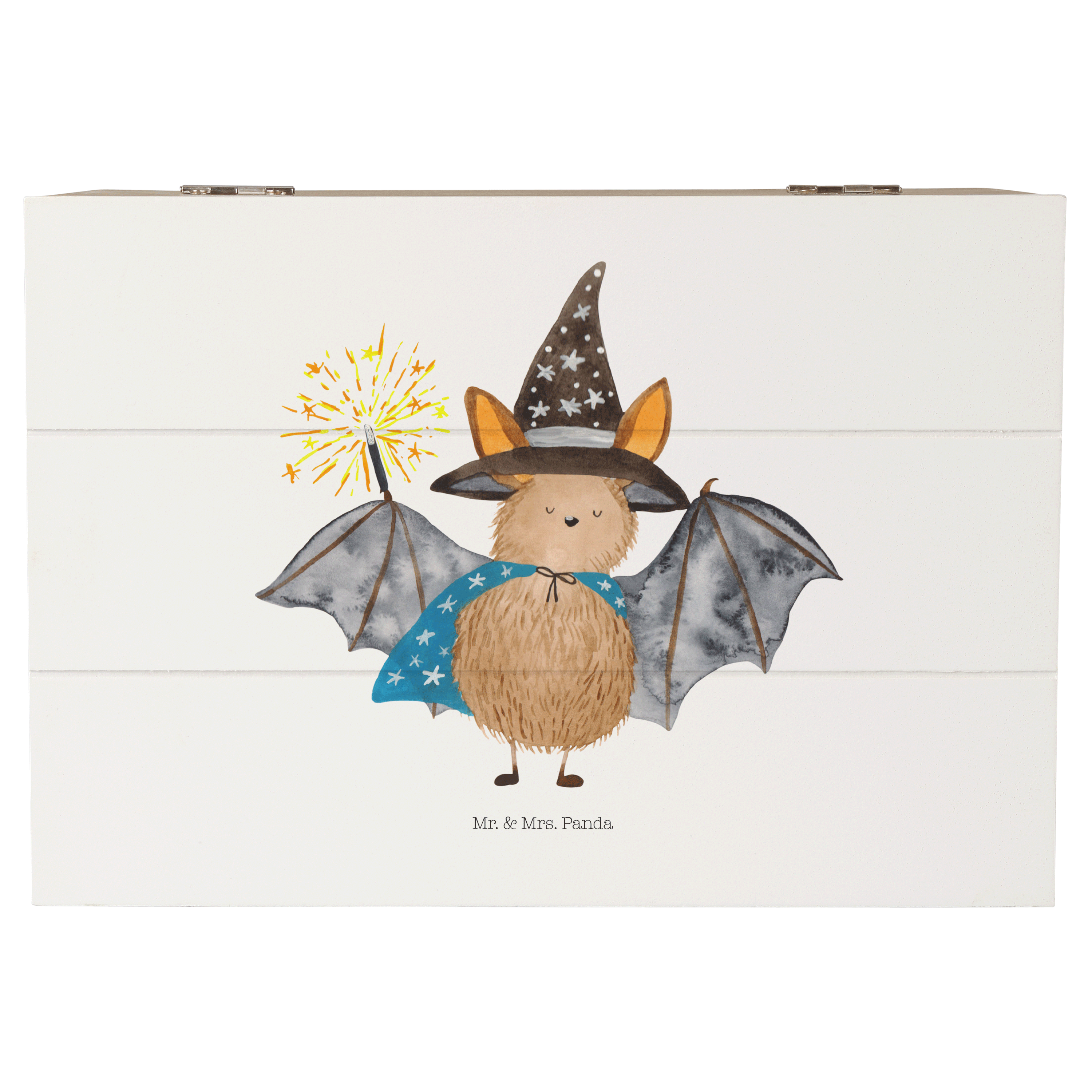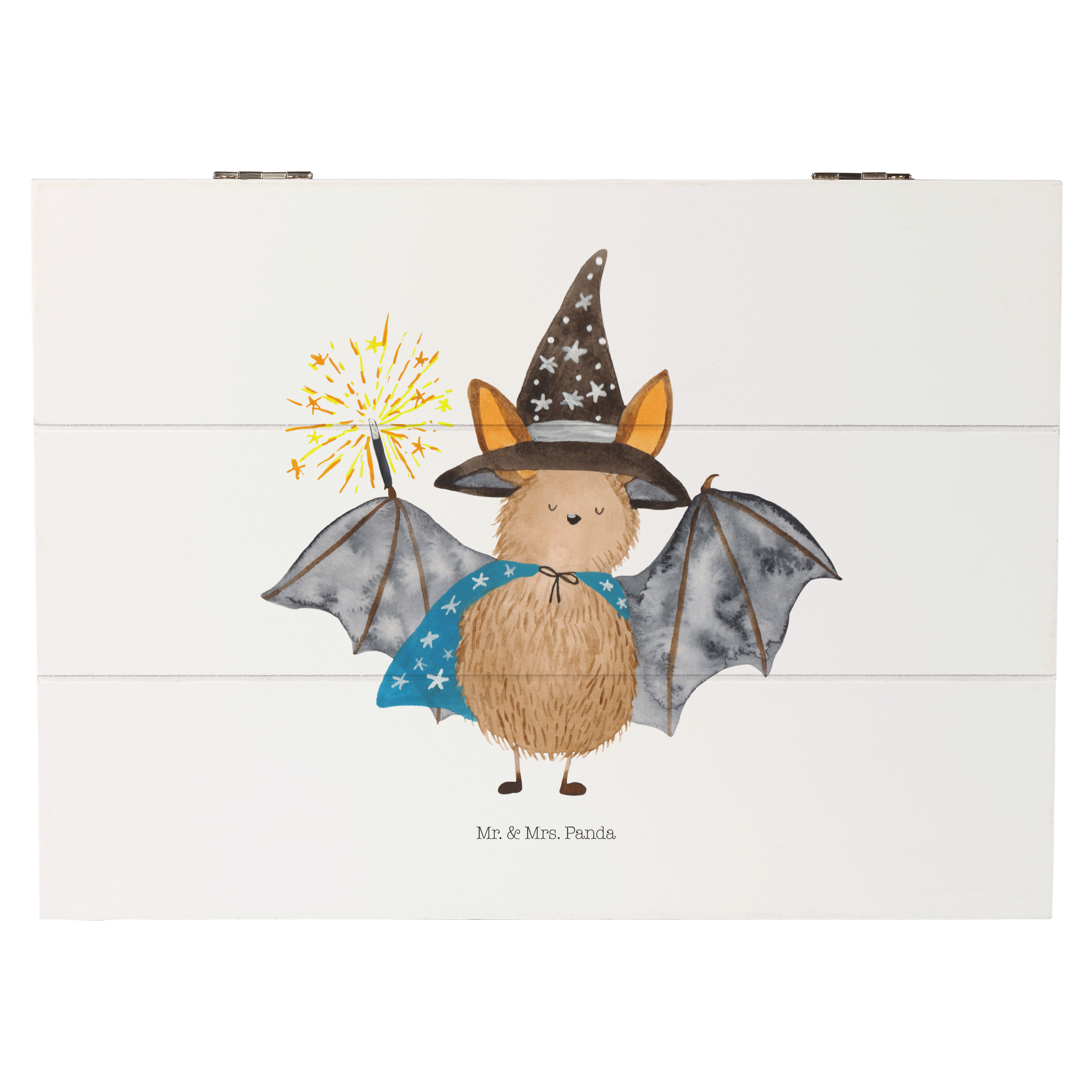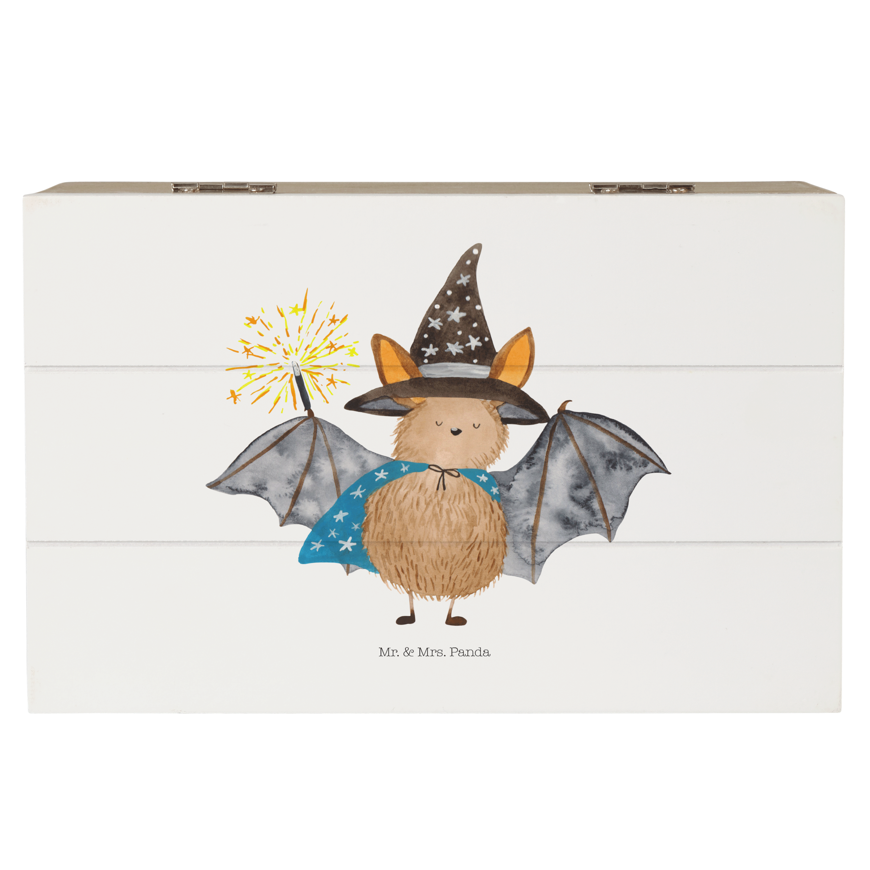 Holzkiste Fledermaus Zauberer - 25 x 18 cm - mit Spruch - Weiß