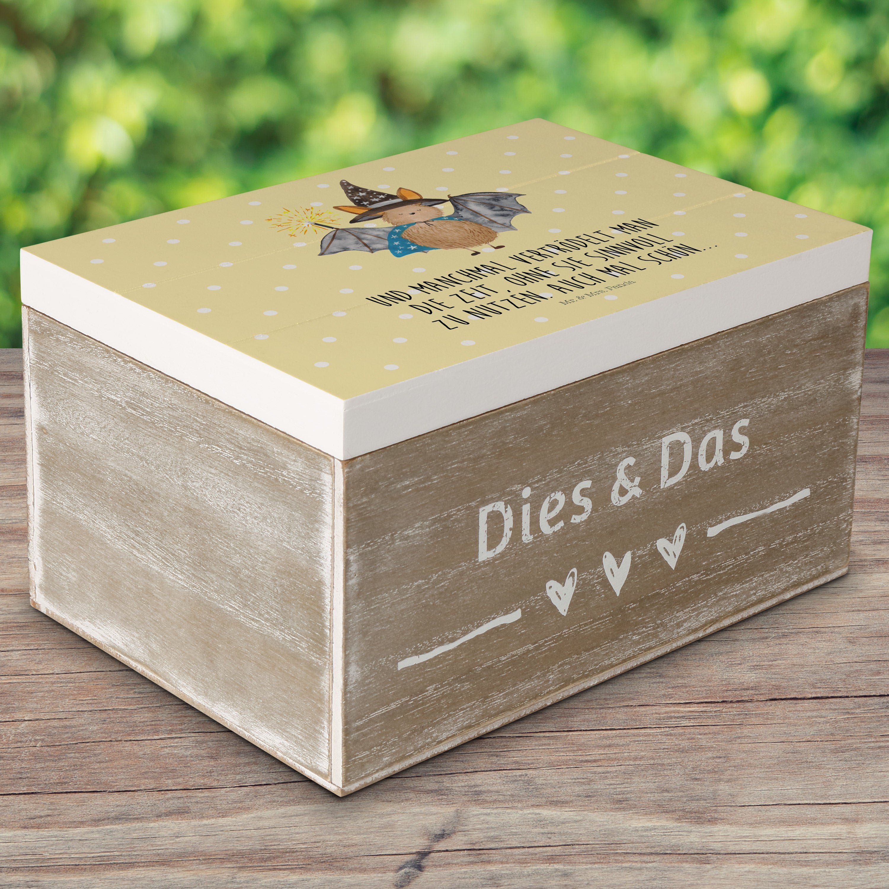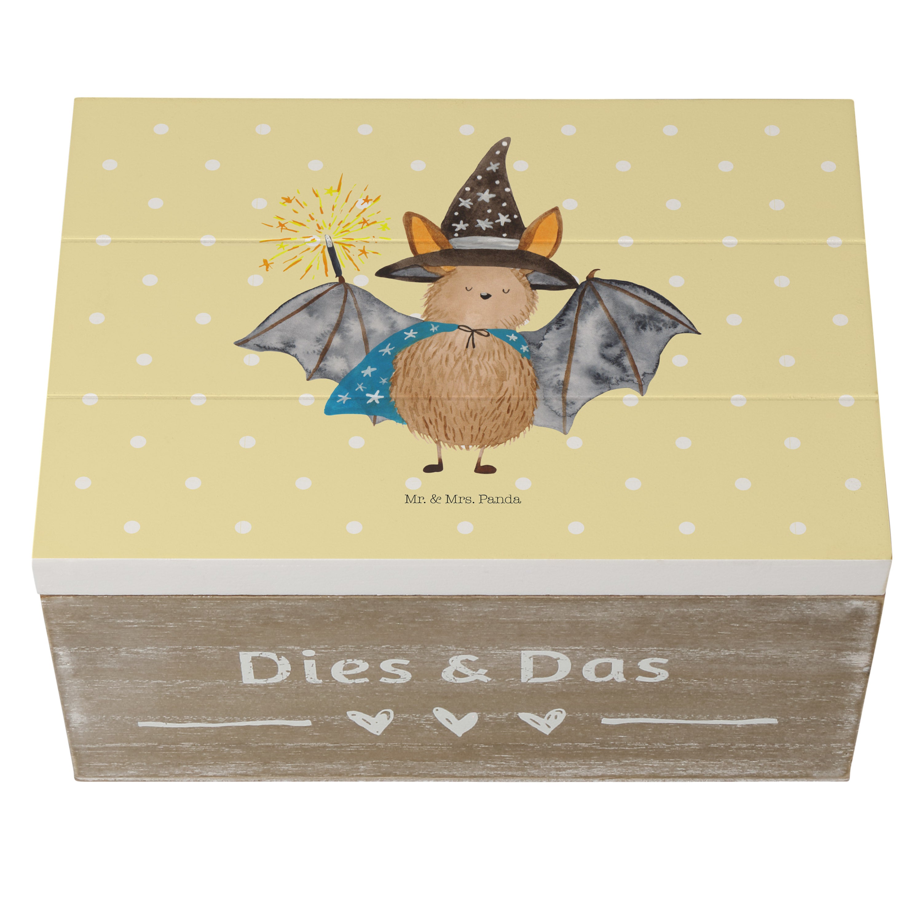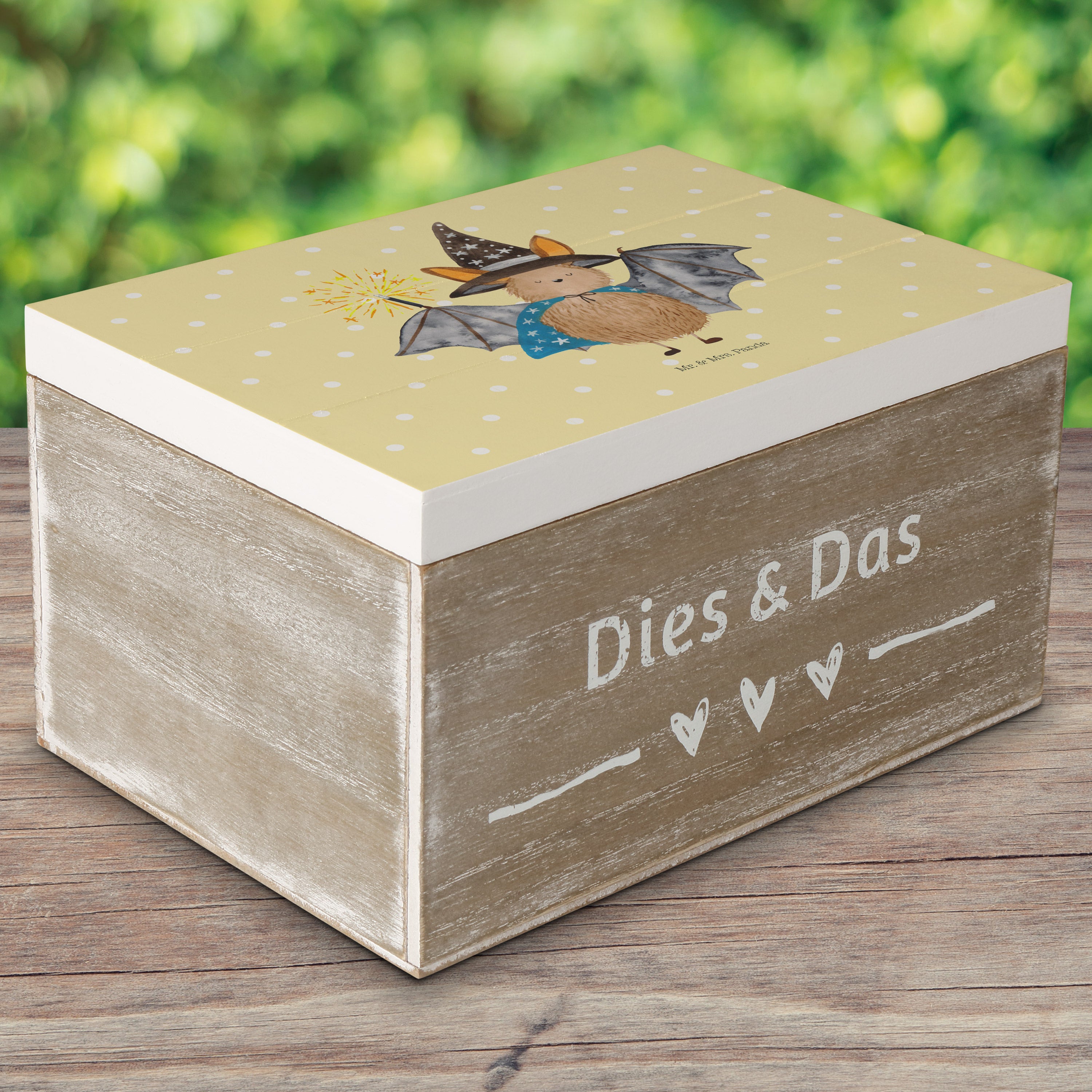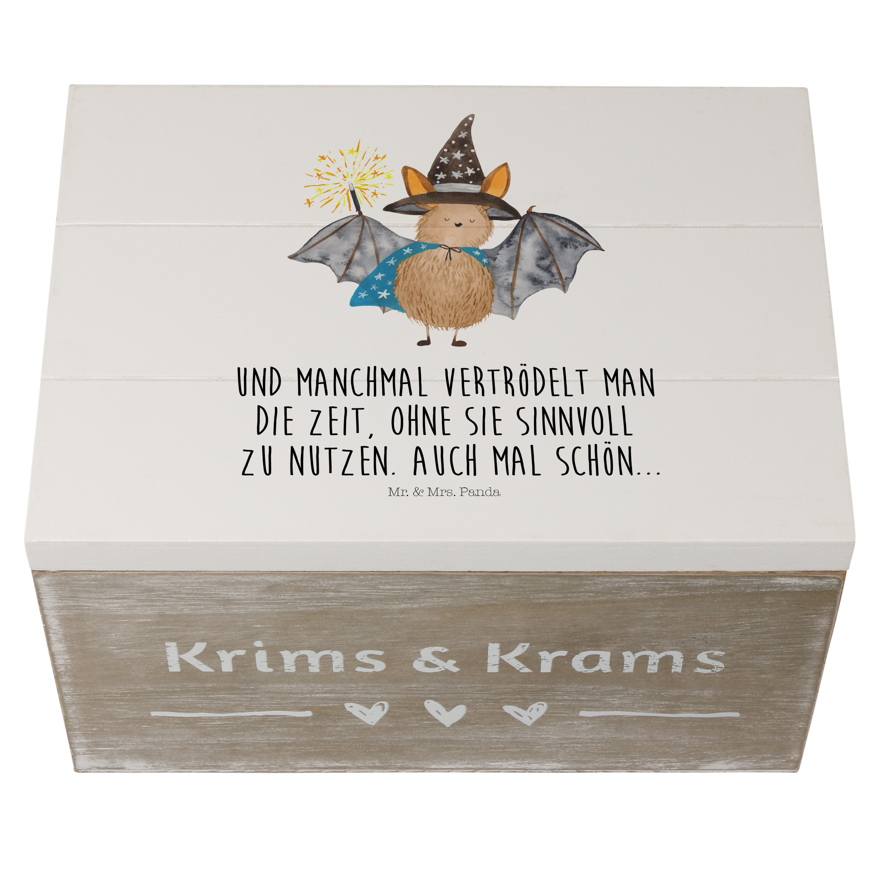 Holzkiste Fledermaus Zauberer - 25 x 18 cm - mit Spruch - Weiß