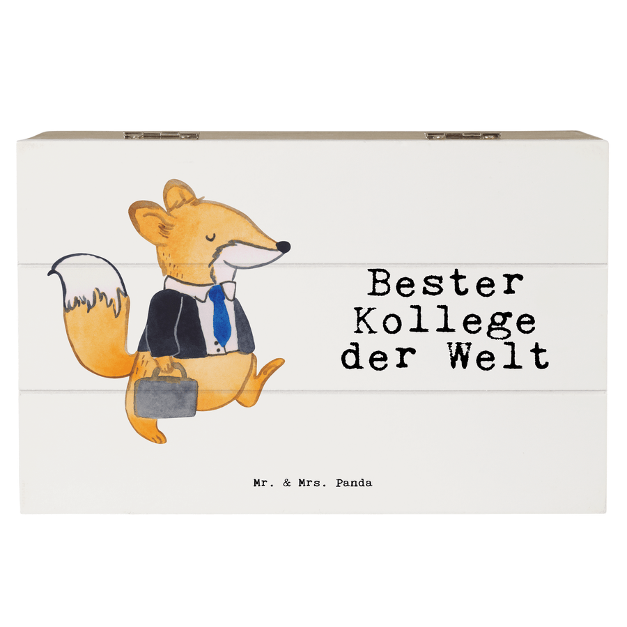 Holzkiste Fuchs Bester Kollege der Welt - Weiß - 19 x 12 cm