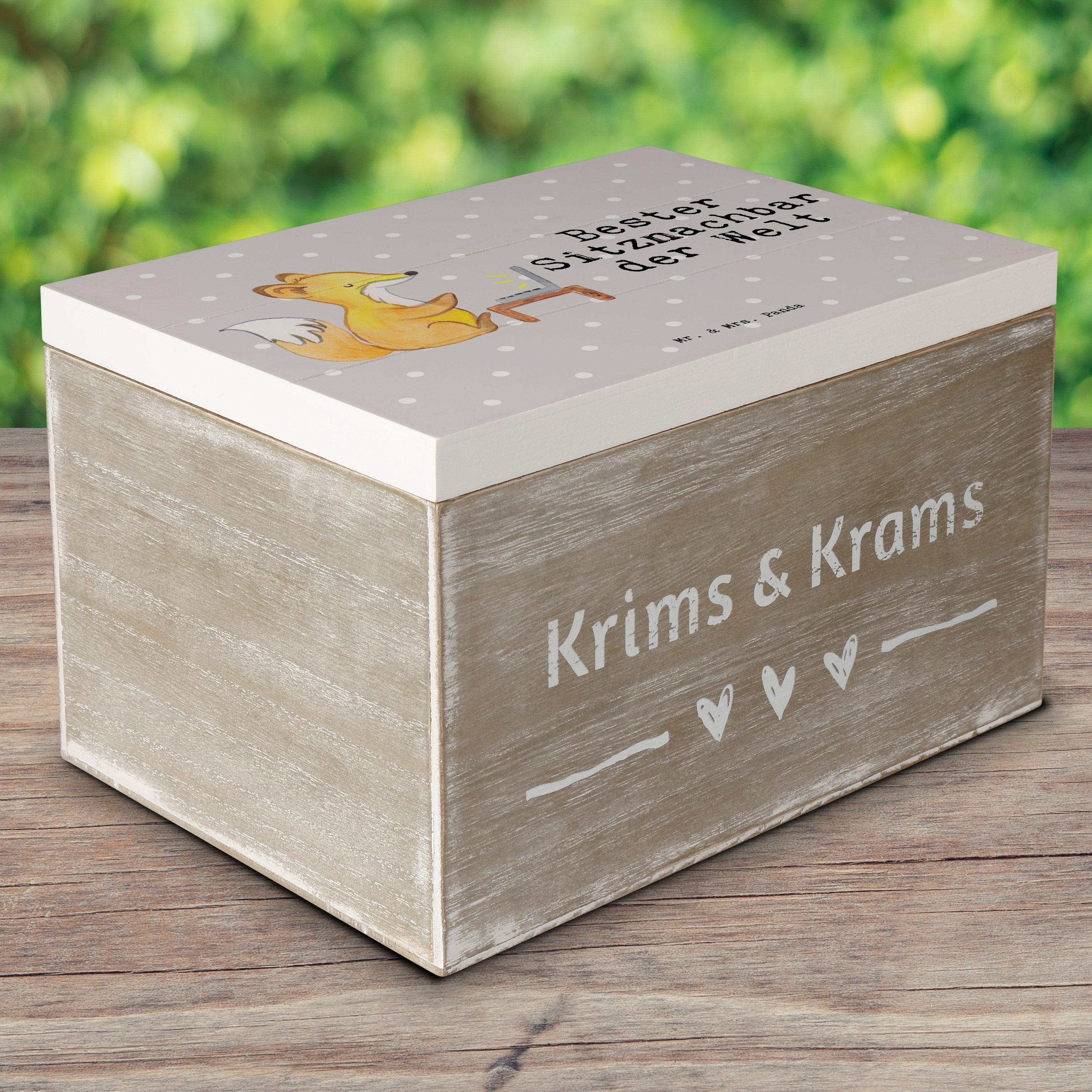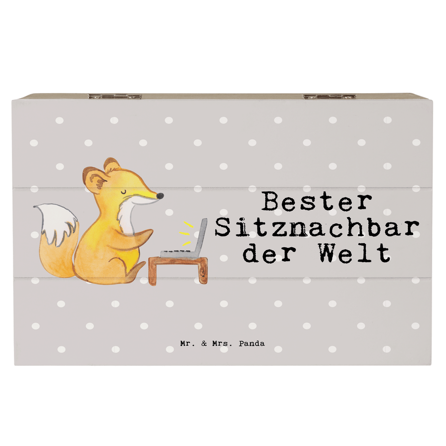 Holzkiste Fuchs Bester Sitznachbar der Welt - Grau Pastell - 19 x 12 cm