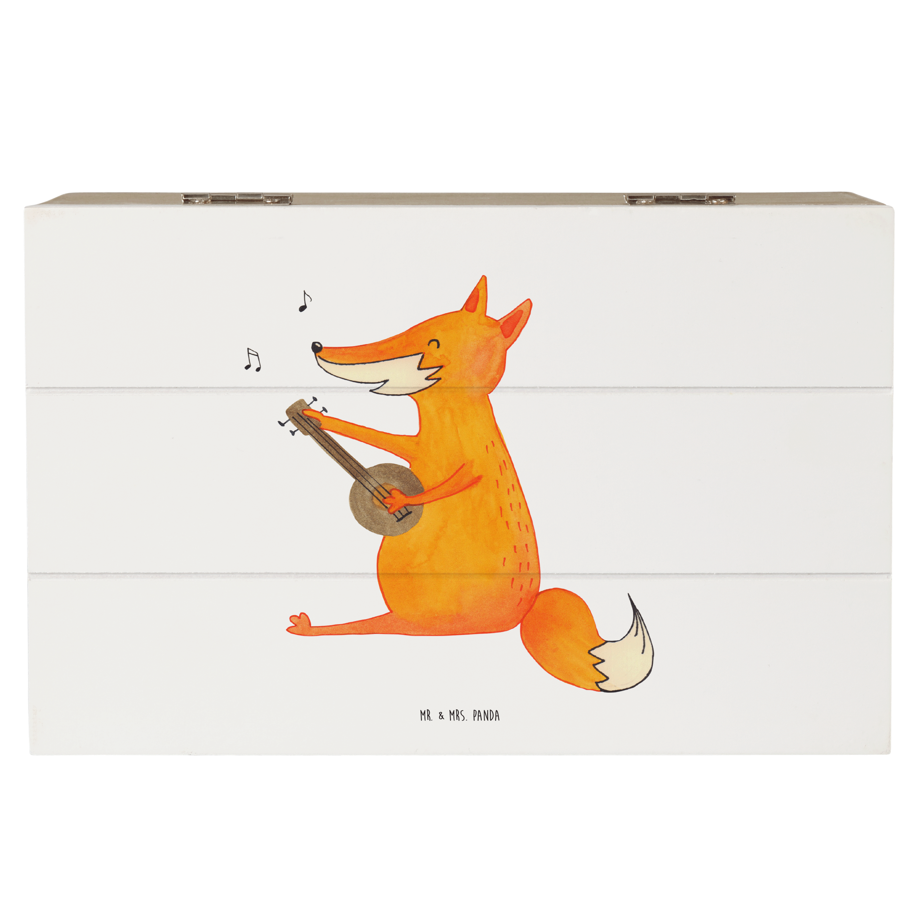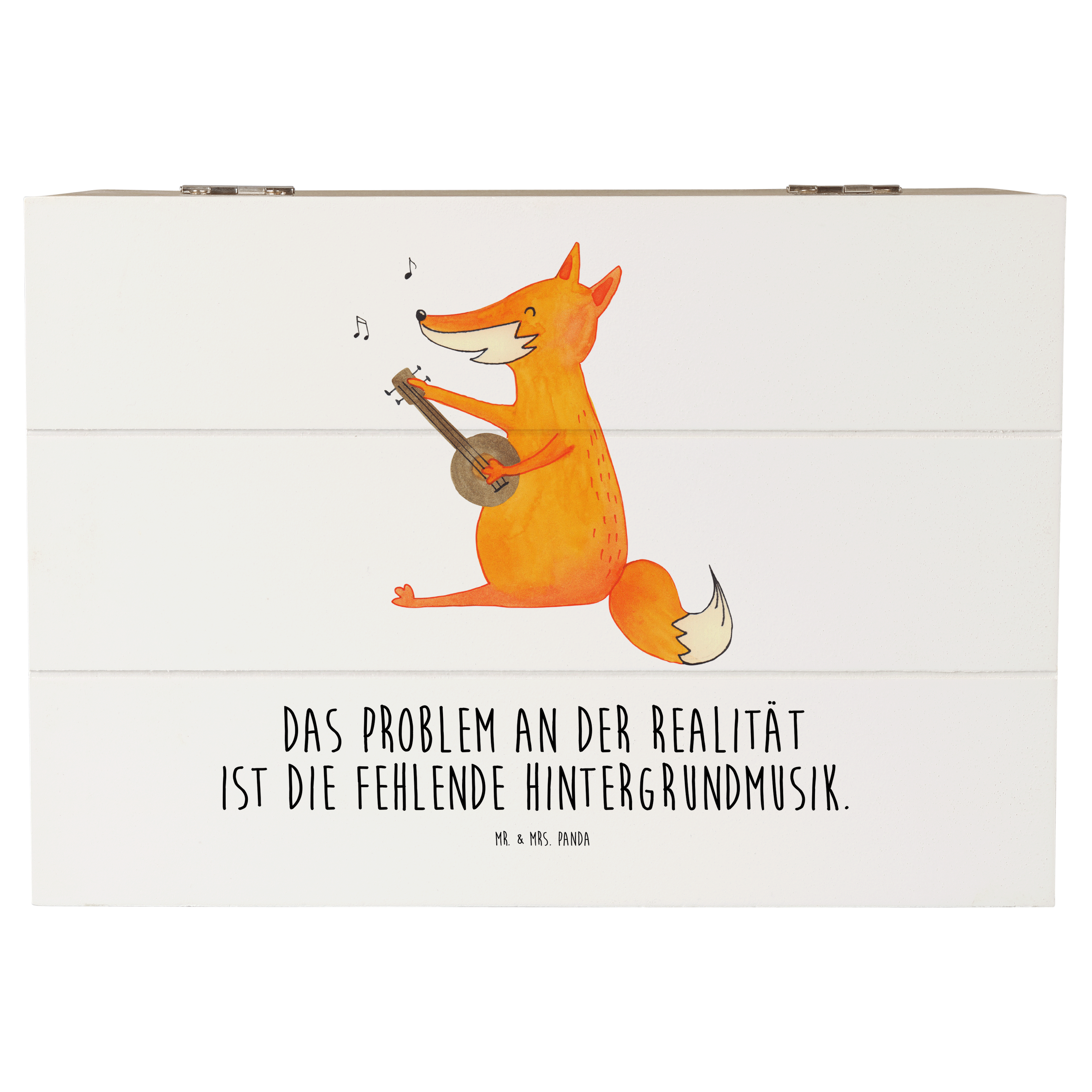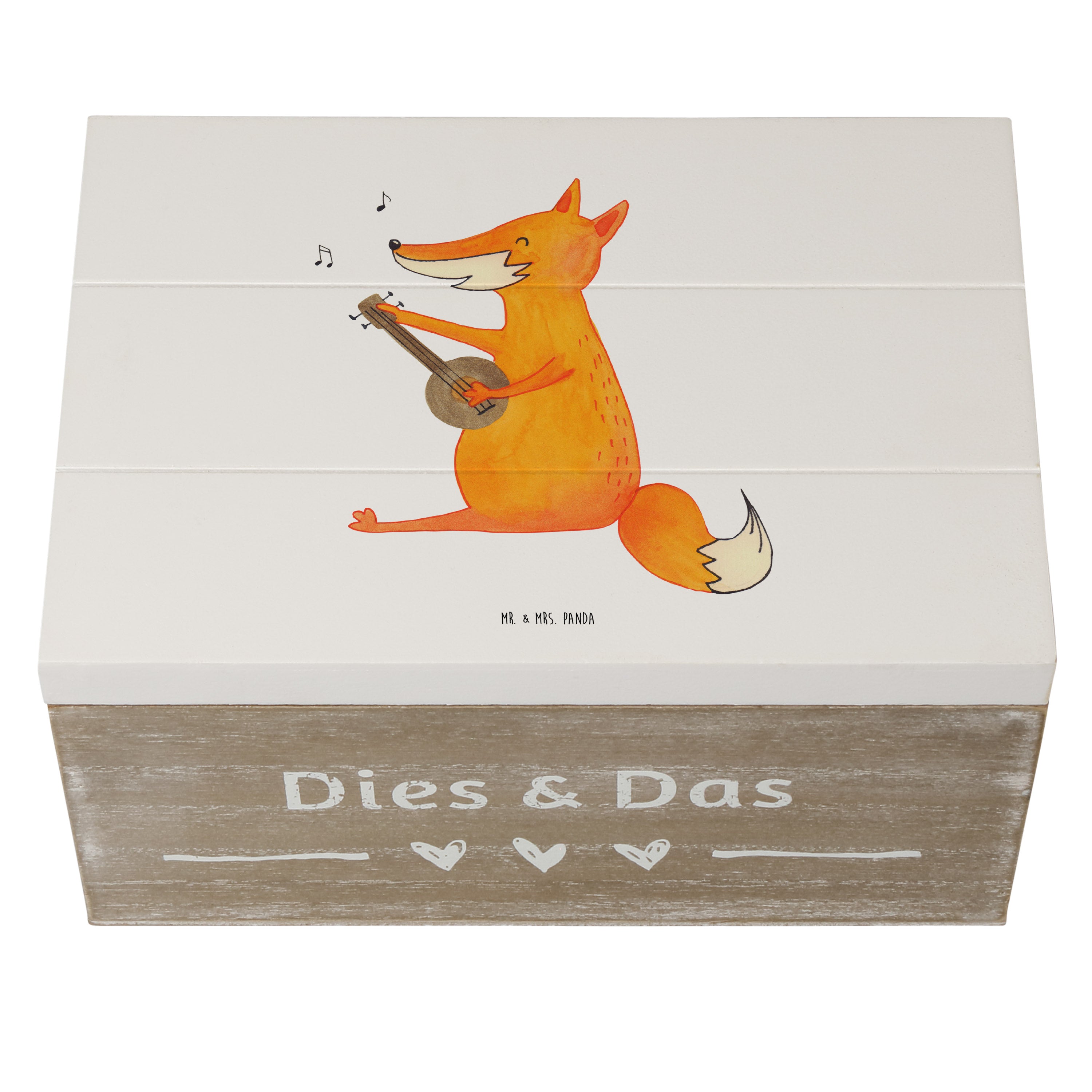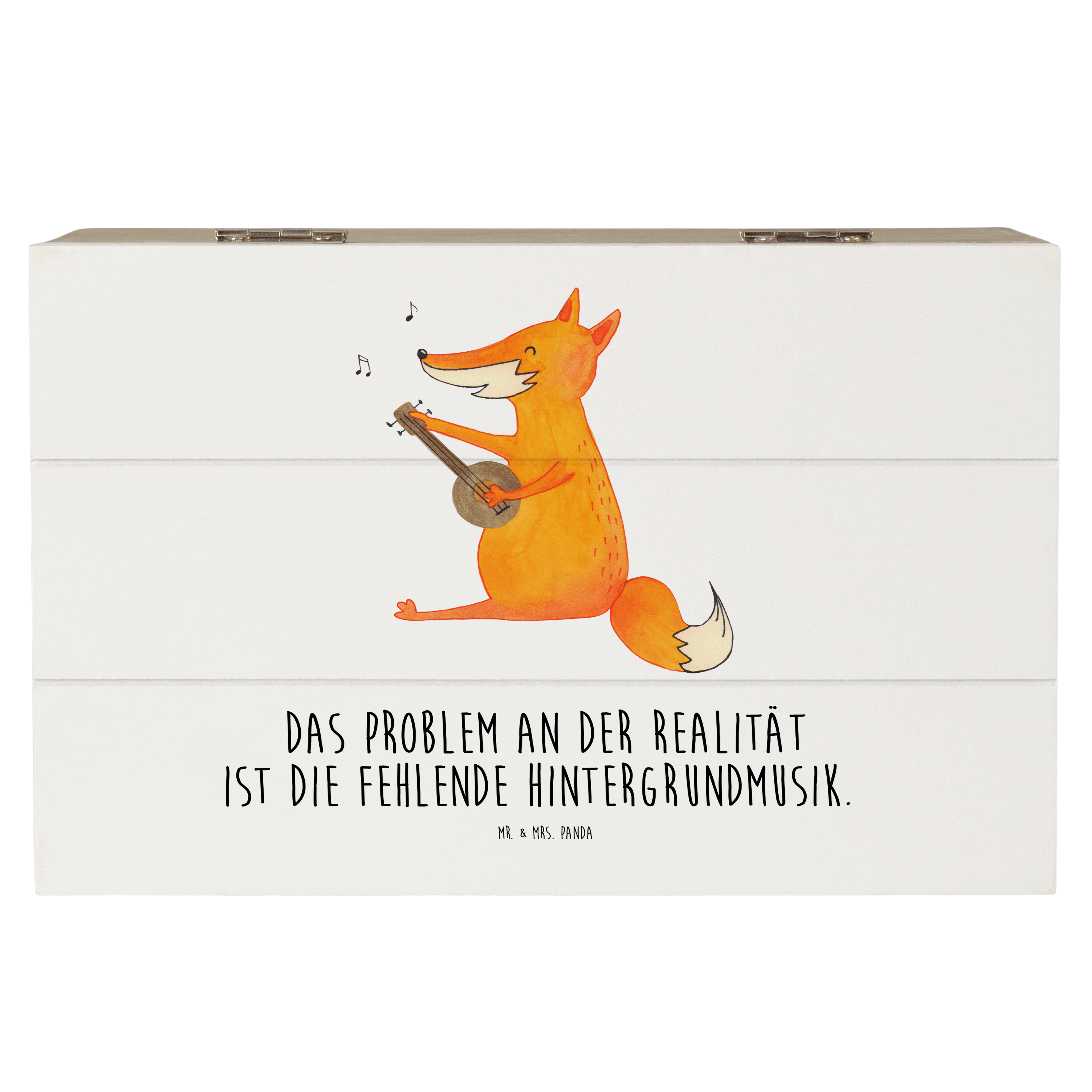 Holzkiste Fuchs Gitarre - 25 x 18 cm - mit Spruch - Weiß
