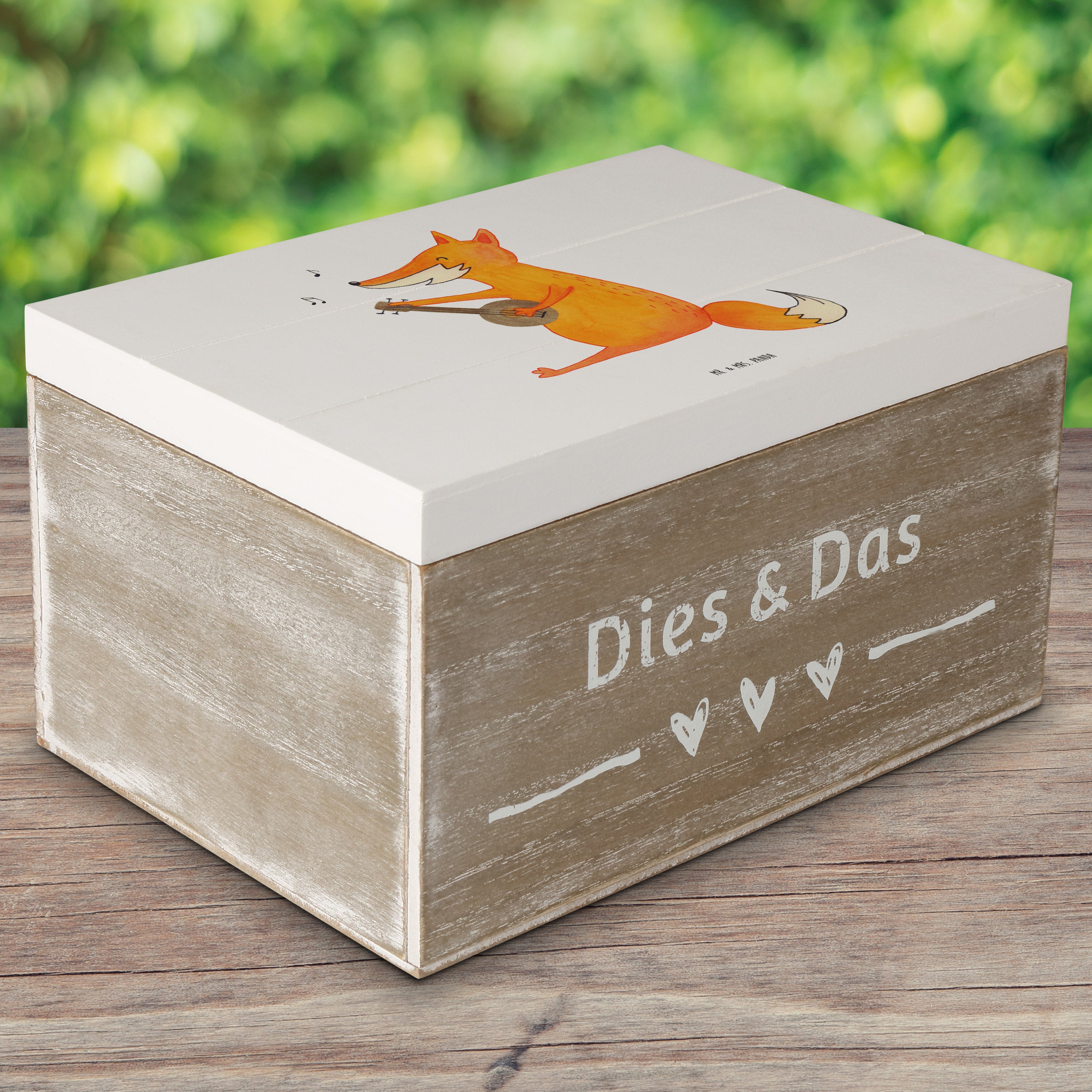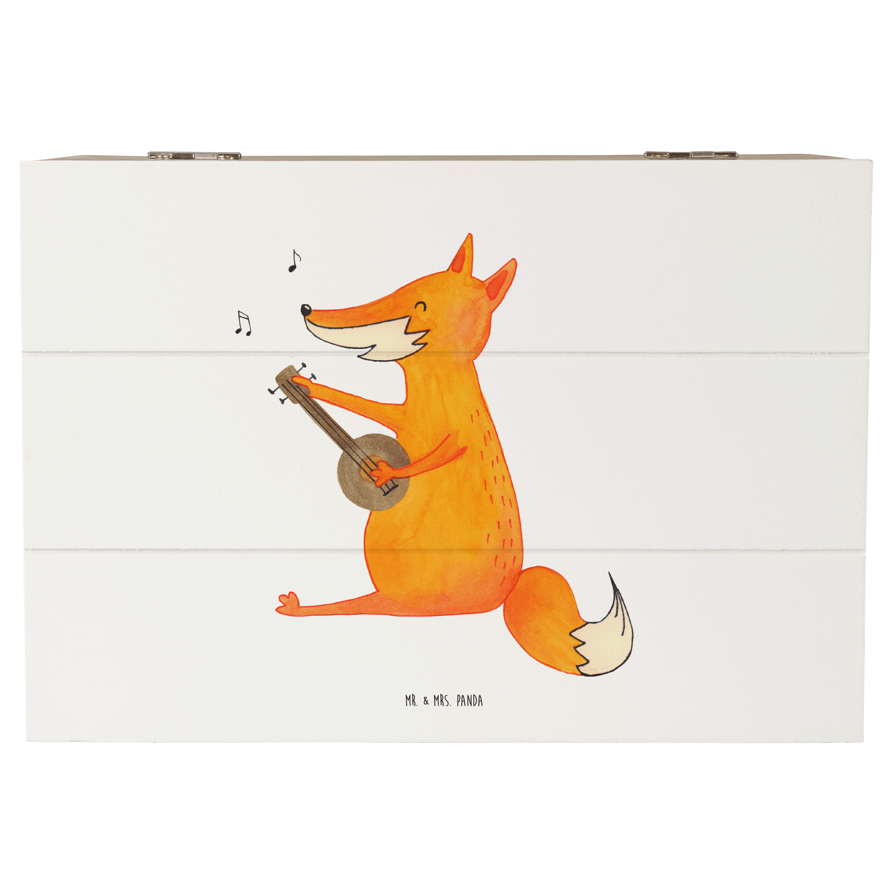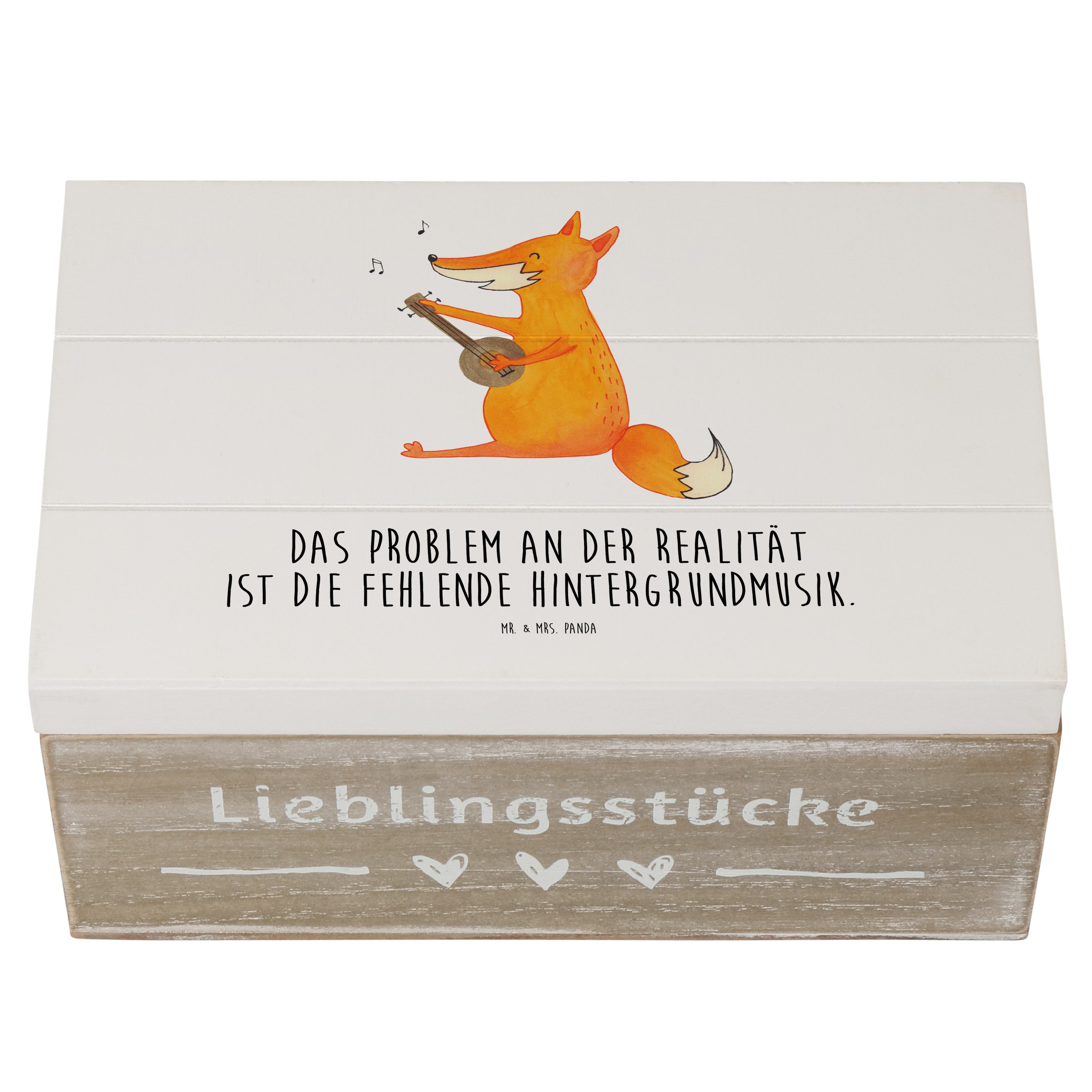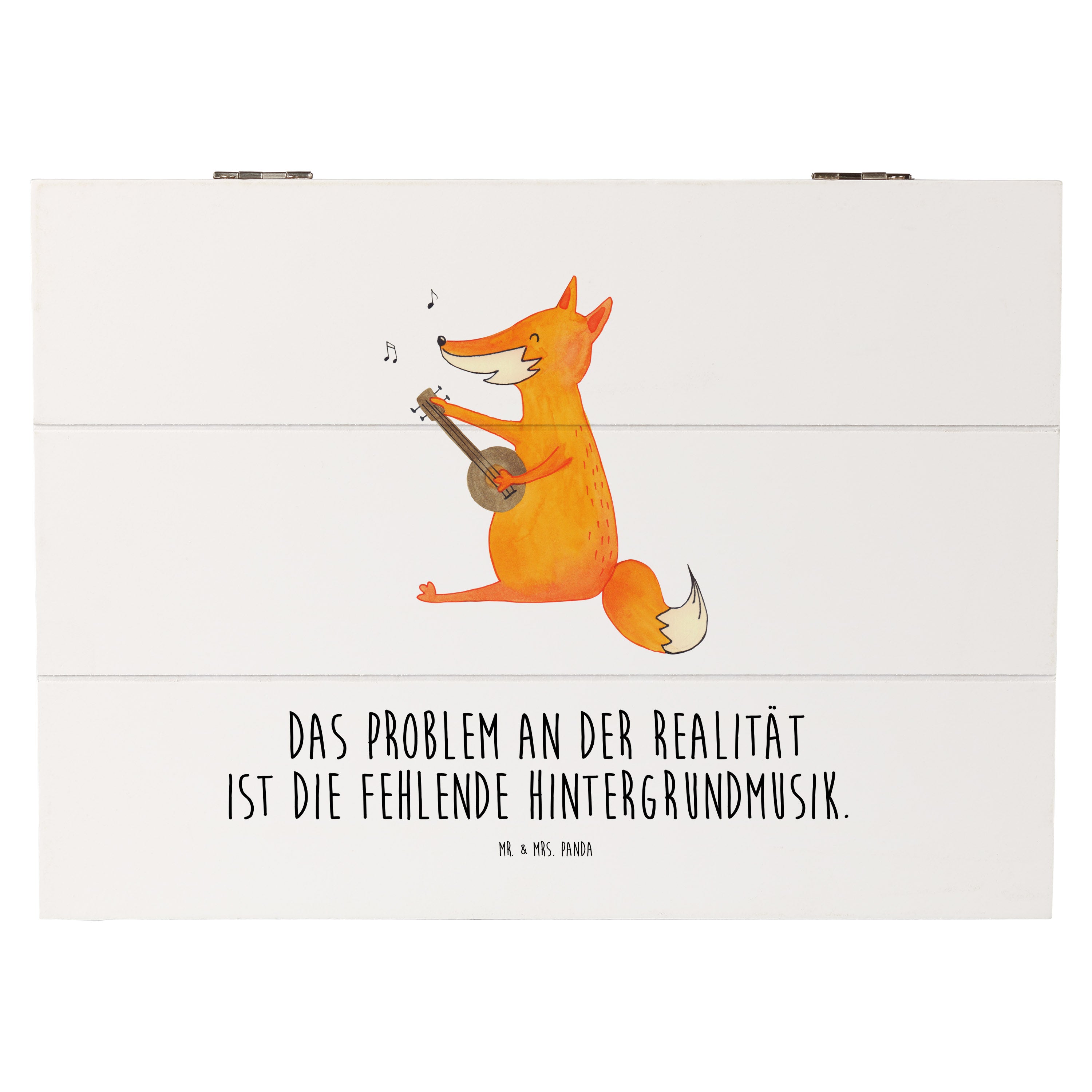 Holzkiste Fuchs Gitarre - 25 x 18 cm - mit Spruch - Weiß