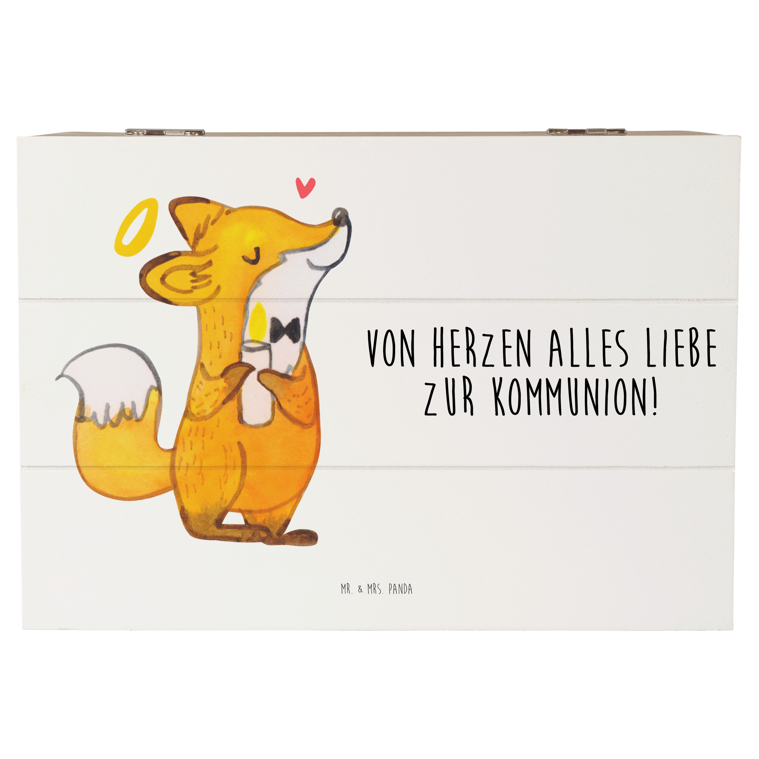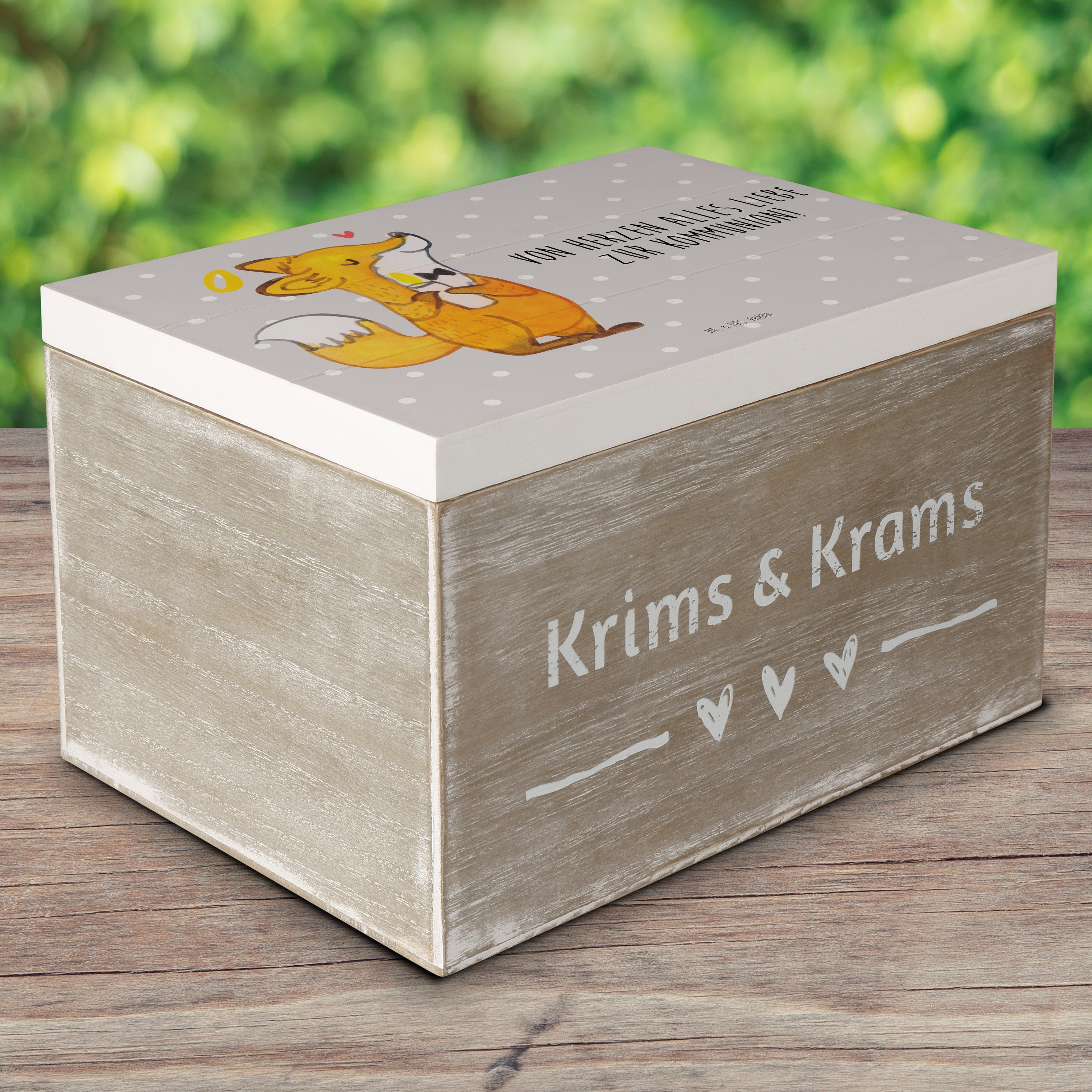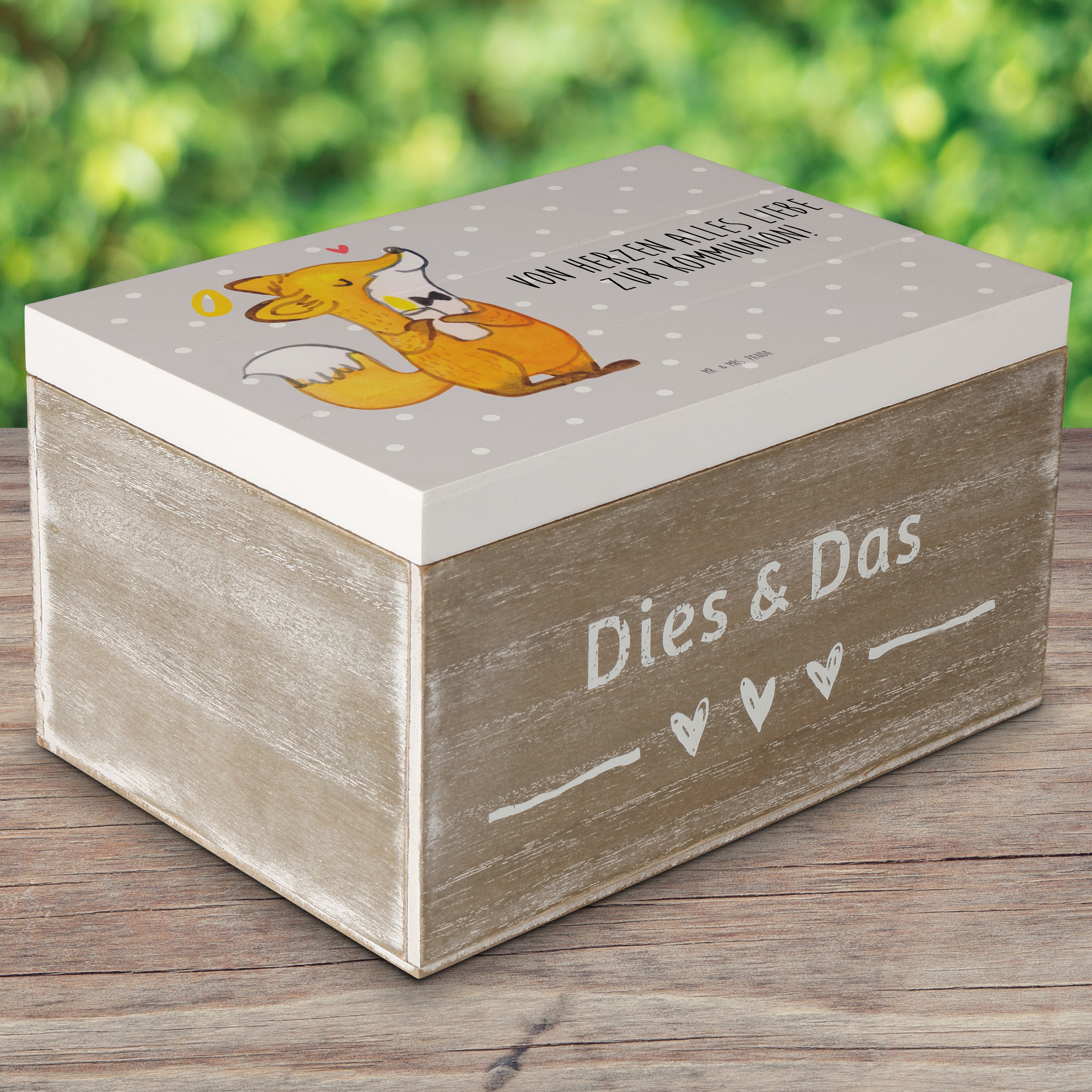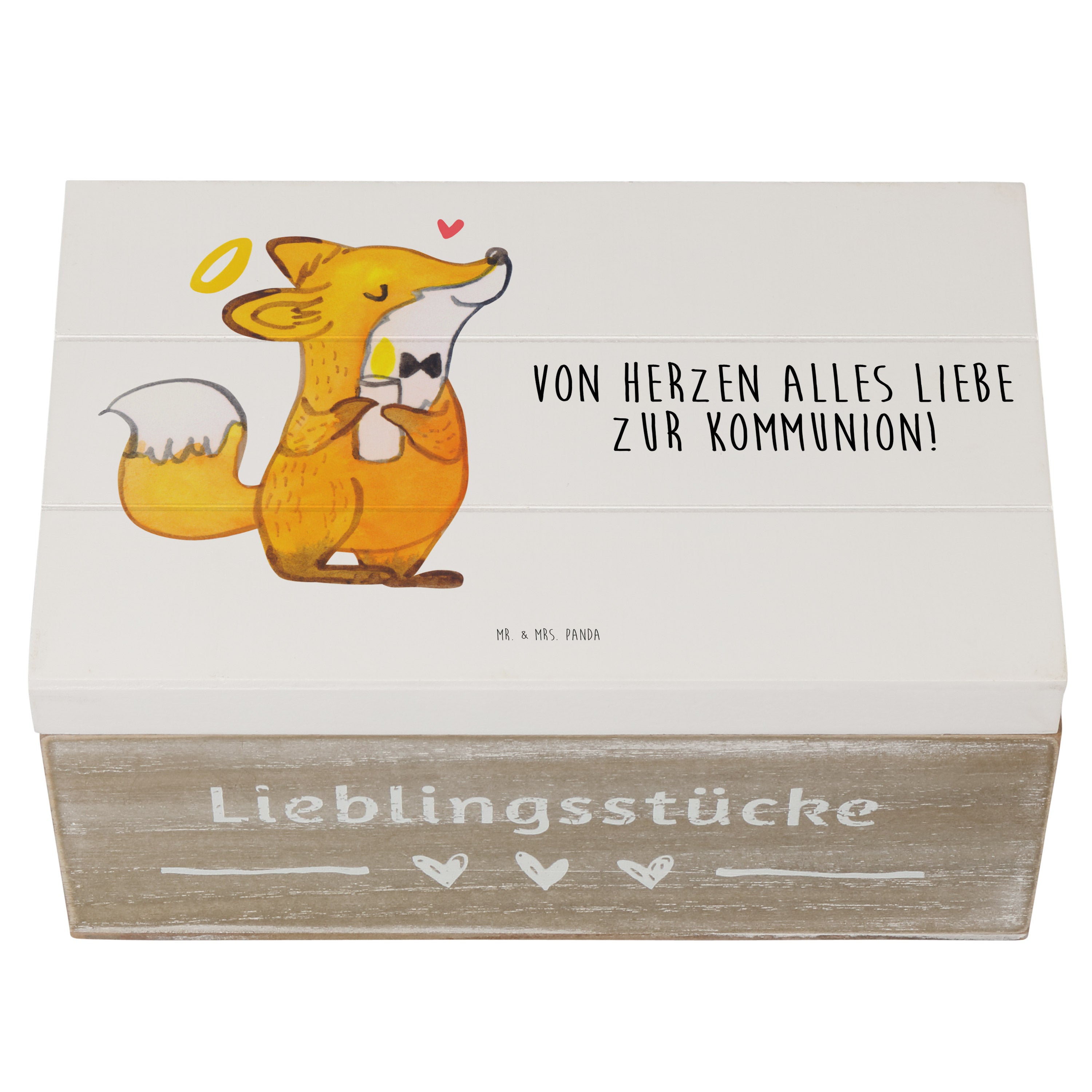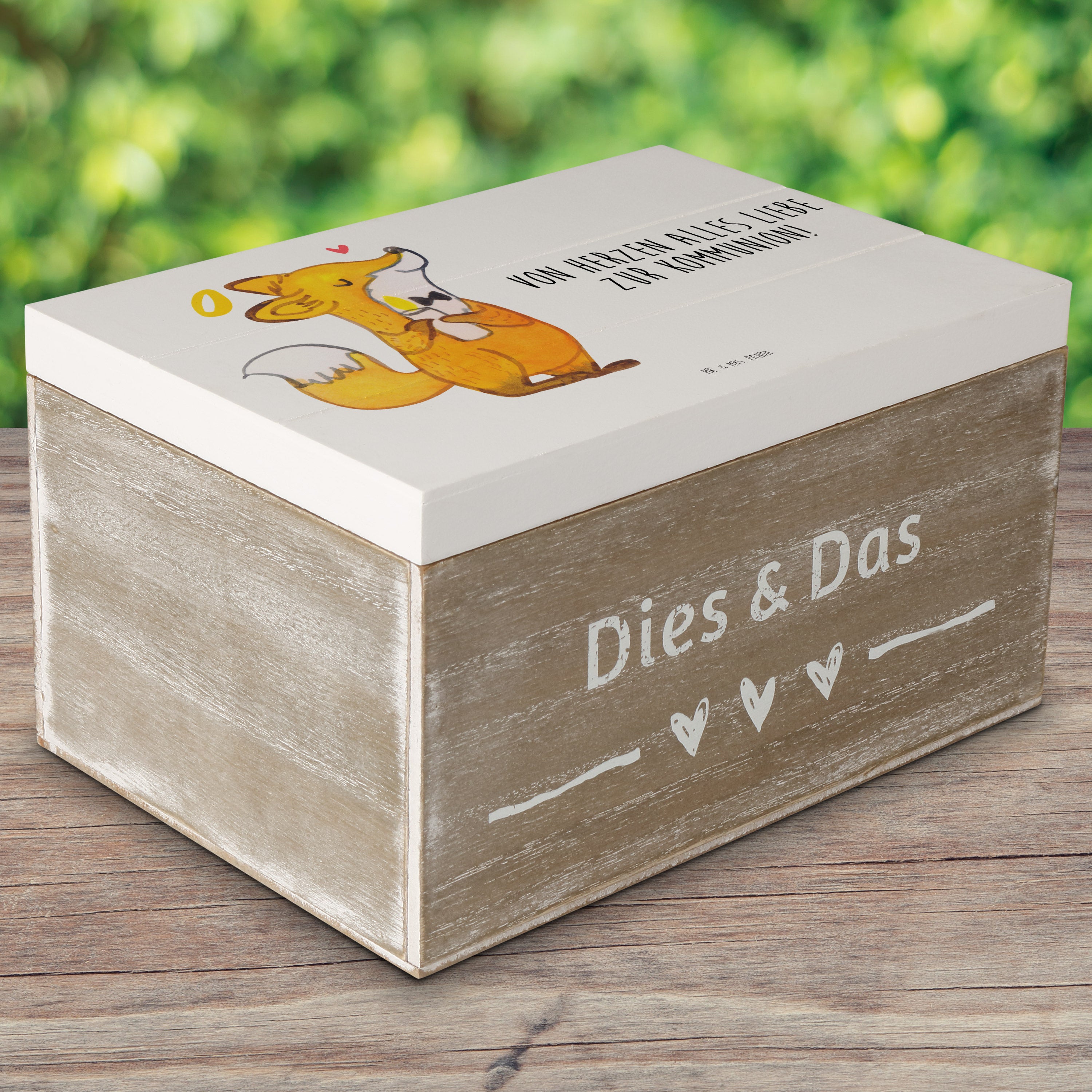Holzkiste Fuchs Kommunion - Weiß - 19 x 12 cm