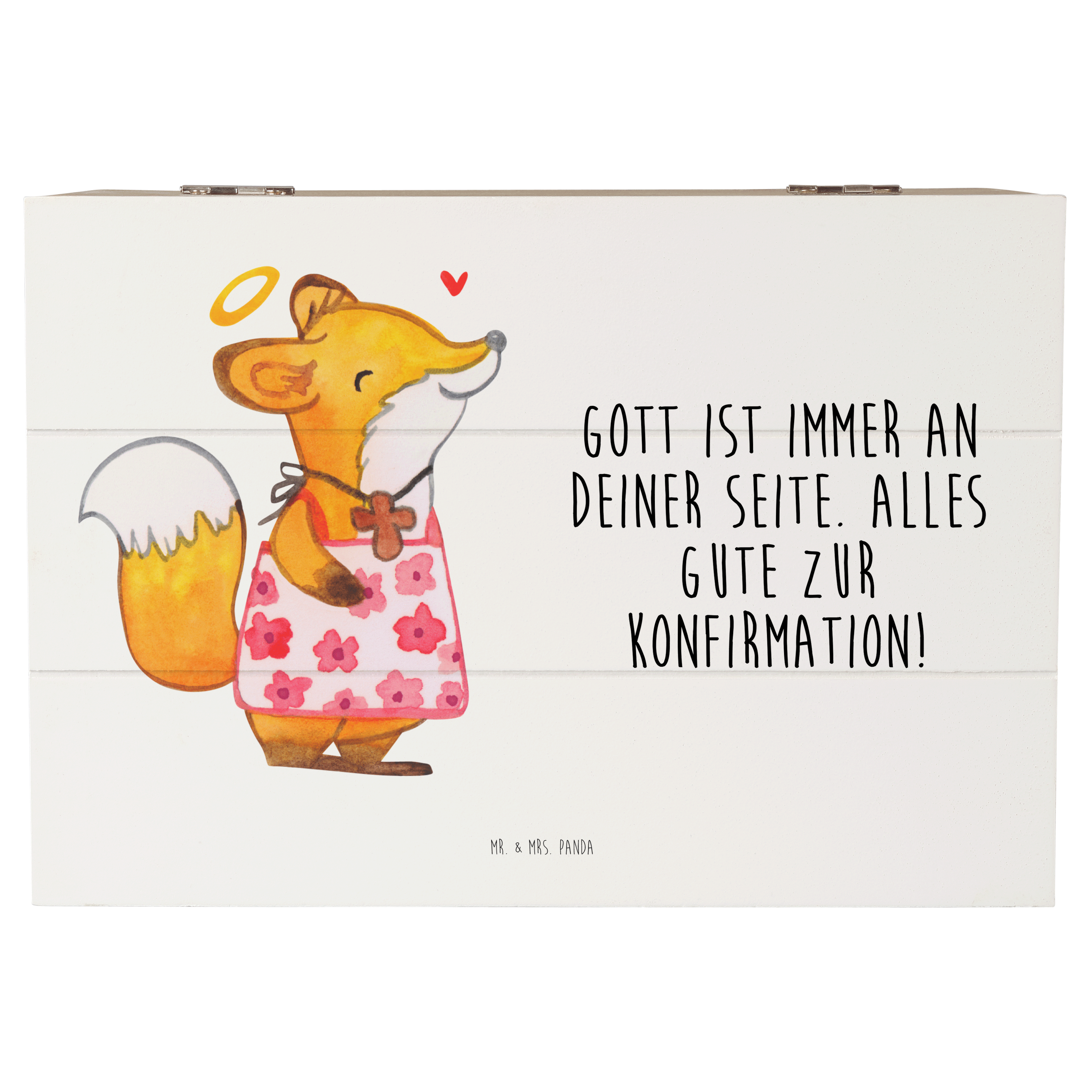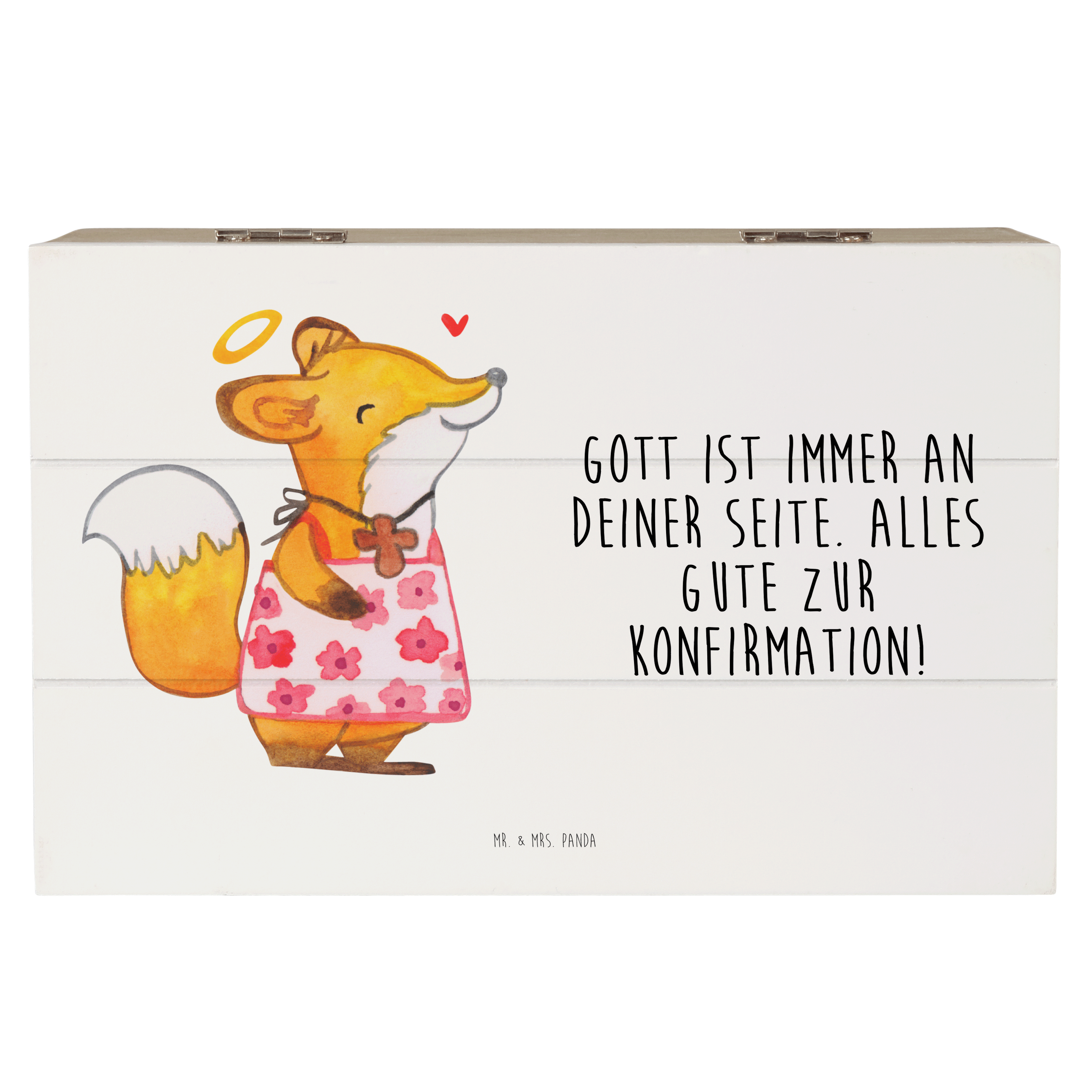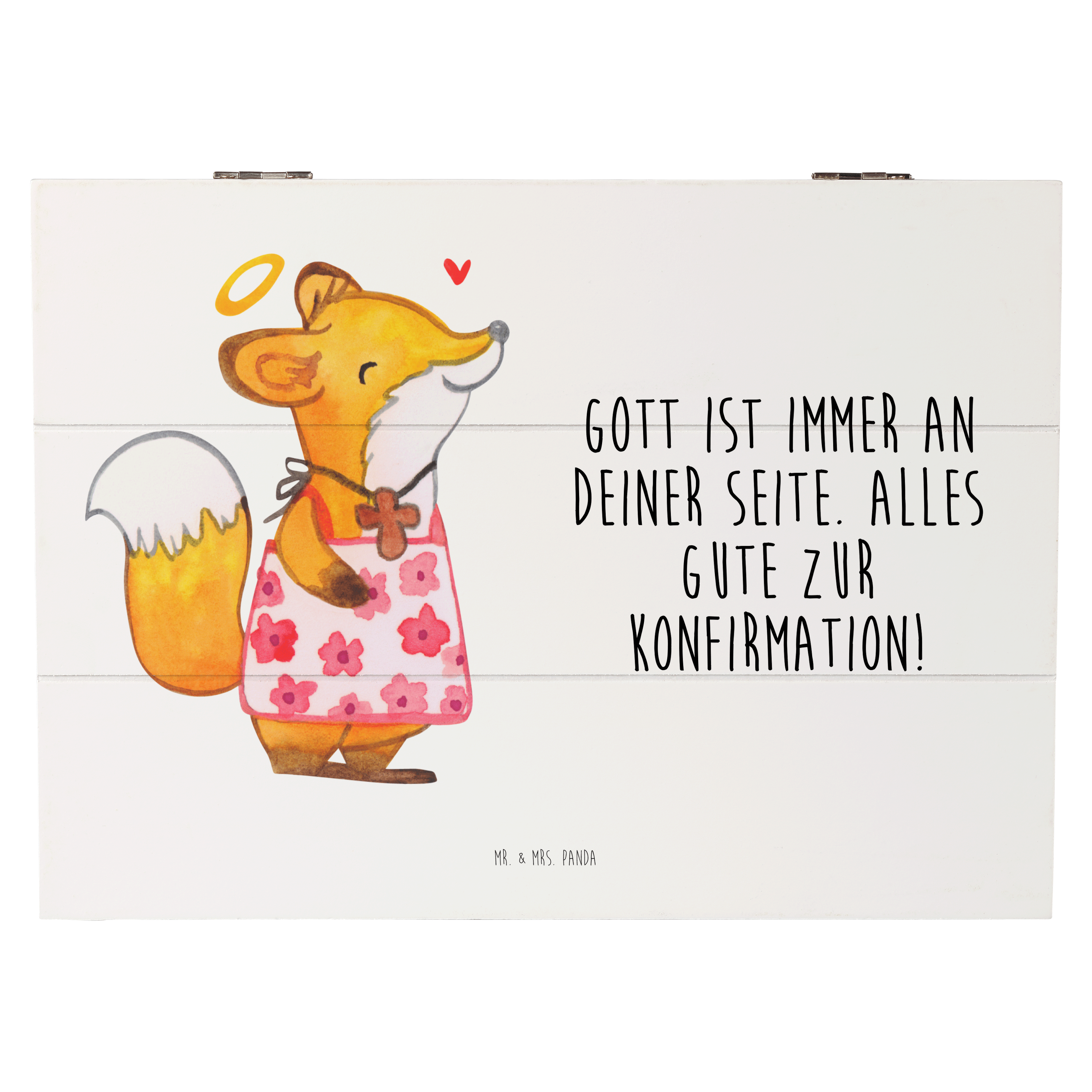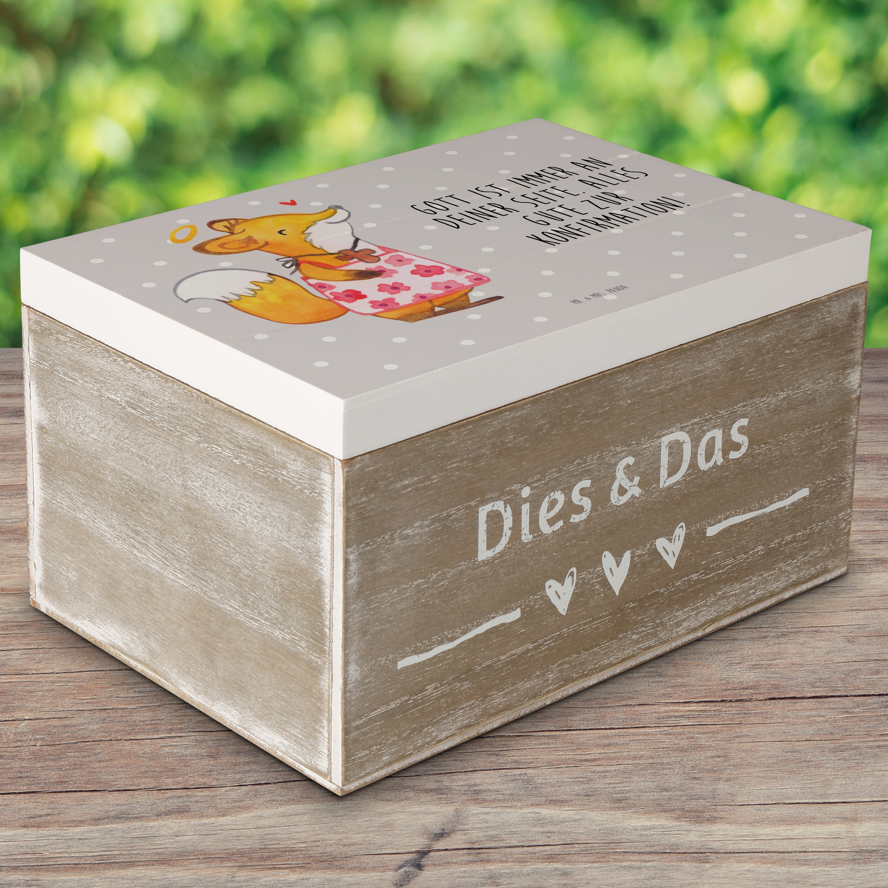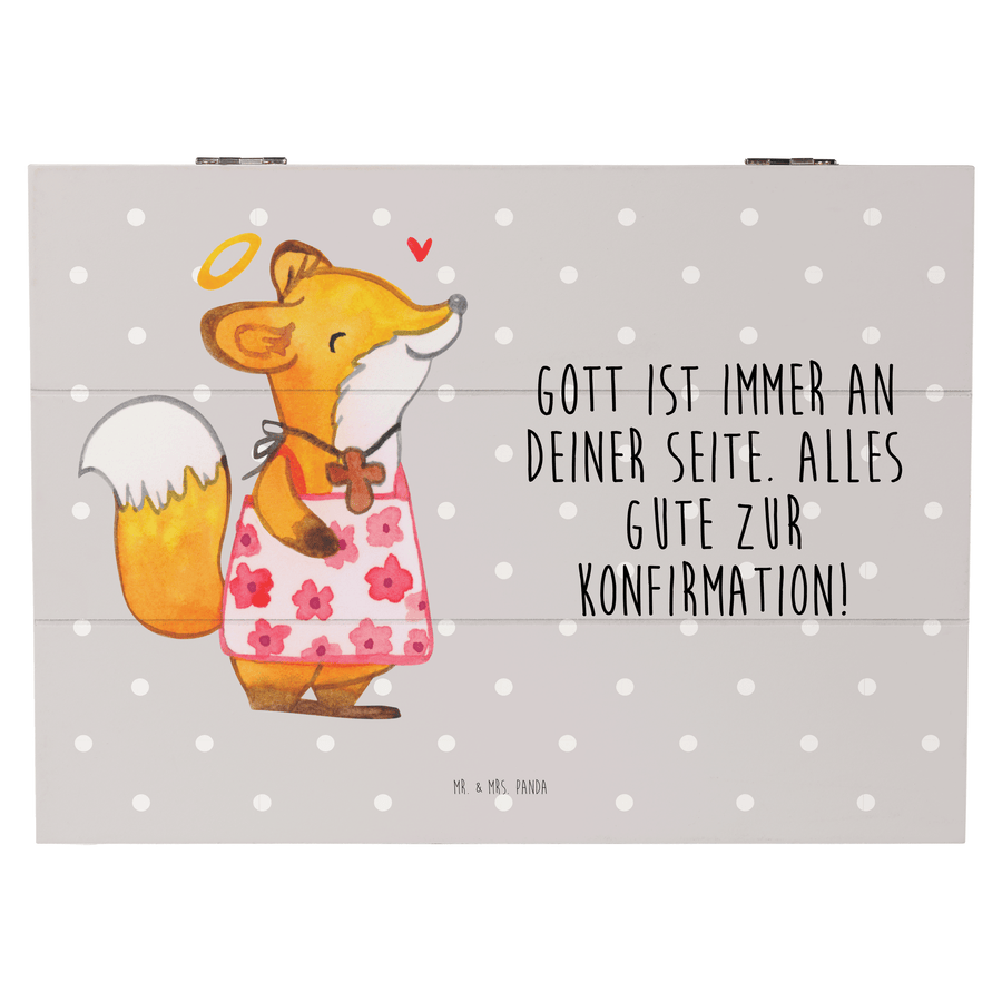 Holzkiste Fuchs Konfirmation Mädchen - 25 x 18 cm - Grau Pastell