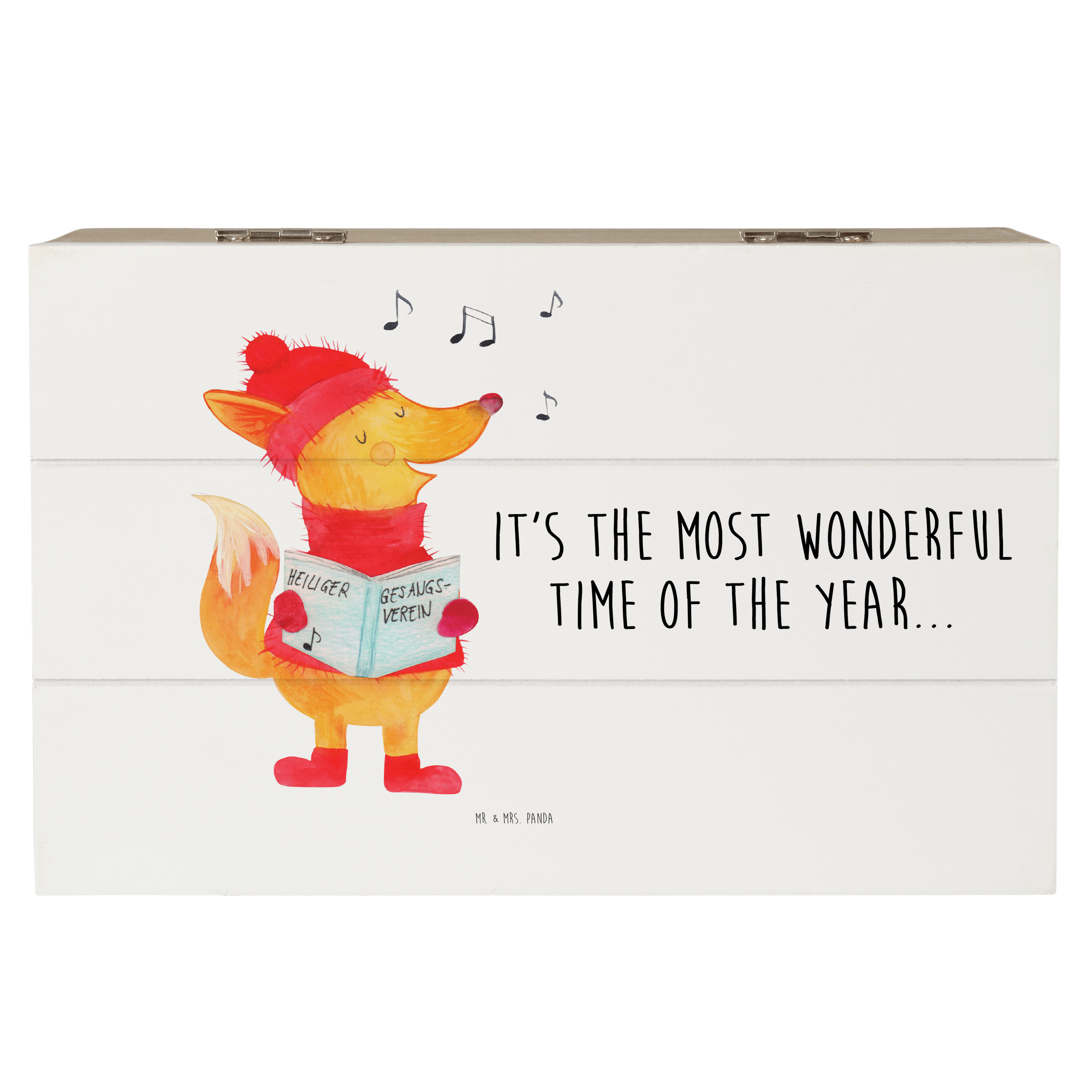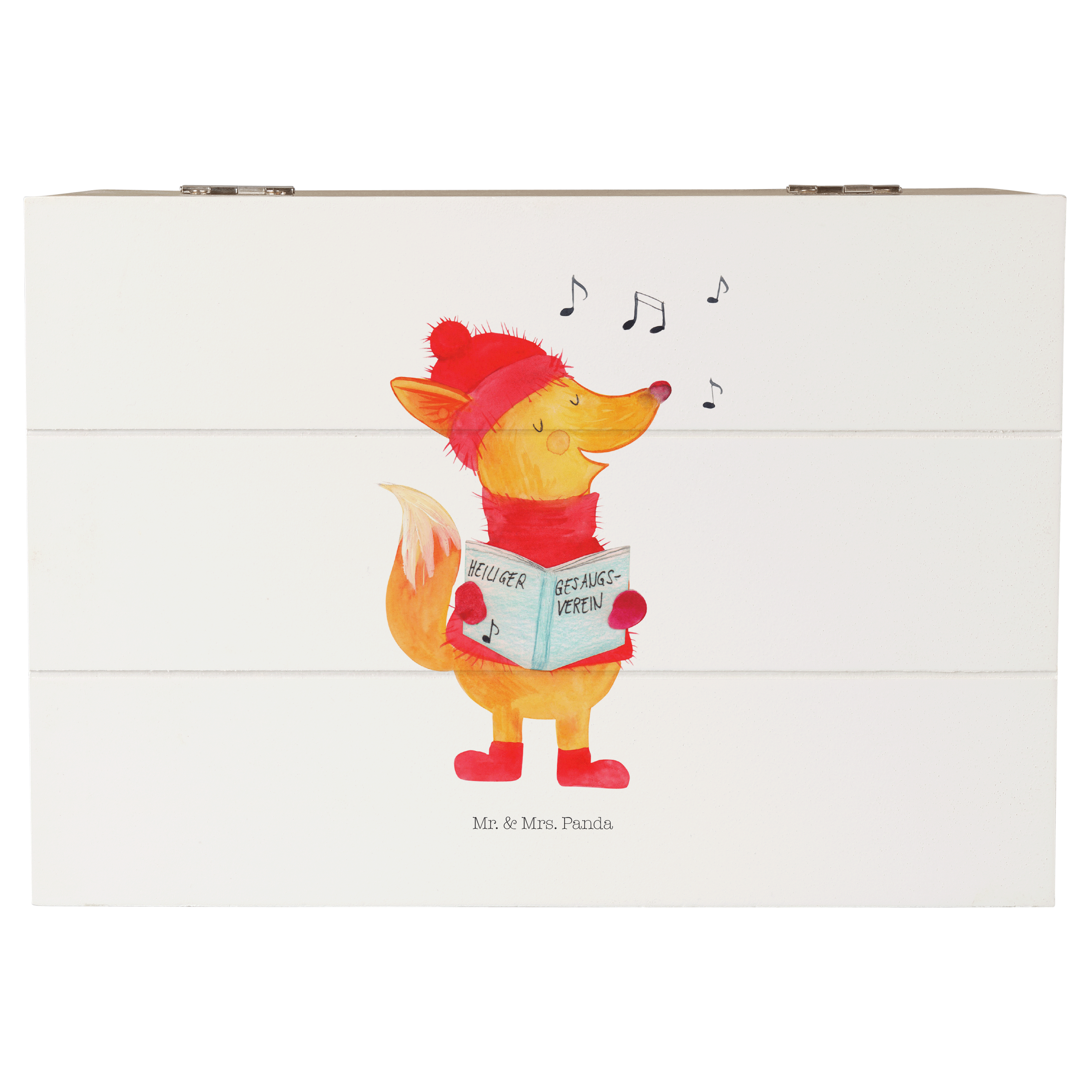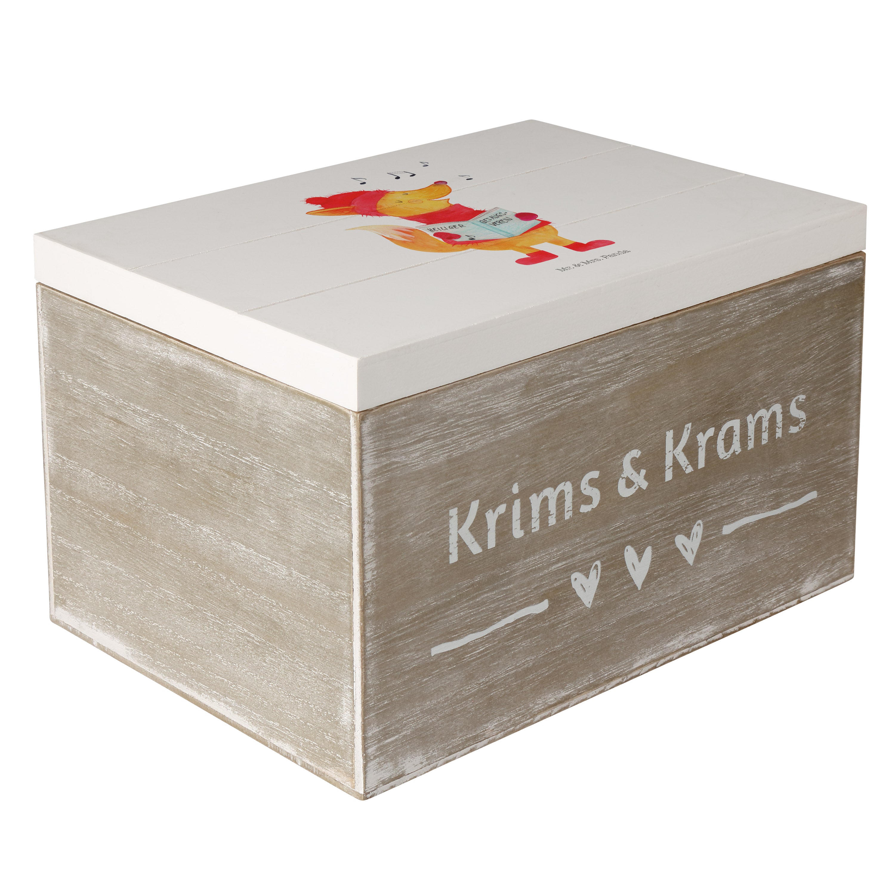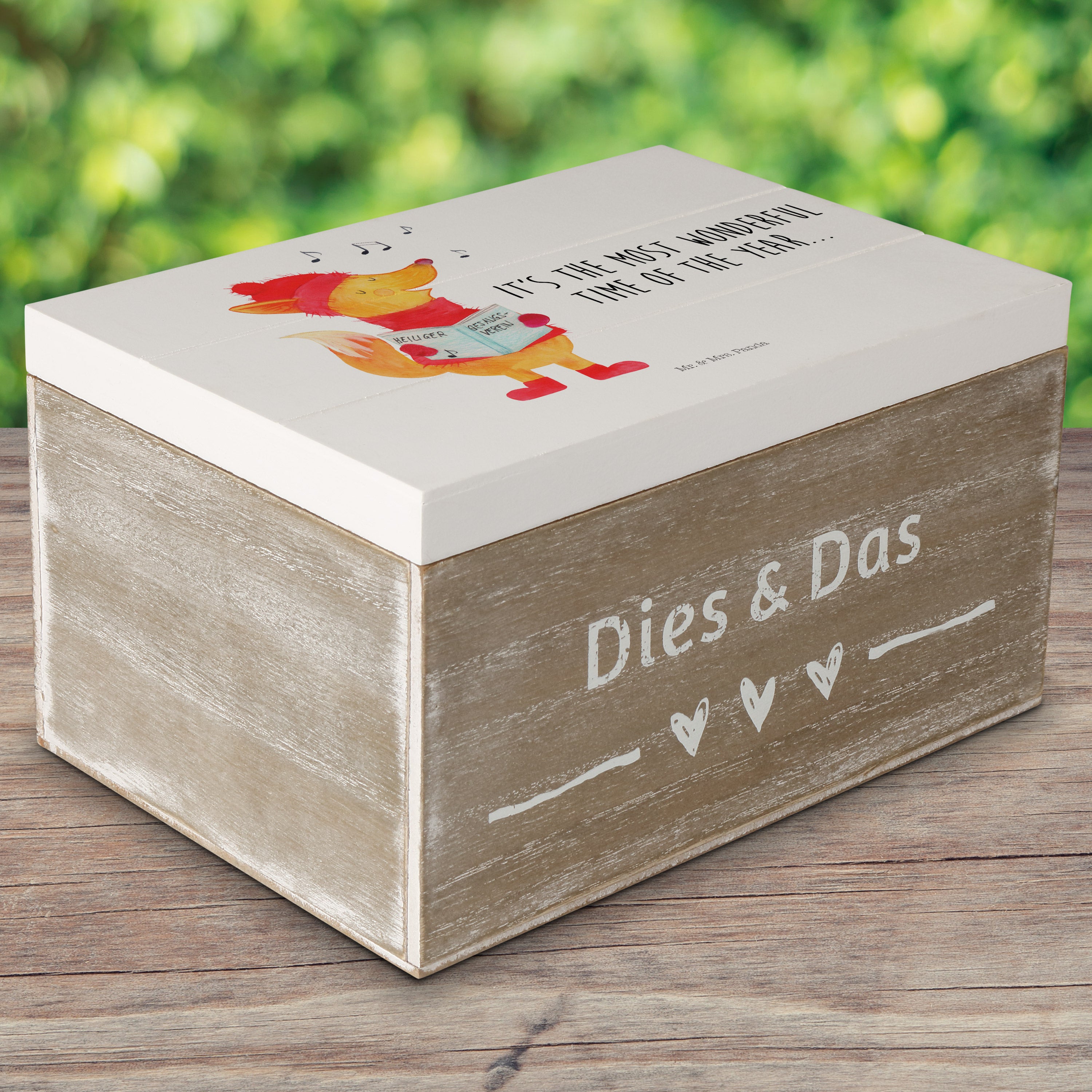 Holzkiste Fuchs Sänger - 25 x 18 cm - mit Spruch - Weiß