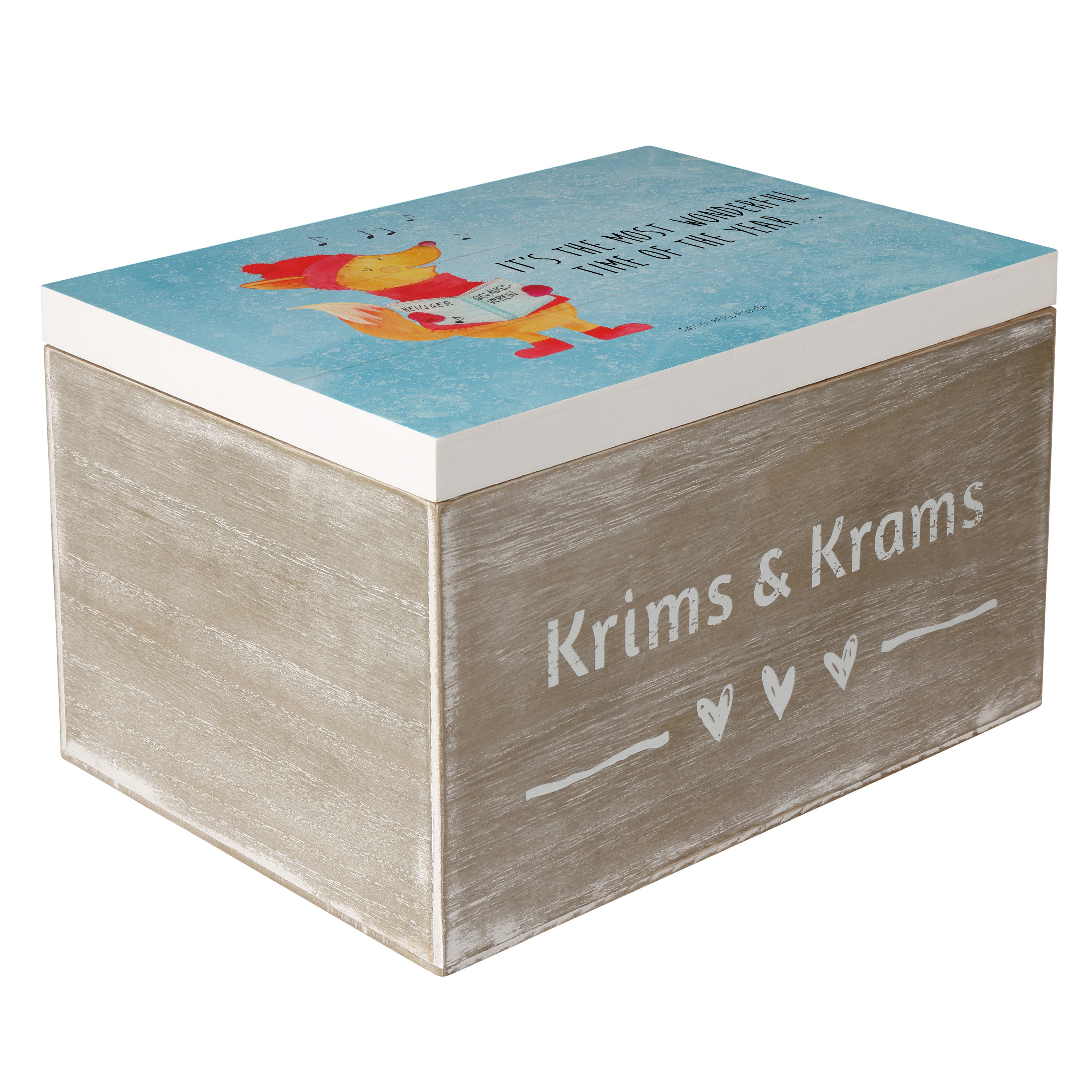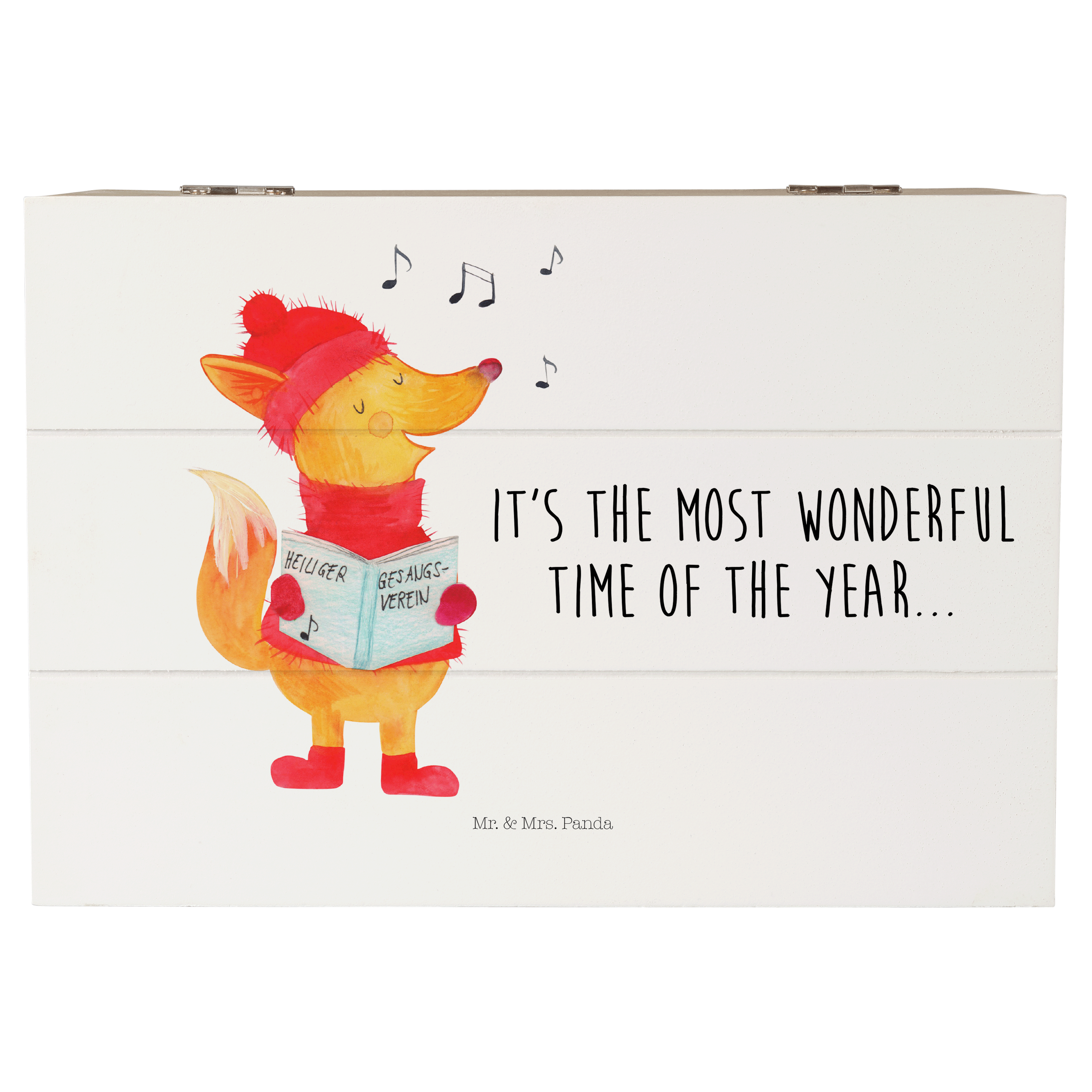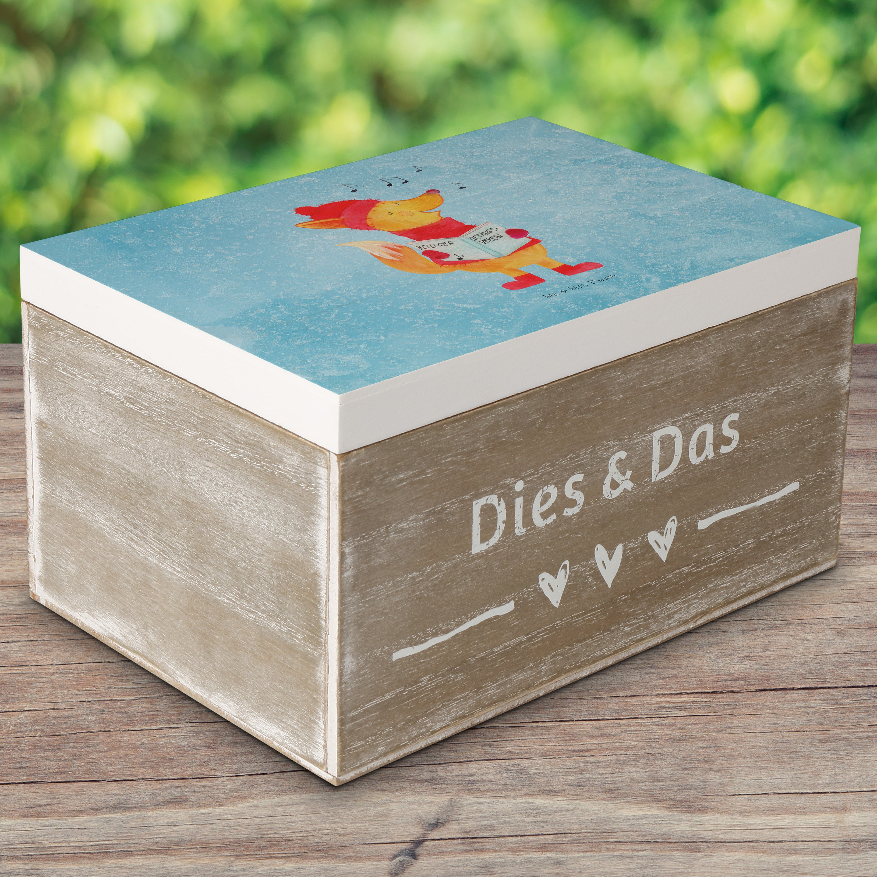 Holzkiste Fuchs Sänger - 25 x 18 cm - mit Spruch - Weiß
