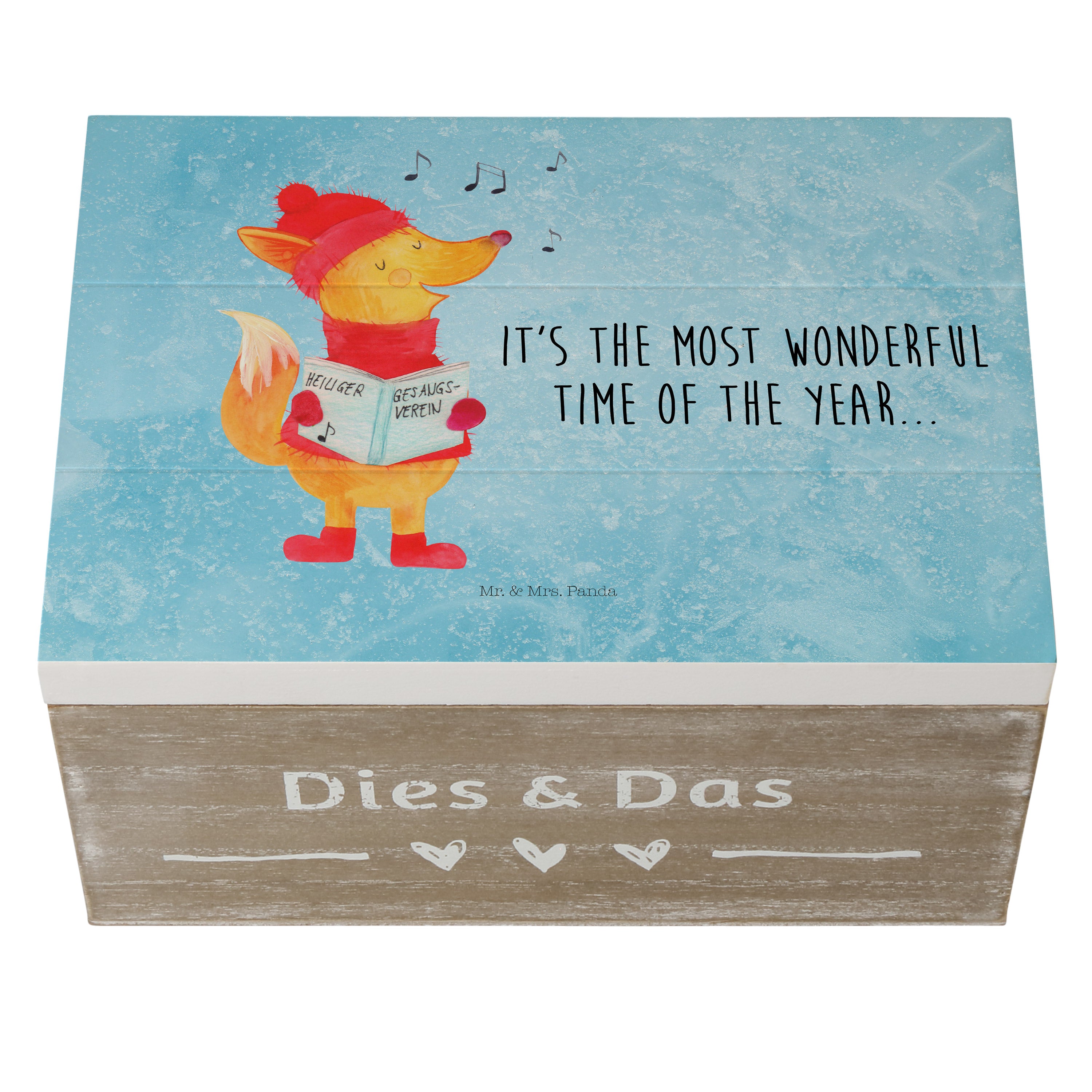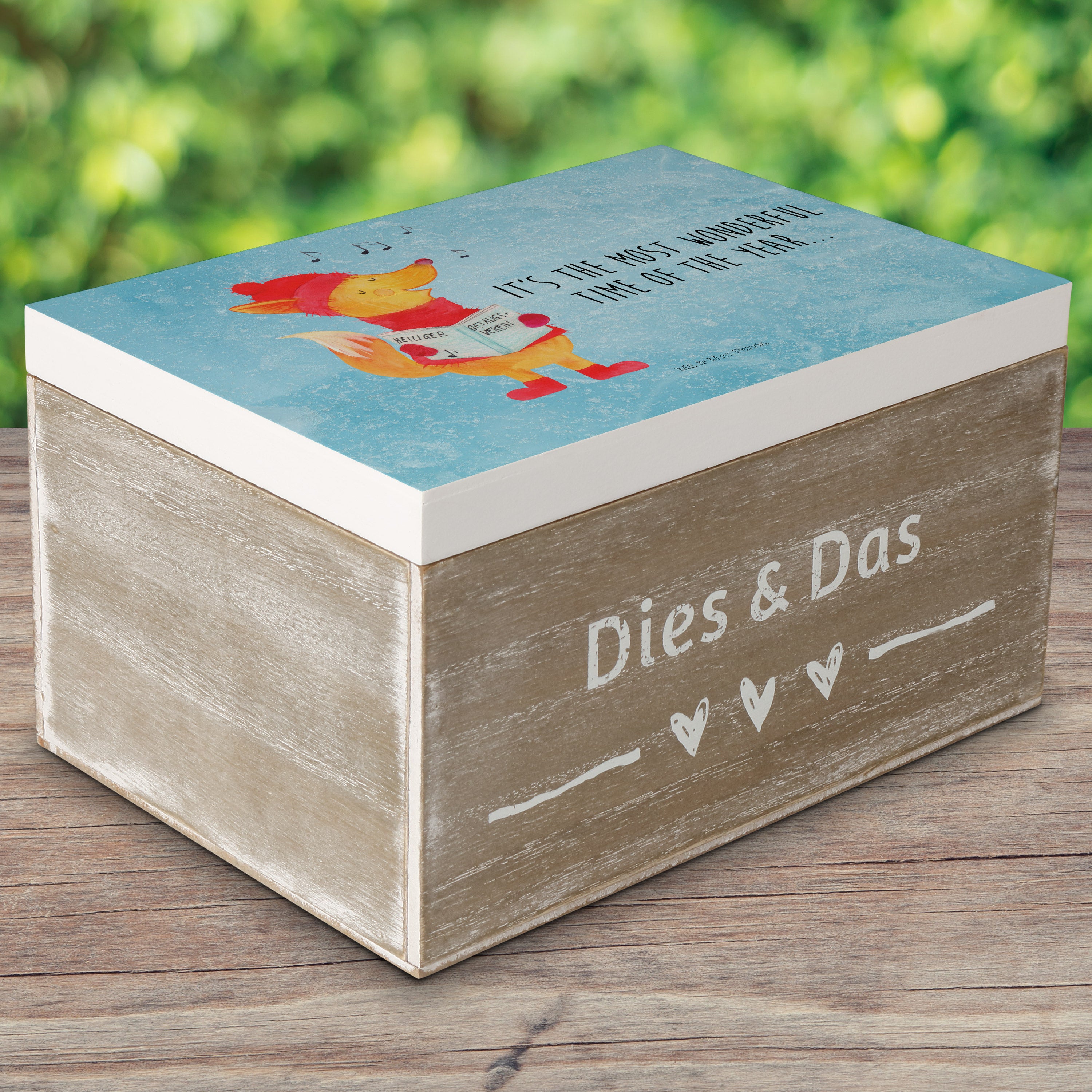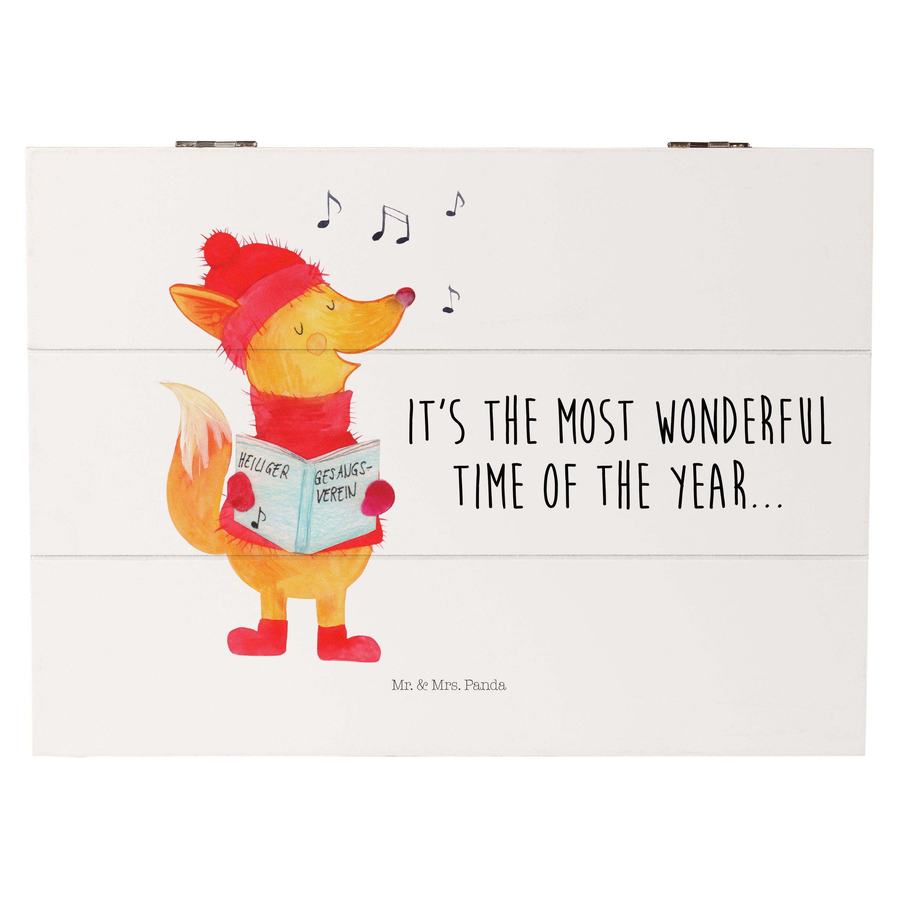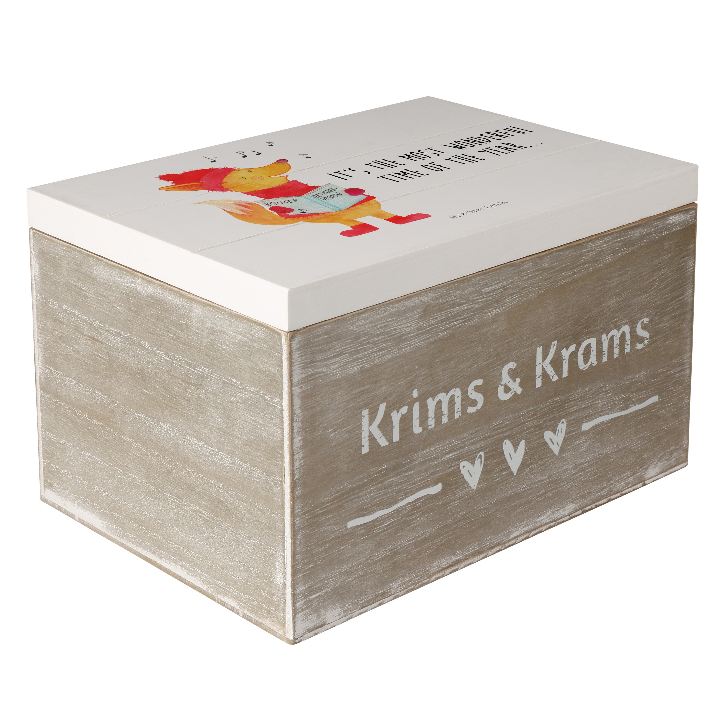 Holzkiste Fuchs Sänger - 25 x 18 cm - mit Spruch - Weiß