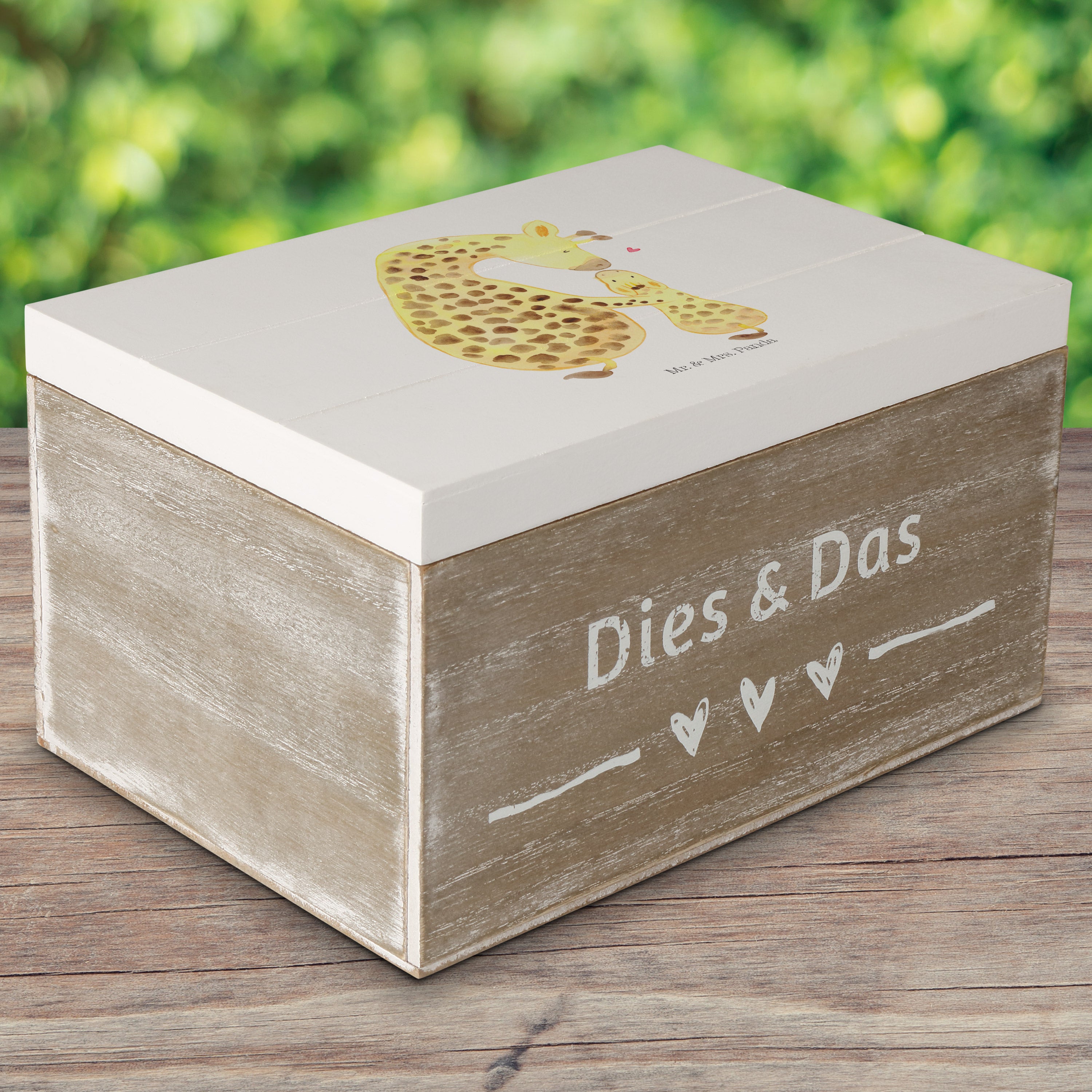 Holzkiste Giraffe mit Kind - 25 x 18 cm - mit Spruch