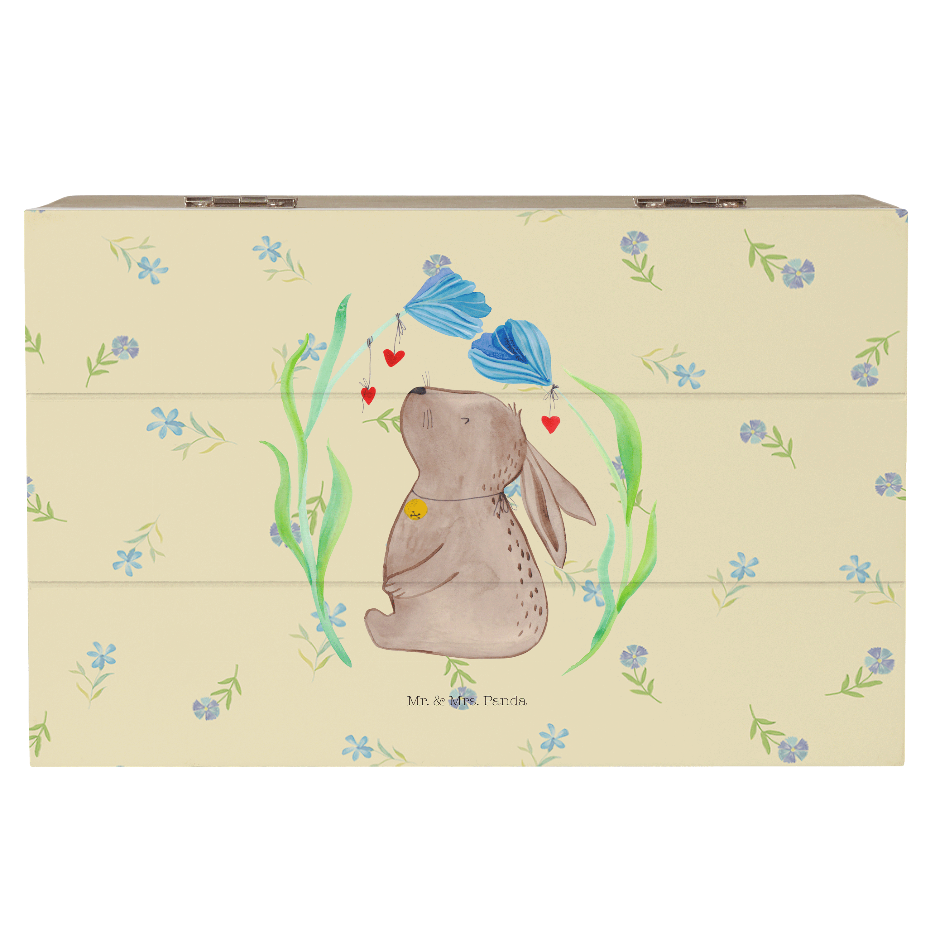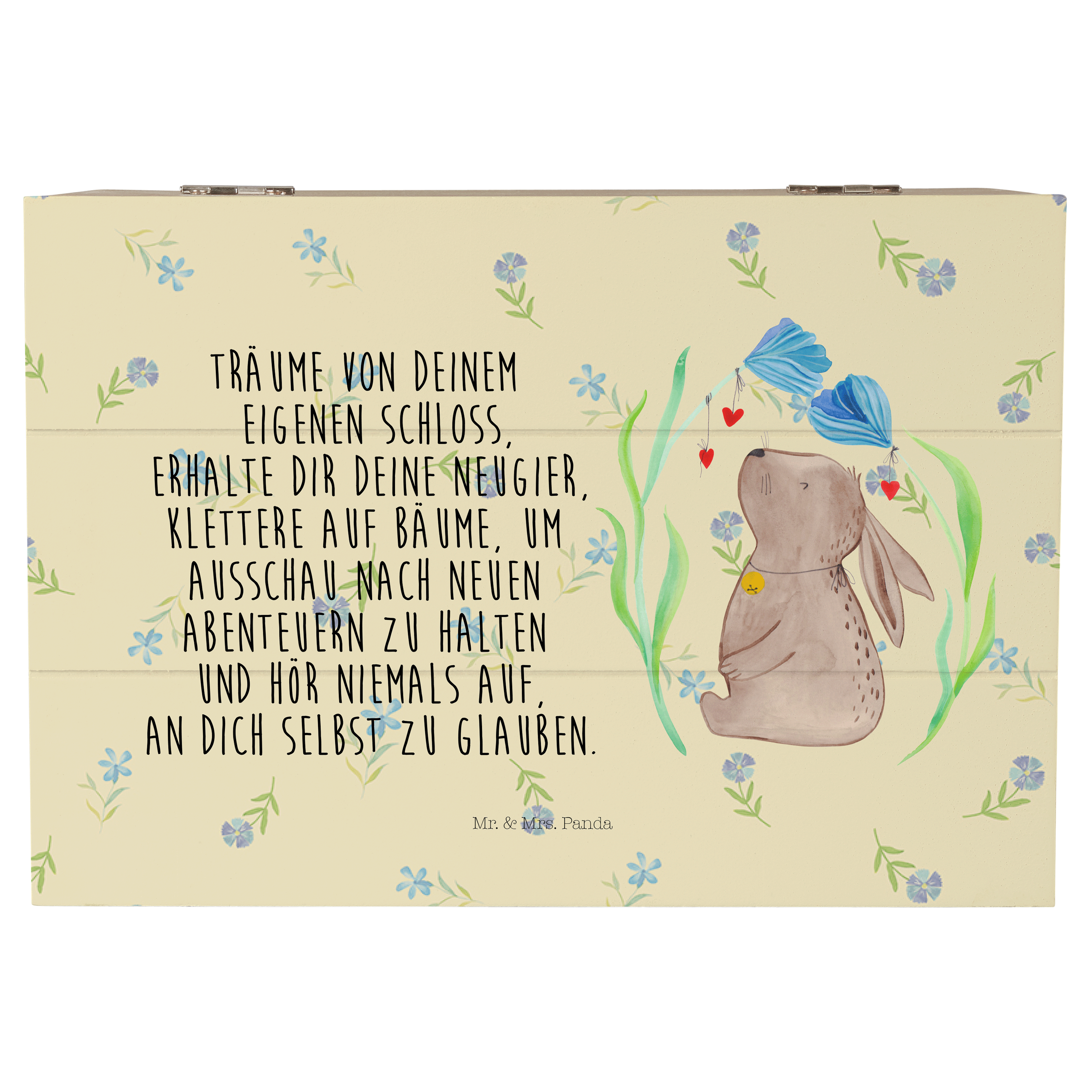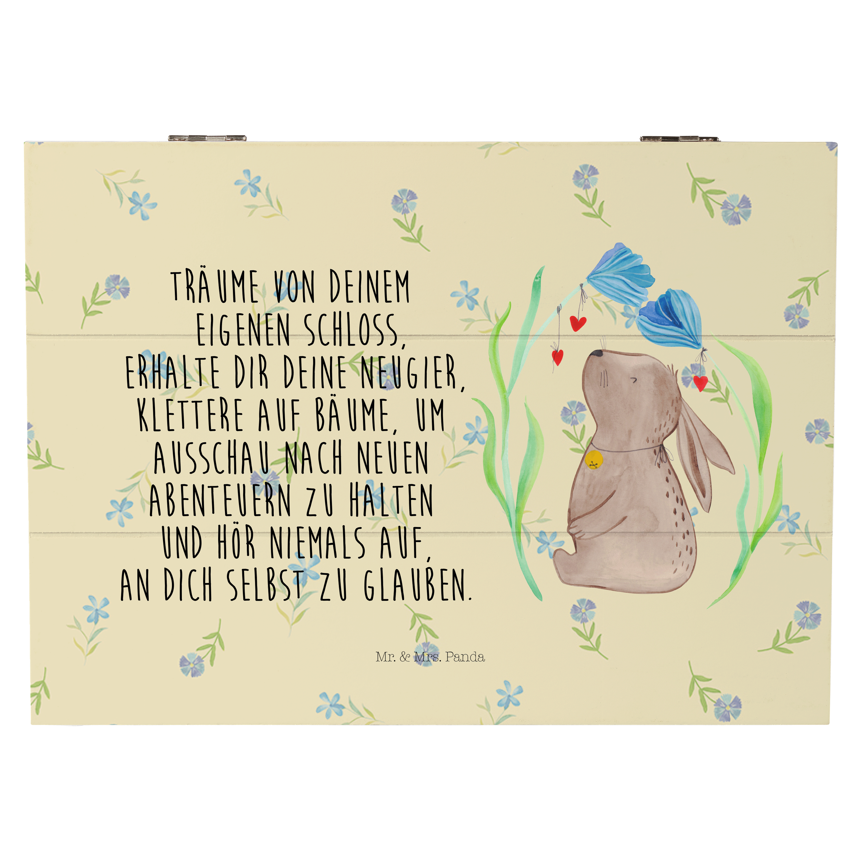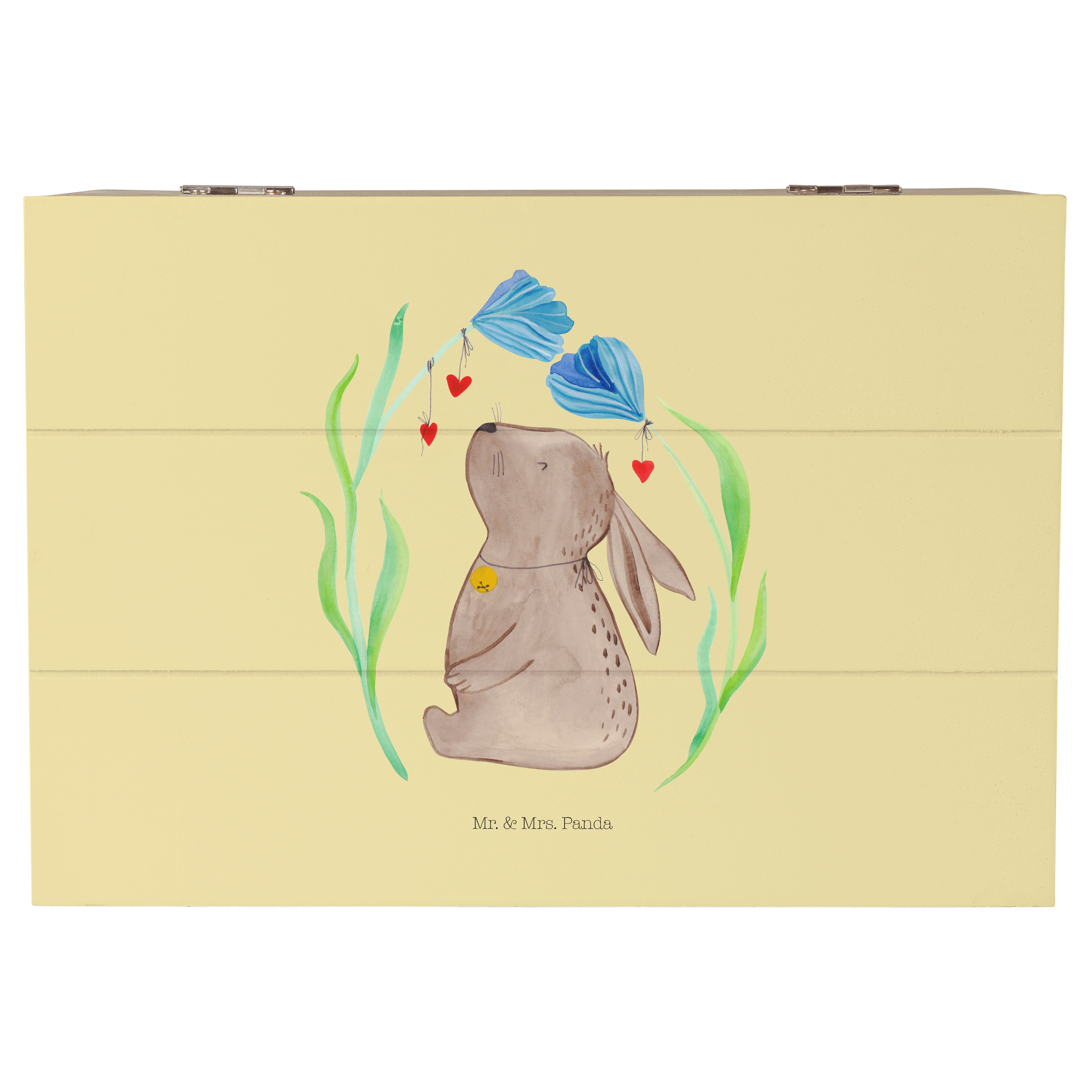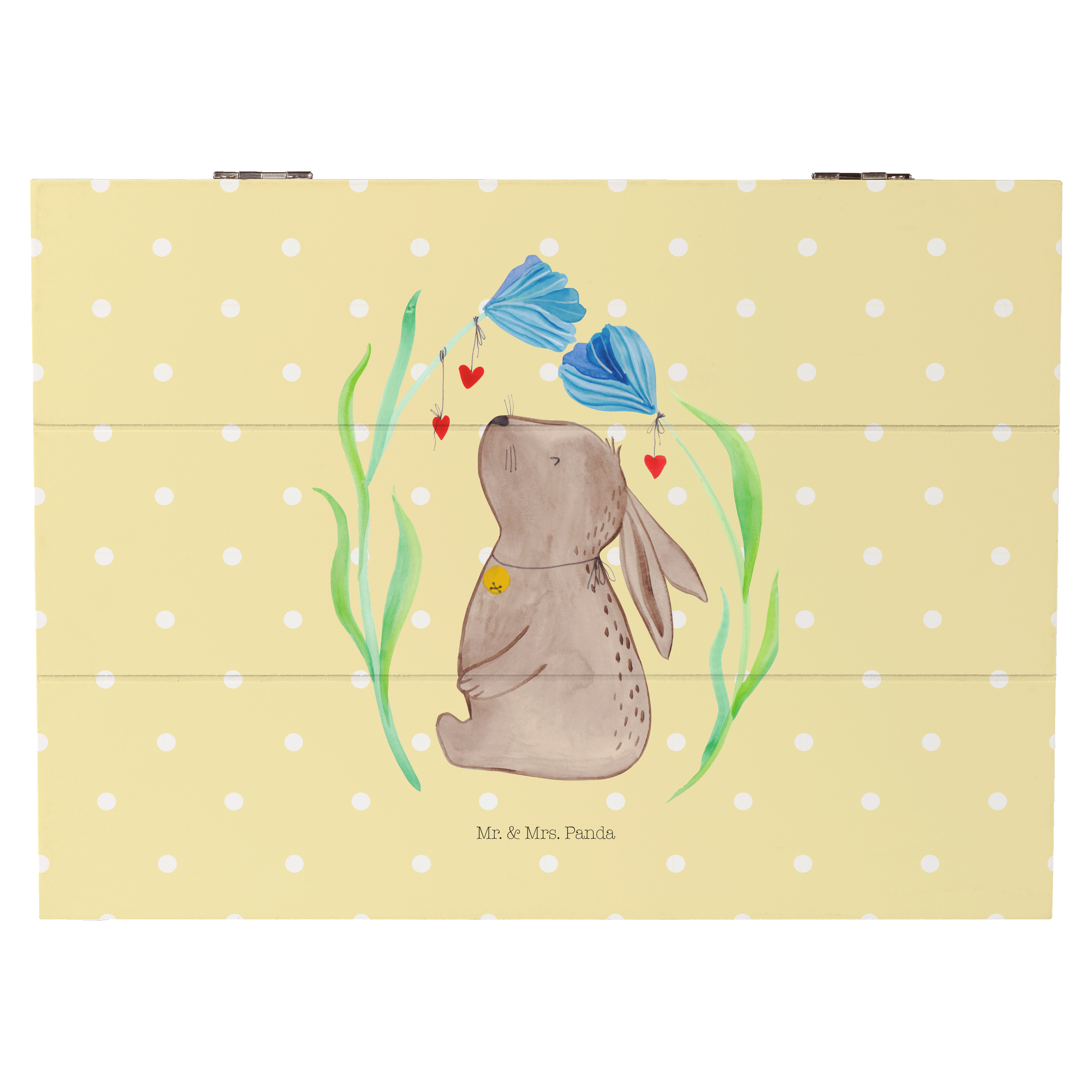Glöckchenklingelnd hüpft Hase Blume durch die bunten Blumenwiesen. Ob zum Frühlingserwachen oder als Oster-Dekoration - mit ihm holst du dir eine fröhliche Stimmung in dein Zuhause. Das Motiv von Mr. & Mrs. Panda inspiriert dich bei jeder Betrachtung dazu, deine unbeschwerte und verspielte Seite zu zeigen.