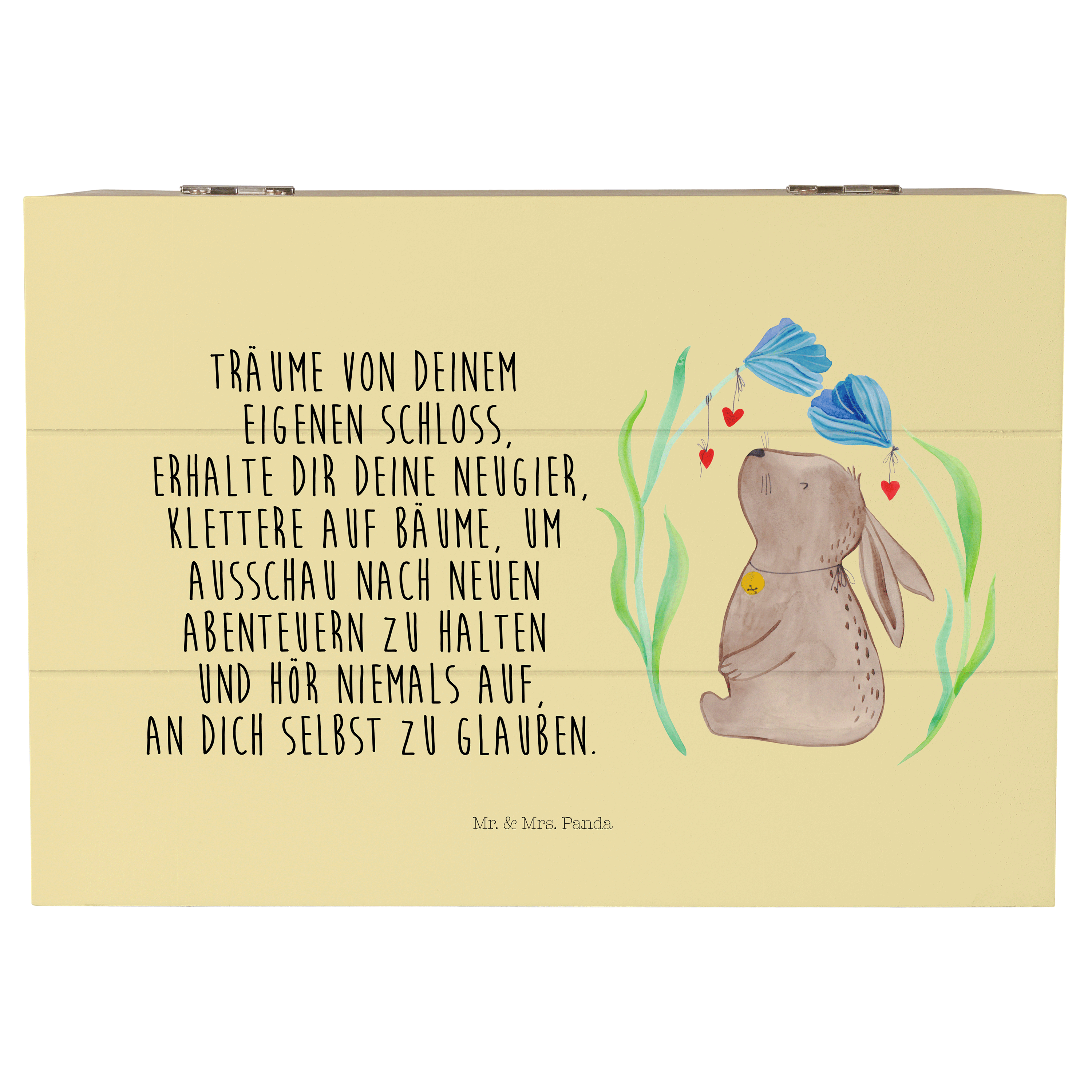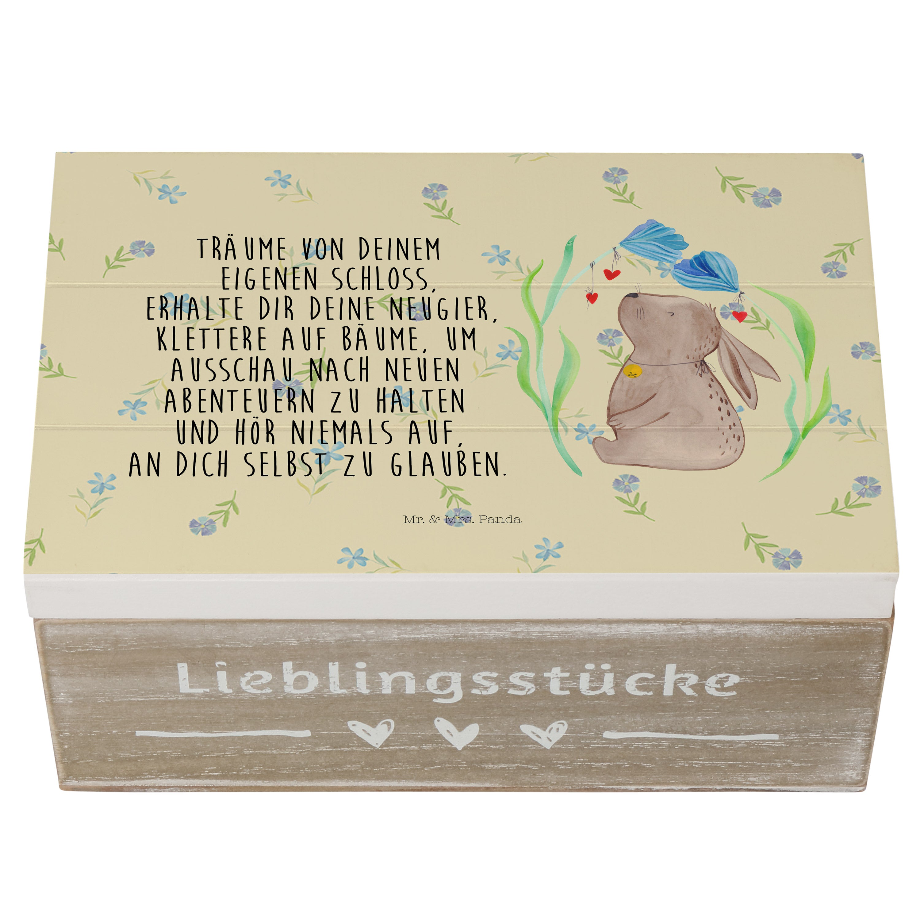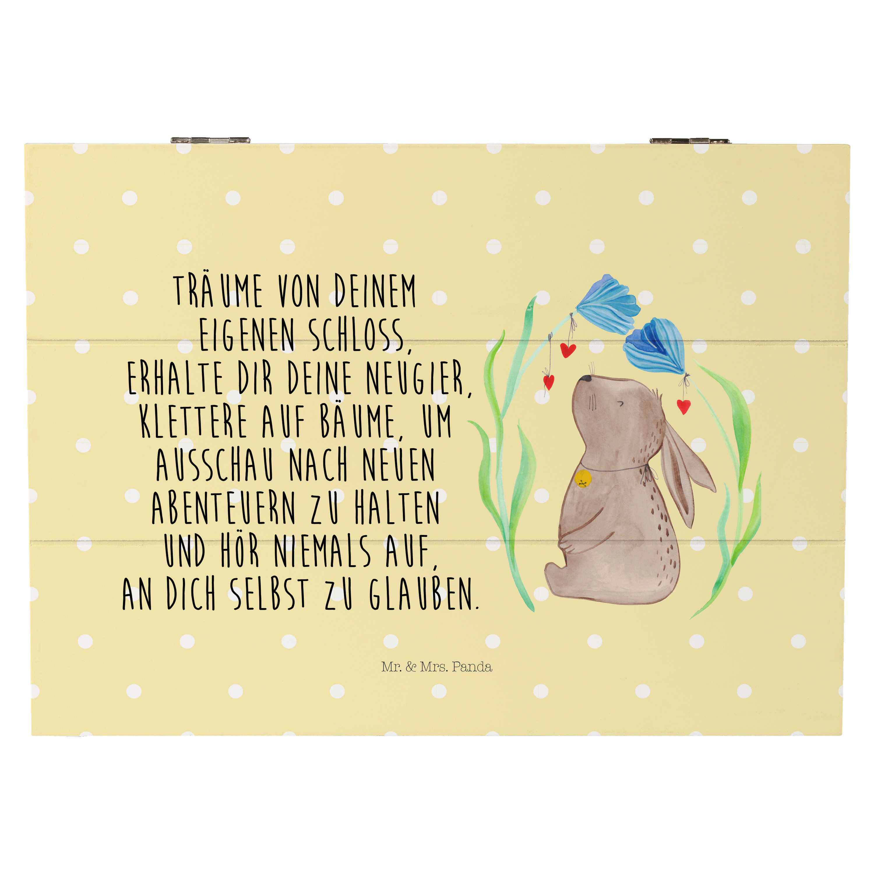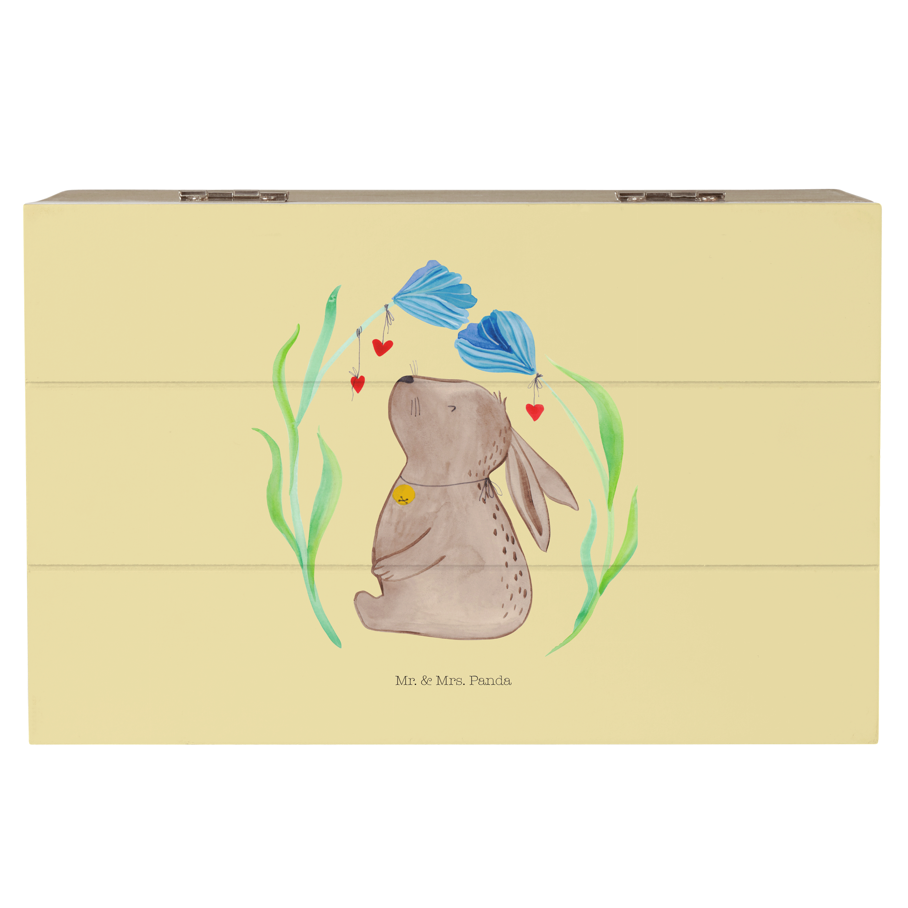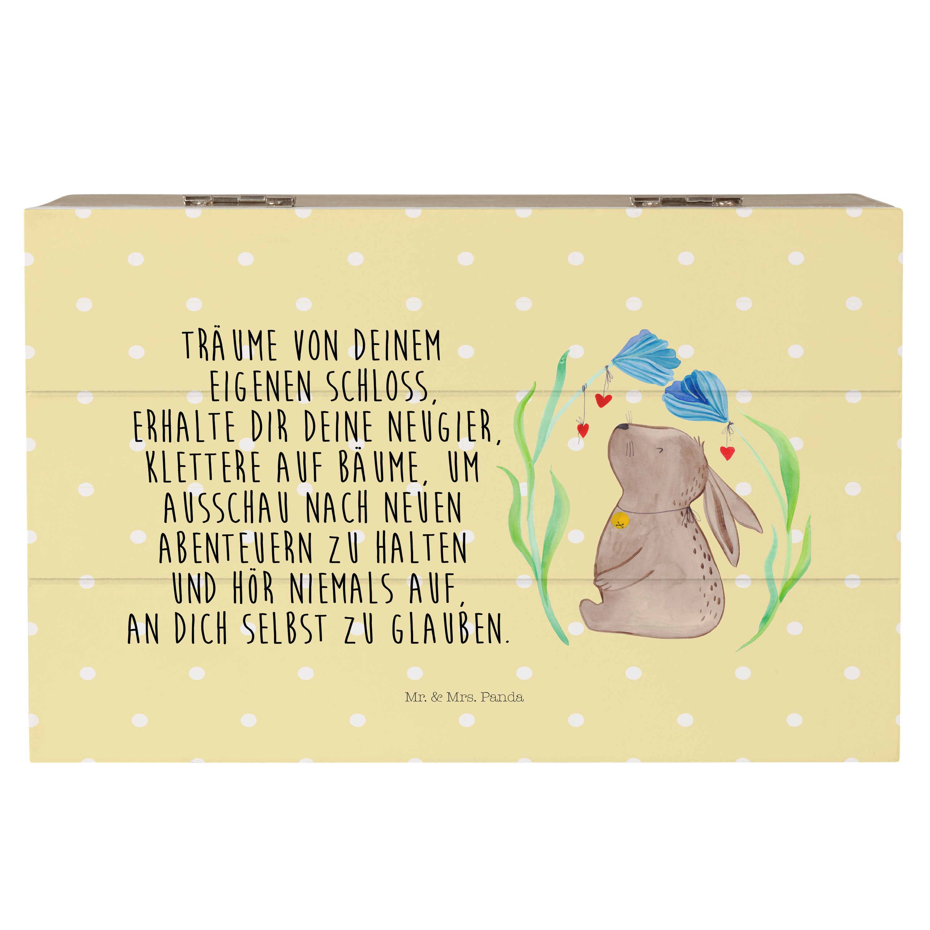 Glöckchenklingelnd hüpft Hase Blume durch die bunten Blumenwiesen. Ob zum Frühlingserwachen oder als Oster-Dekoration - mit ihm holst du dir eine fröhliche Stimmung in dein Zuhause. Das Motiv von Mr. & Mrs. Panda inspiriert dich bei jeder Betrachtung dazu, deine unbeschwerte und verspielte Seite zu zeigen.