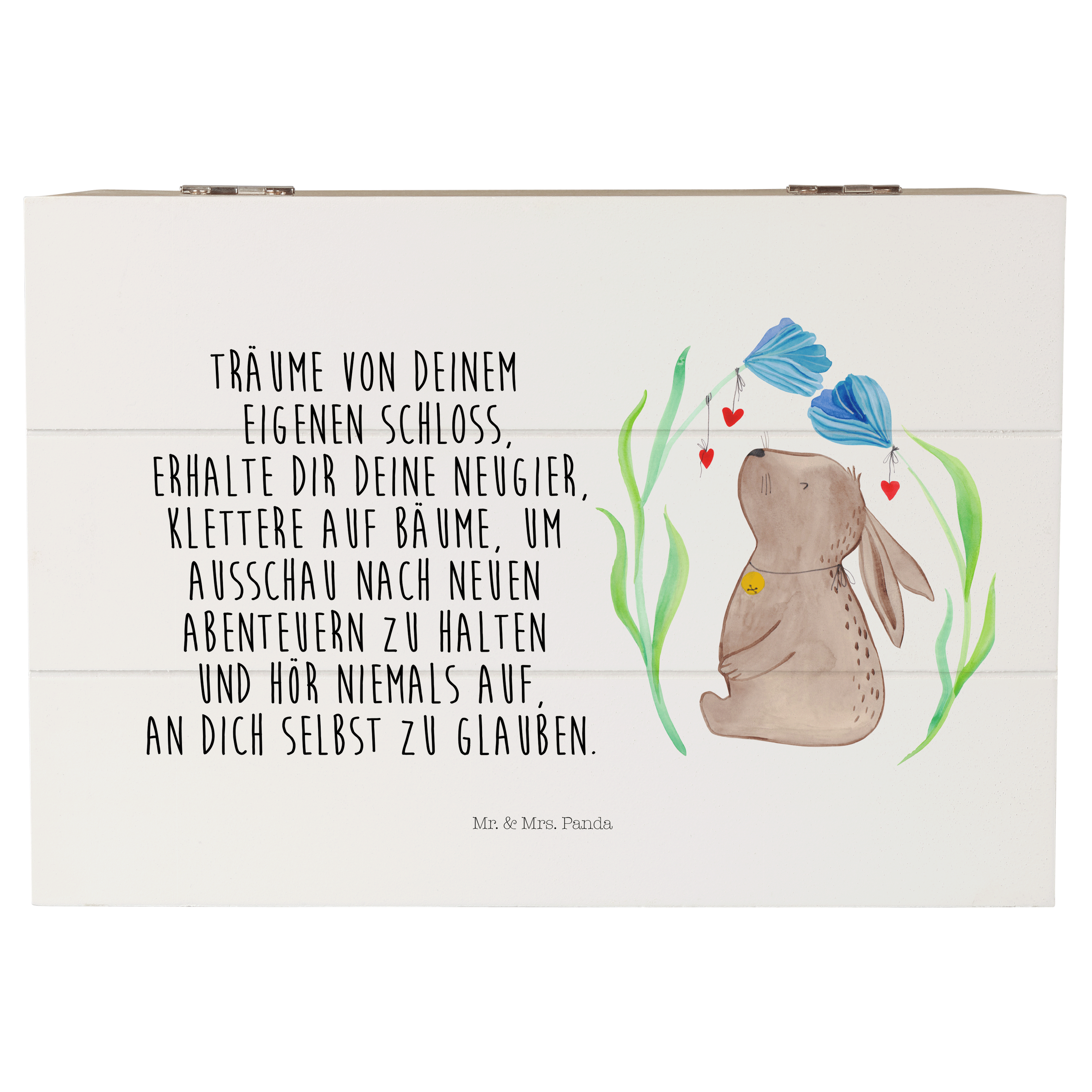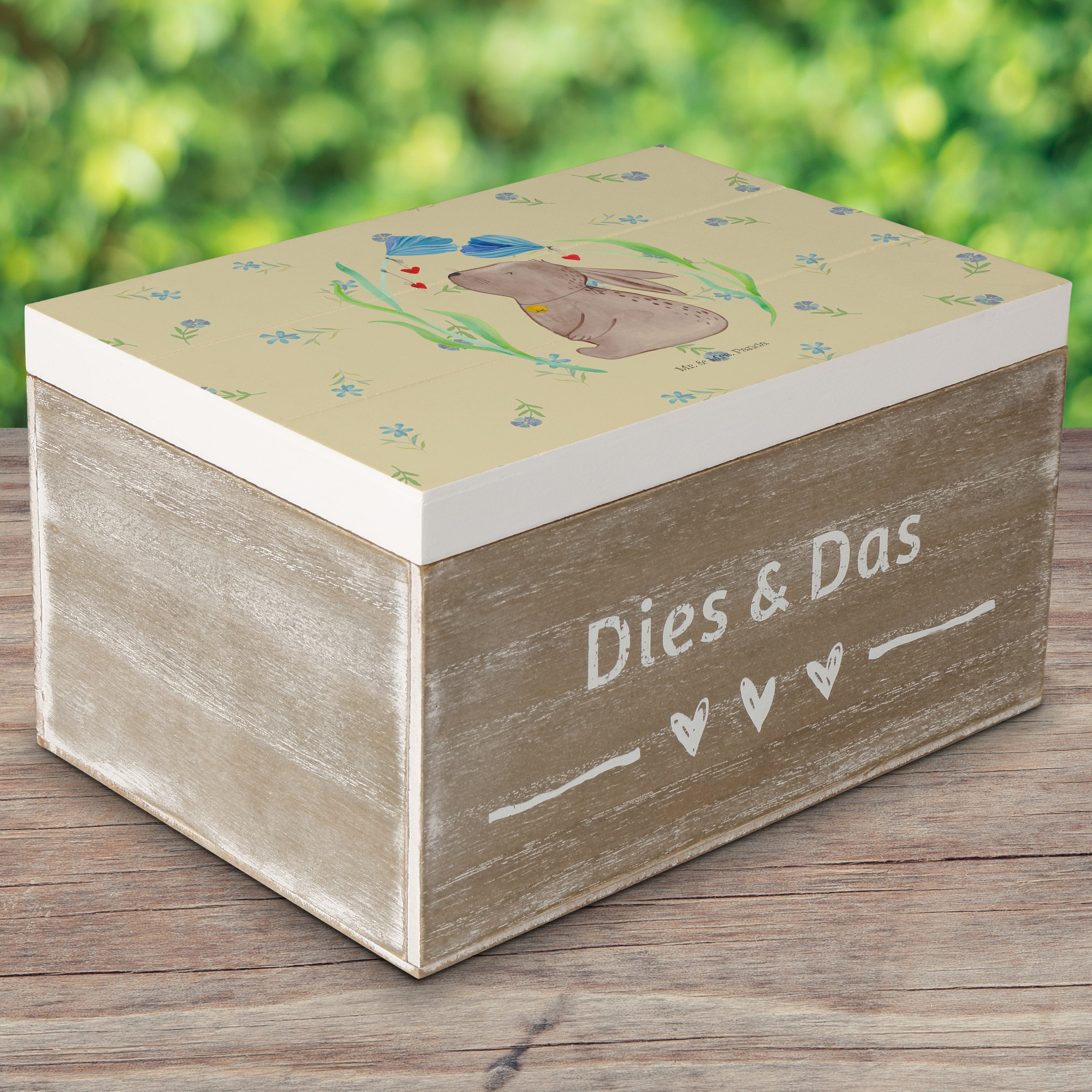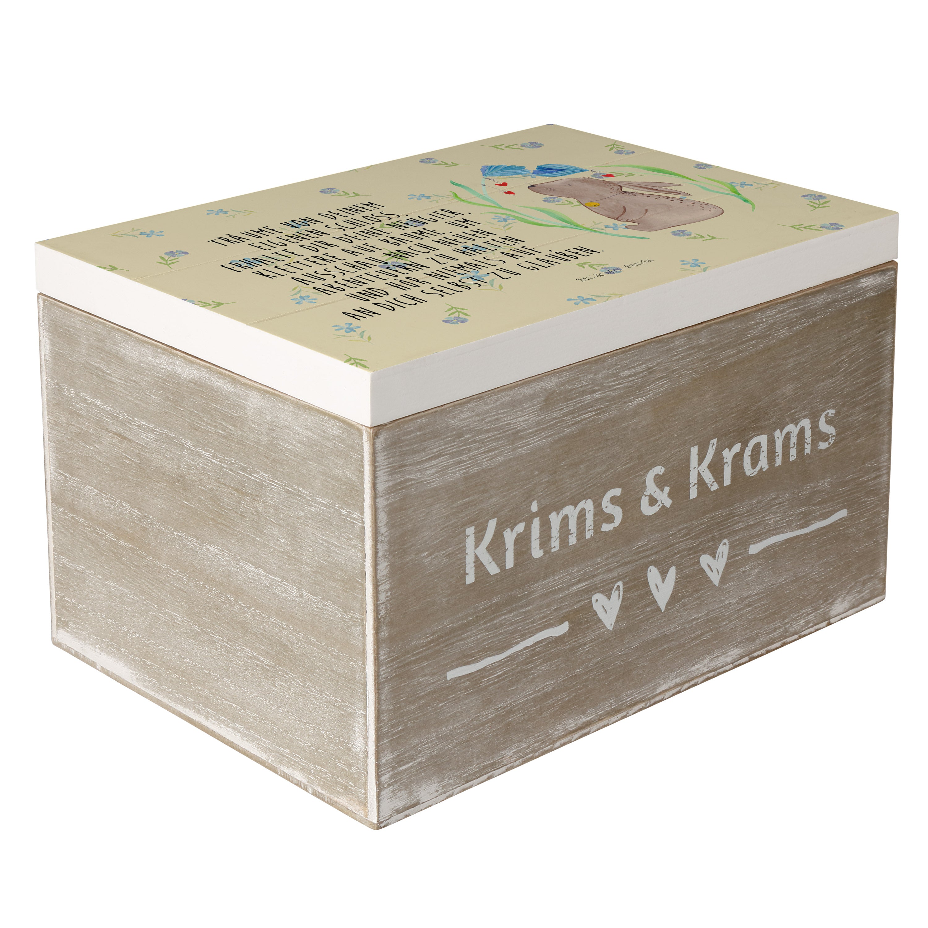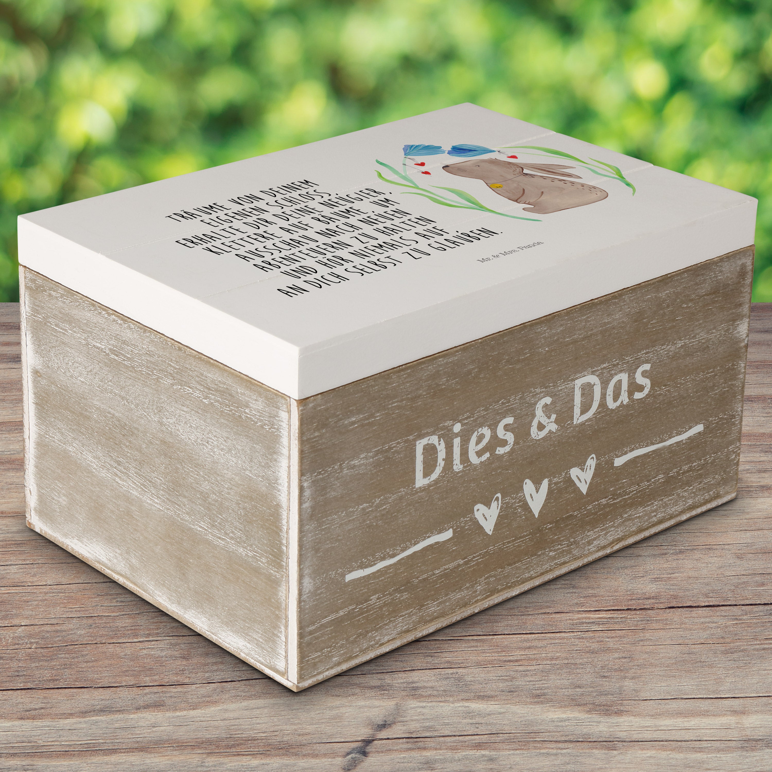 Holzkiste Hase Blume - 25 x 18 cm - mit Spruch - Weiß