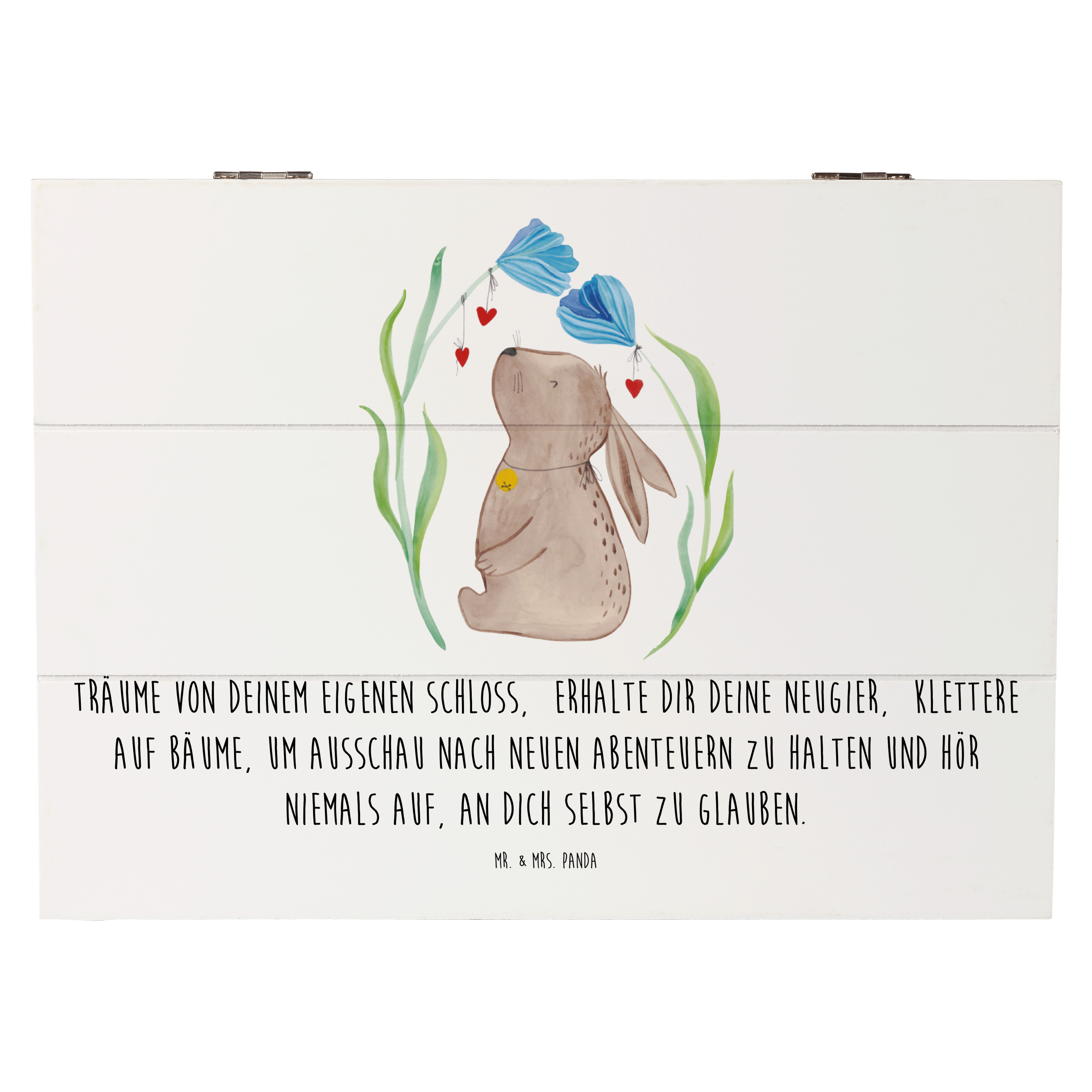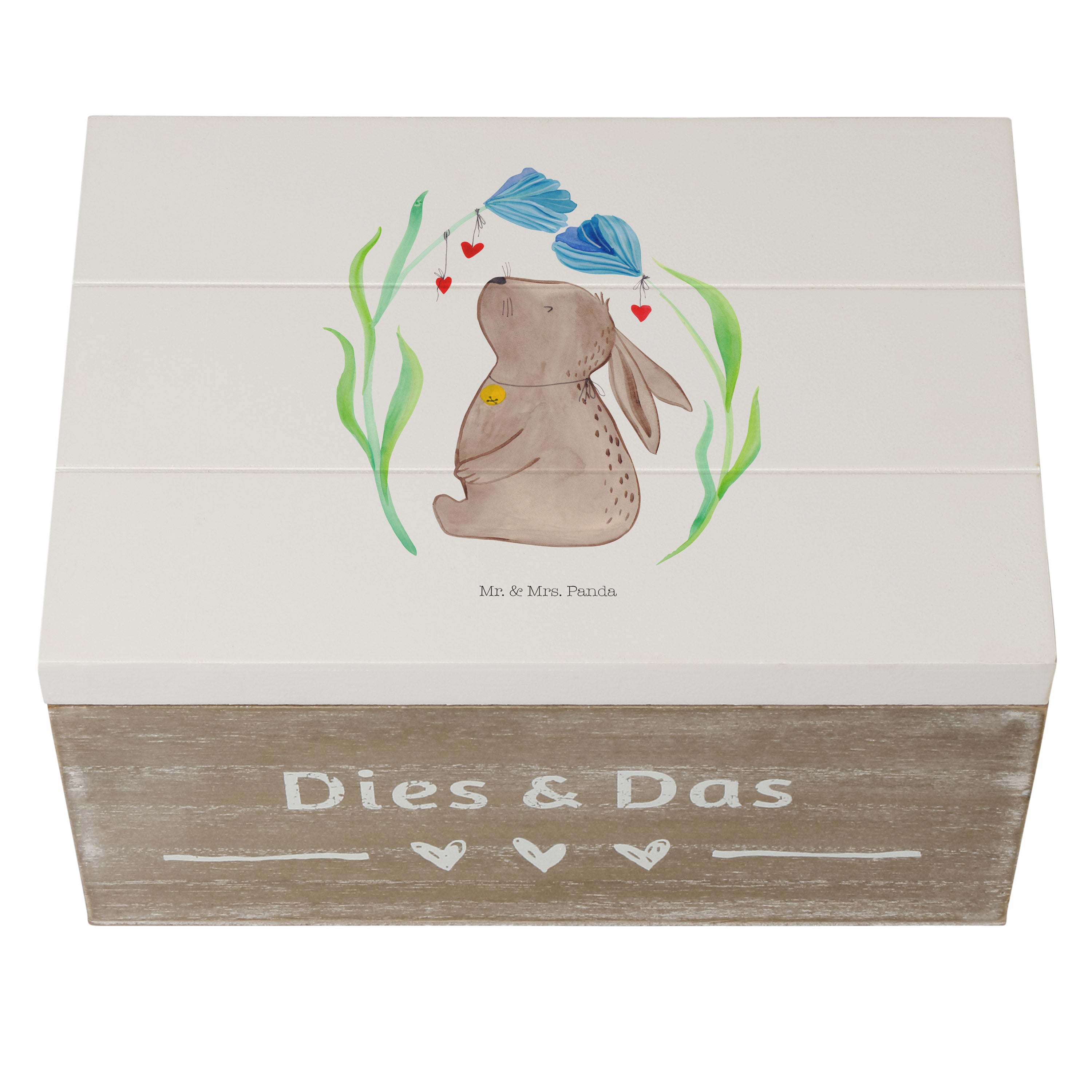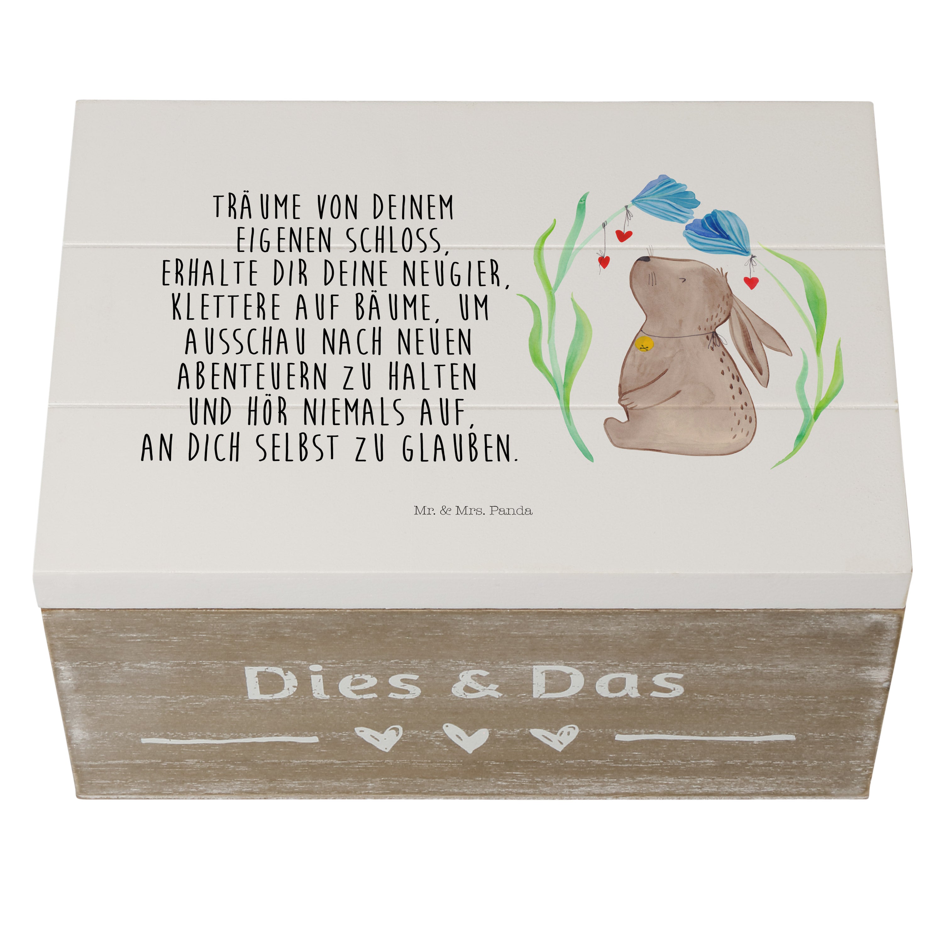 Holzkiste Hase Blume - 25 x 18 cm - mit Spruch - Weiß