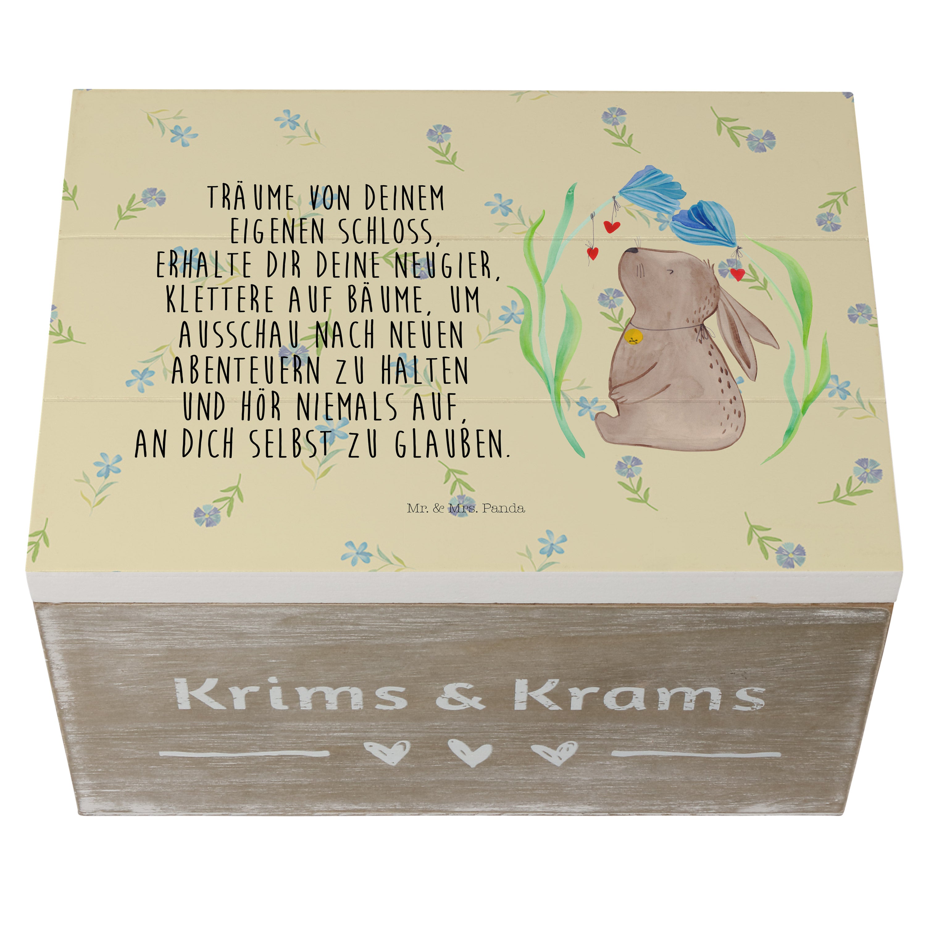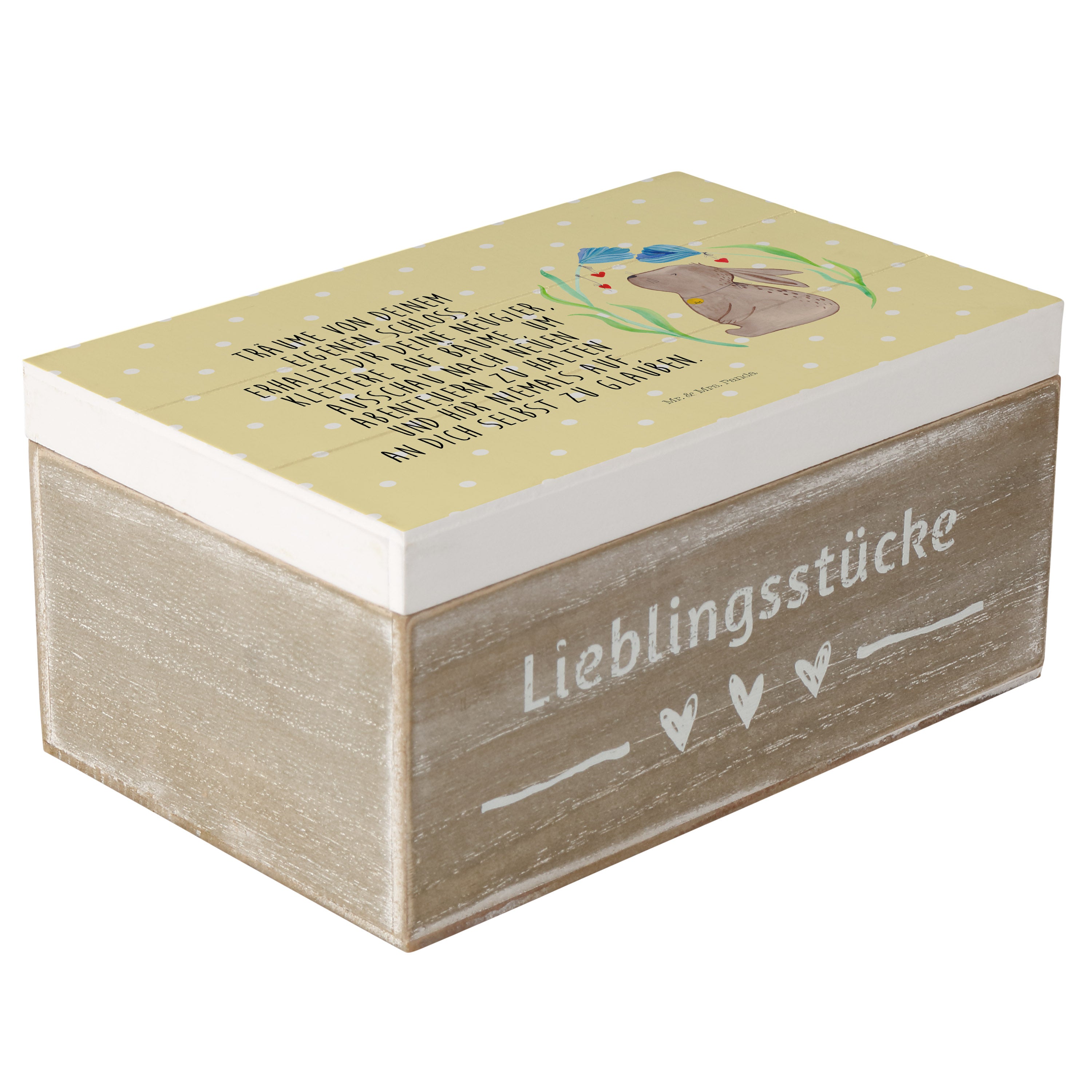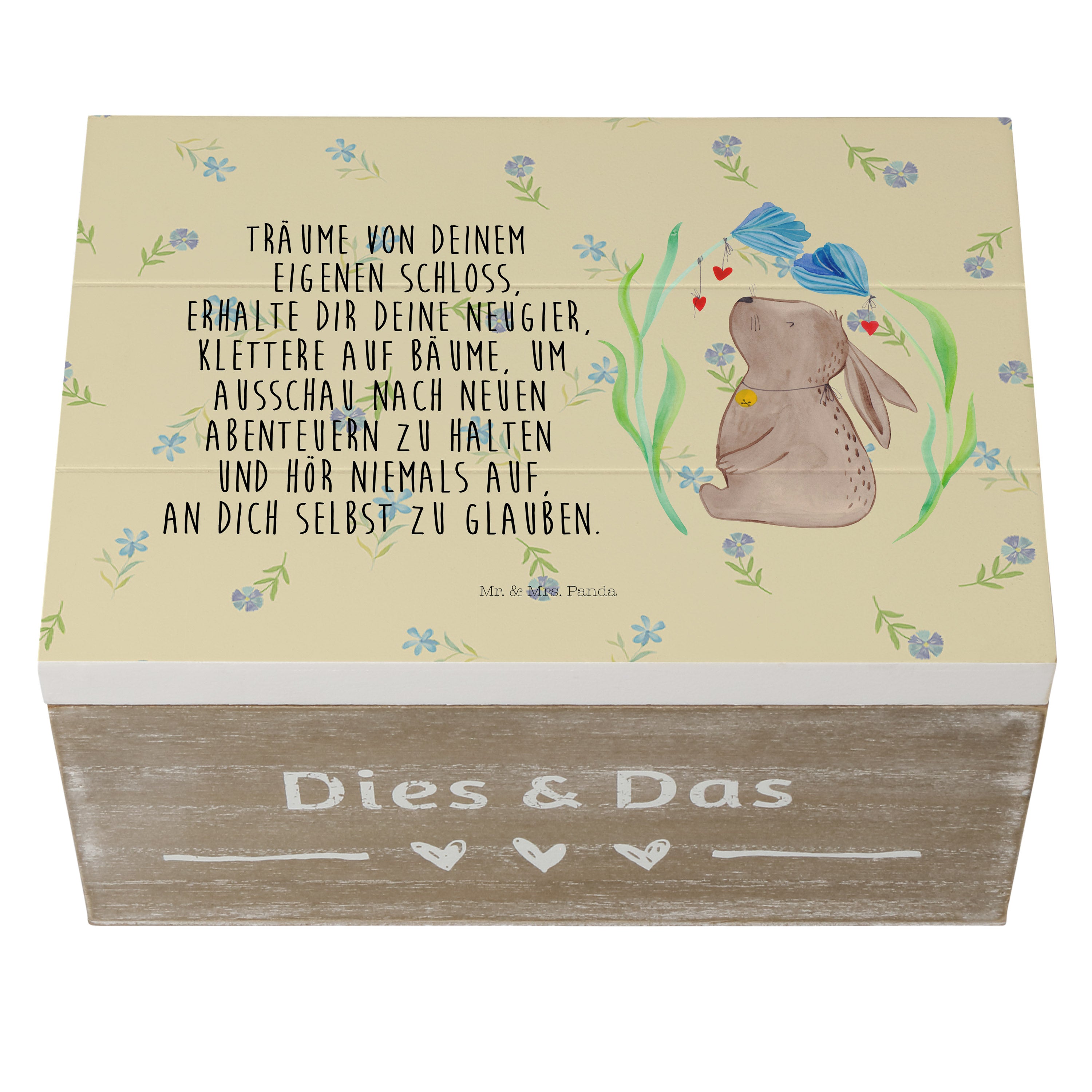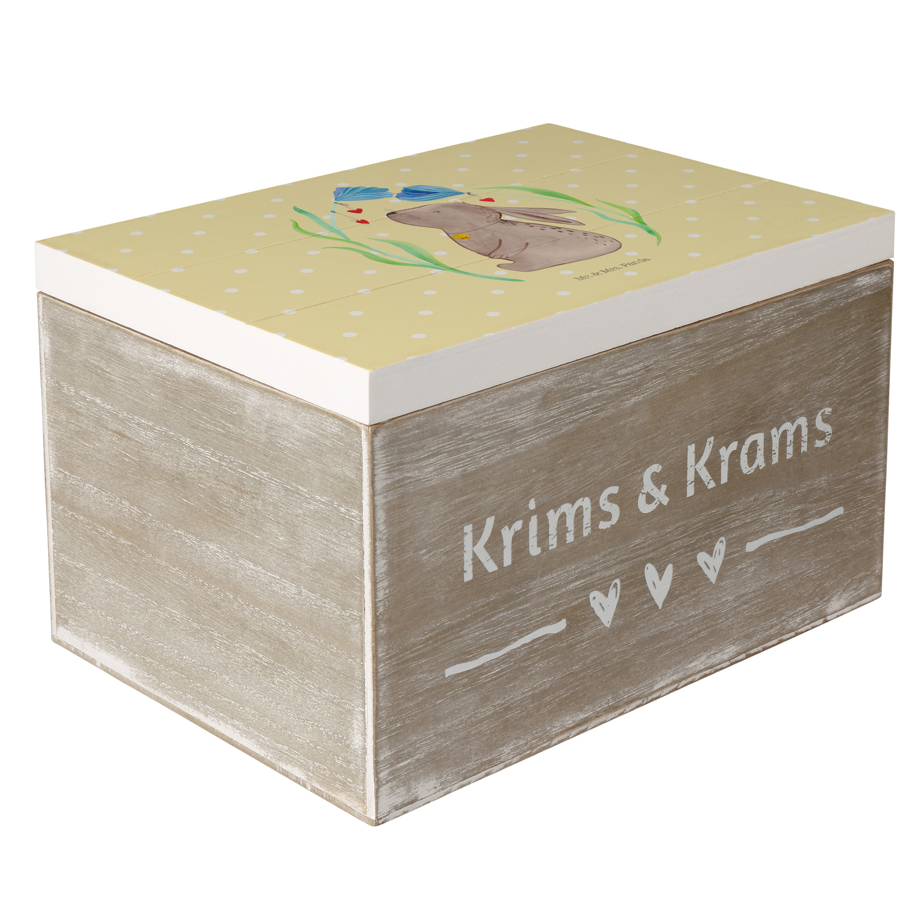 Holzkiste Hase Blume - 25 x 18 cm - mit Spruch - Weiß