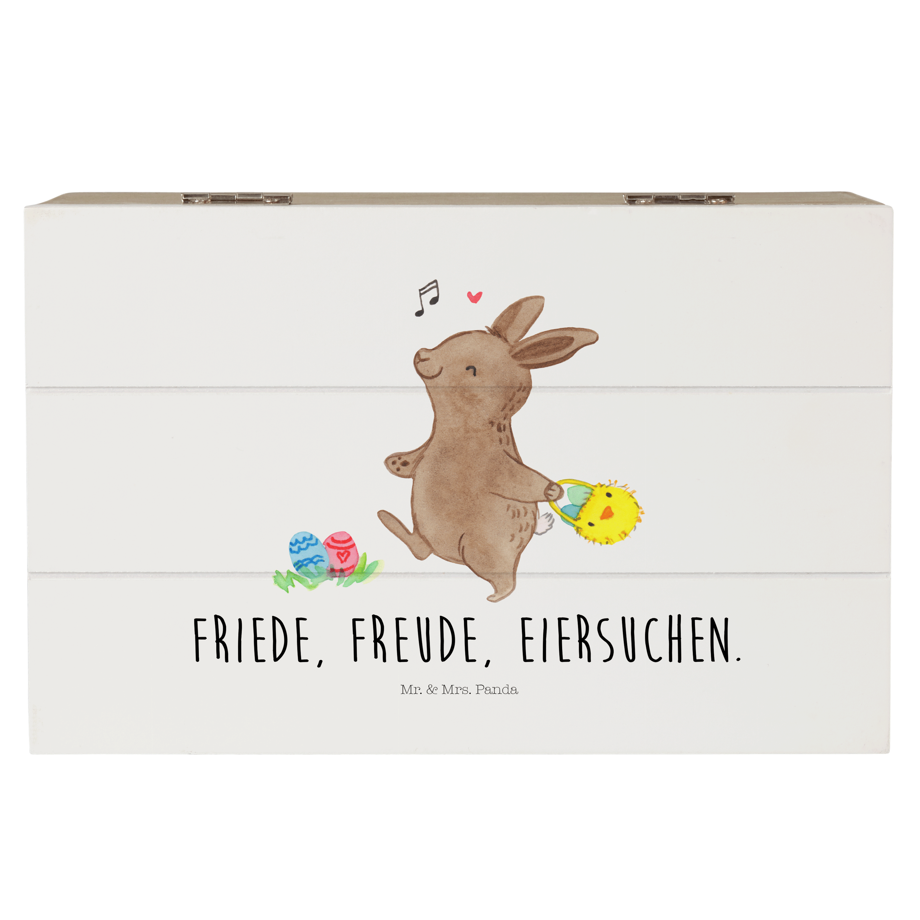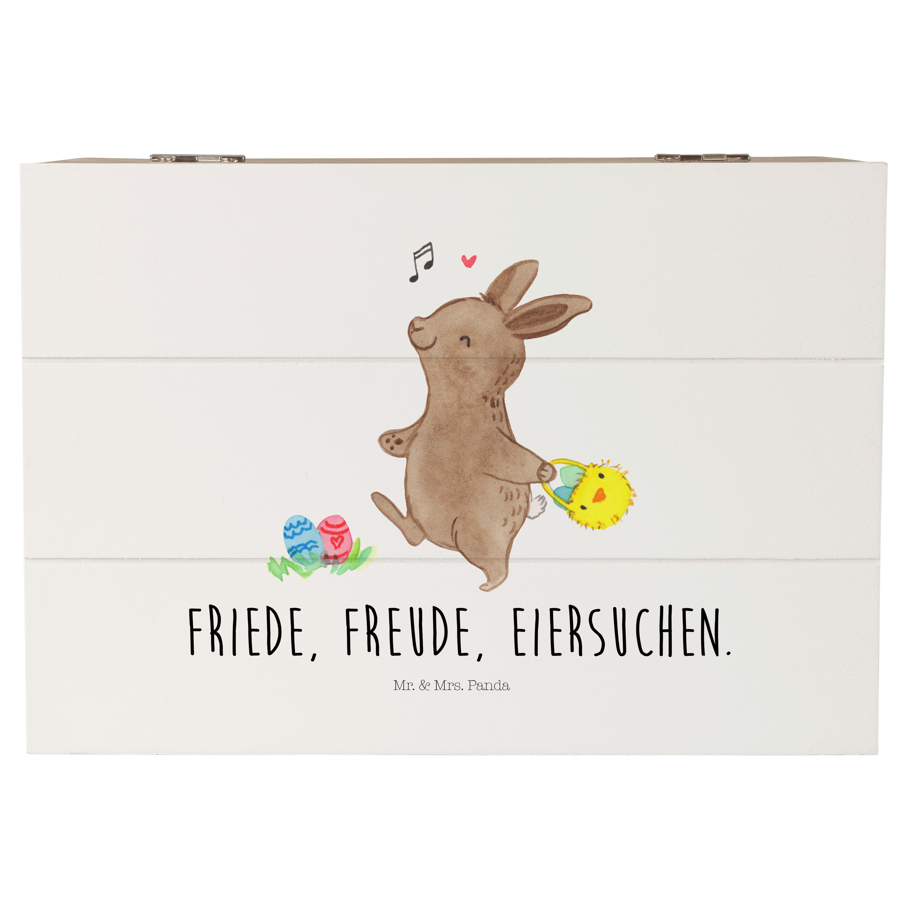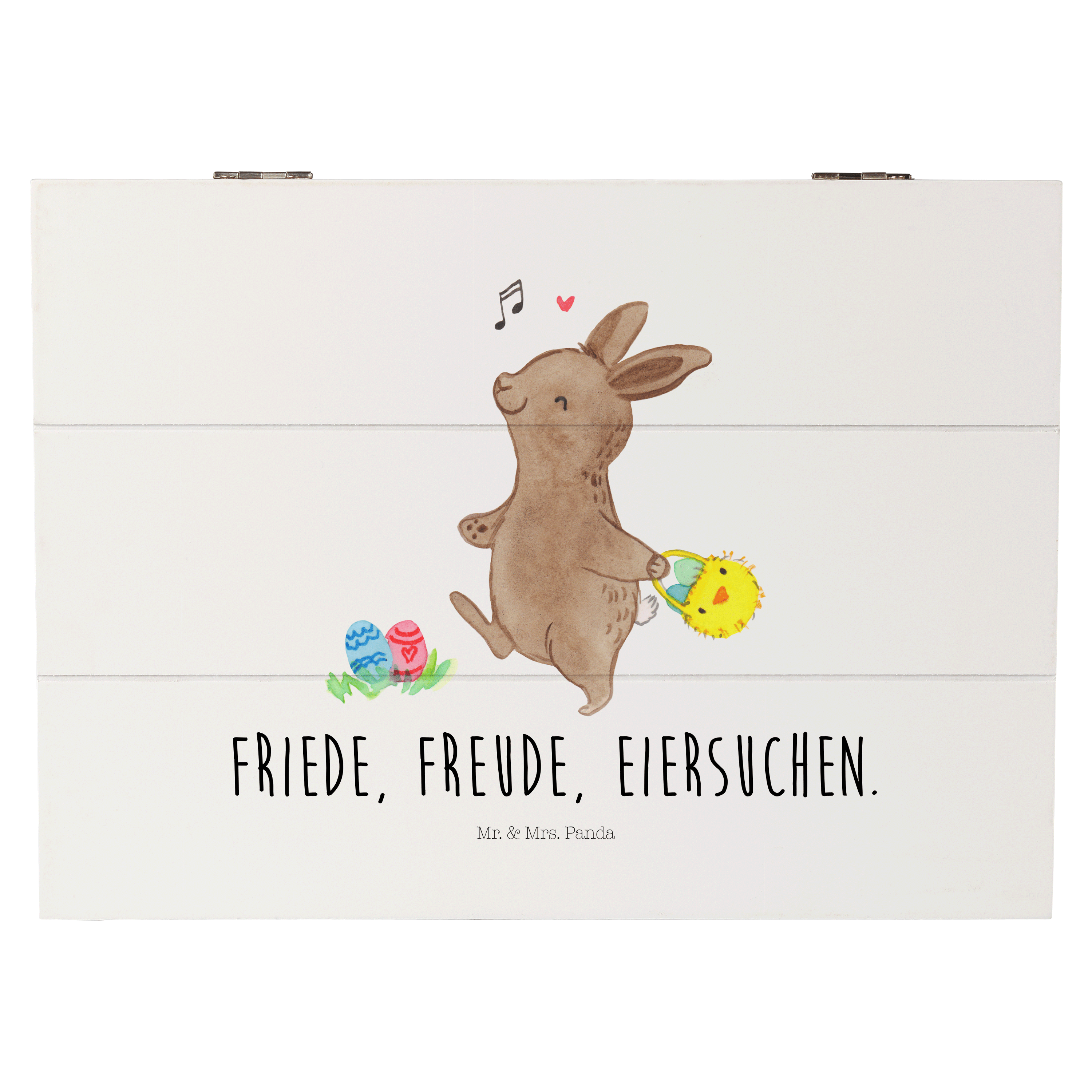 Holzkiste Hase Eiersuche - 25 x 18 cm - mit Spruch - Weiß