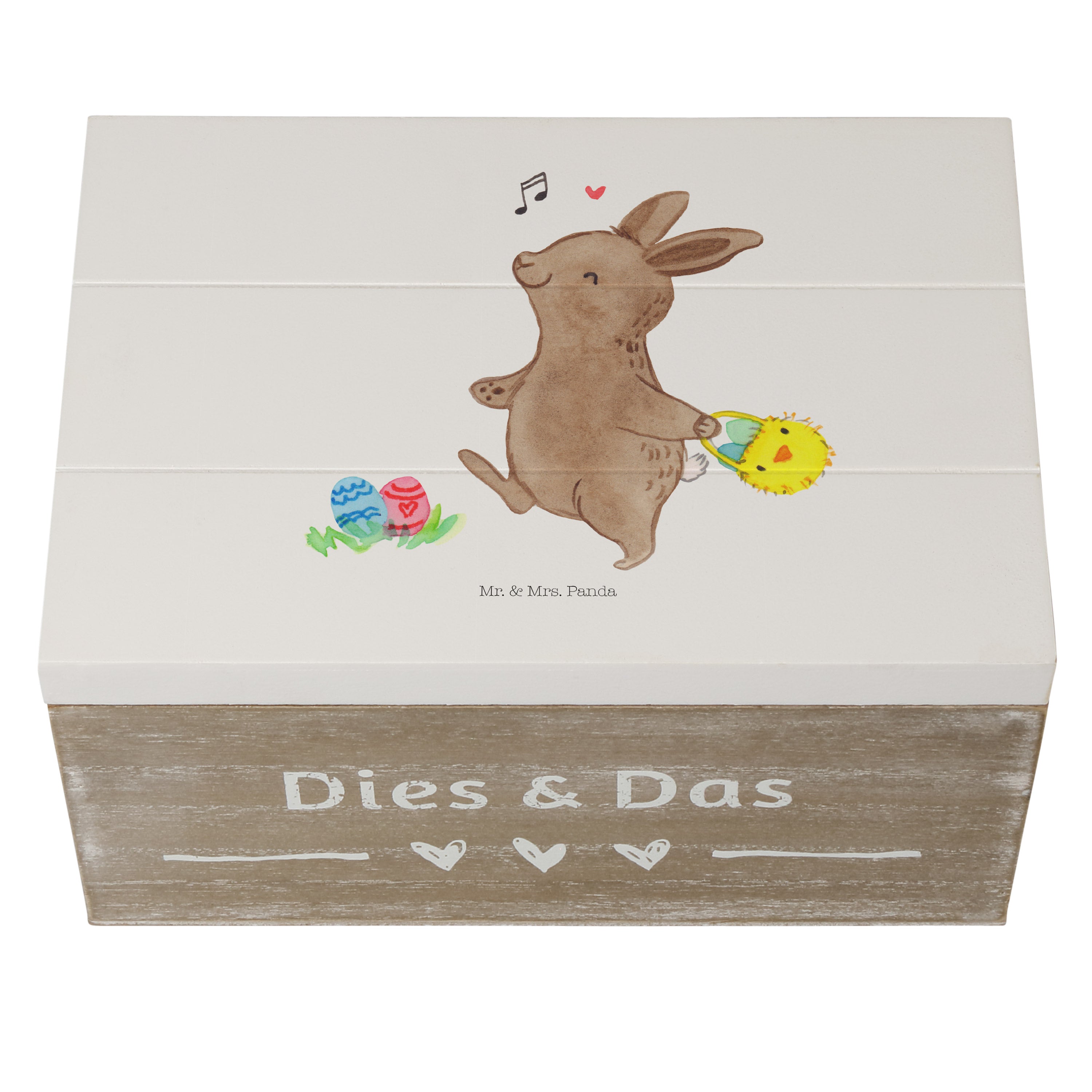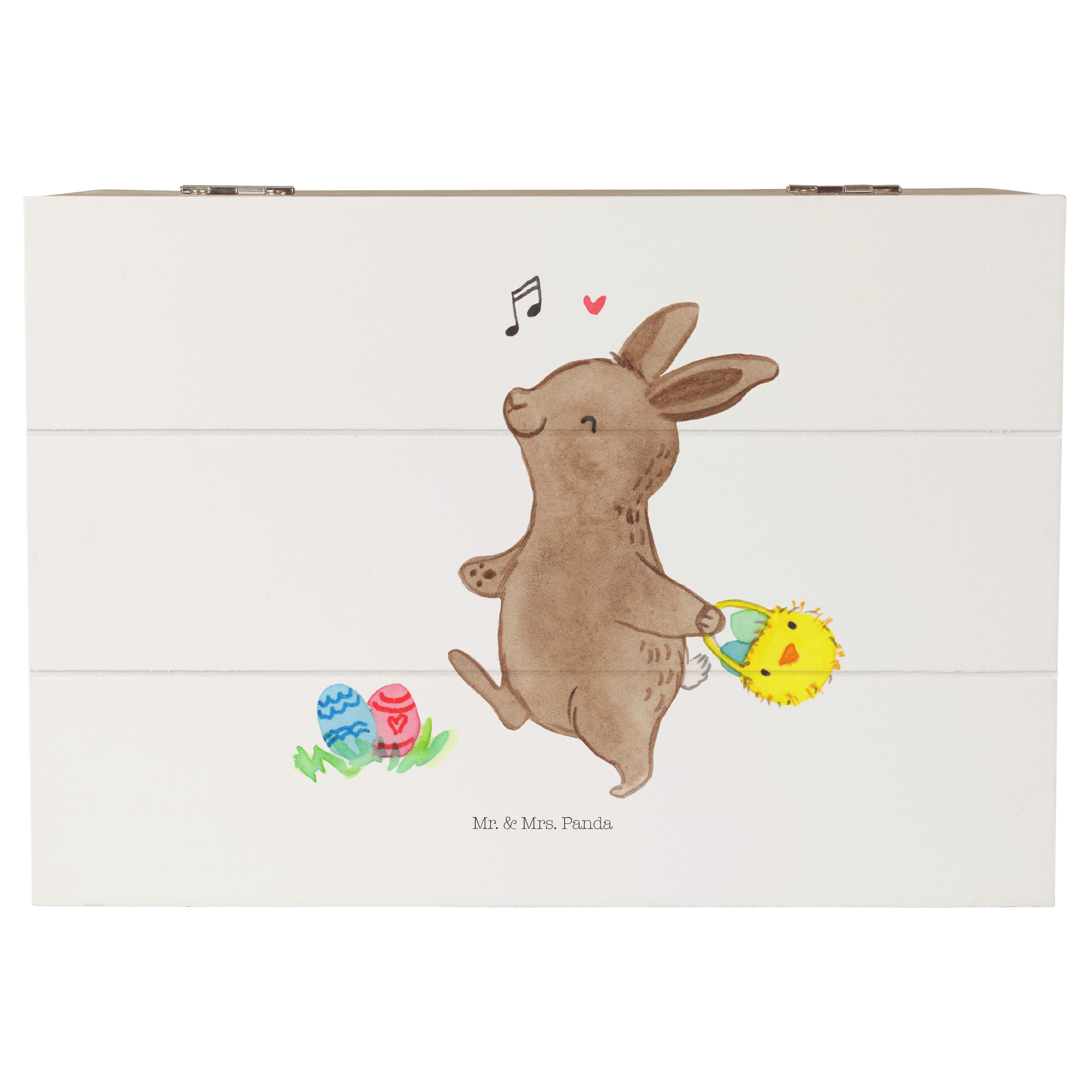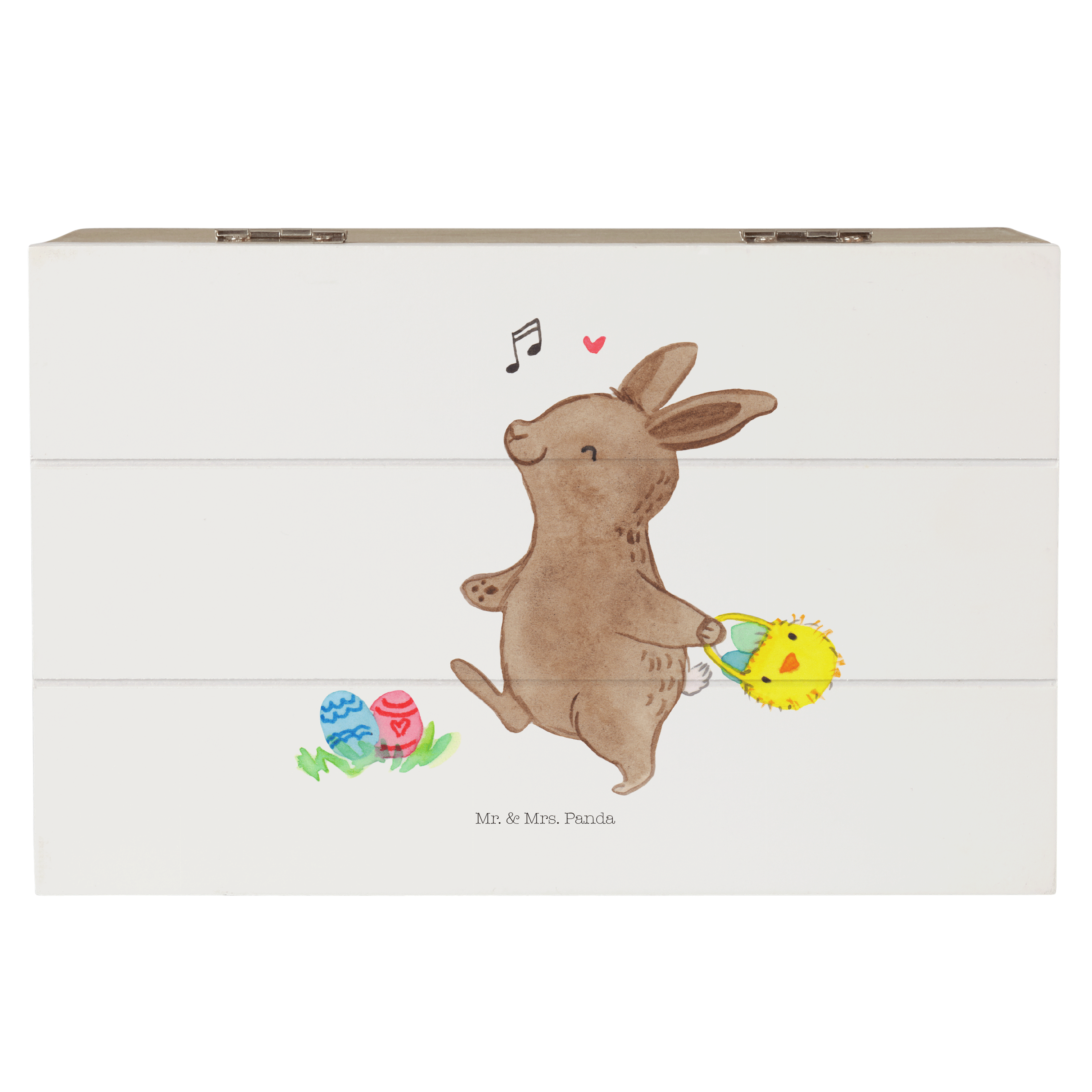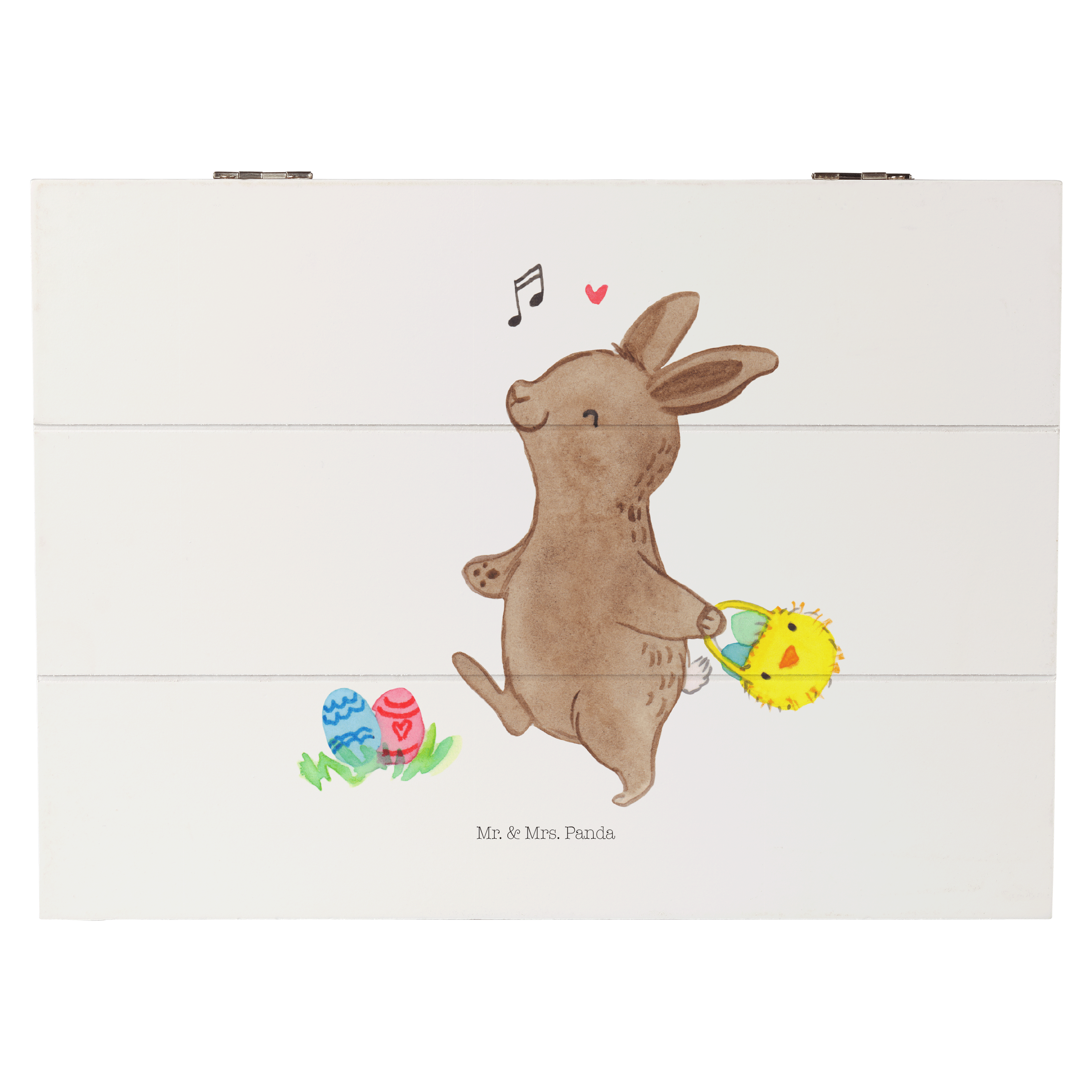 Holzkiste Hase Eiersuche - 25 x 18 cm - mit Spruch - Weiß