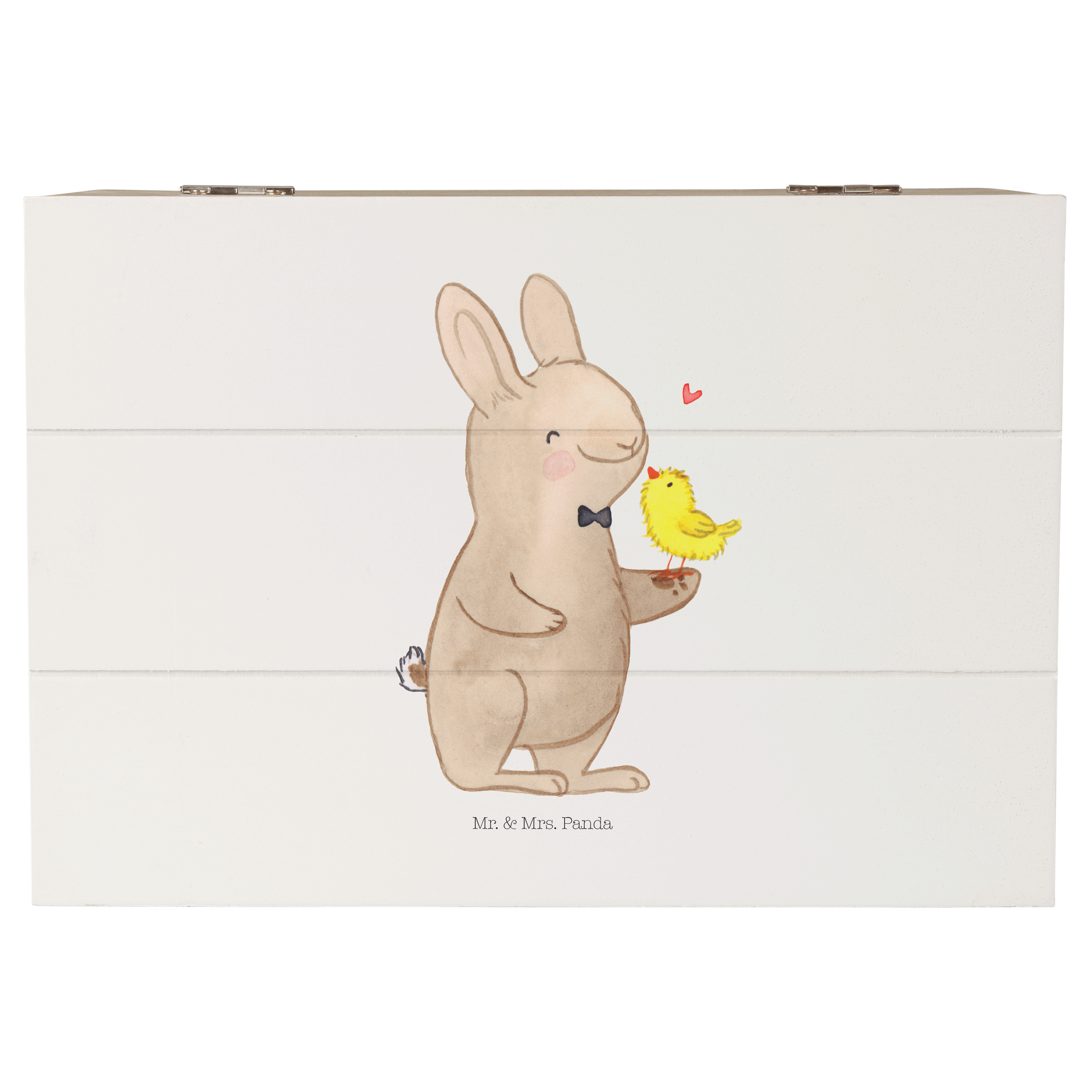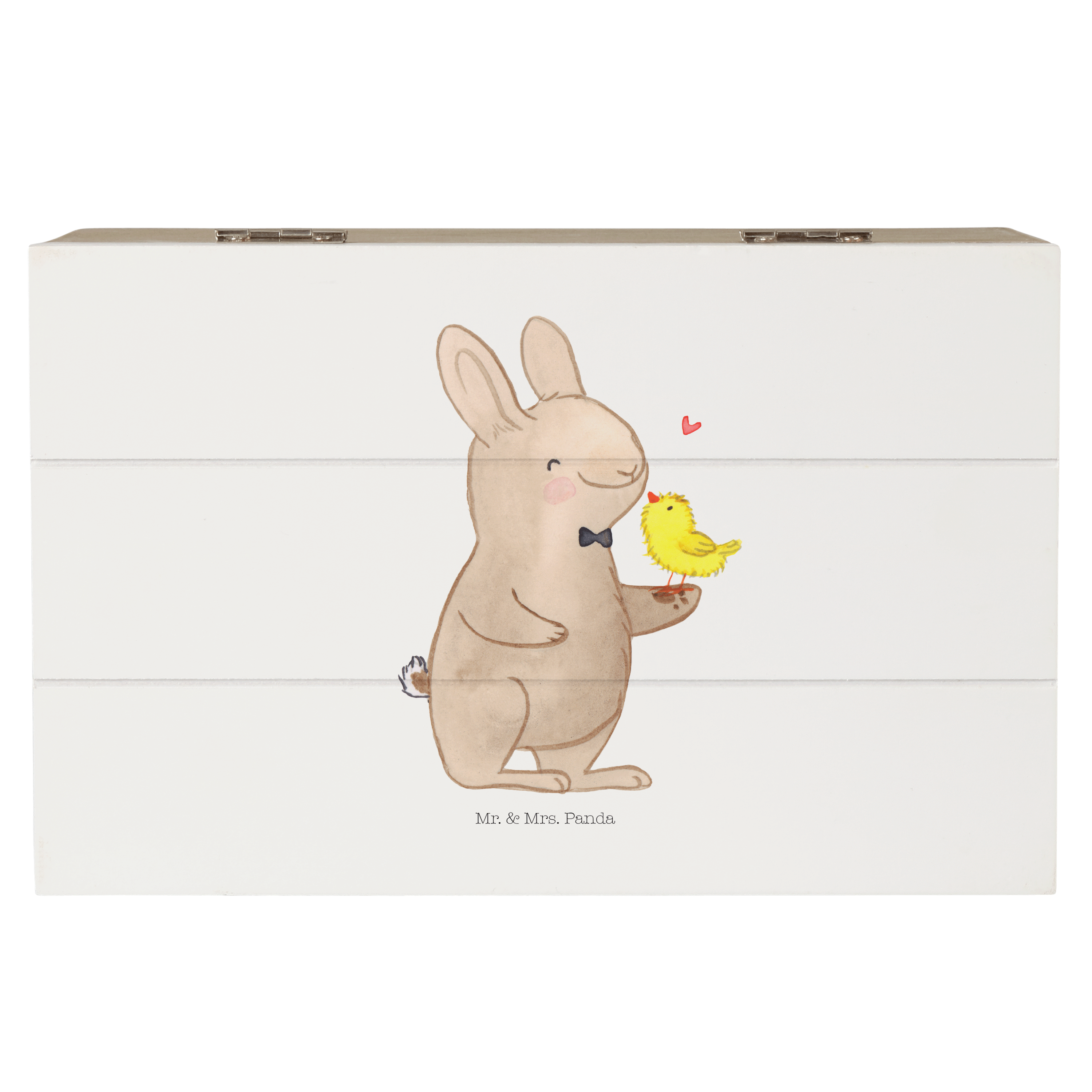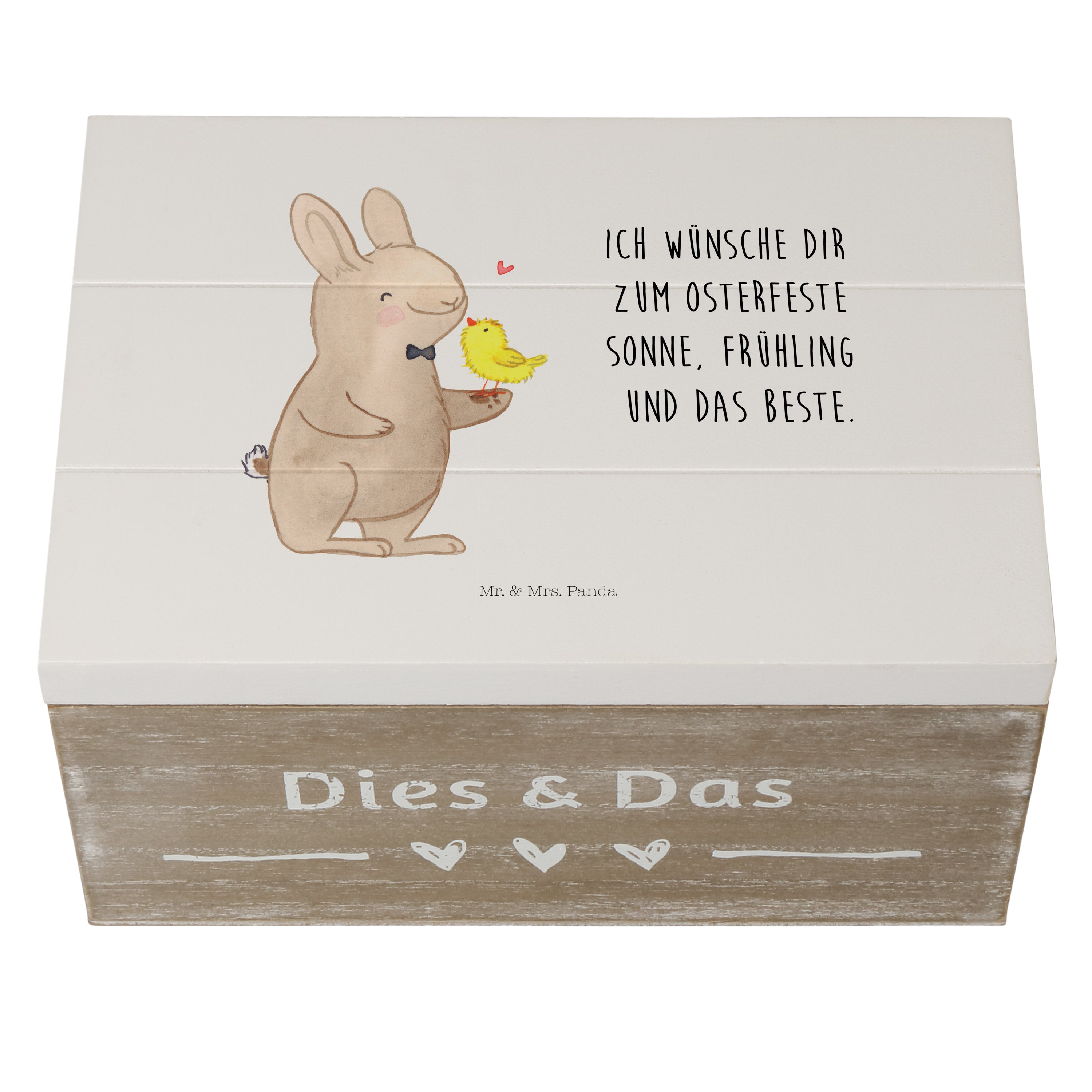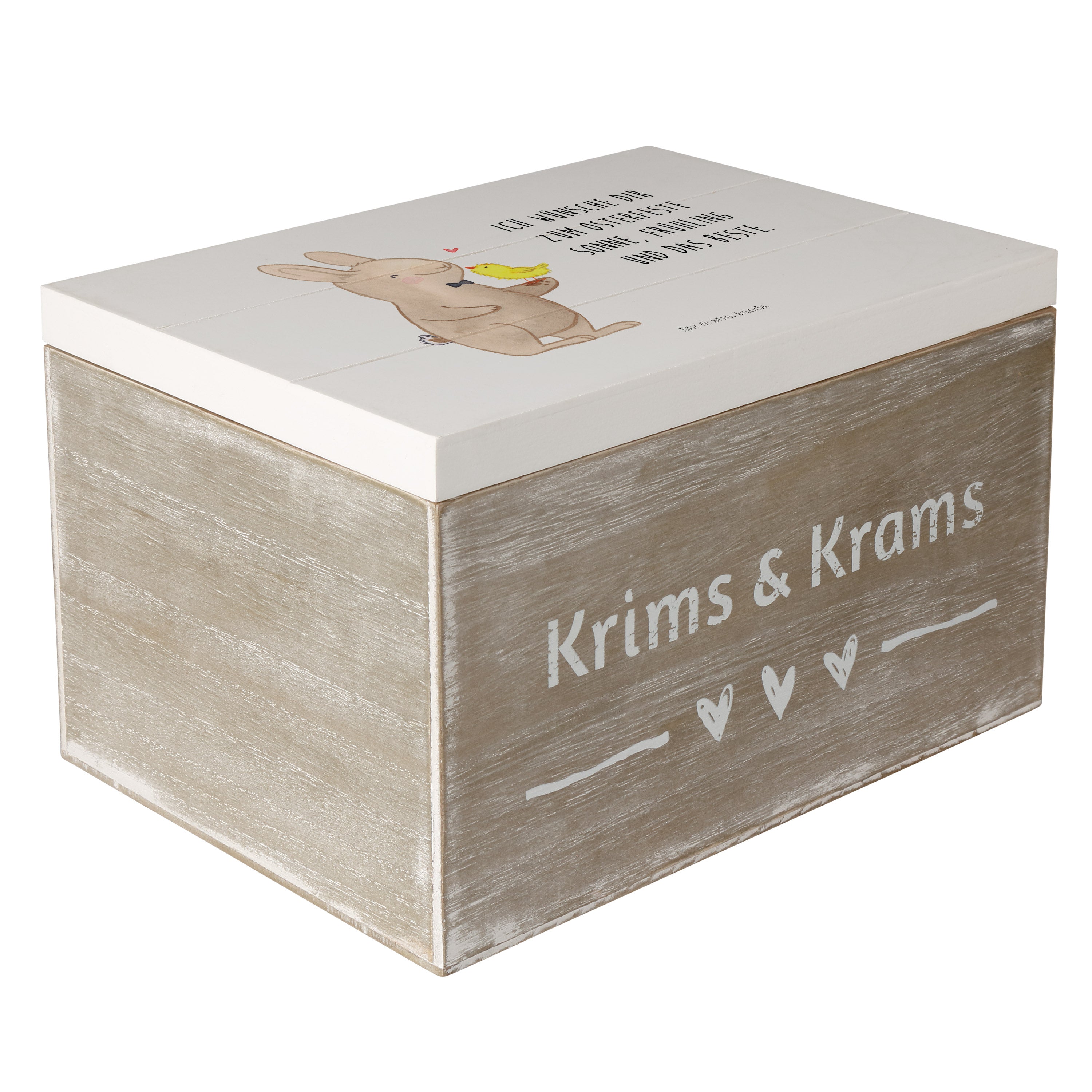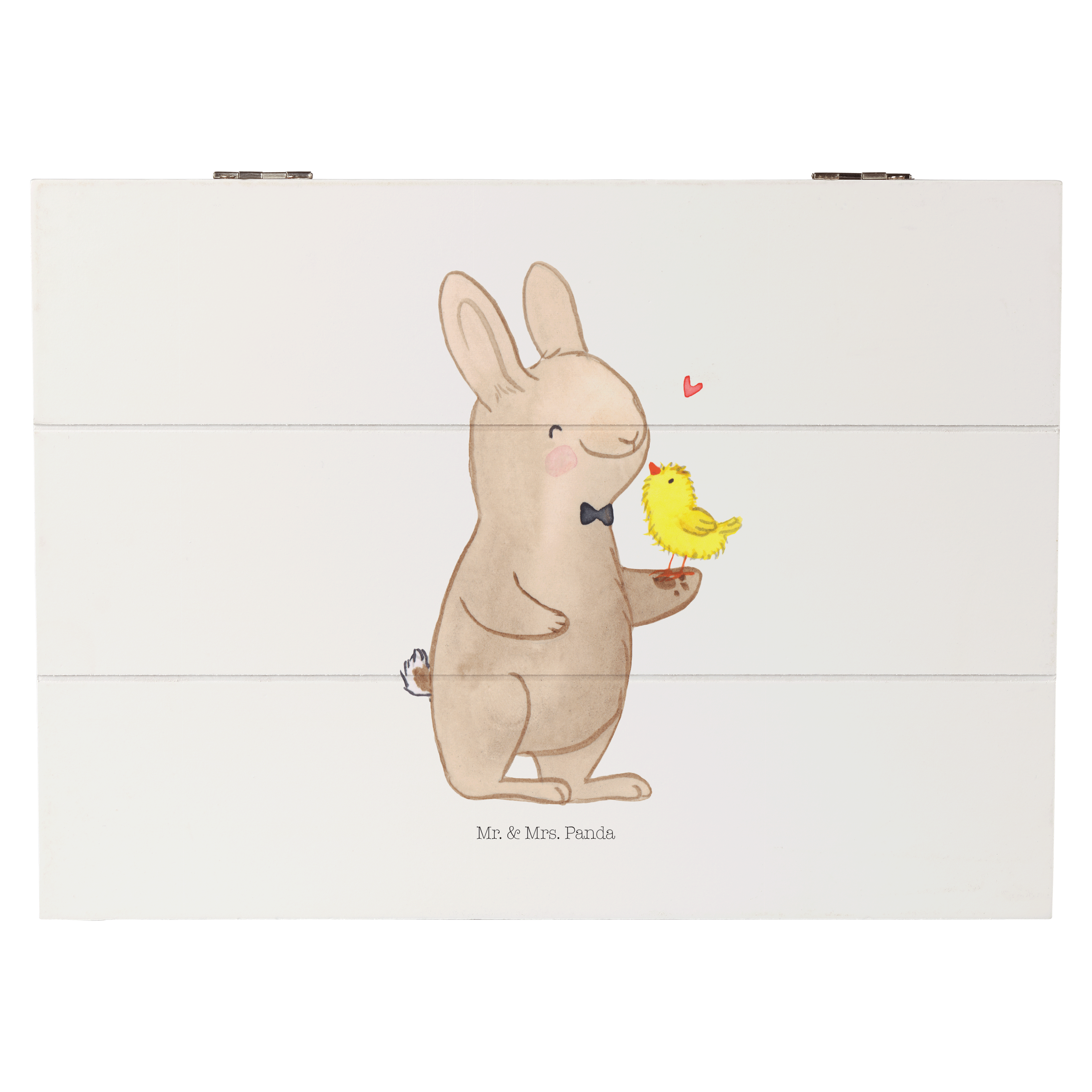 Holzkiste Hase mit Küken - 25 x 18 cm - mit Spruch - Weiß