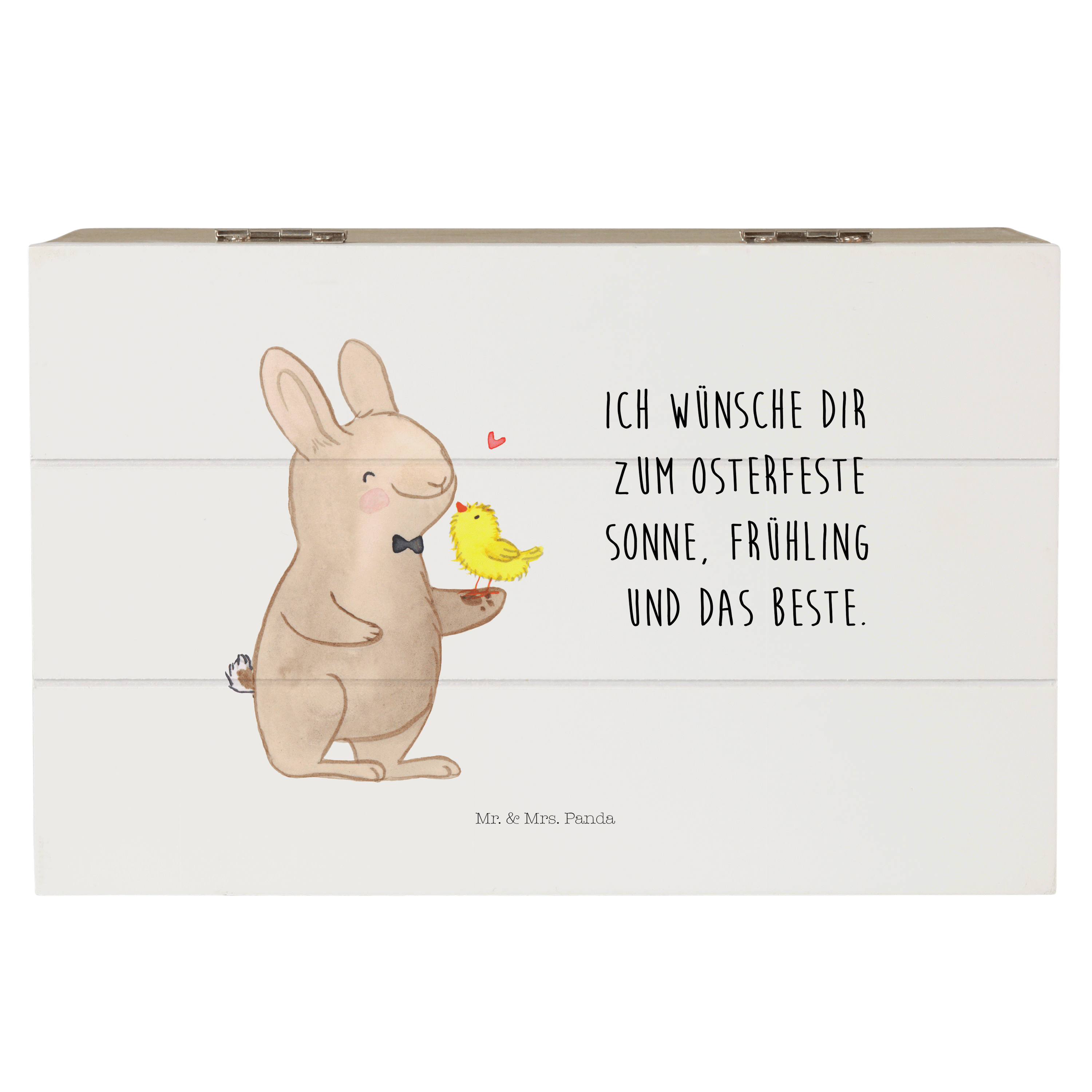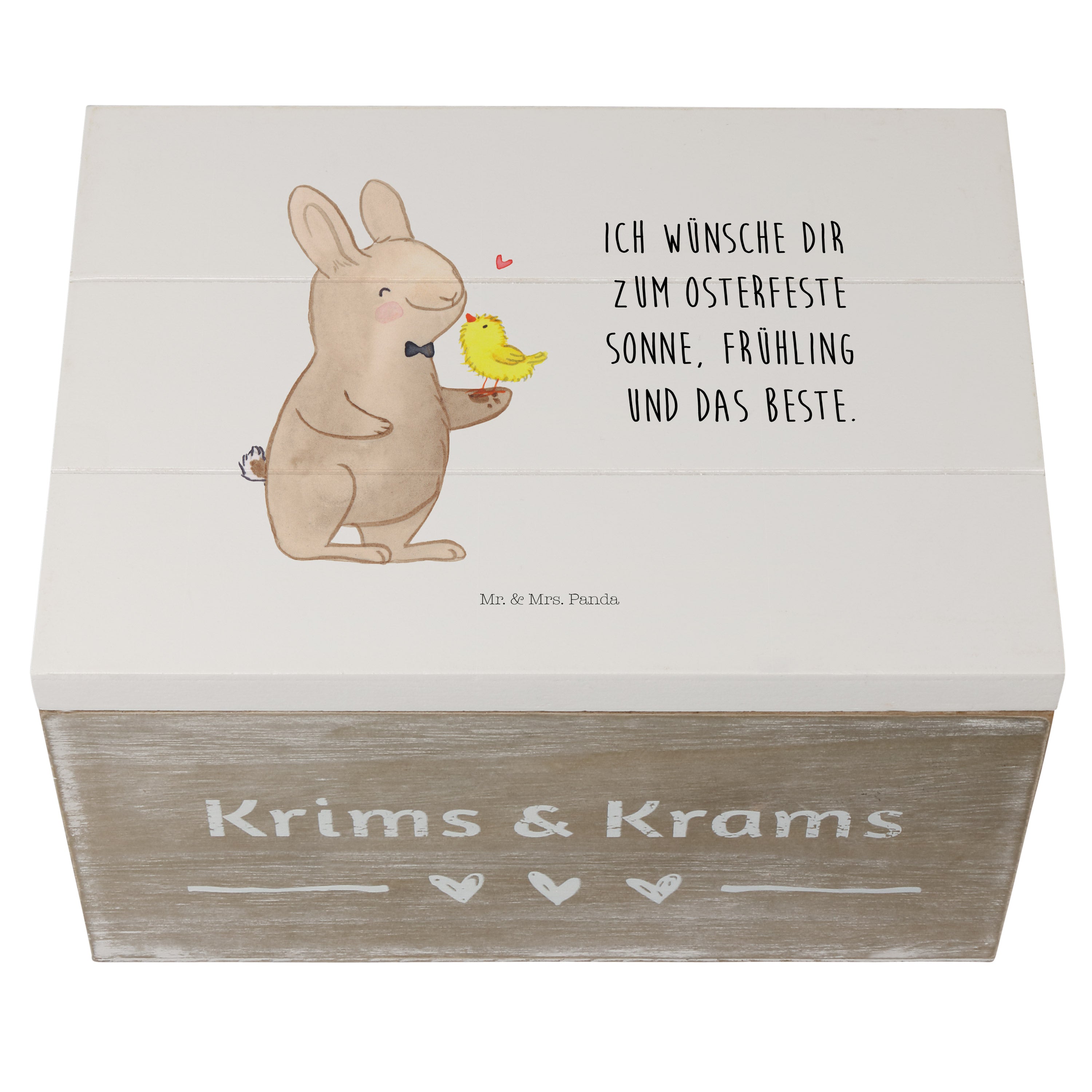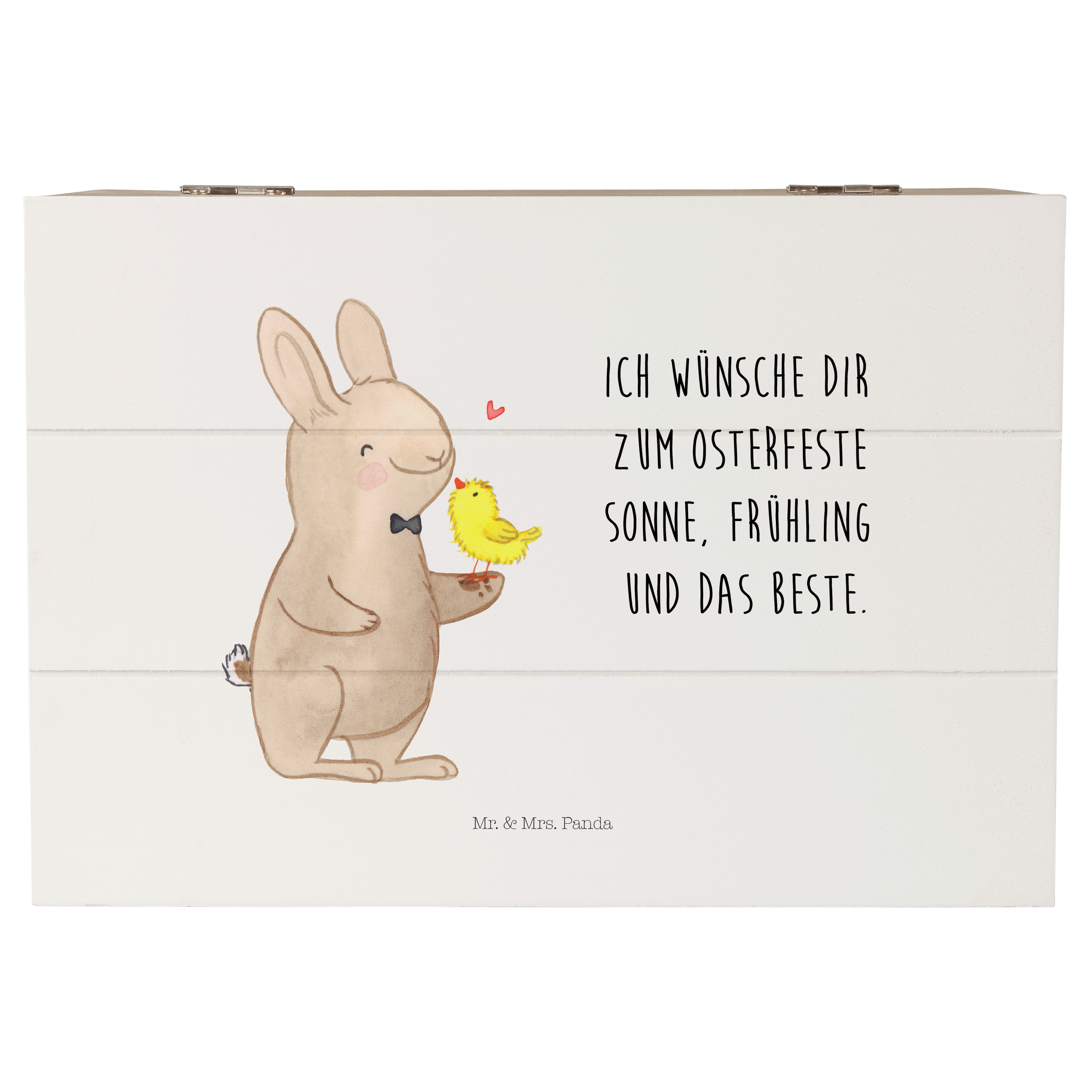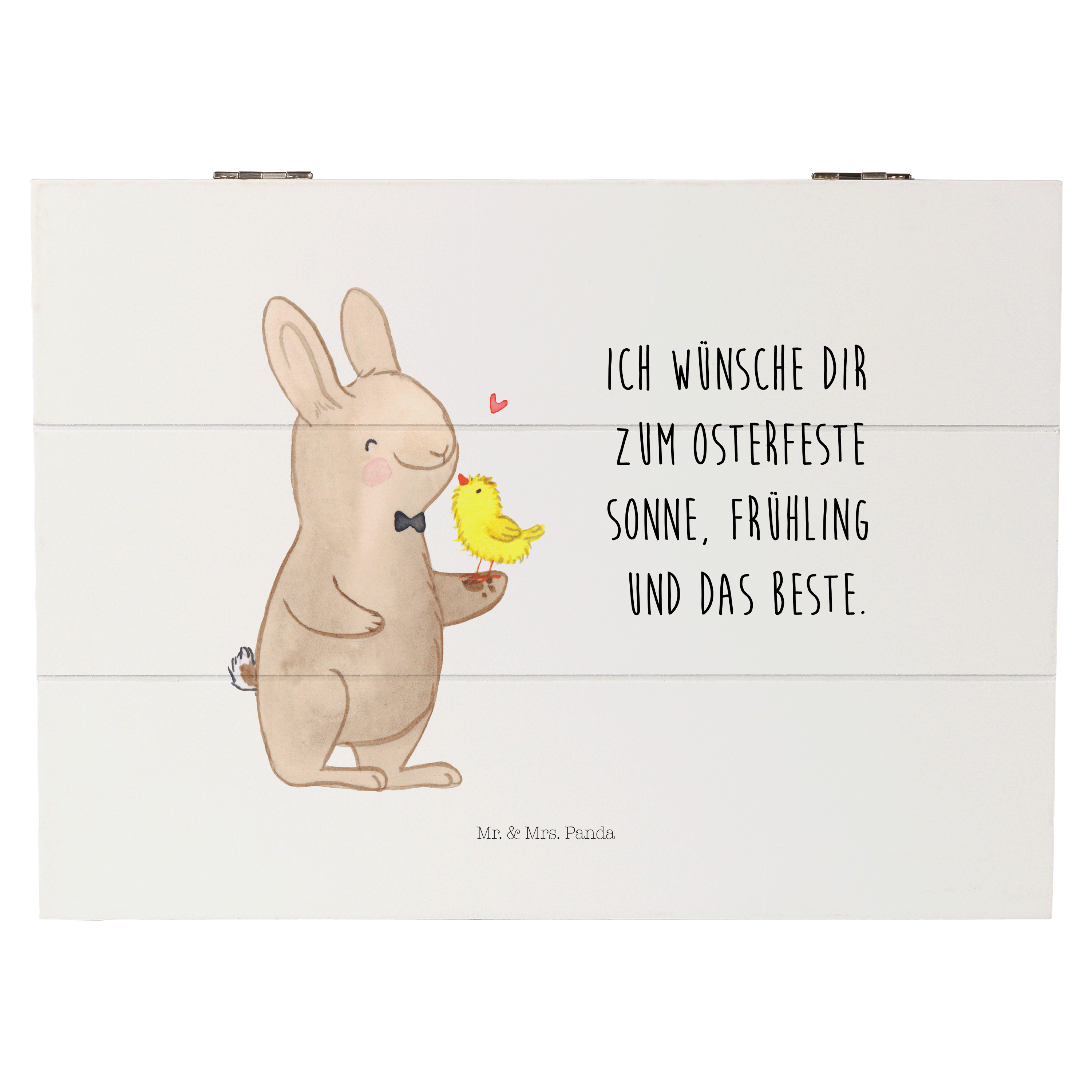 Holzkiste Hase mit Küken - 25 x 18 cm - mit Spruch - Weiß
