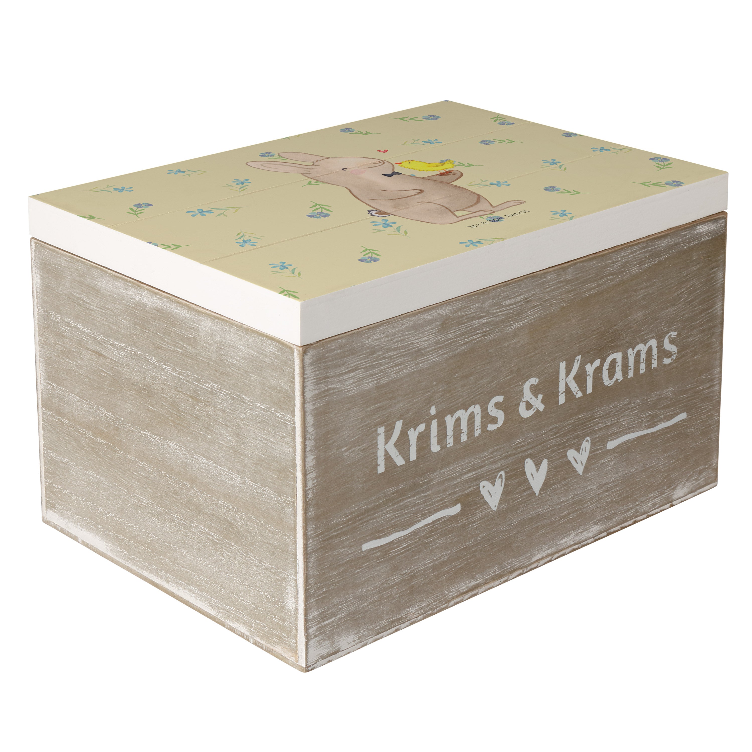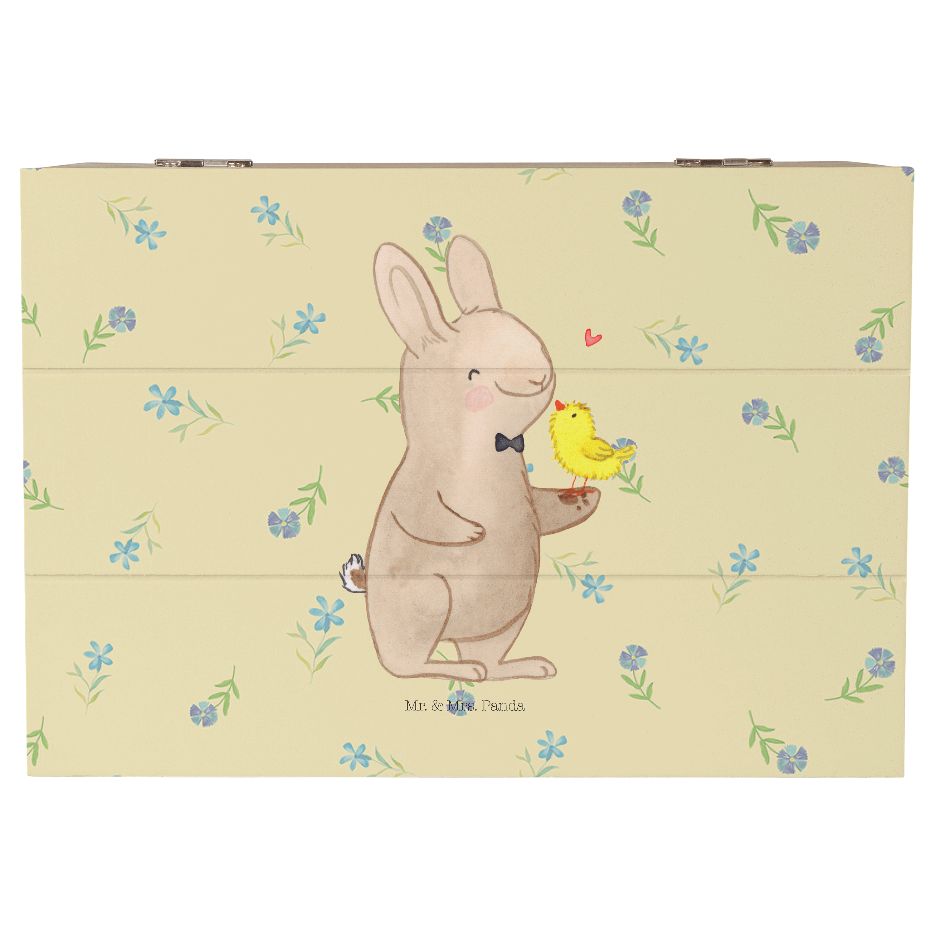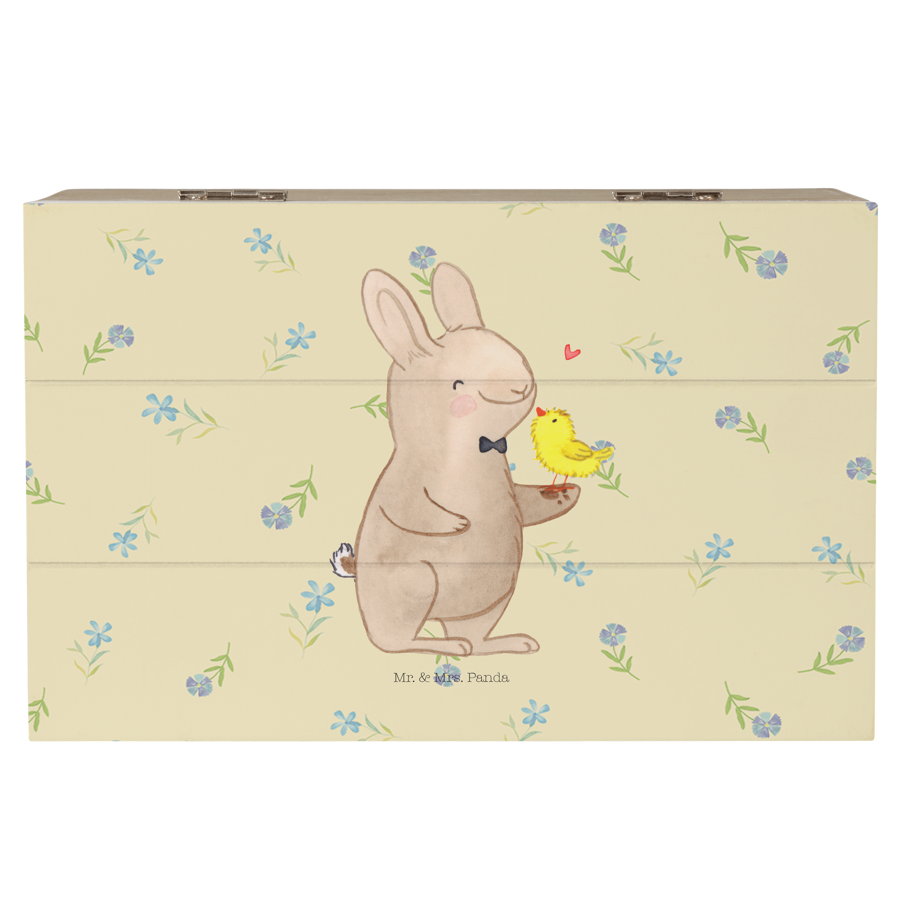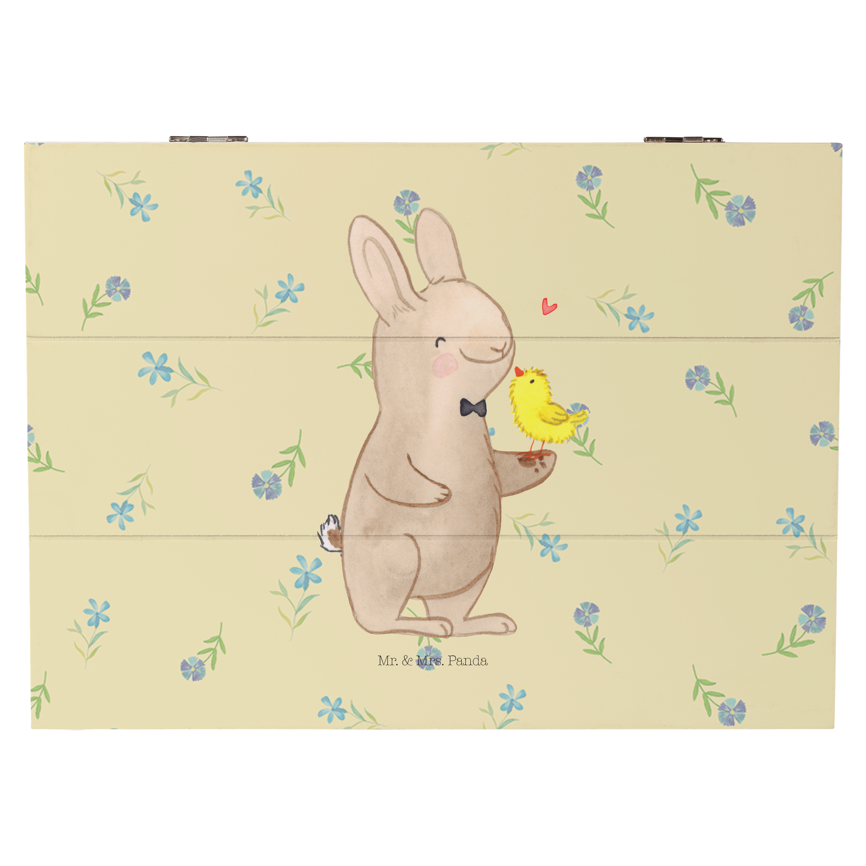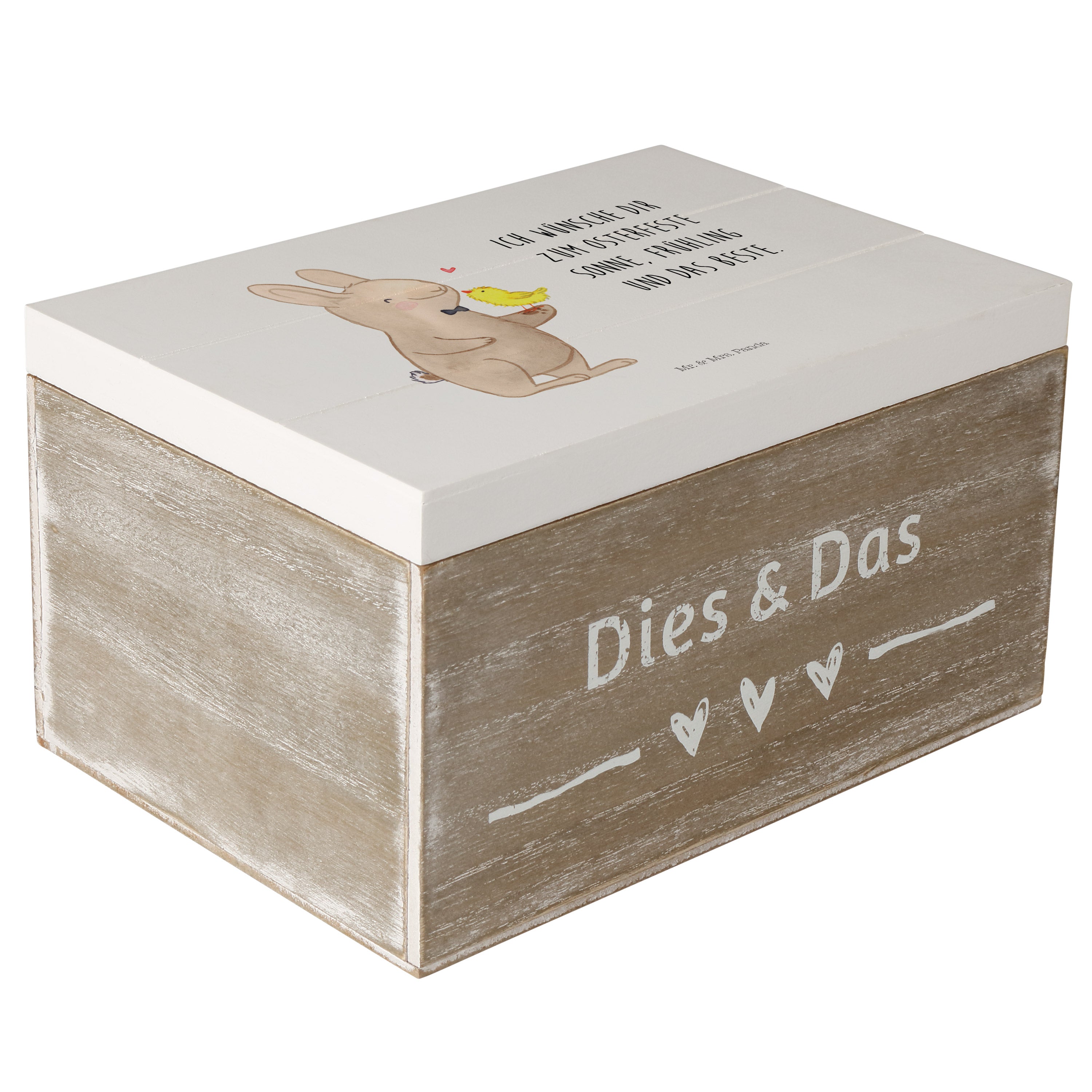 Holzkiste Hase mit Küken - 25 x 18 cm - mit Spruch - Weiß