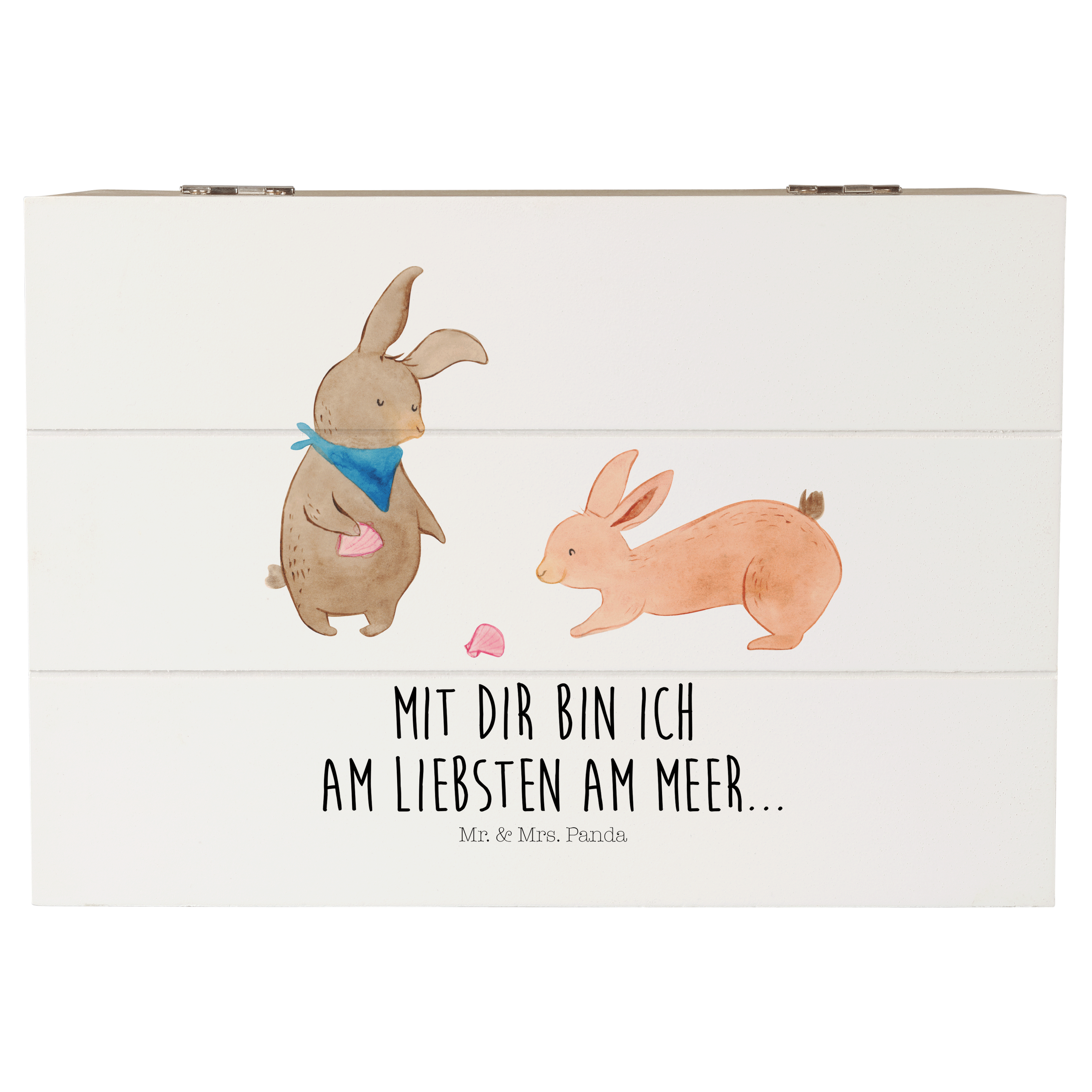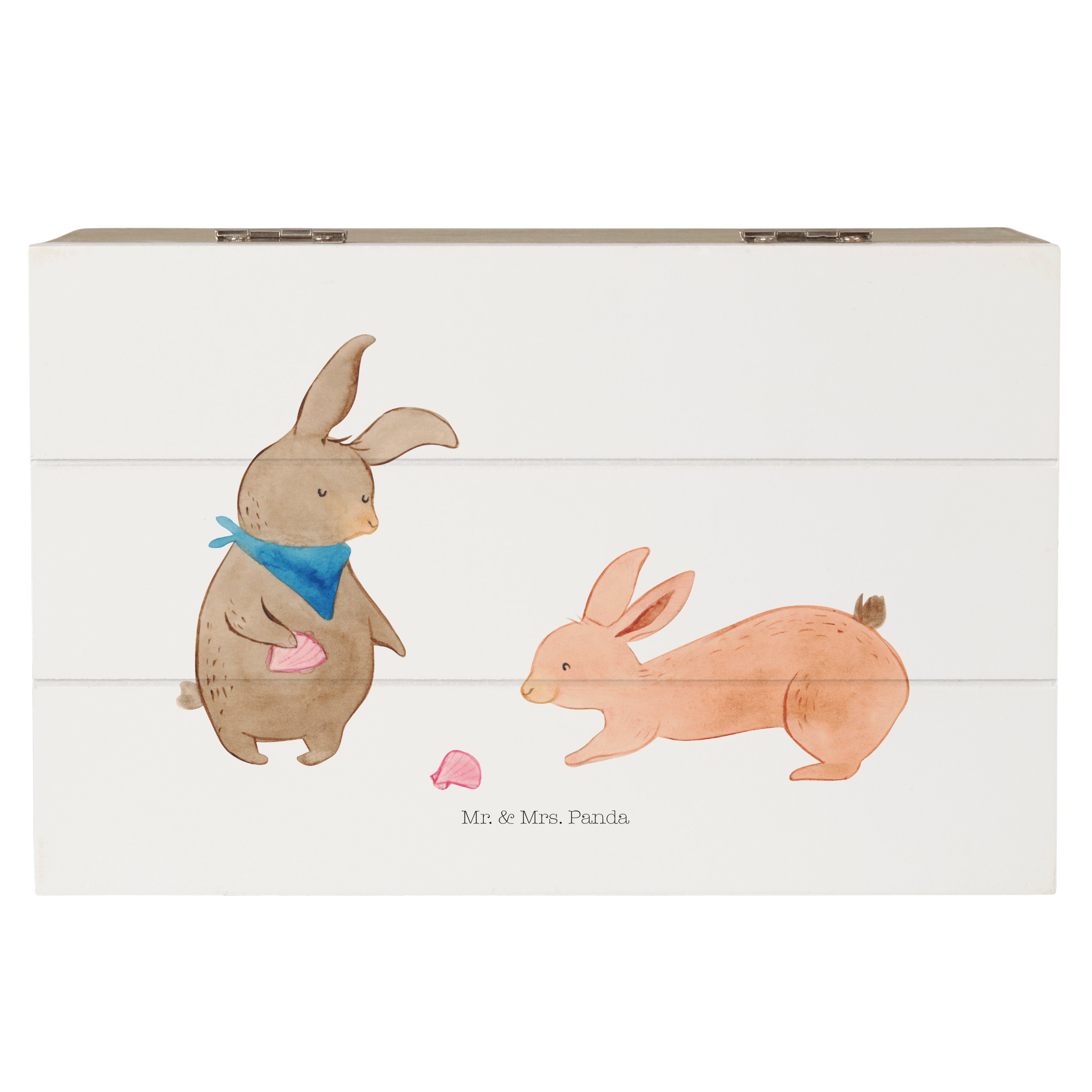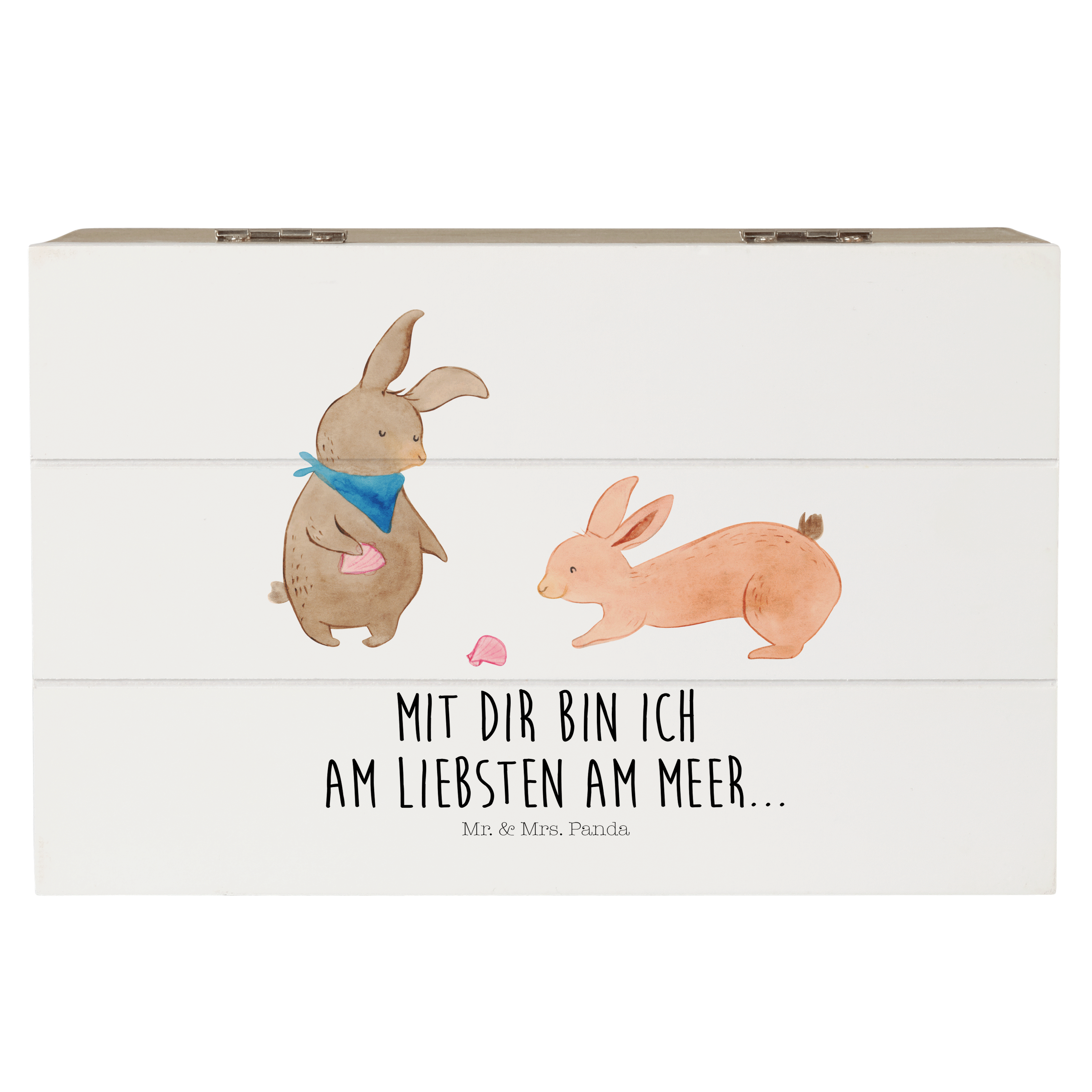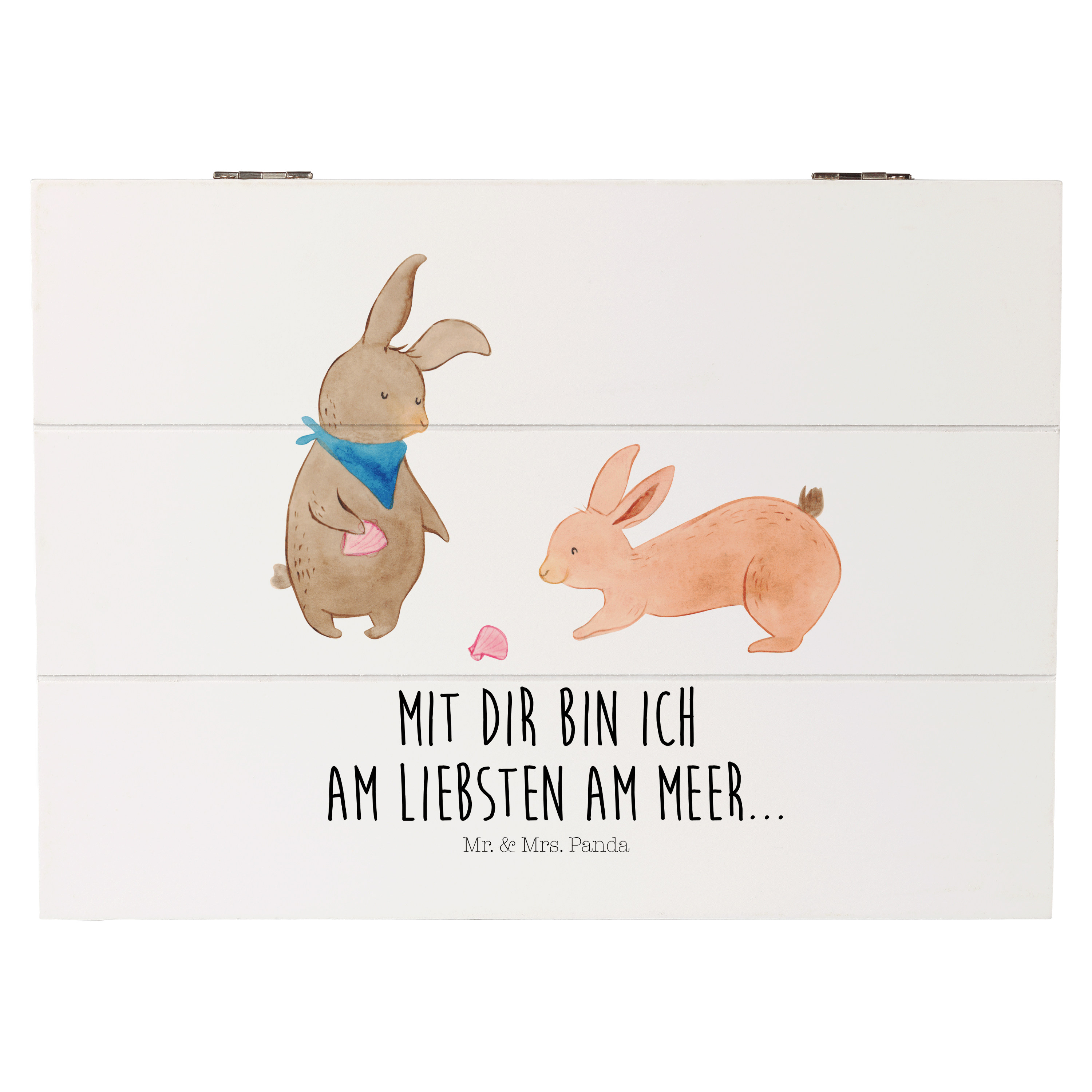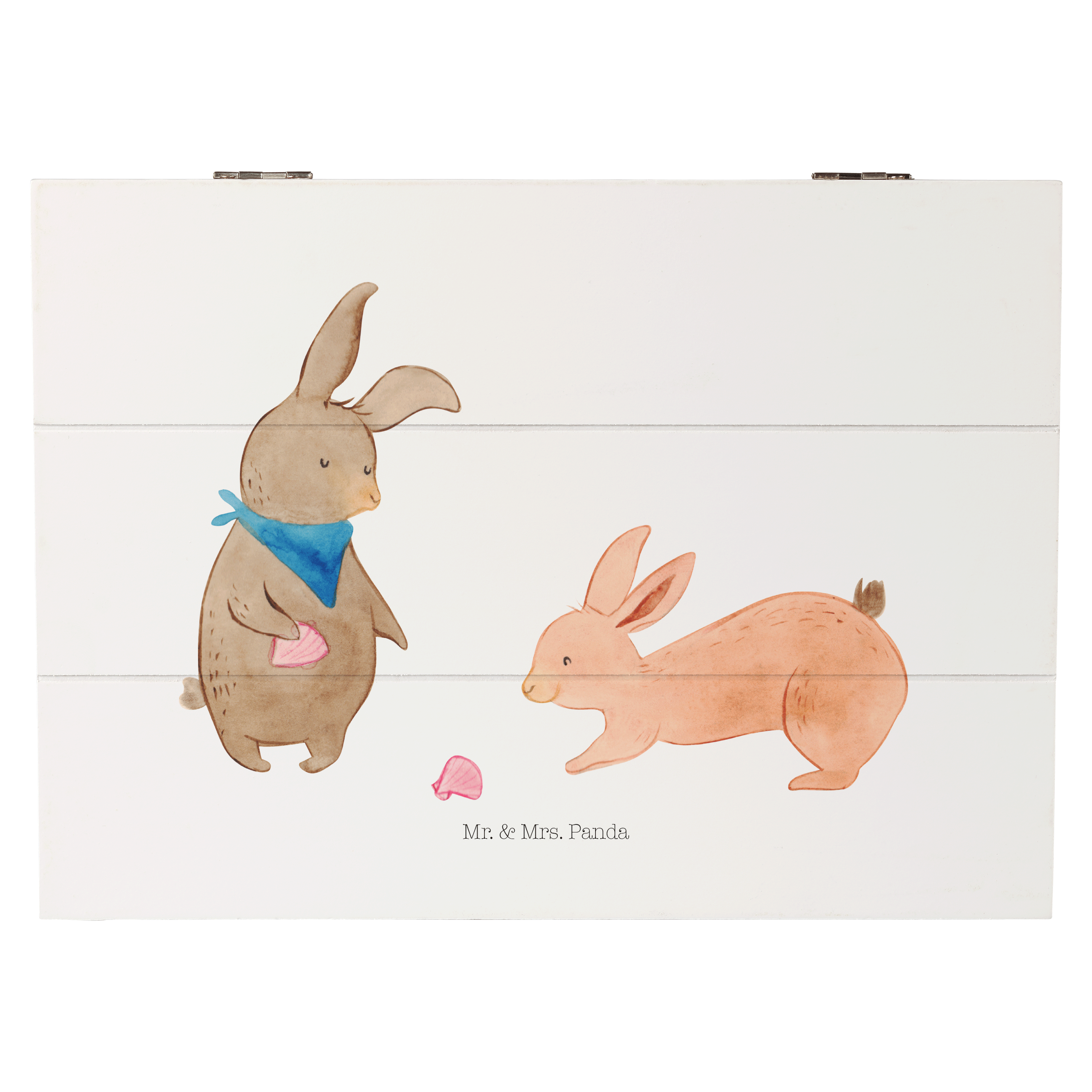 Holzkiste Hasen Muschel - 25 x 18 cm - mit Spruch - Weiß
