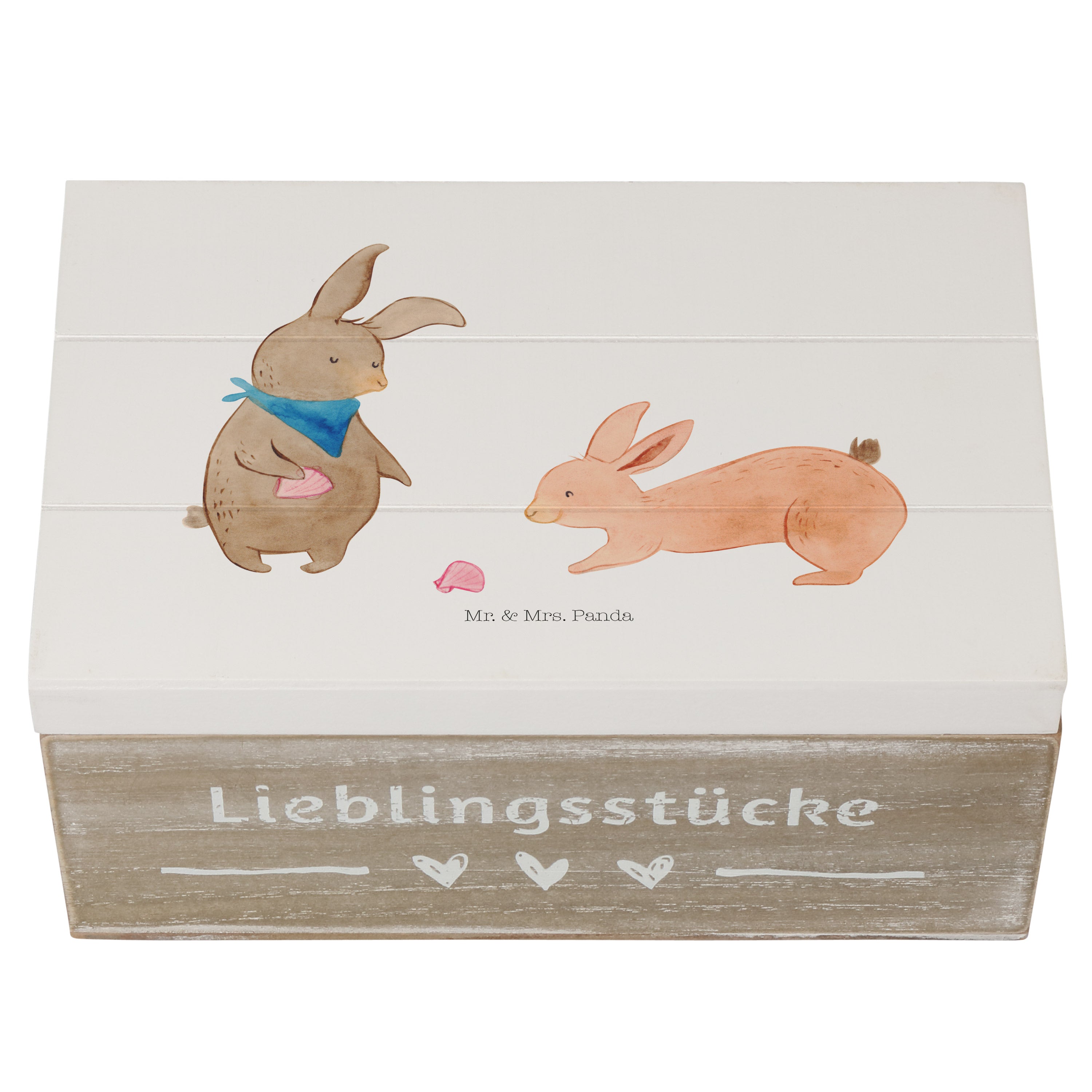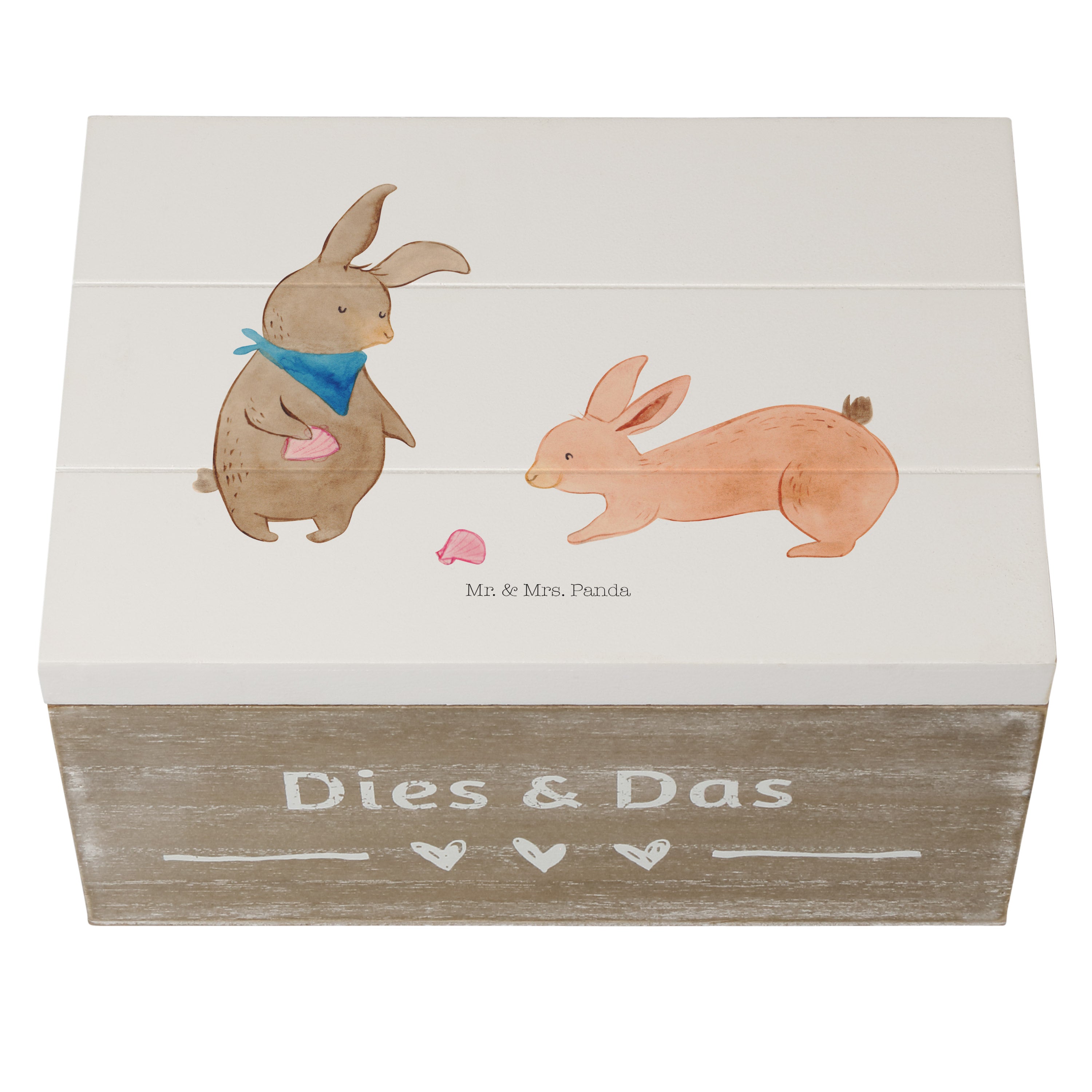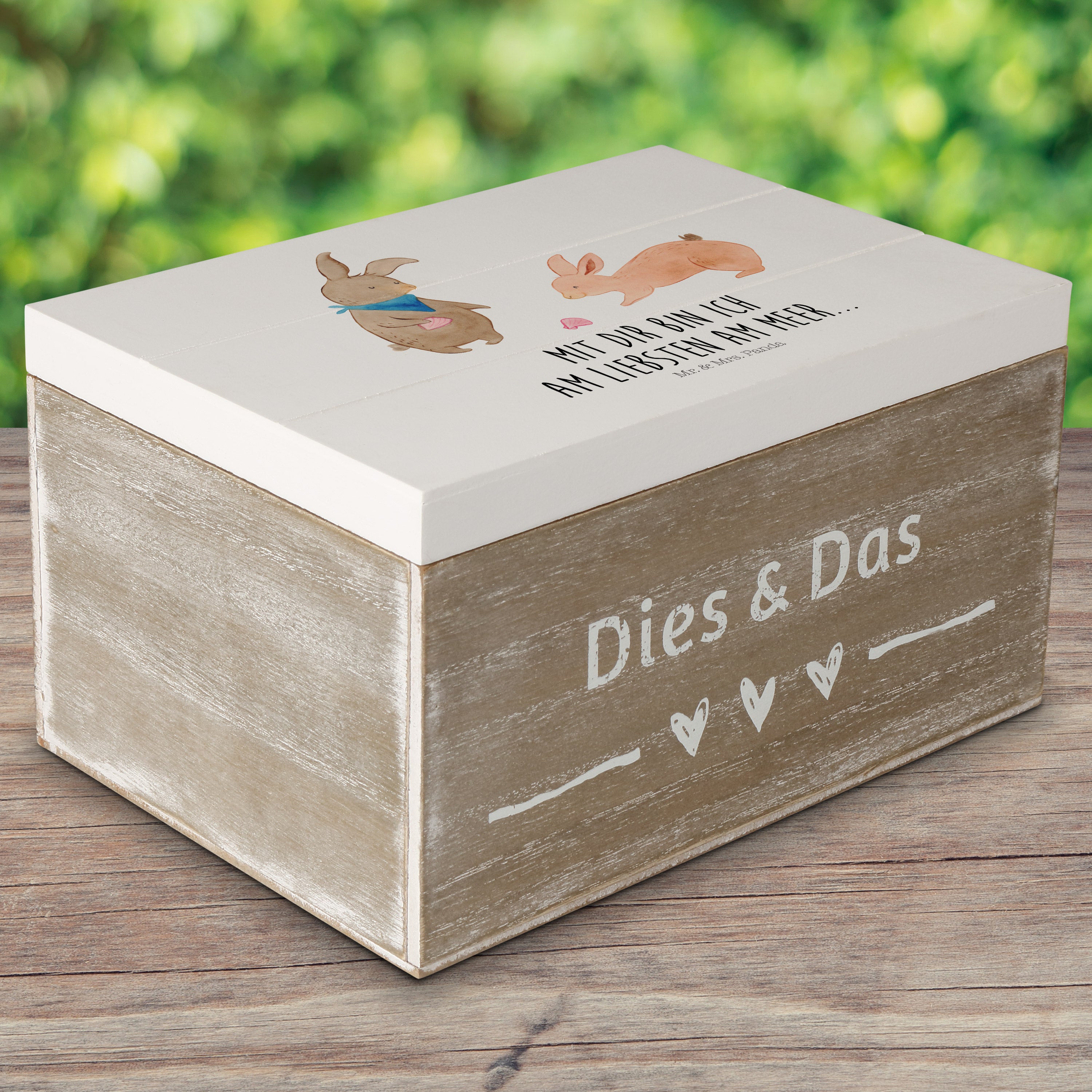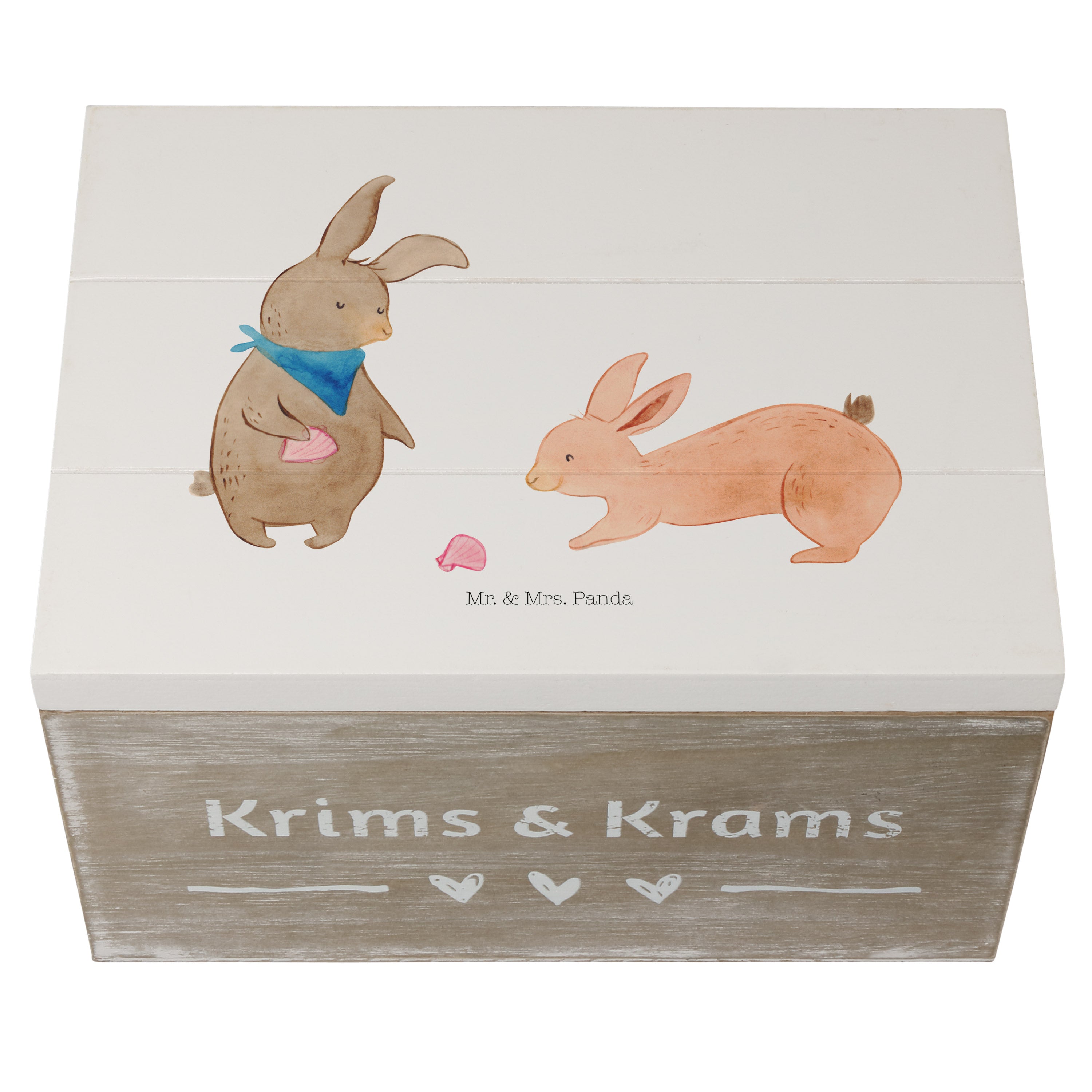 Holzkiste Hasen Muschel - 25 x 18 cm - mit Spruch - Weiß
