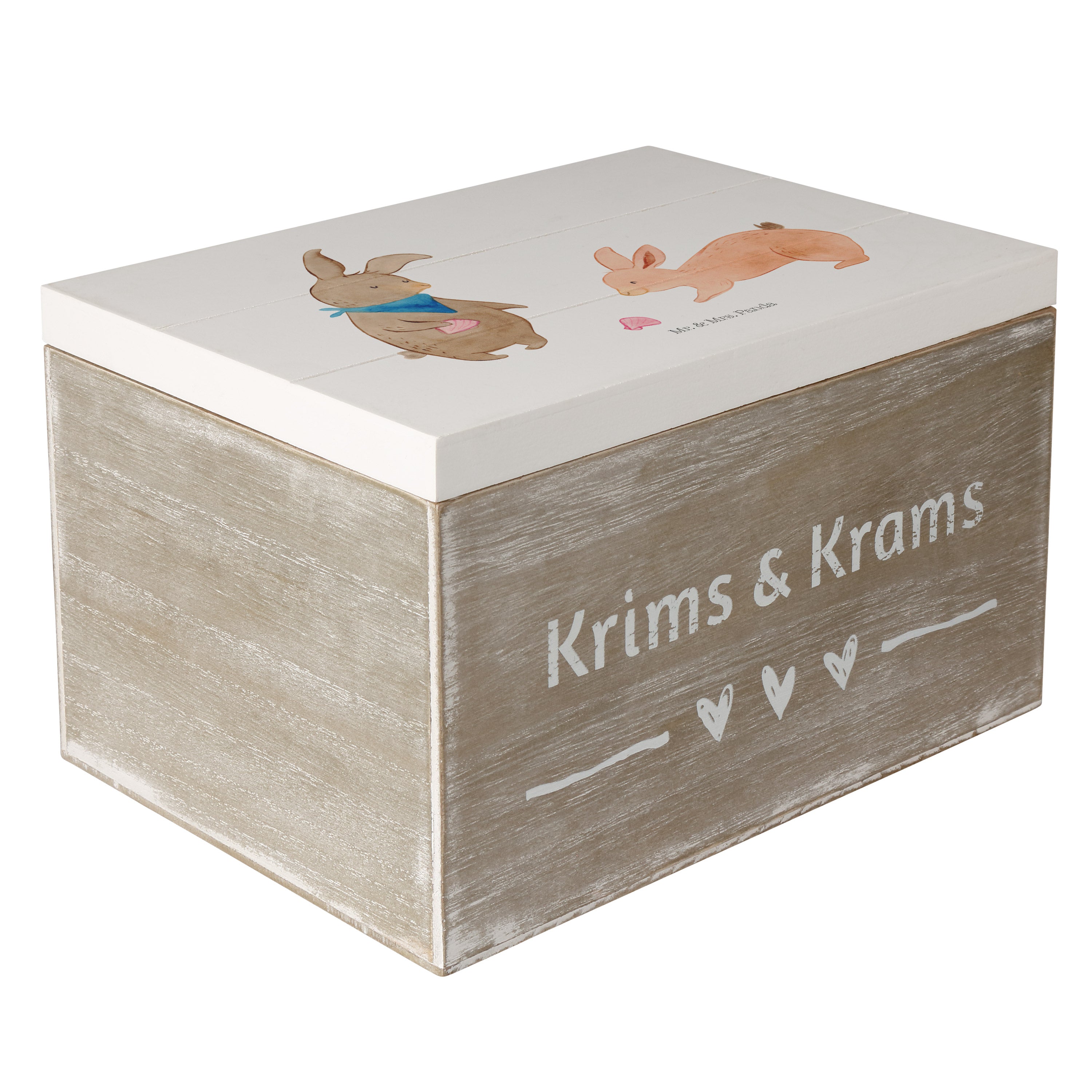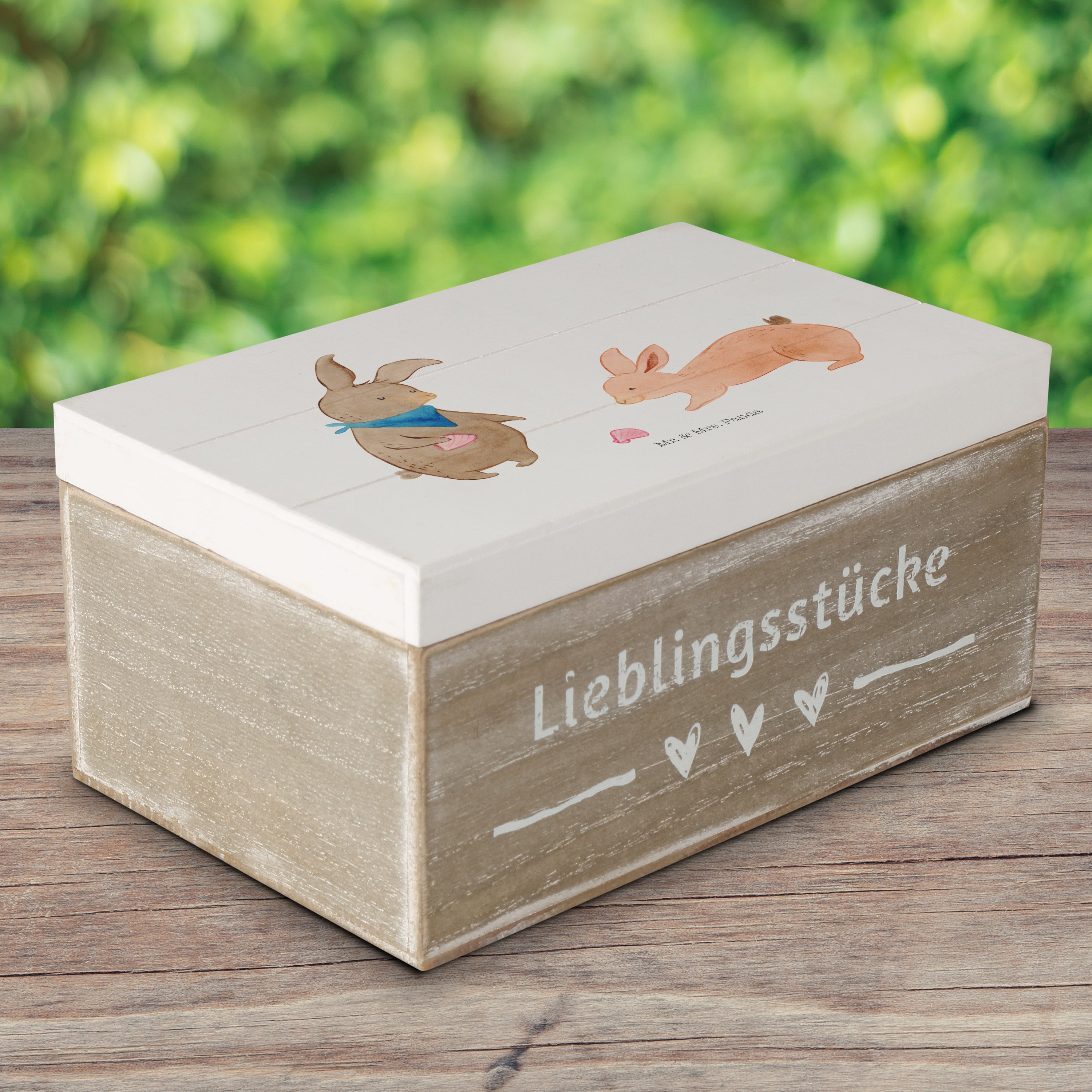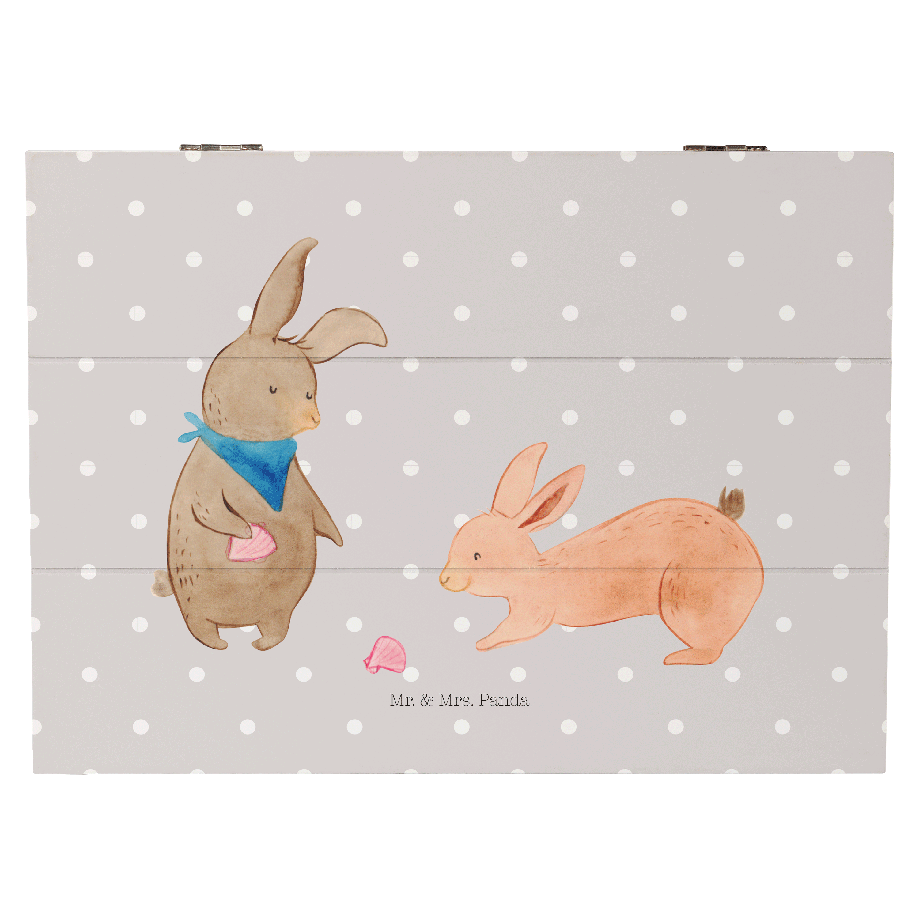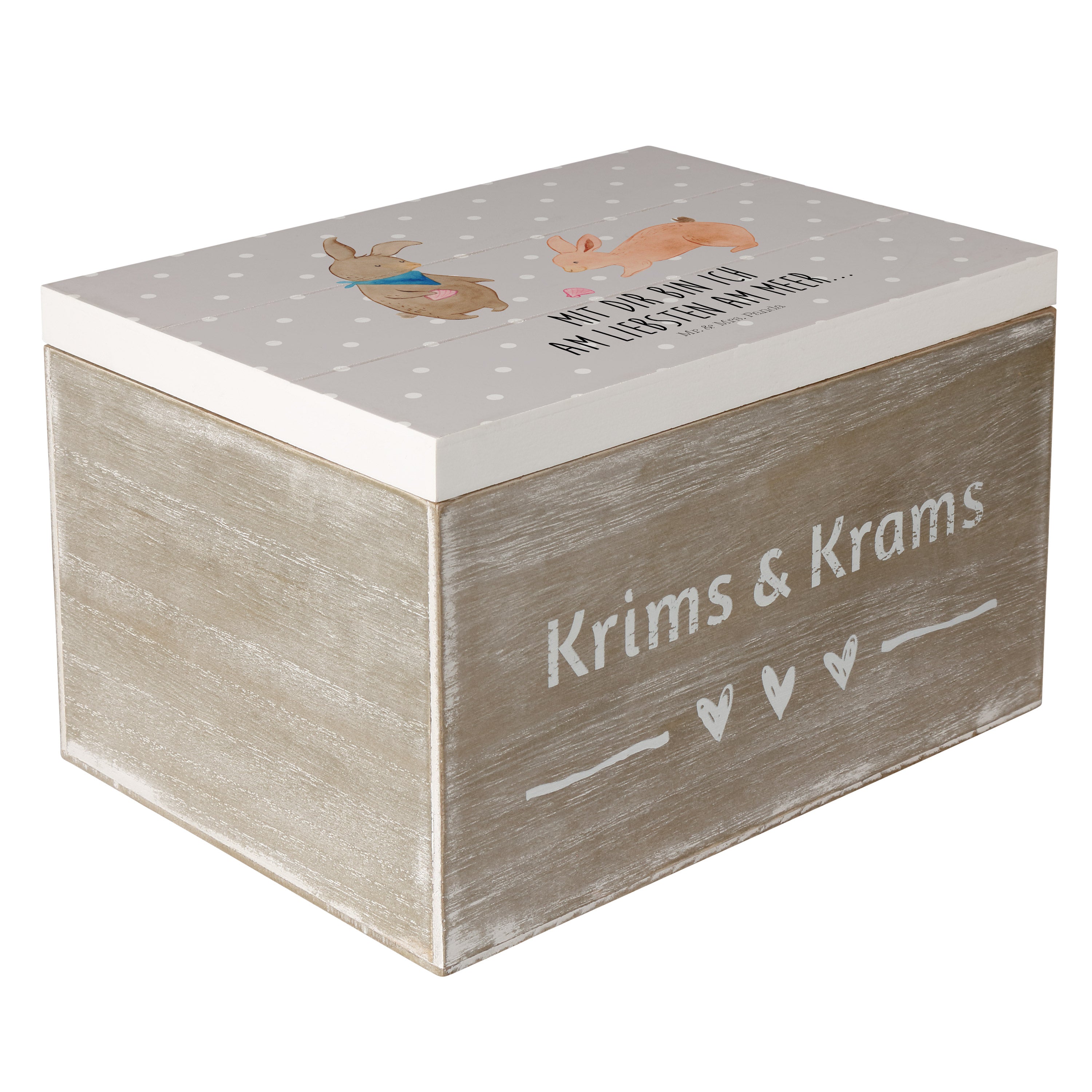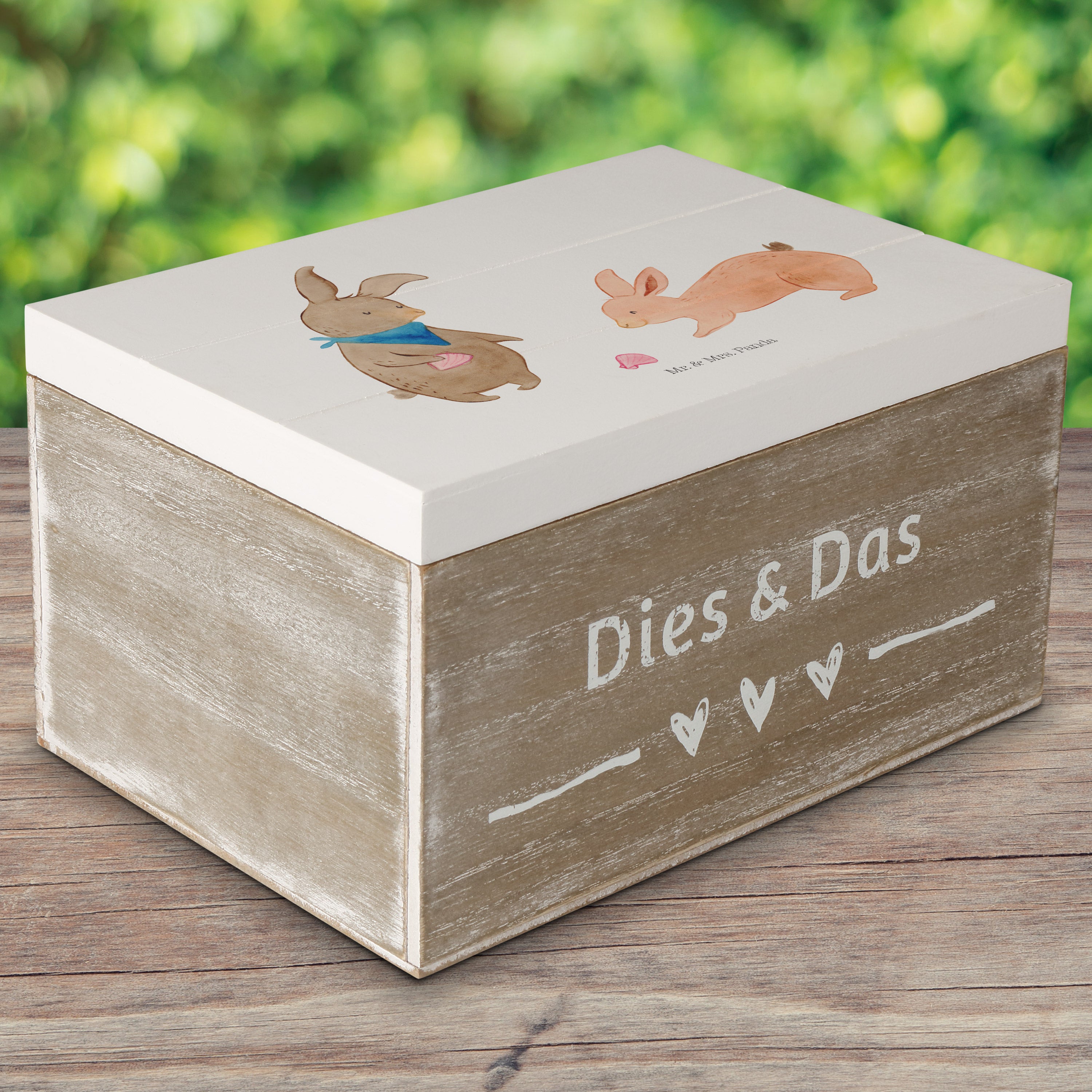 Holzkiste Hasen Muschel - 25 x 18 cm - mit Spruch - Weiß