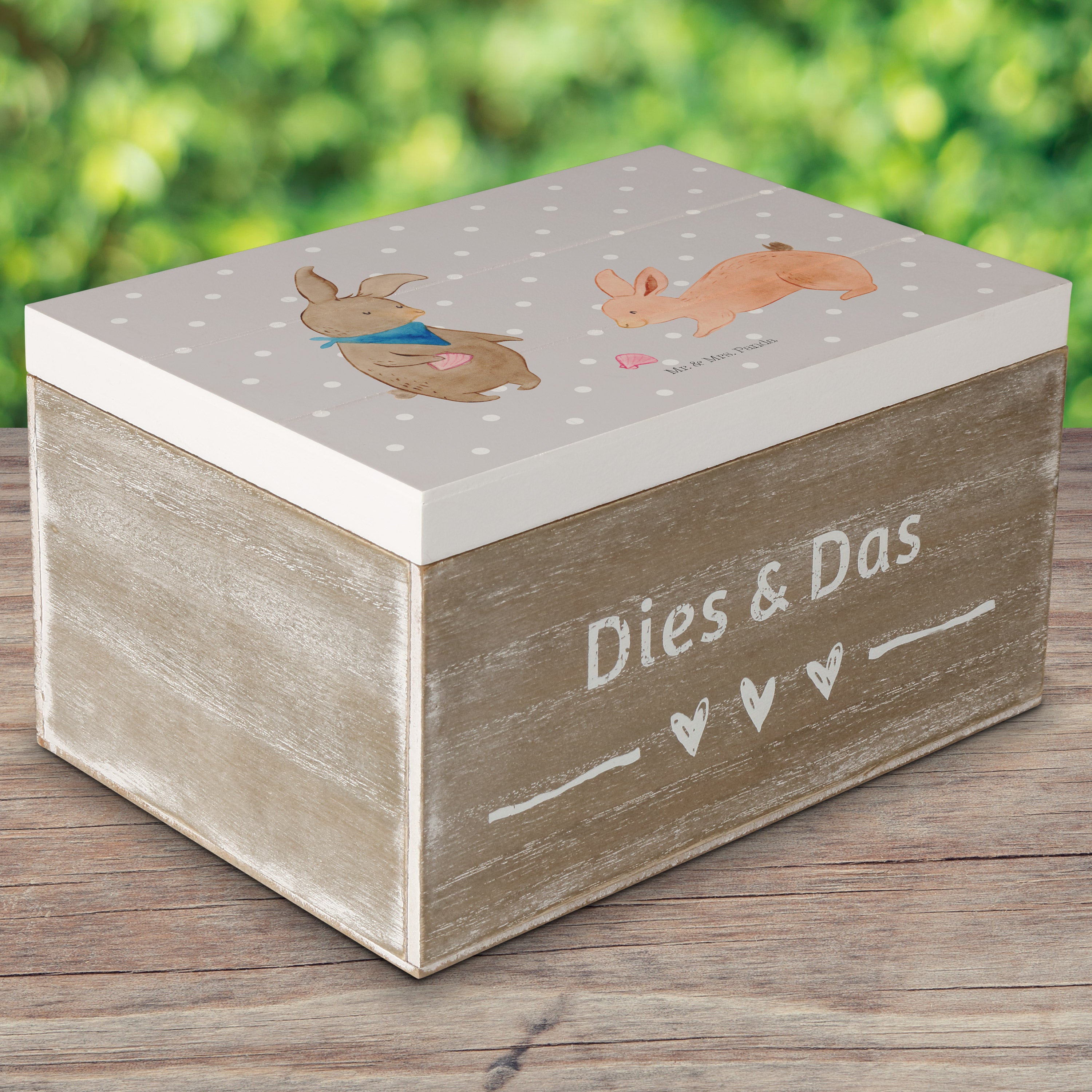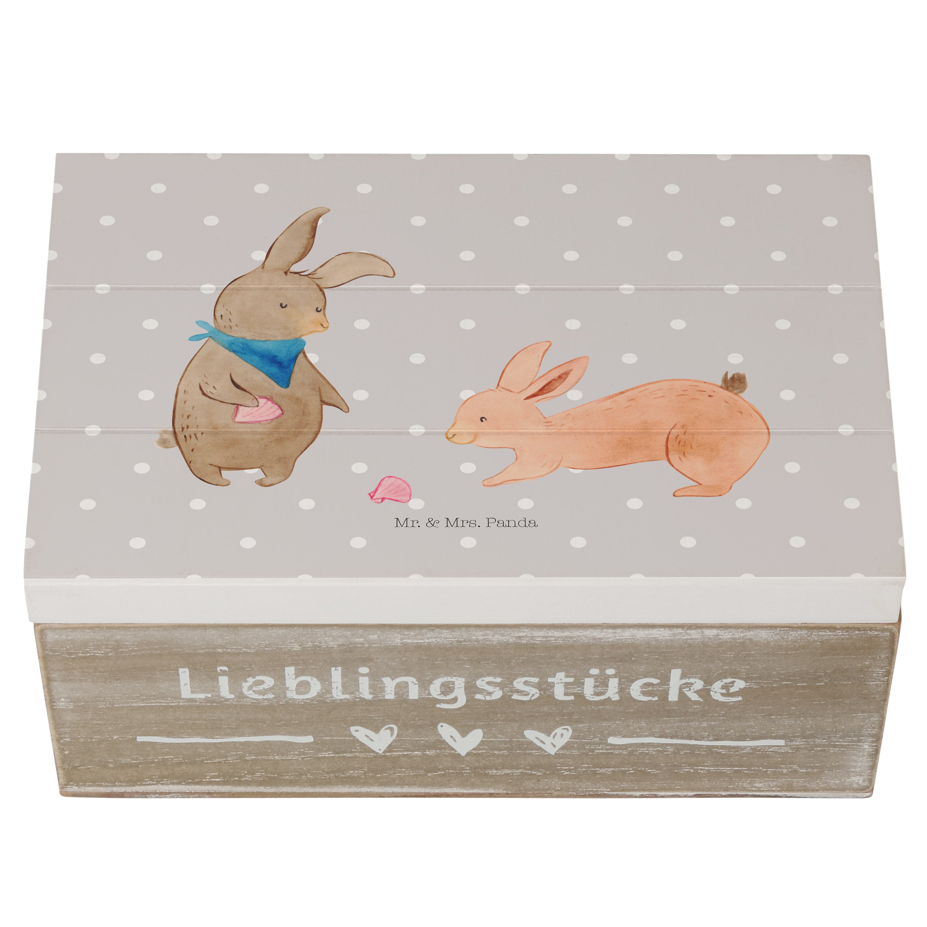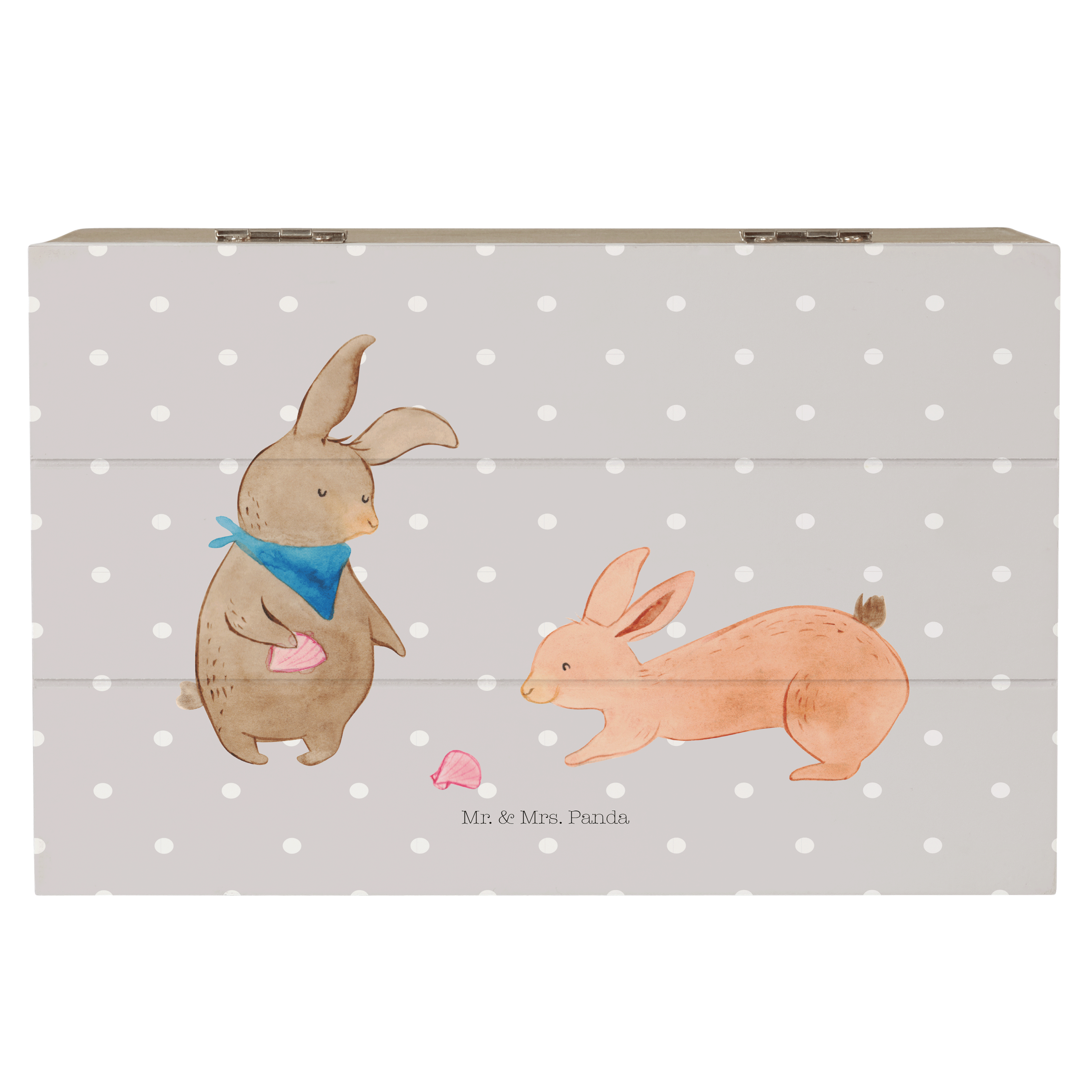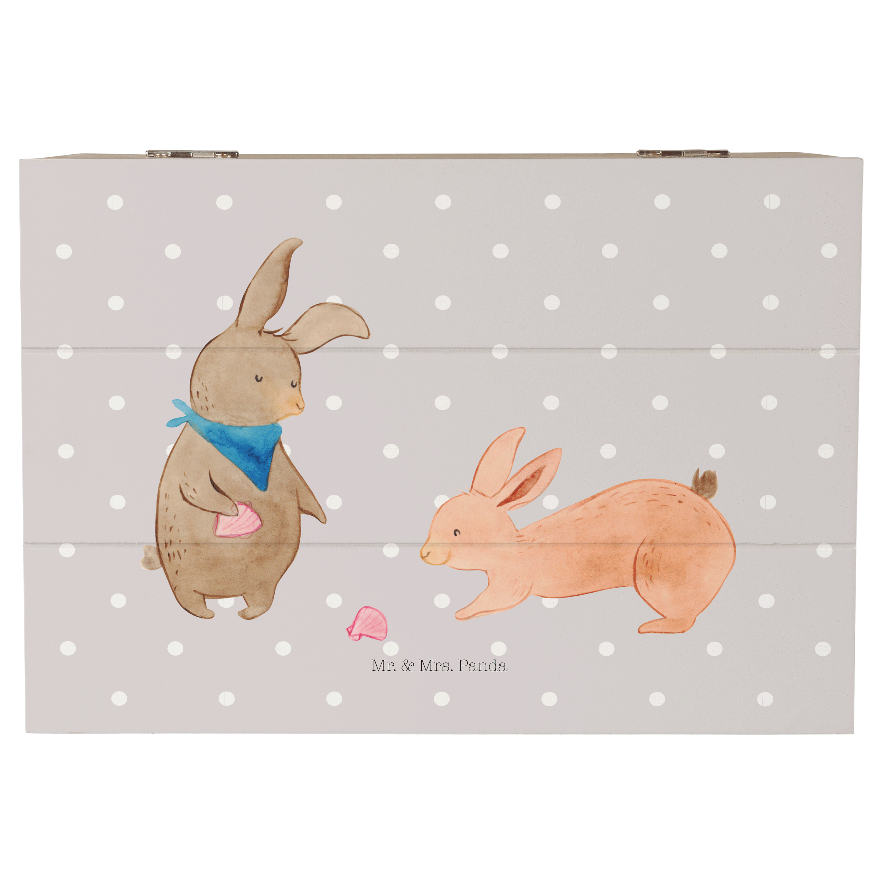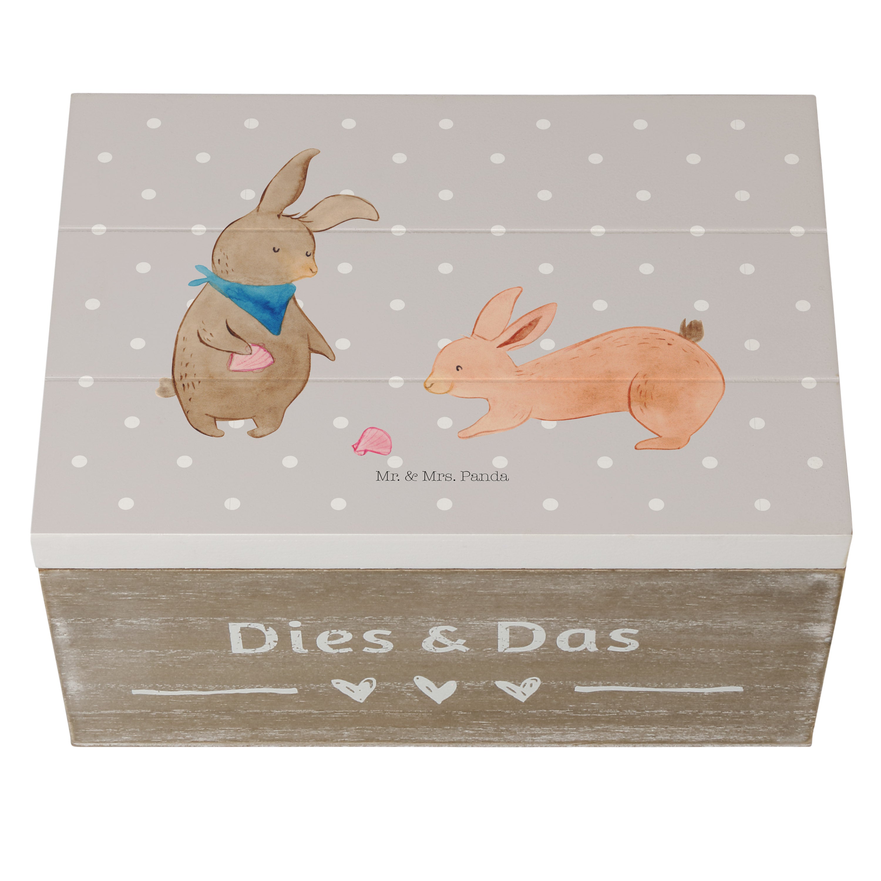 Holzkiste Hasen Muschel - 25 x 18 cm - mit Spruch - Weiß