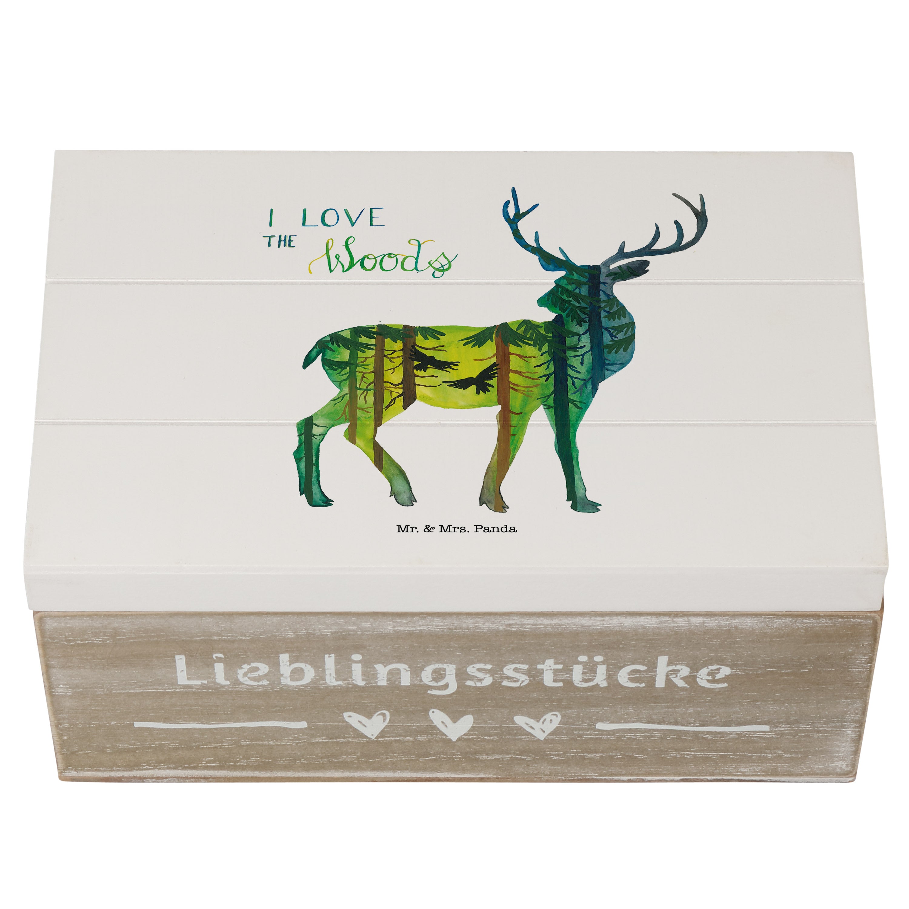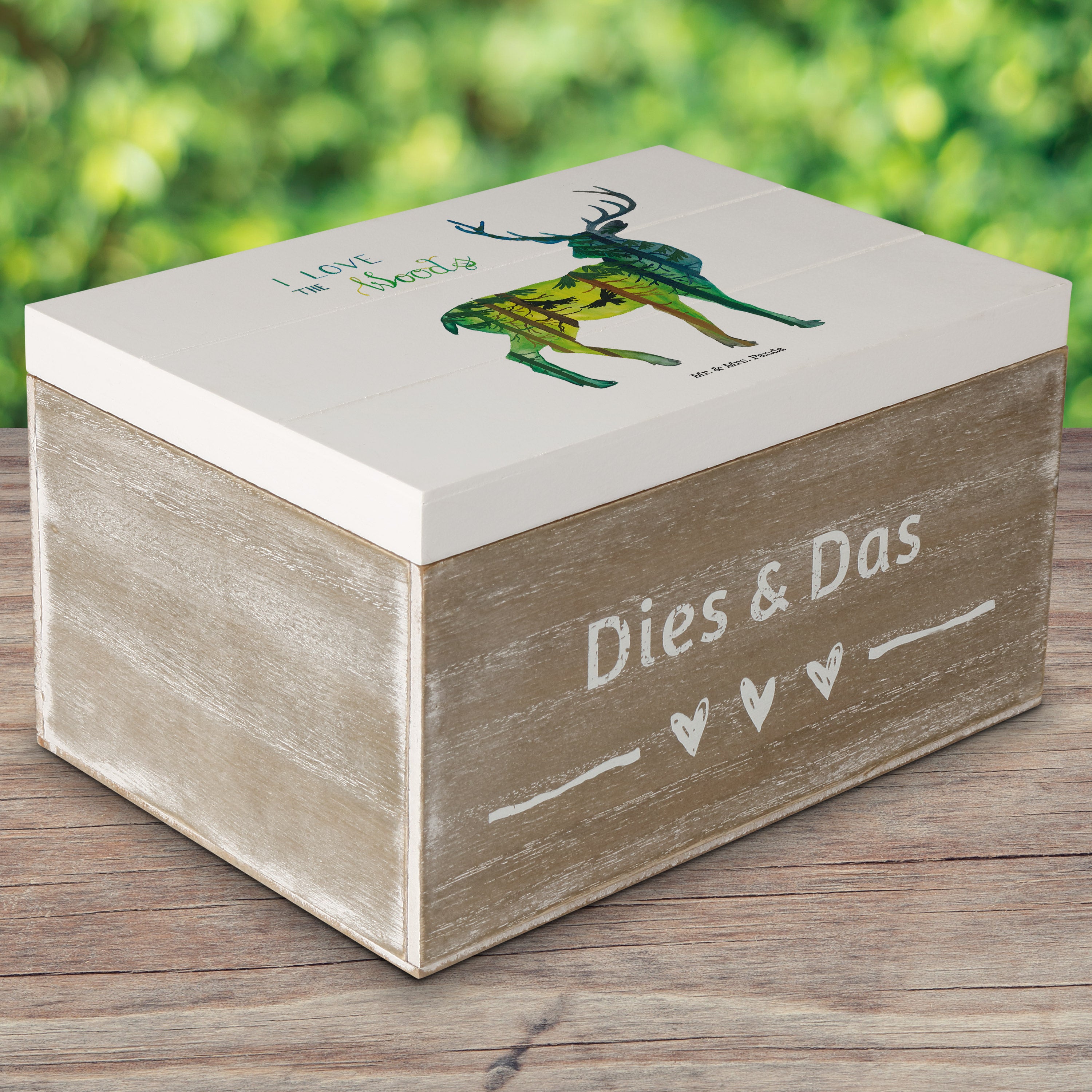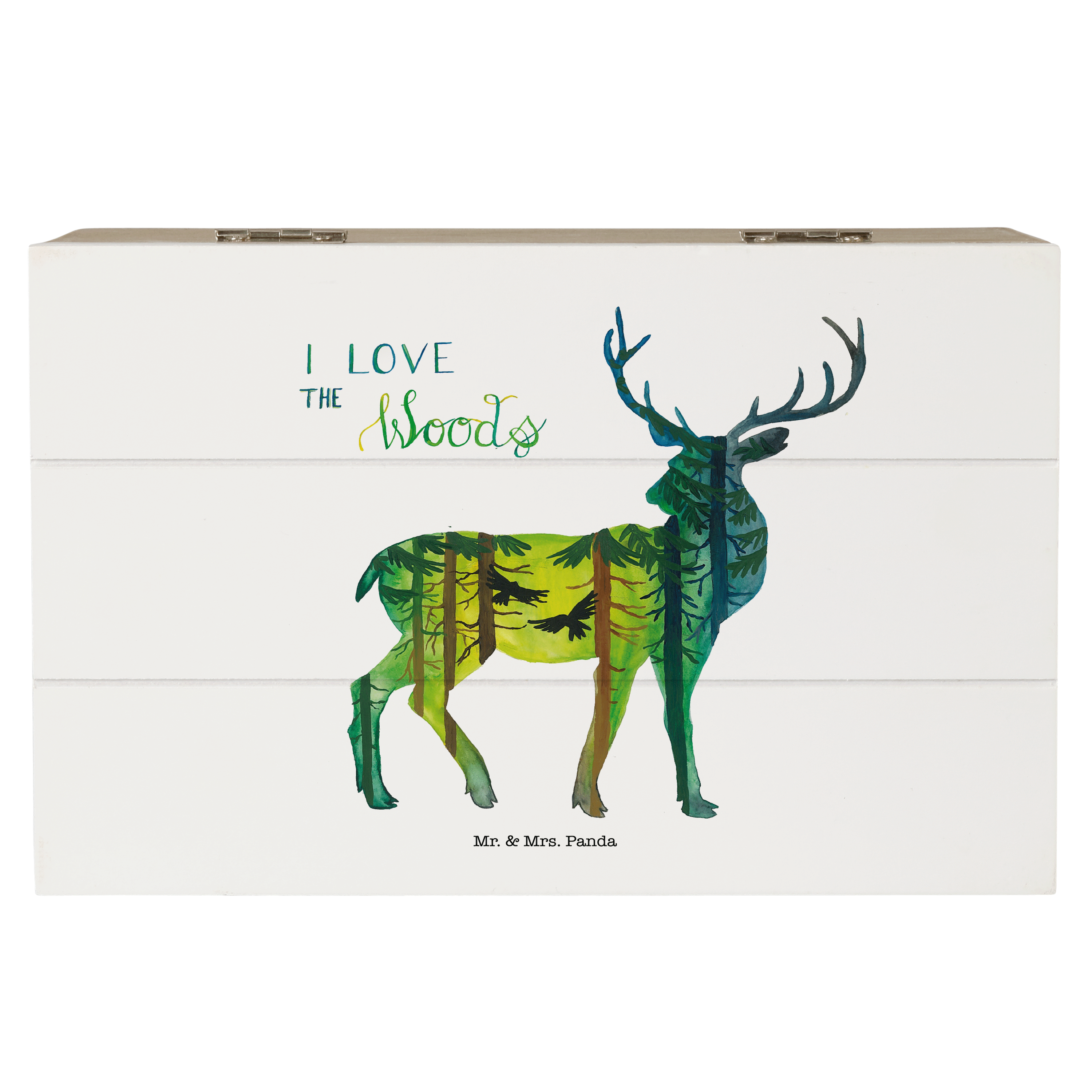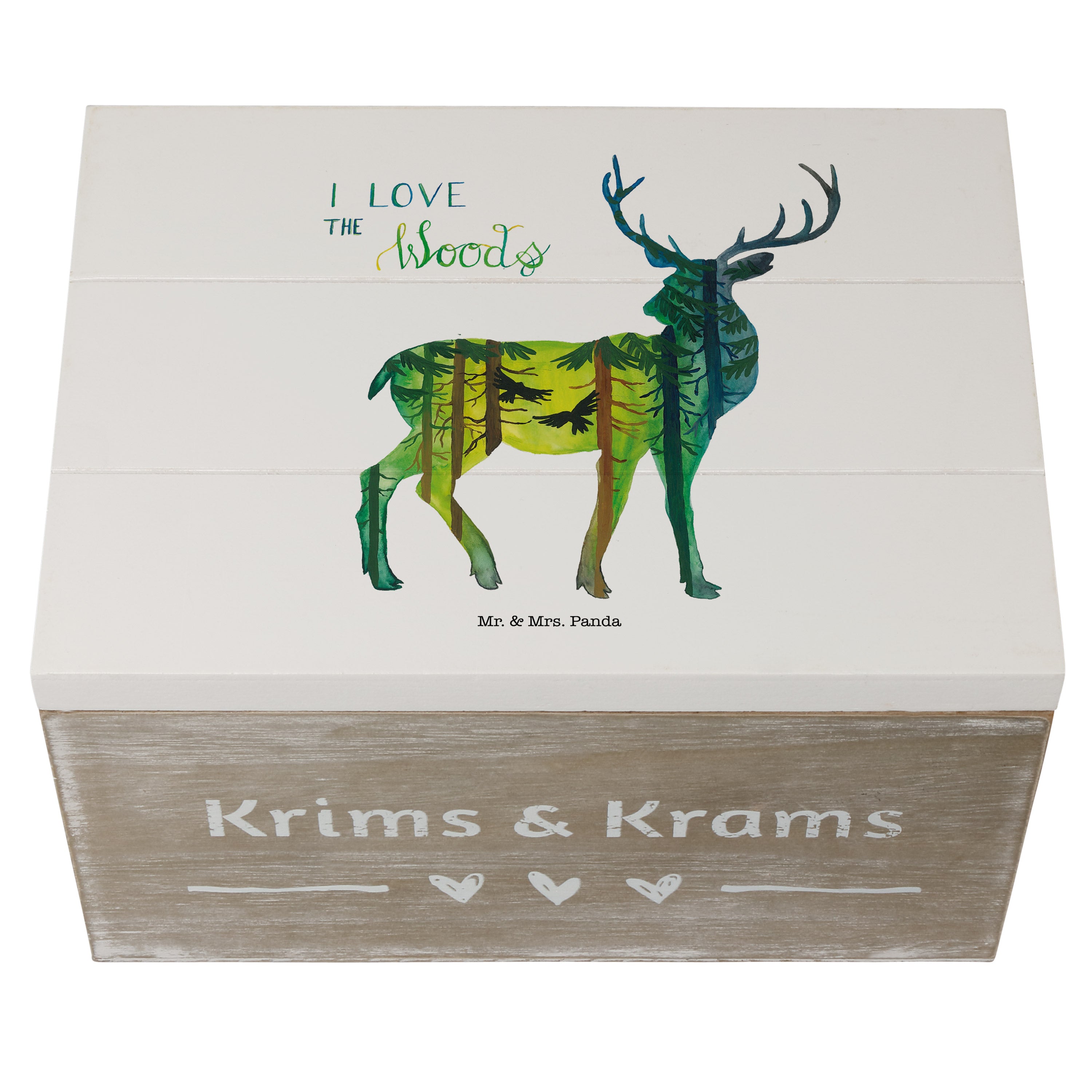 Holzkiste Hirsch I love the woods - Weiß - 19 x 12 cm
