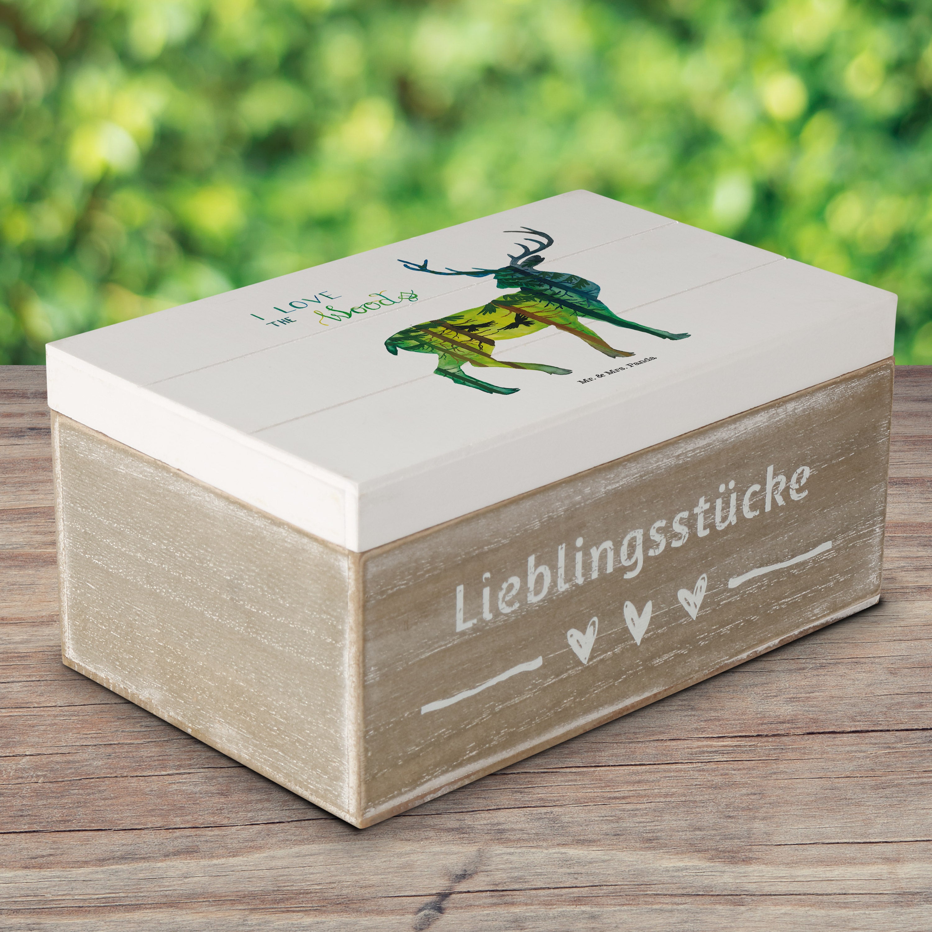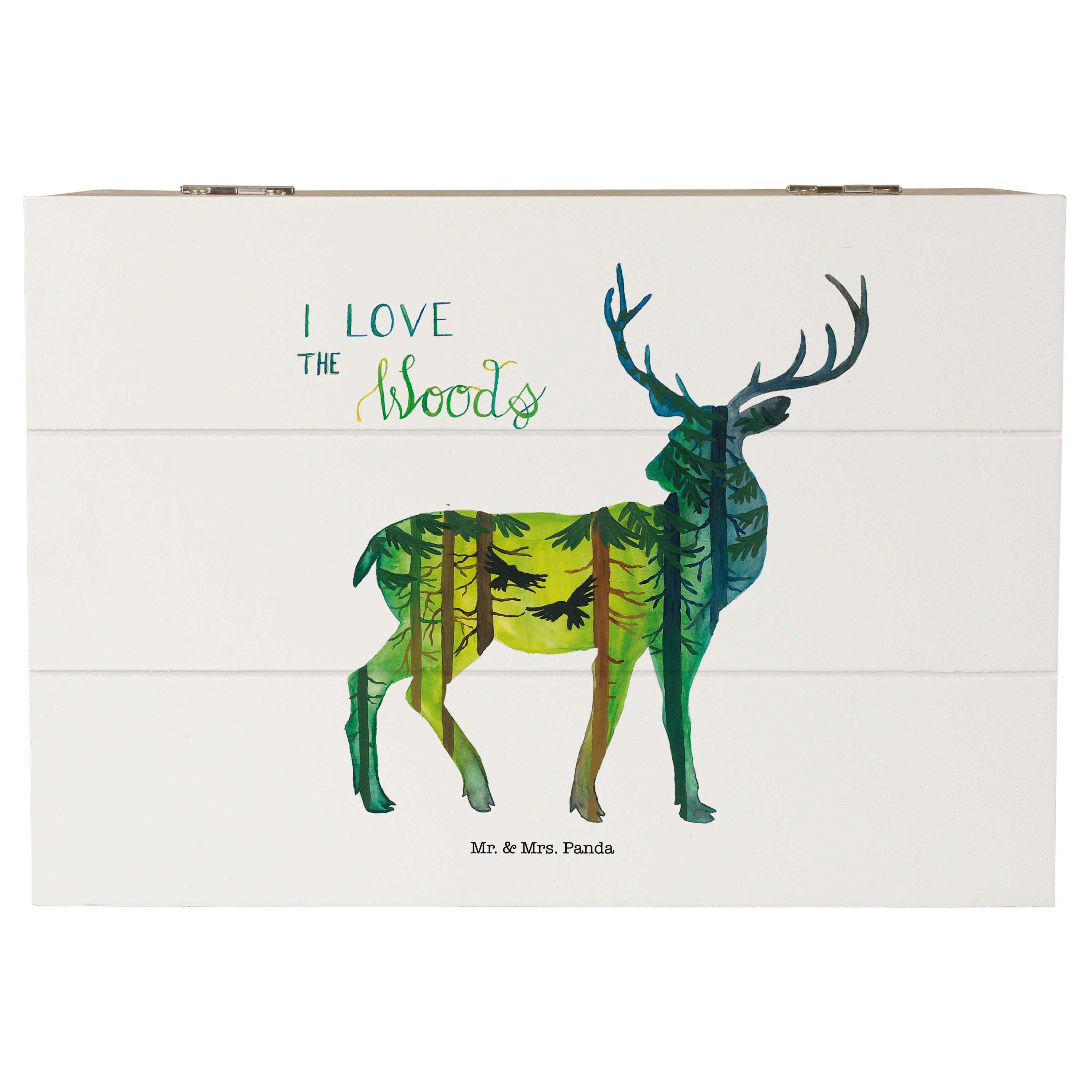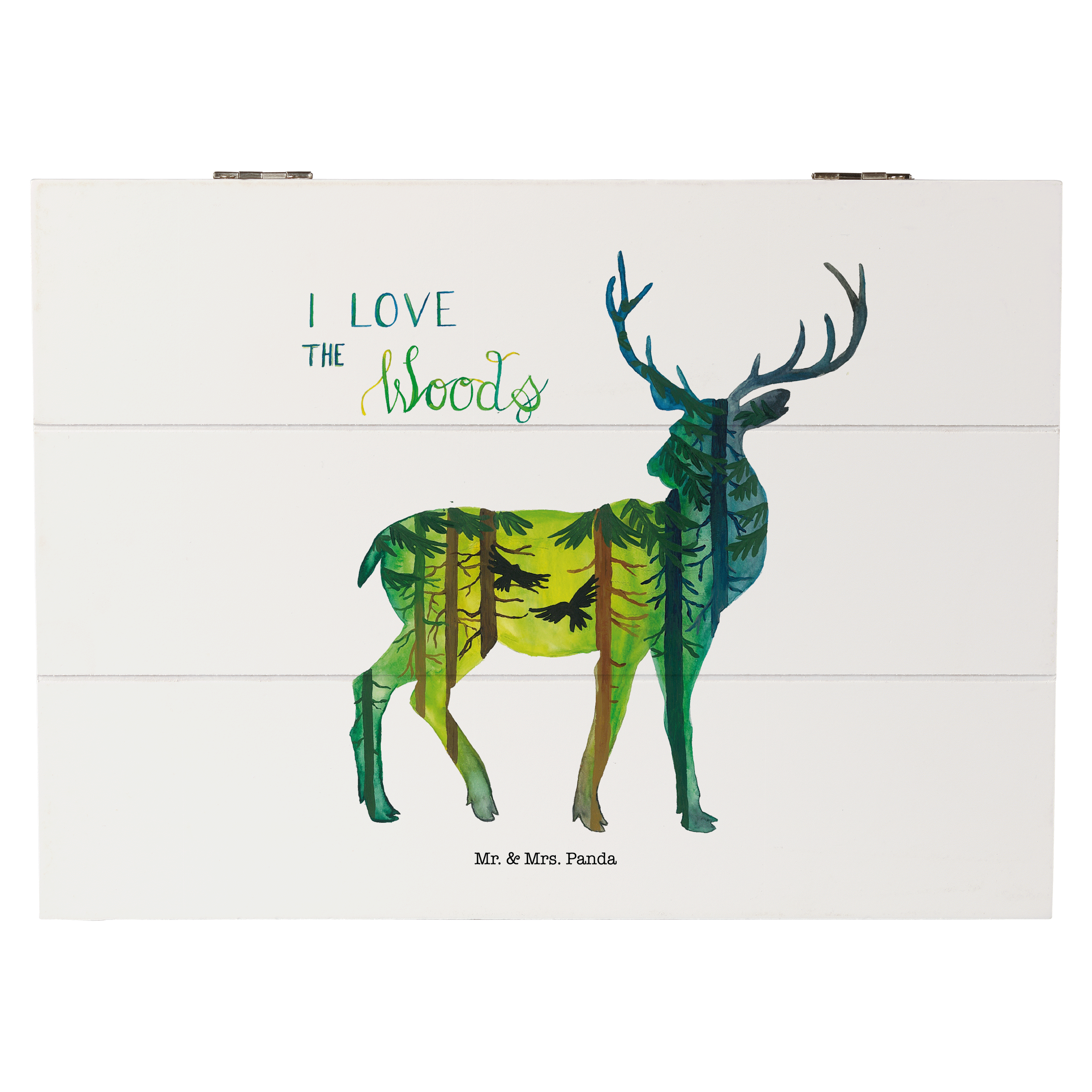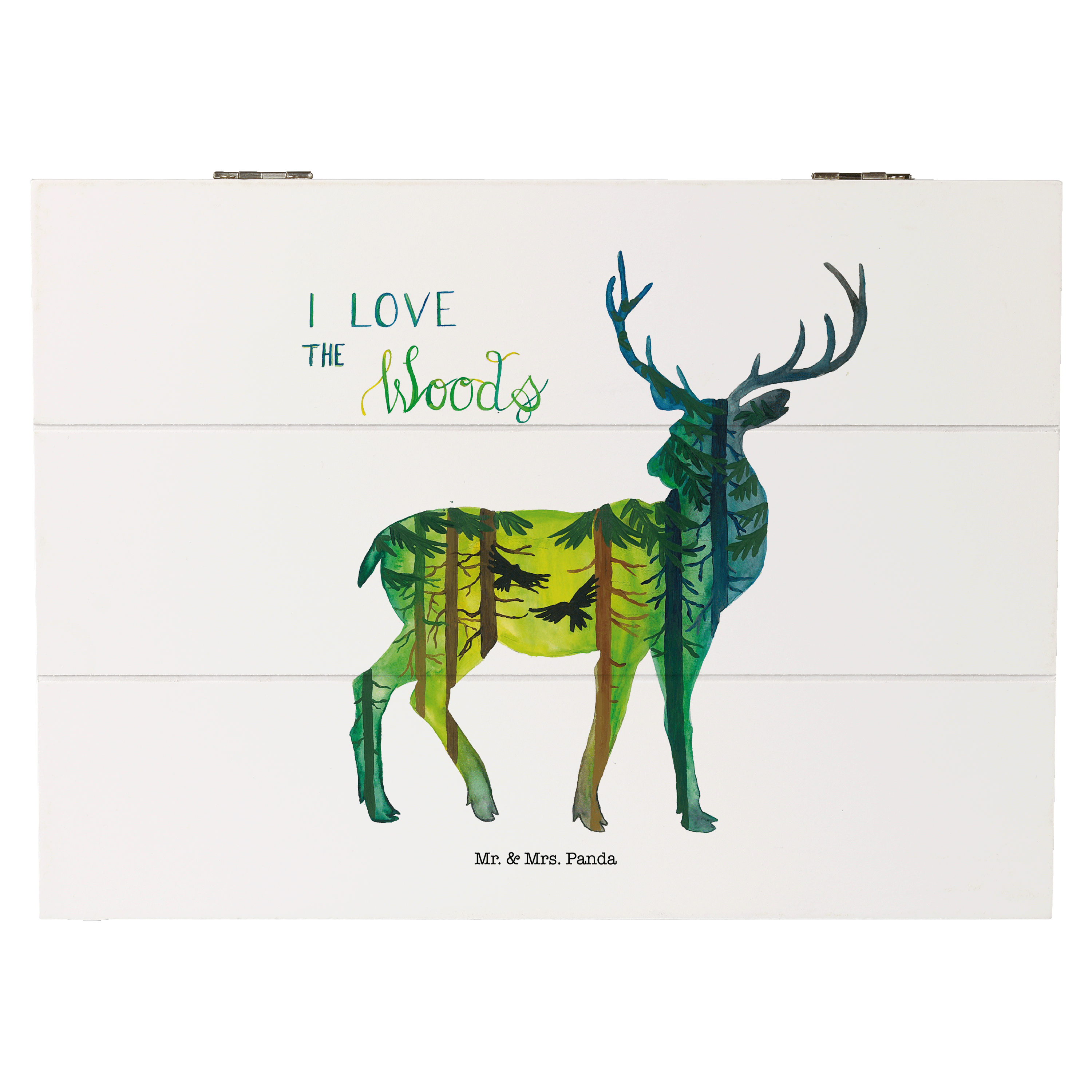 Holzkiste Hirsch I love the woods - Weiß - 19 x 12 cm