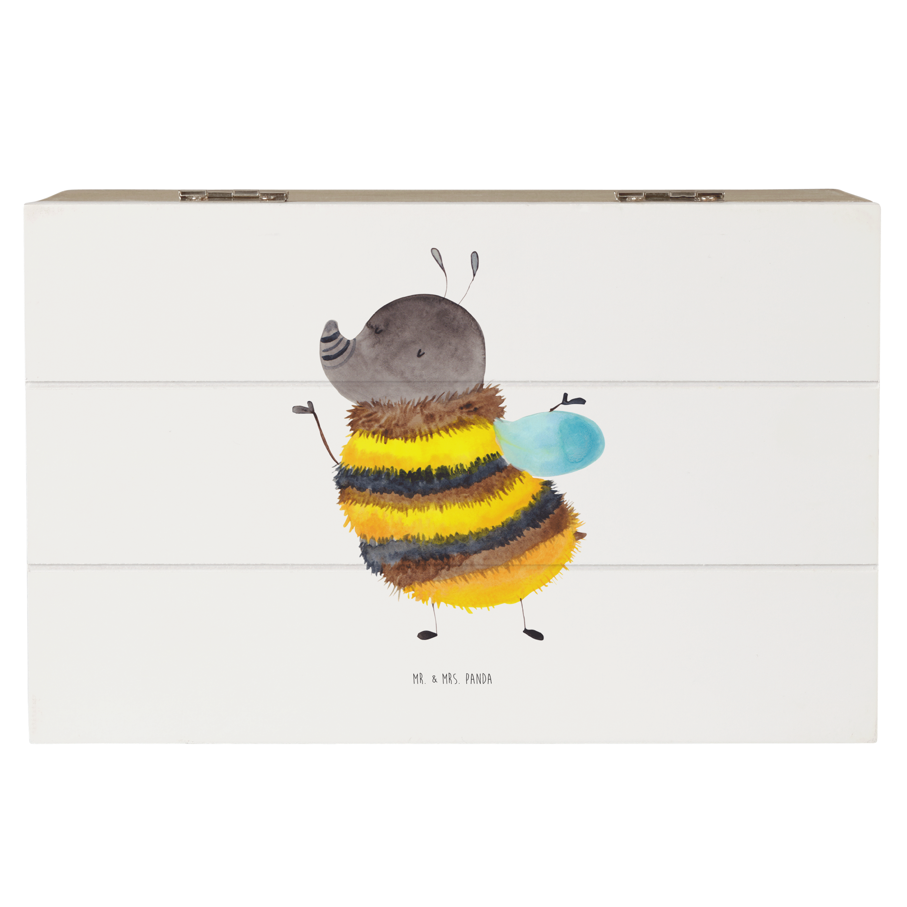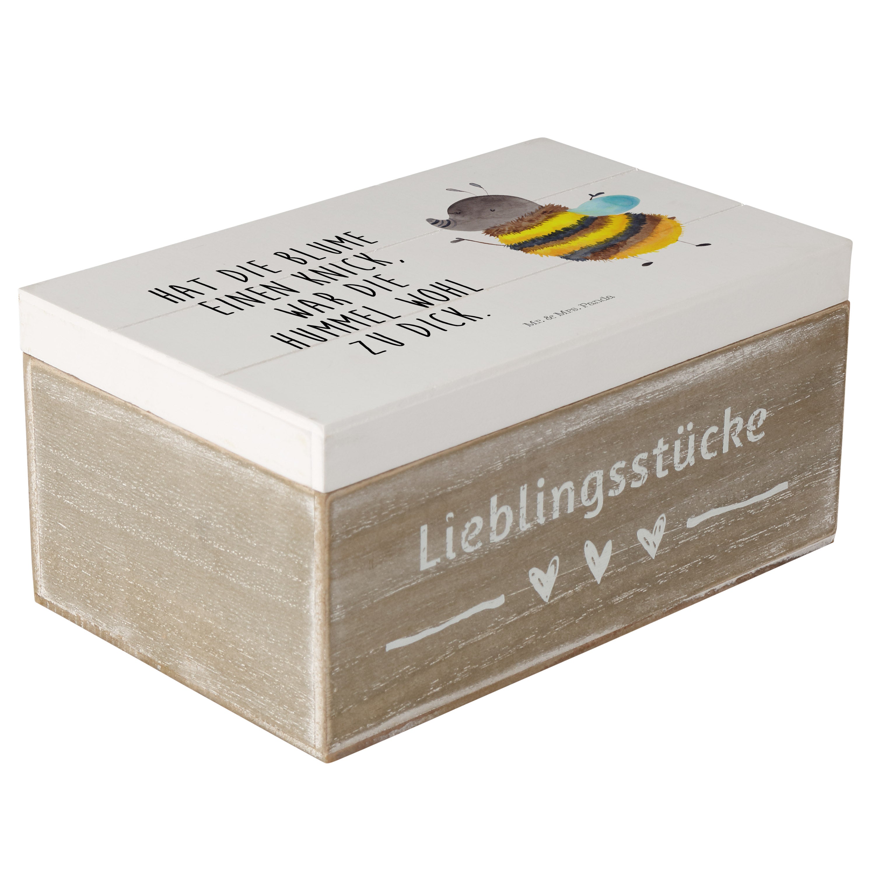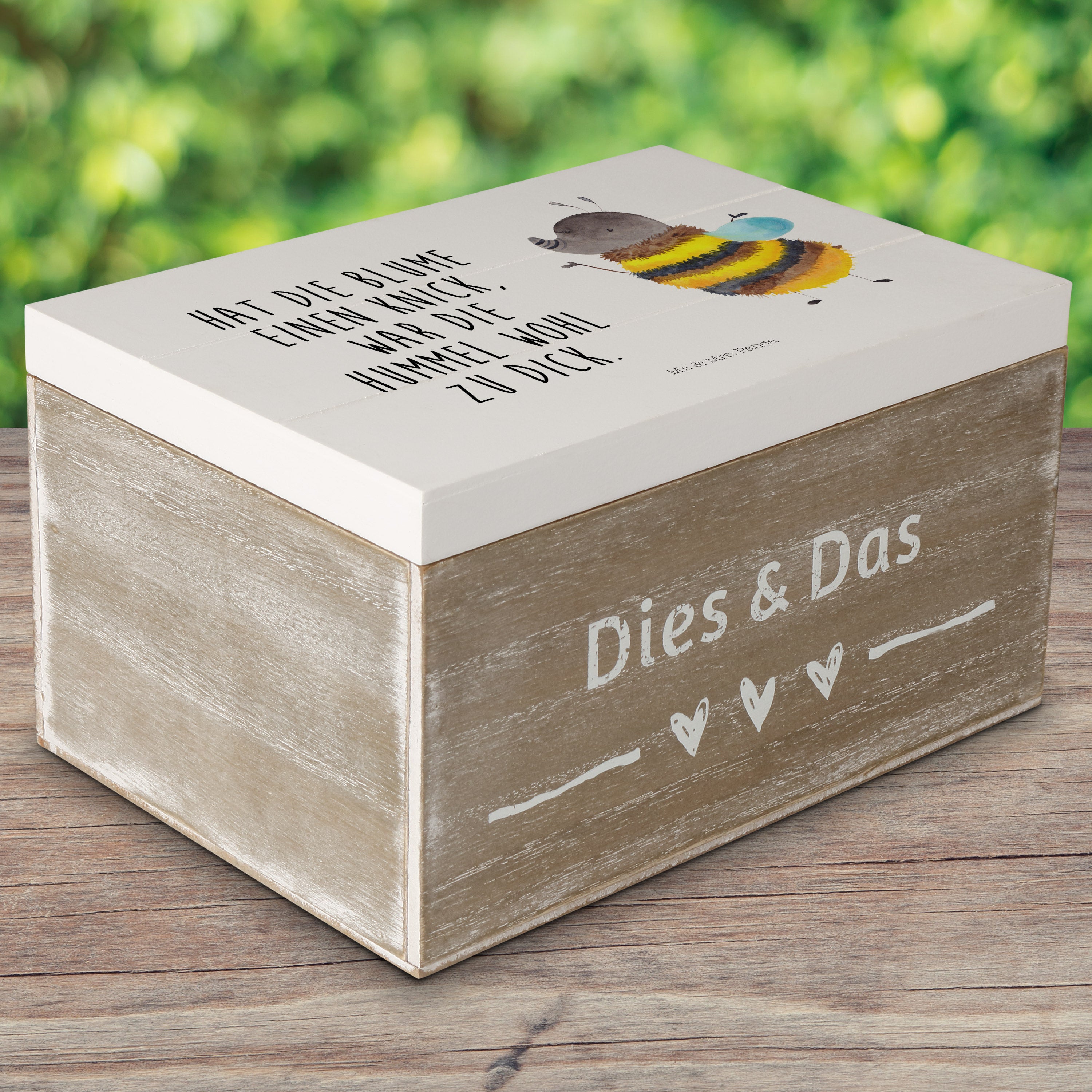 Holzkiste Hummel flauschig - 25 x 18 cm - mit Spruch - Weiß