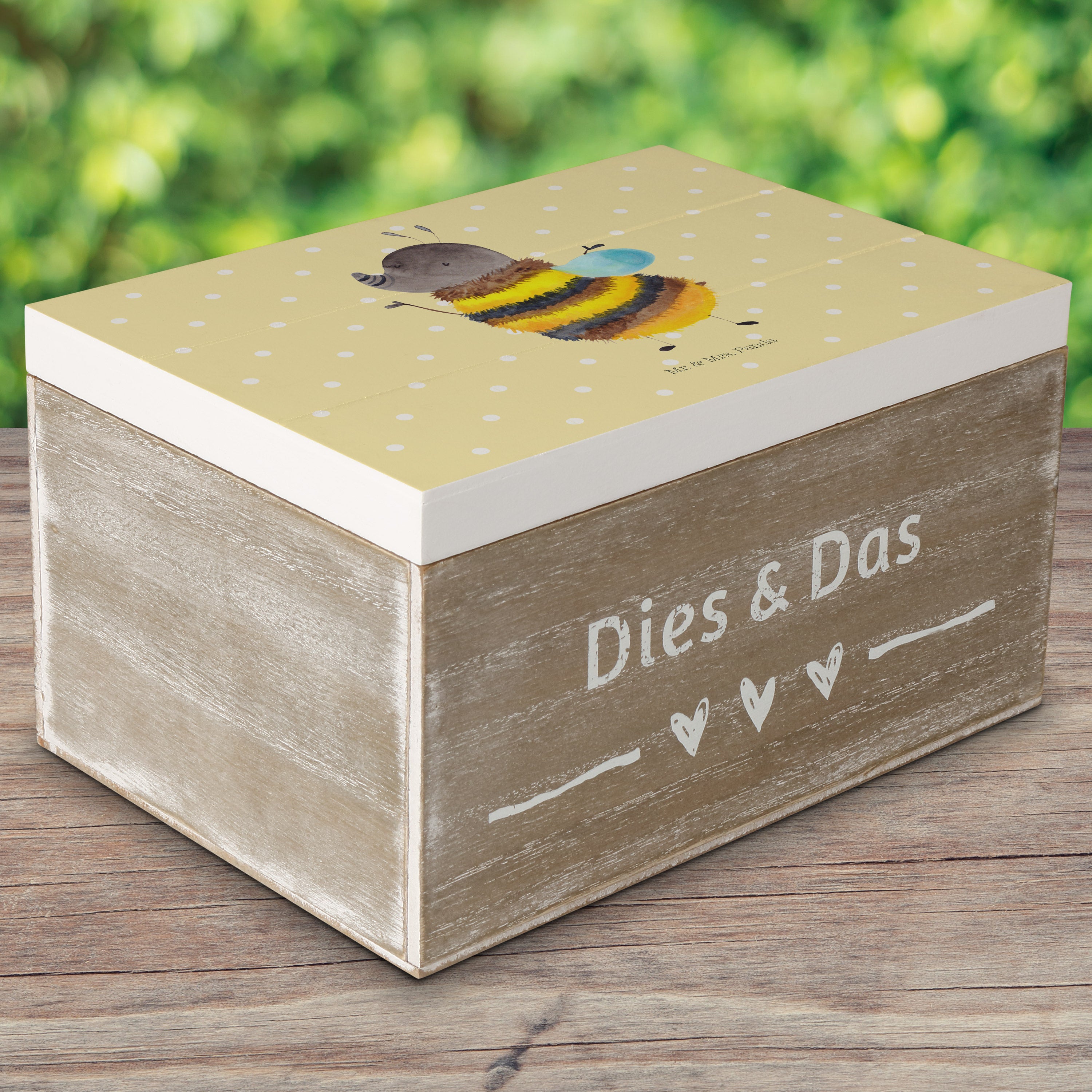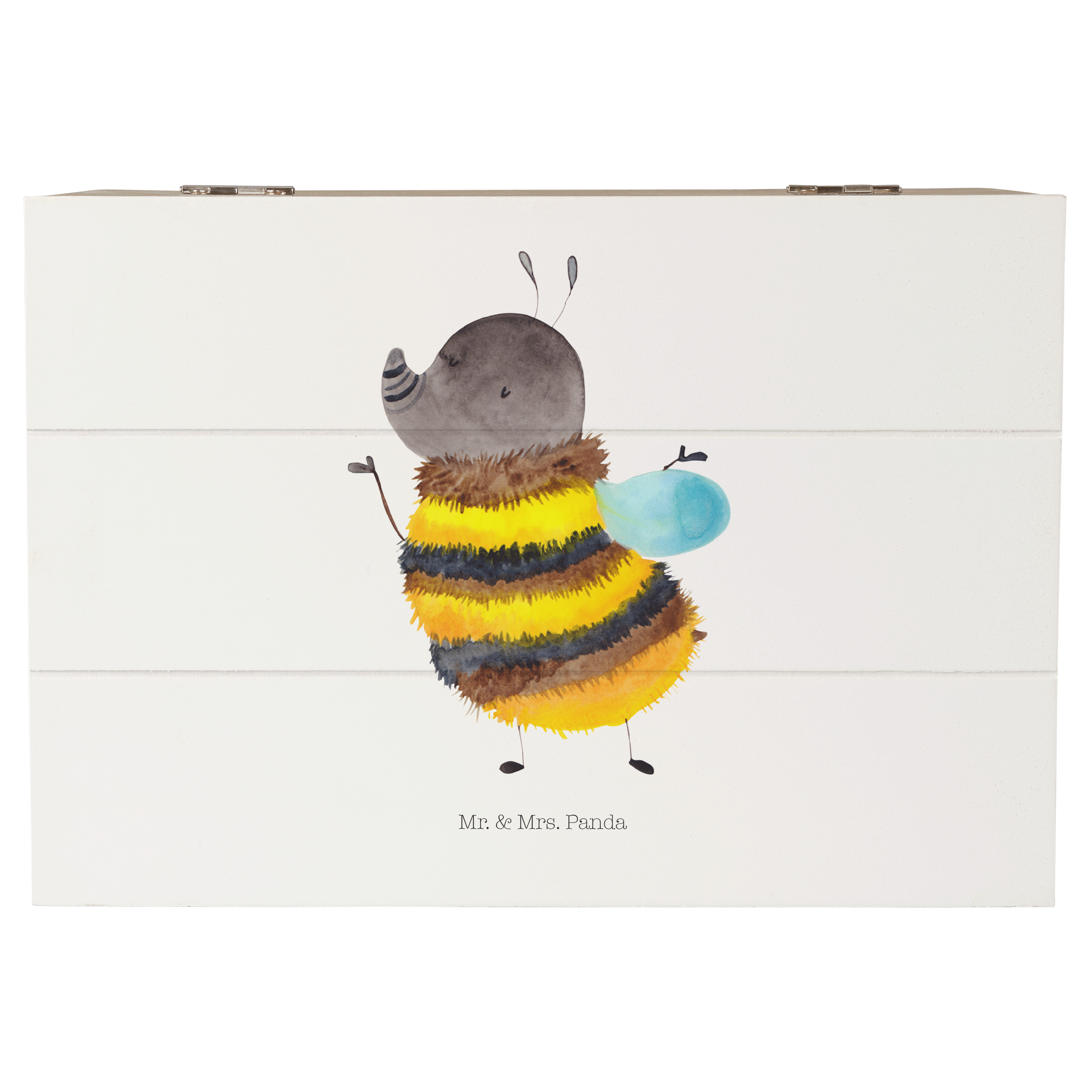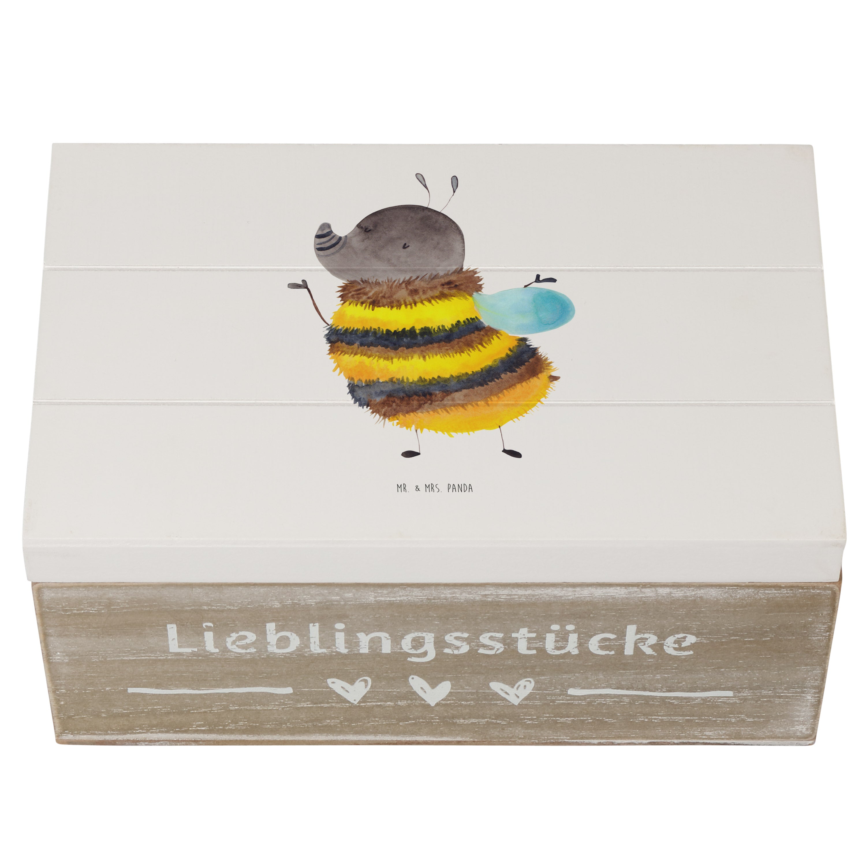 Holzkiste Hummel flauschig - 25 x 18 cm - mit Spruch - Weiß