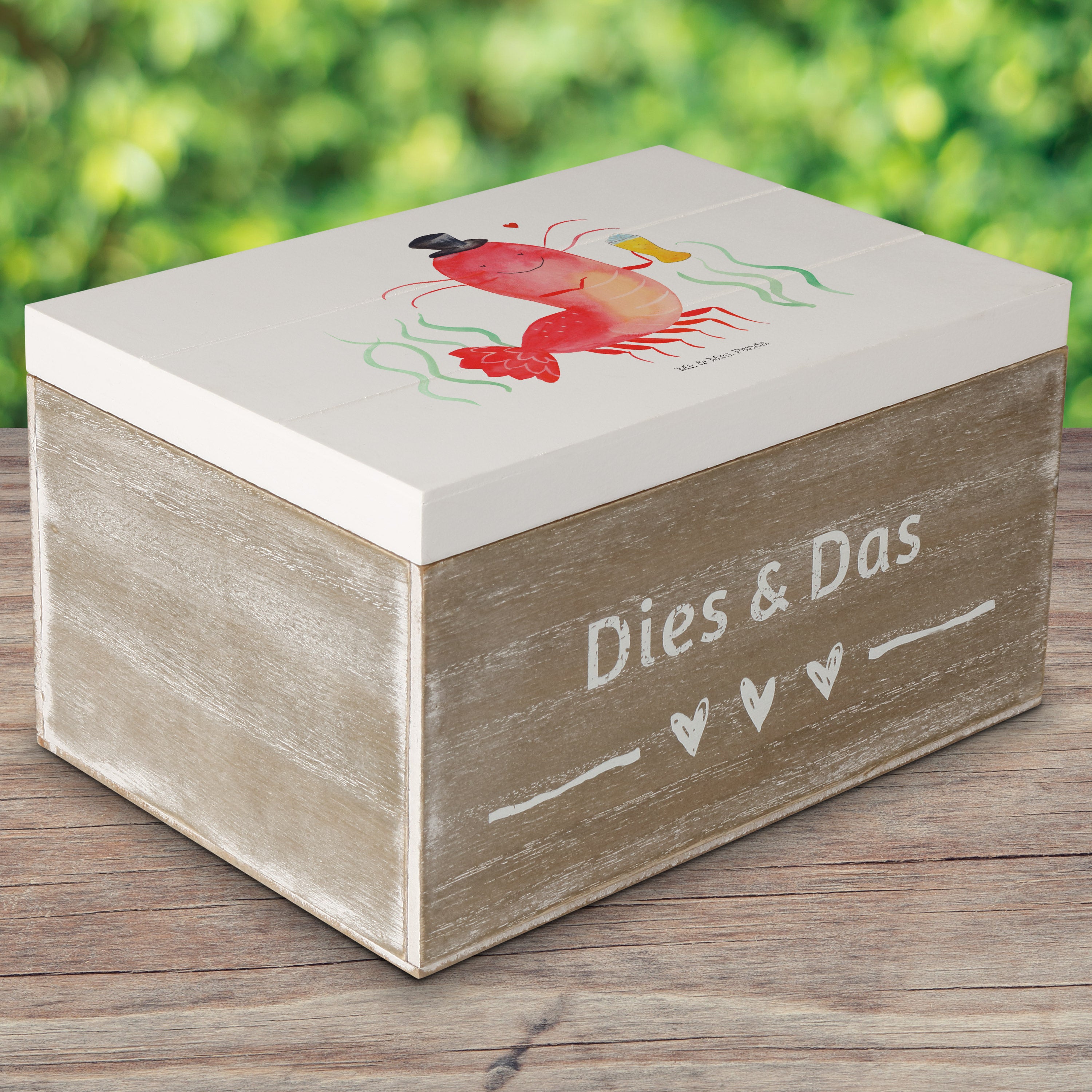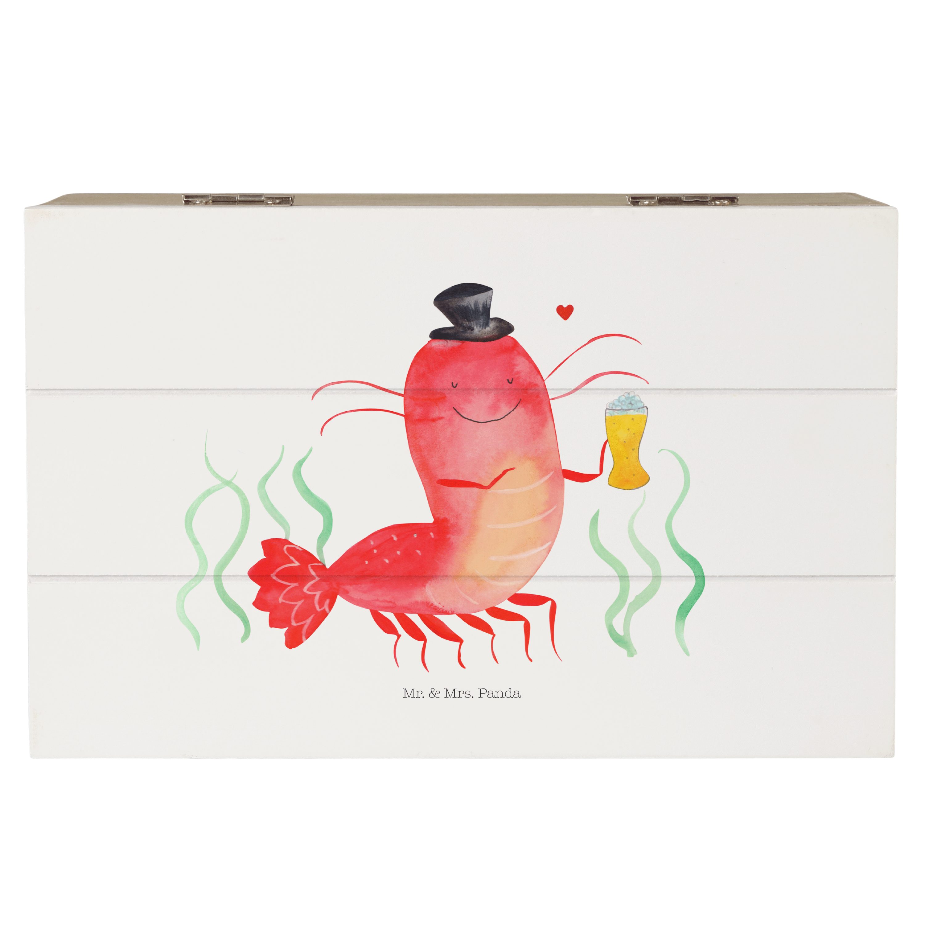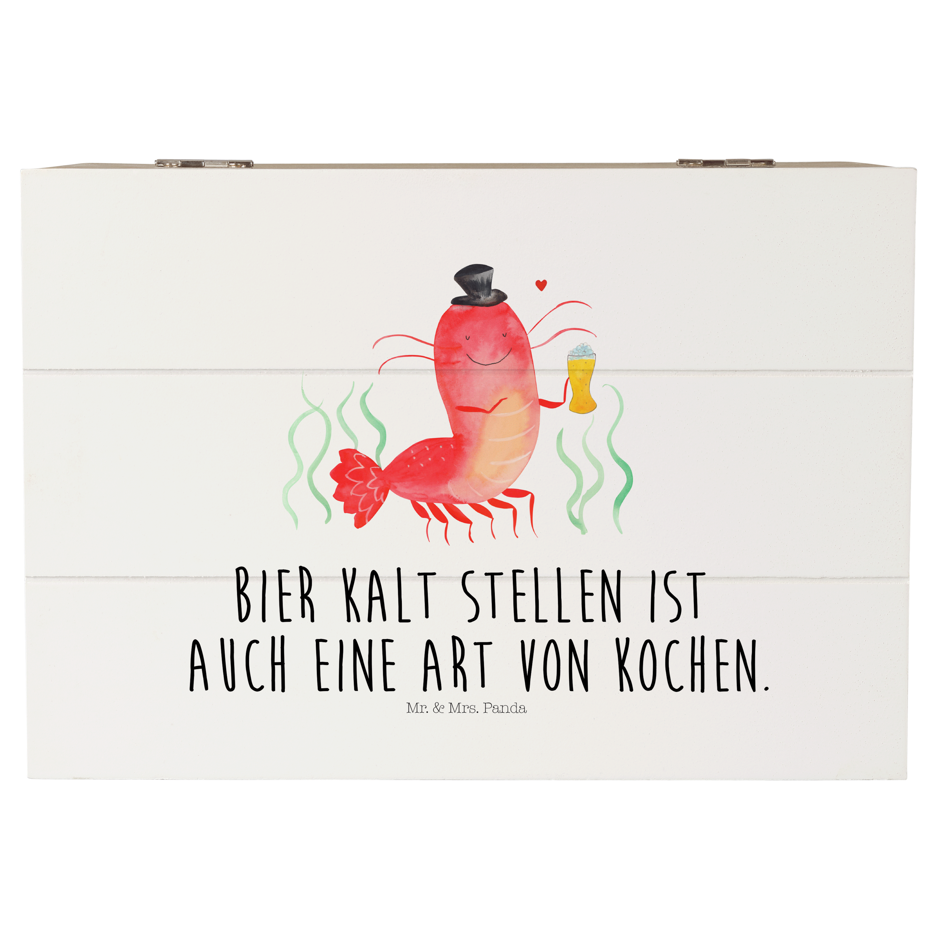 Holzkiste Hummer mit Weizen - 25 x 18 cm - mit Spruch - Weiß