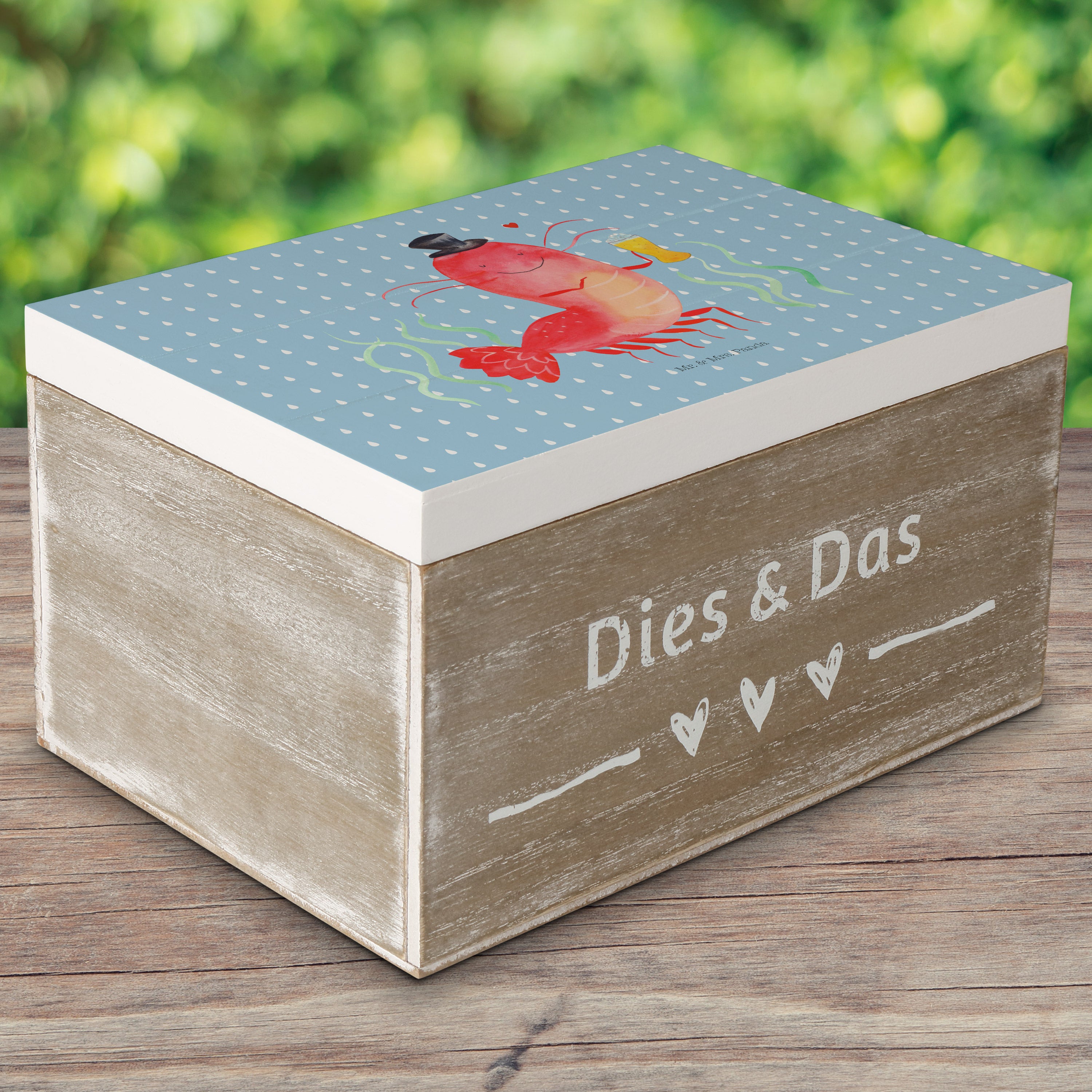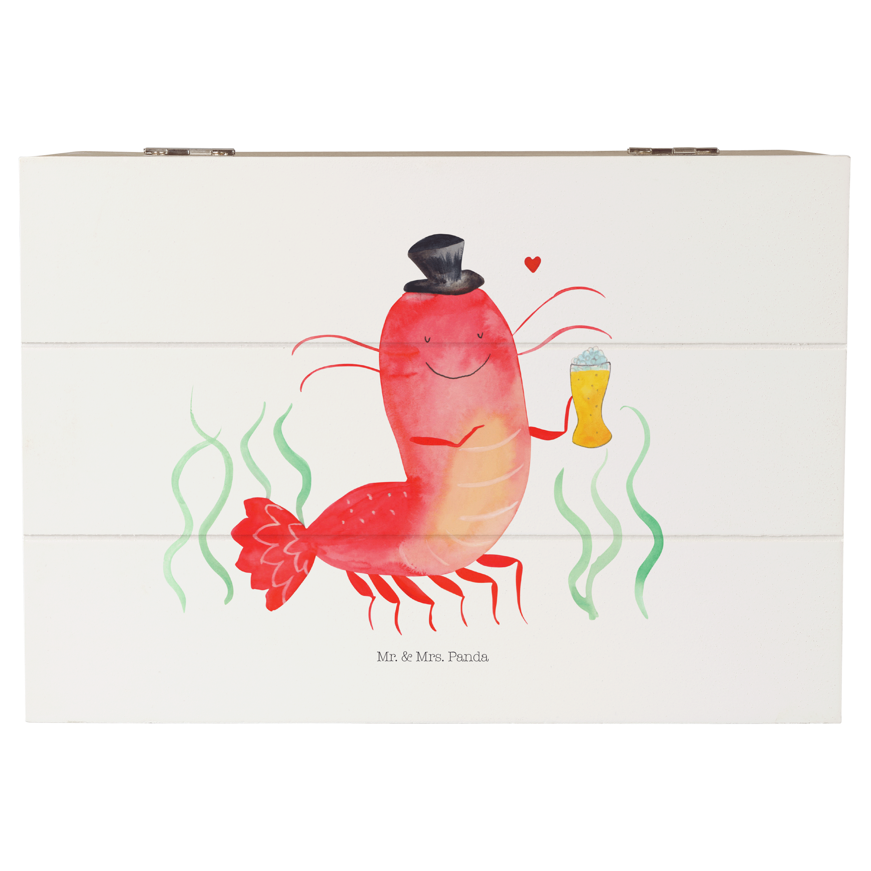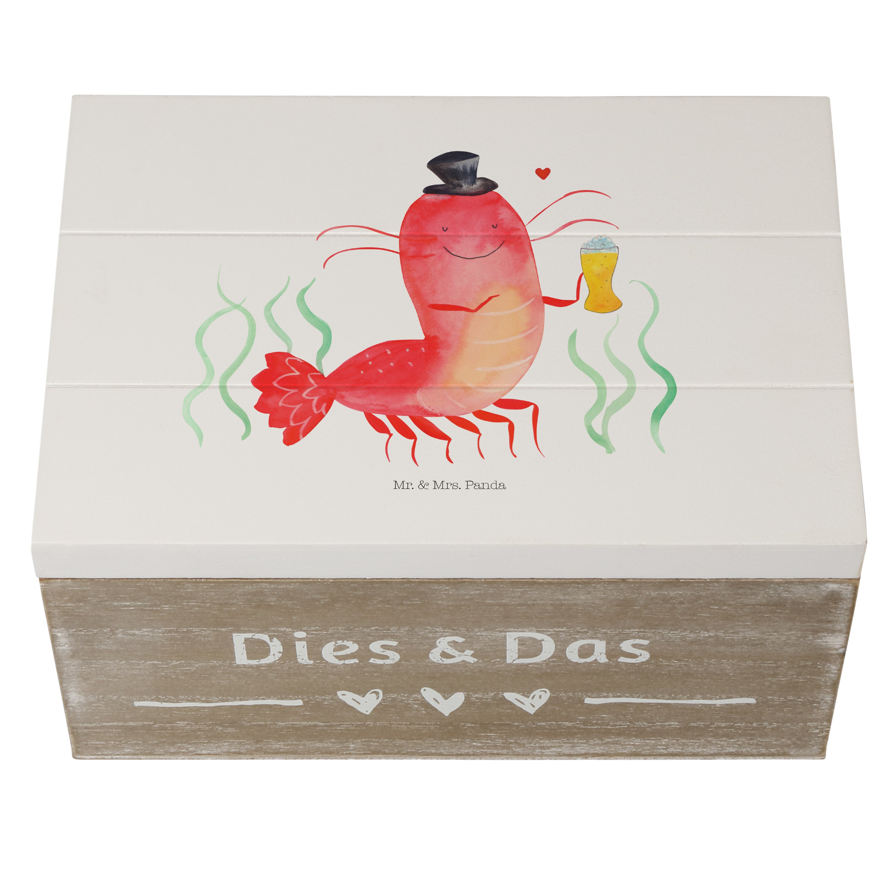 Holzkiste Hummer mit Weizen - 25 x 18 cm - mit Spruch - Weiß