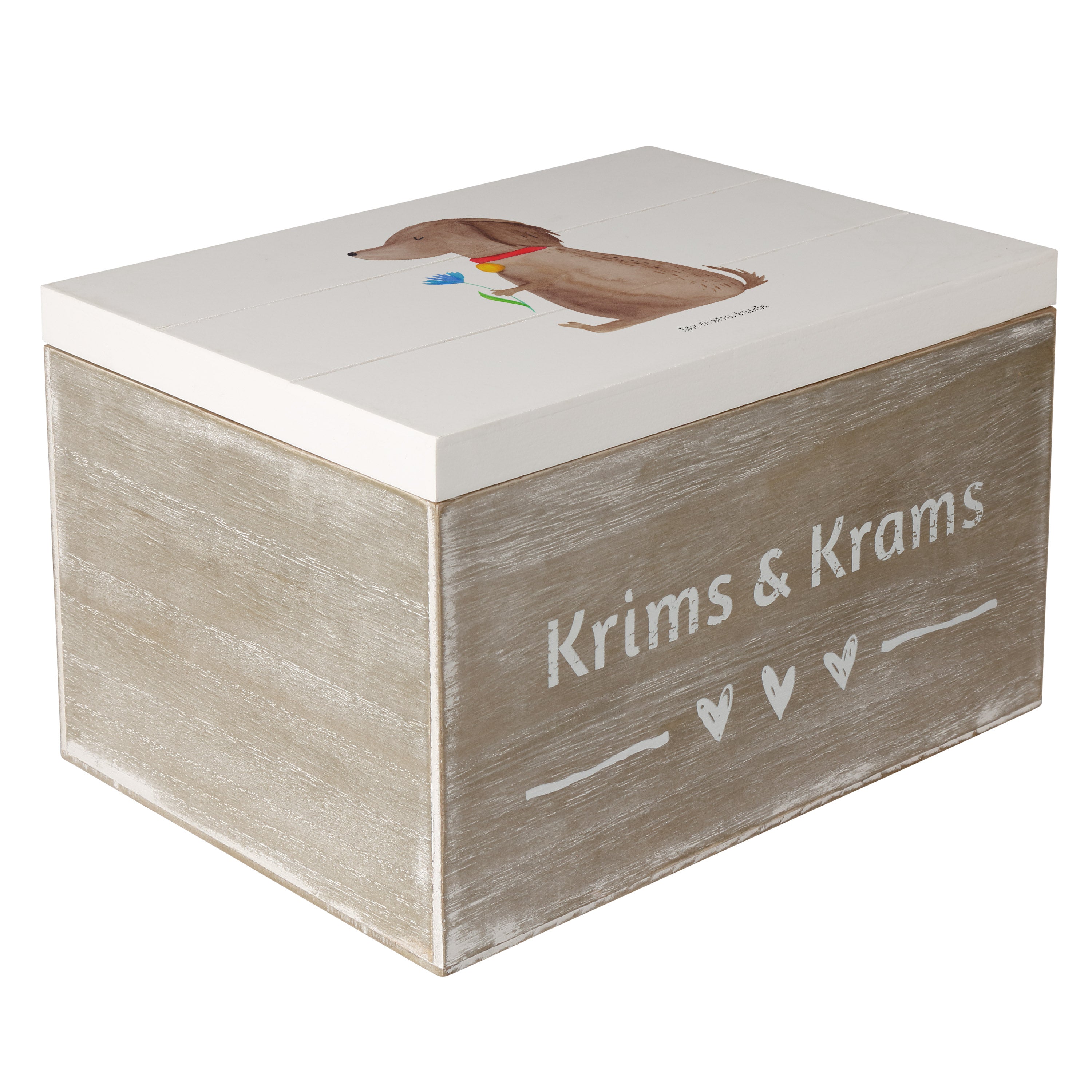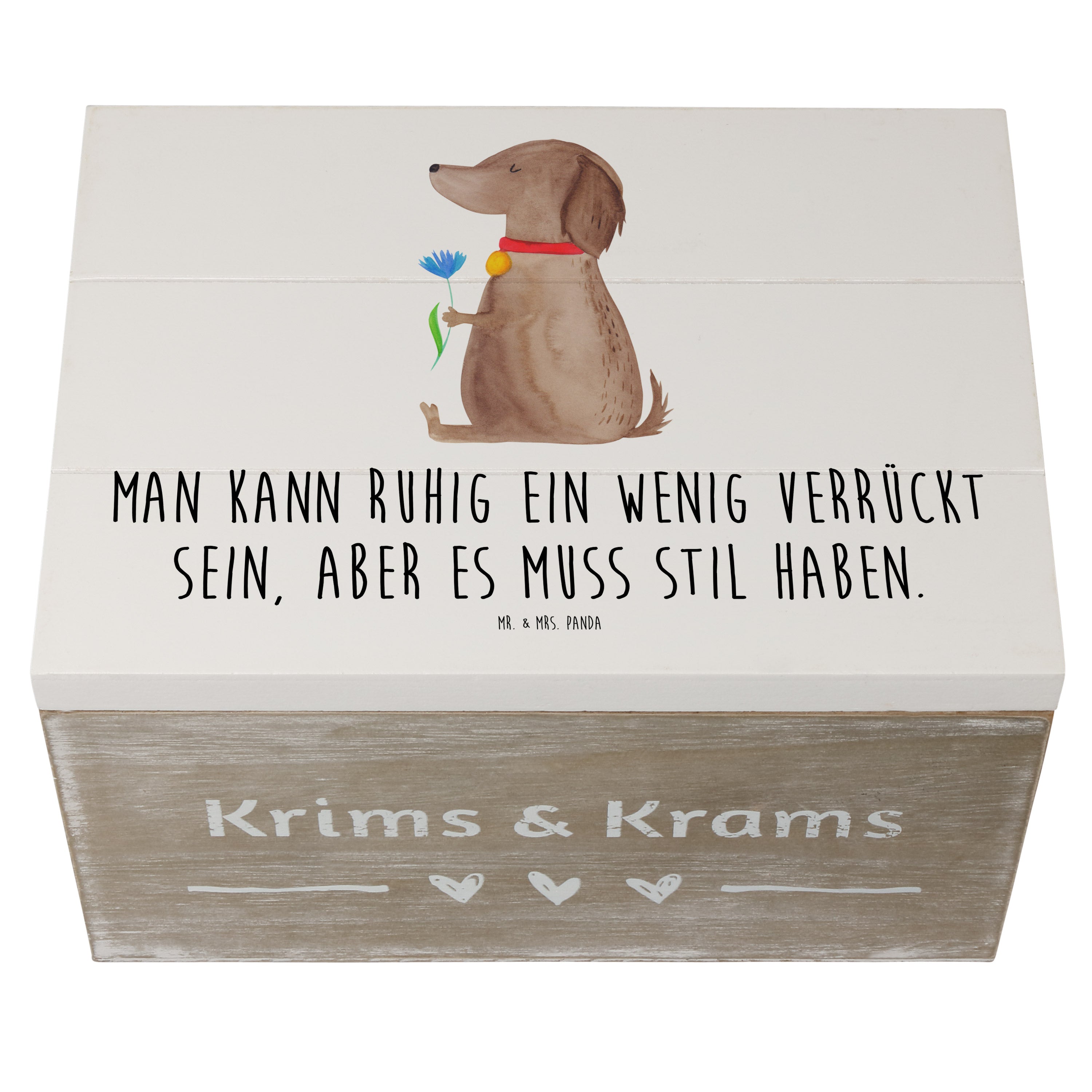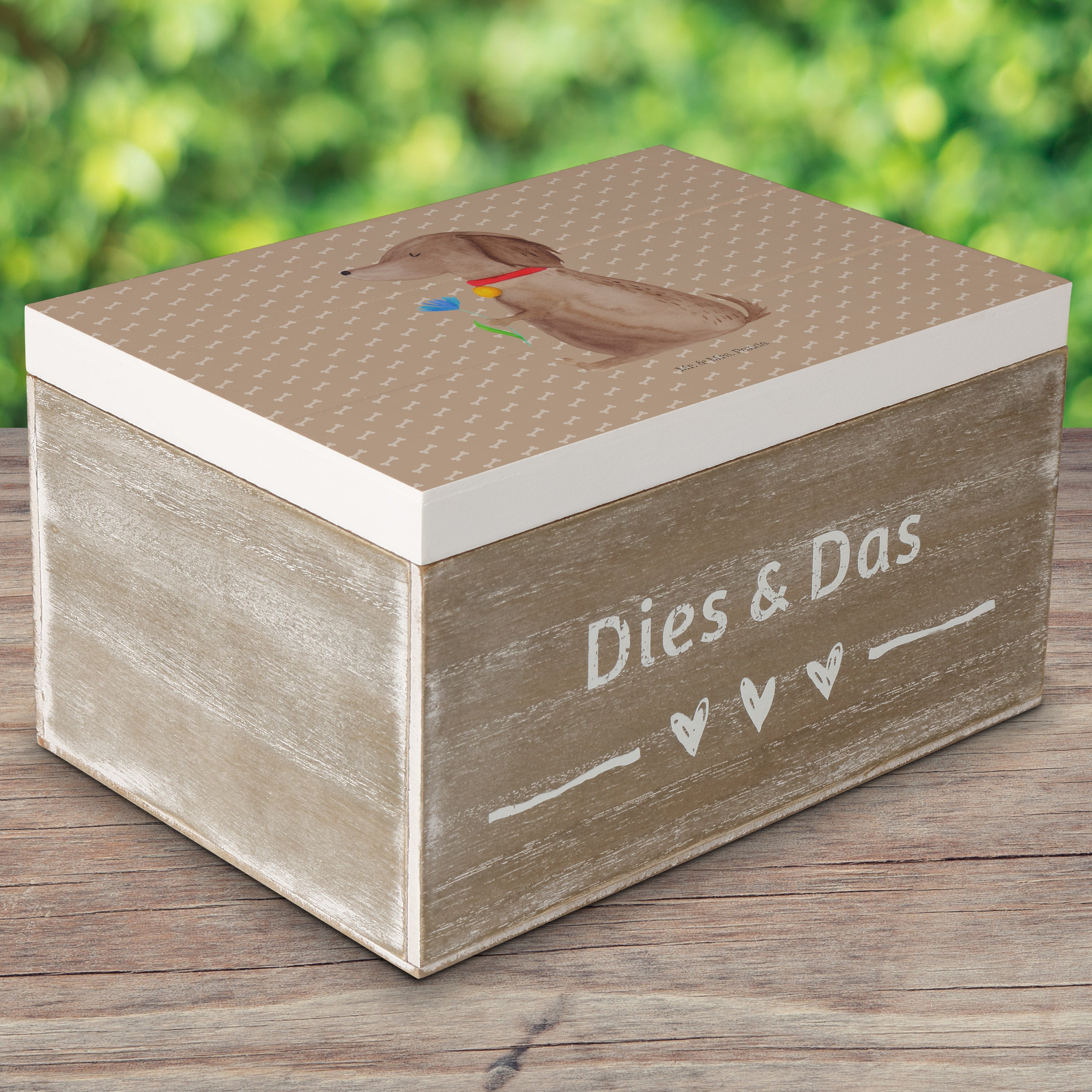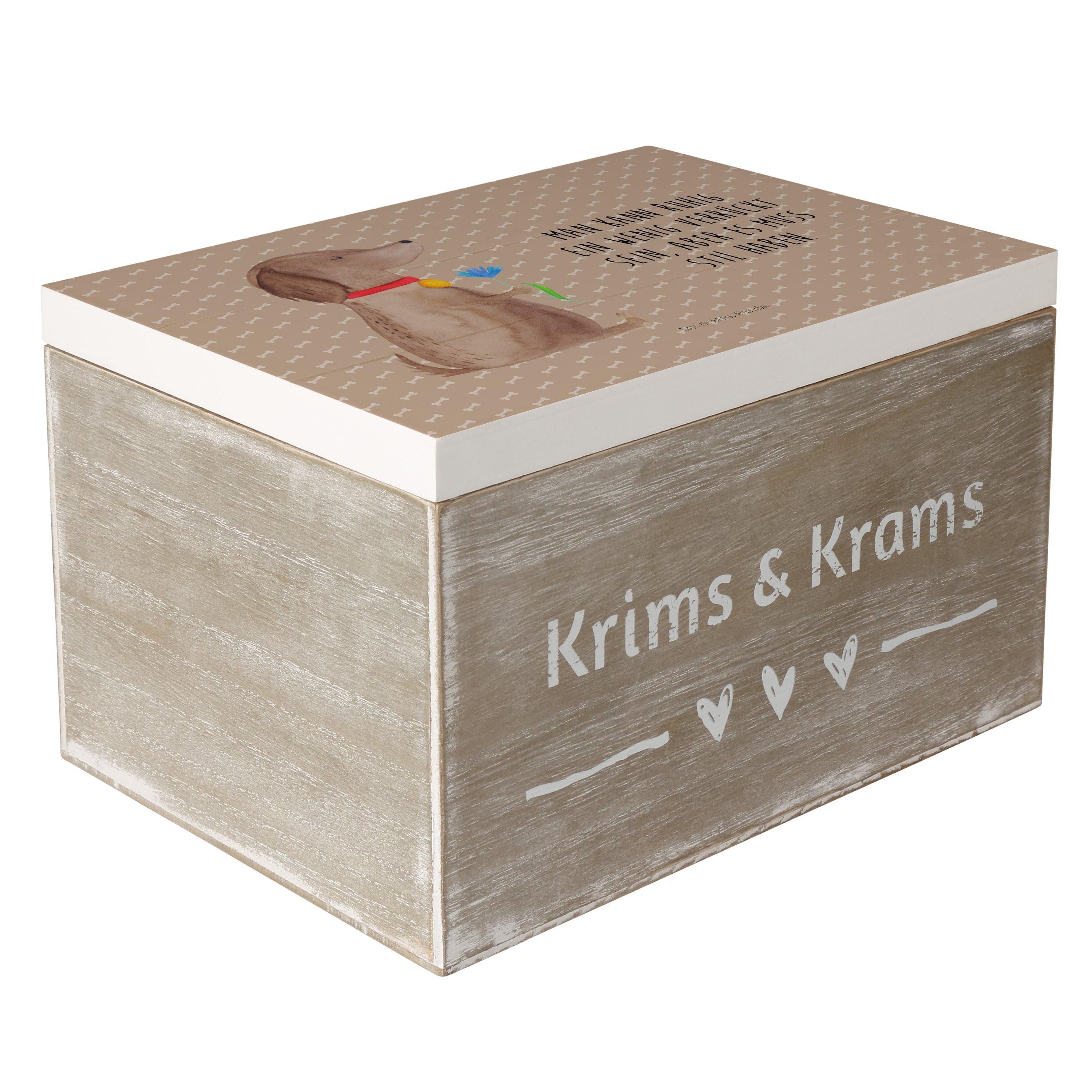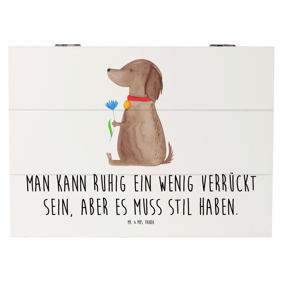 Holzkiste Hund Blume - 25 x 18 cm - mit Spruch - Weiß