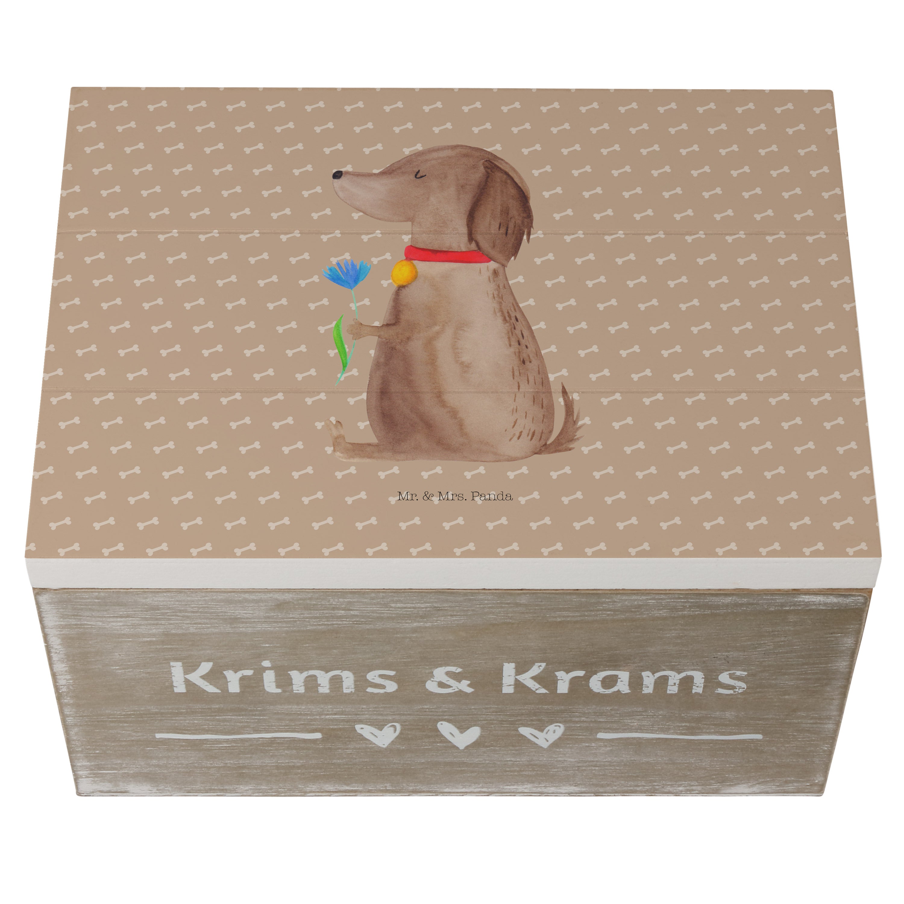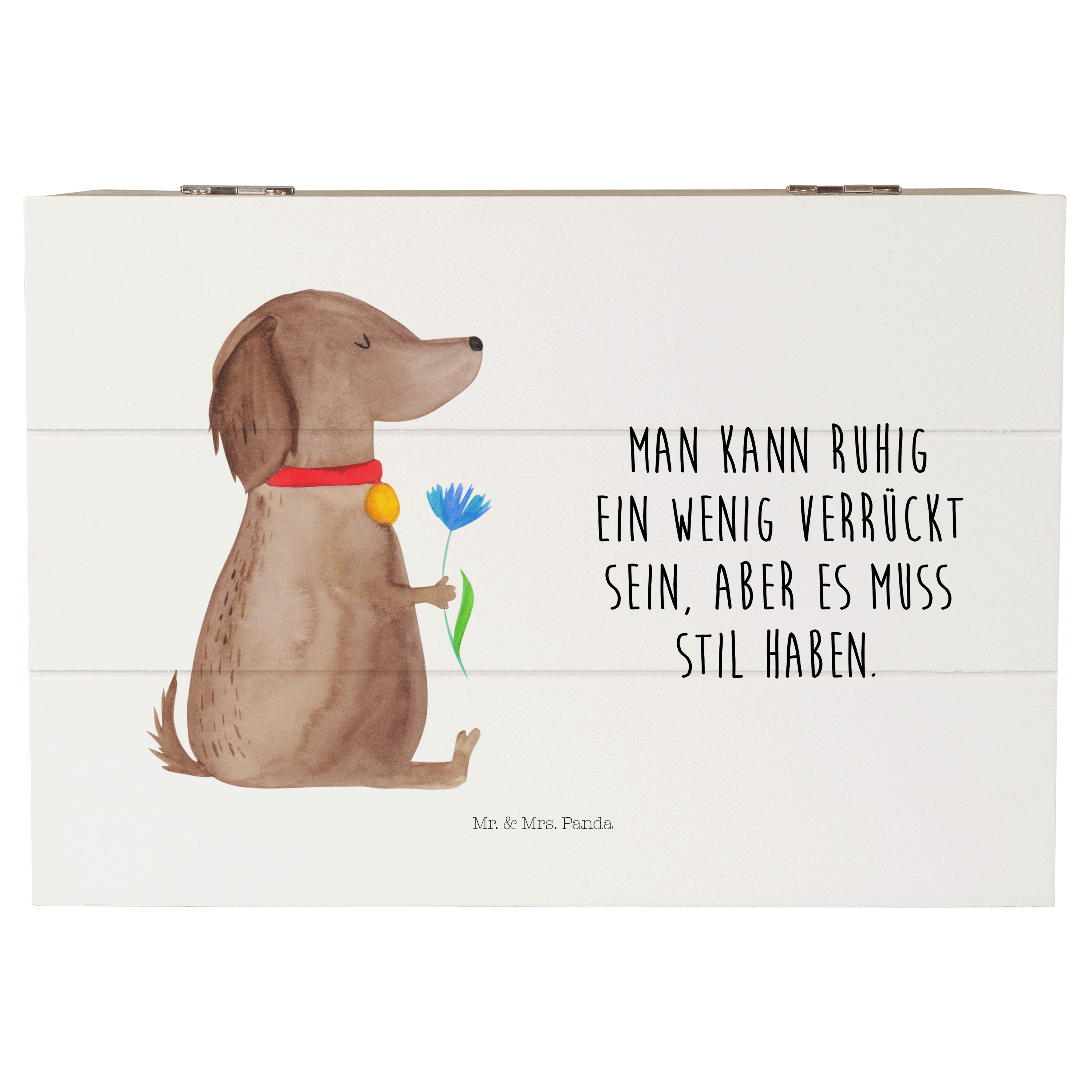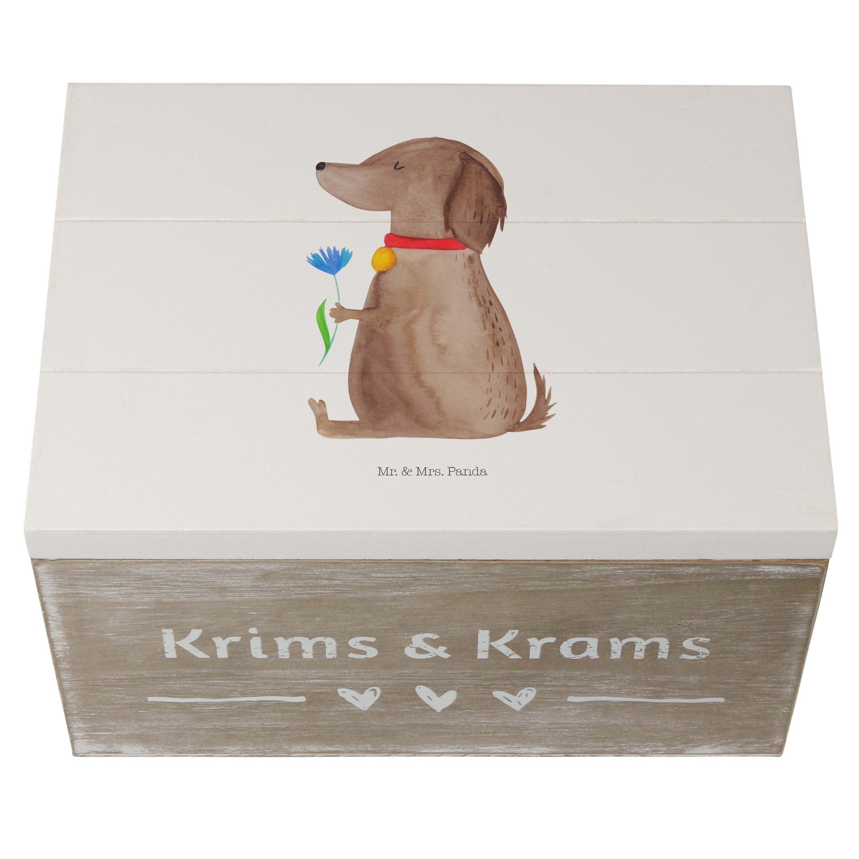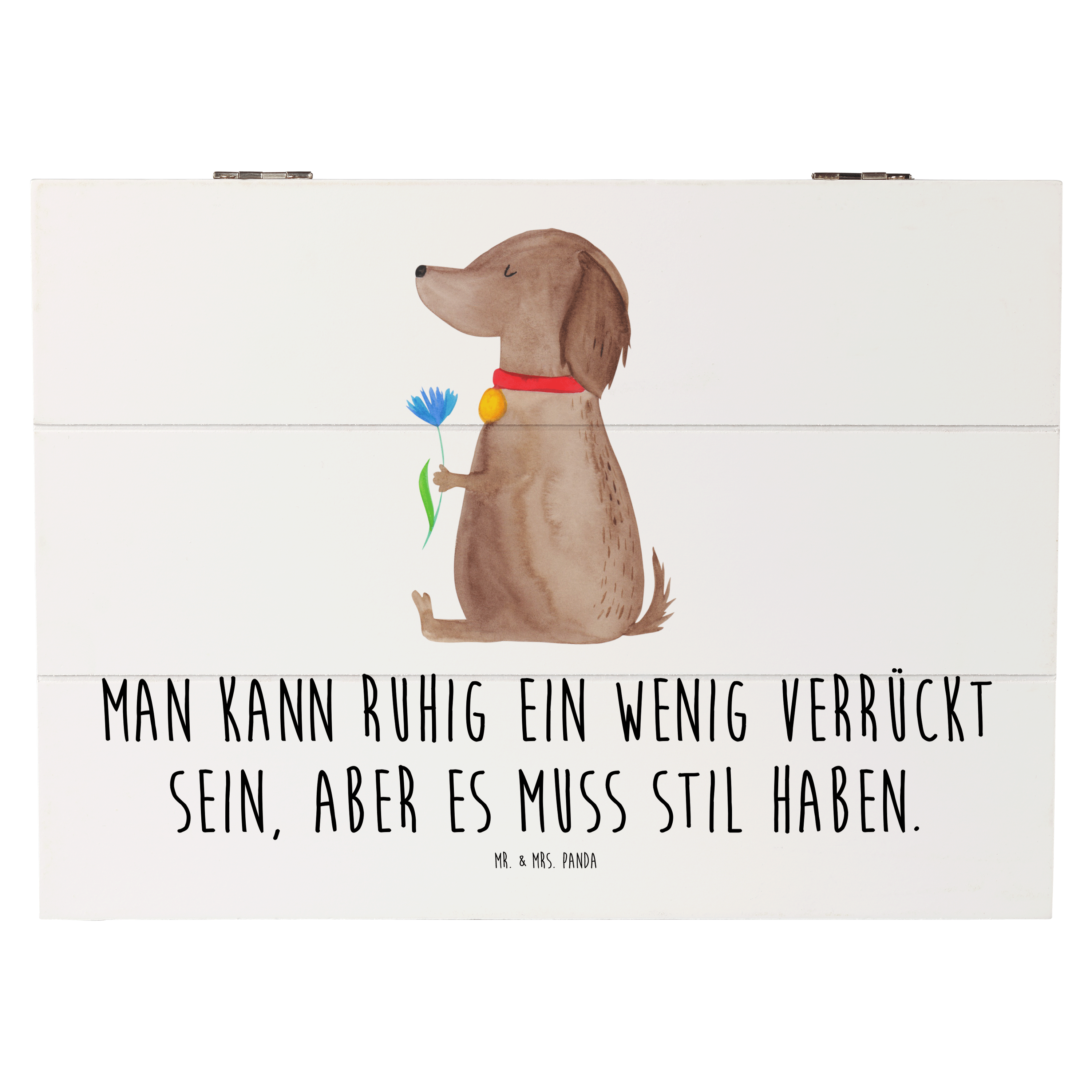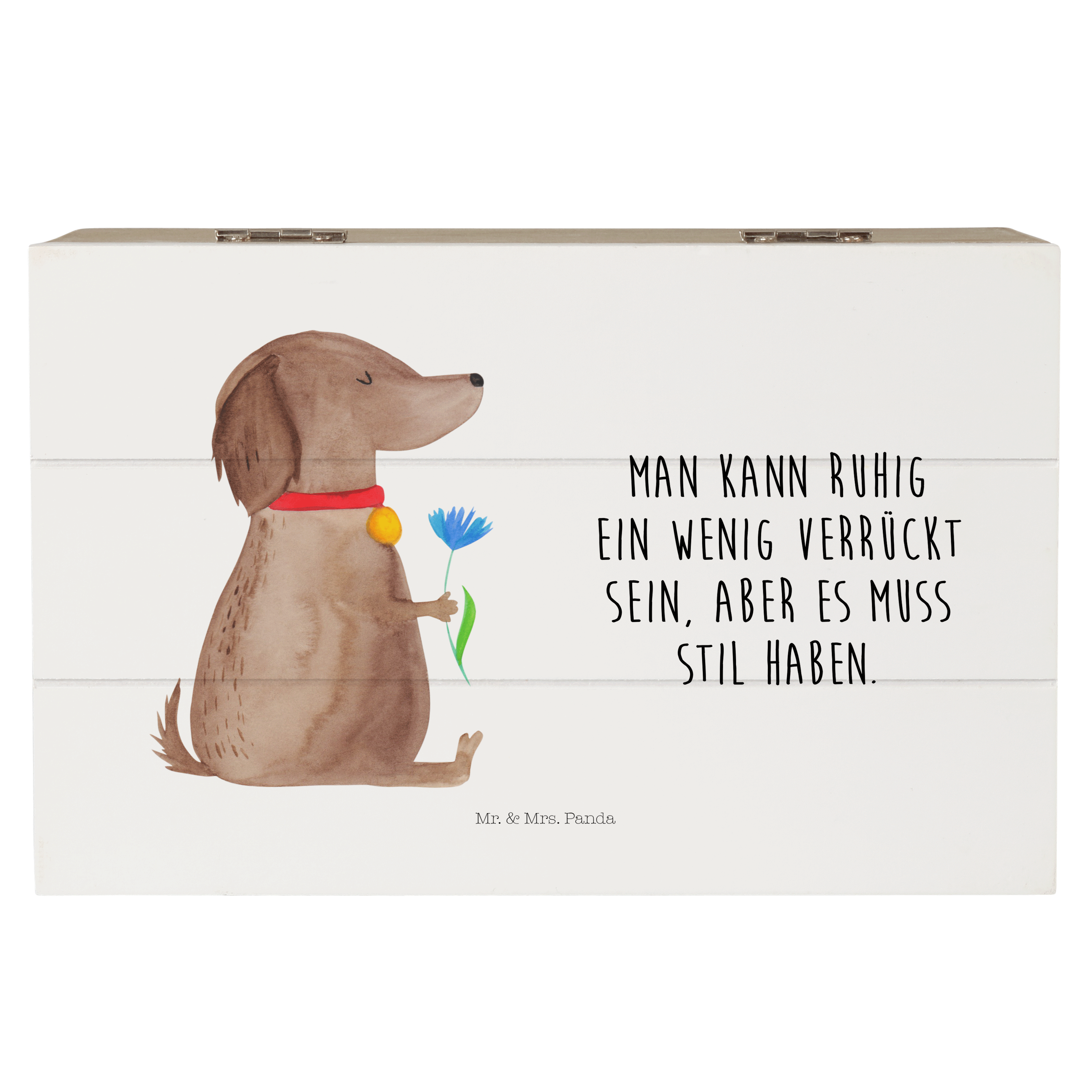 Holzkiste Hund Blume - 25 x 18 cm - mit Spruch - Weiß