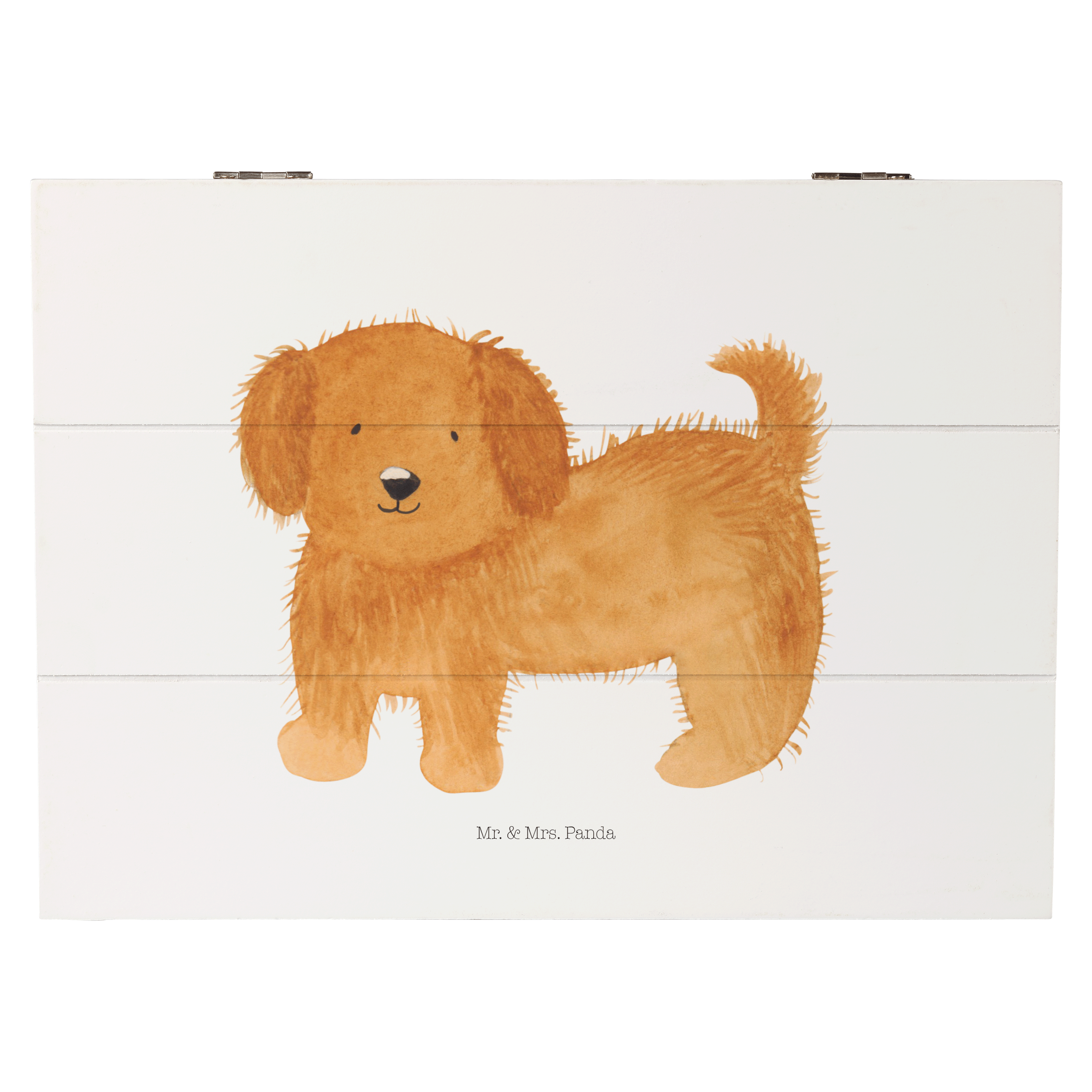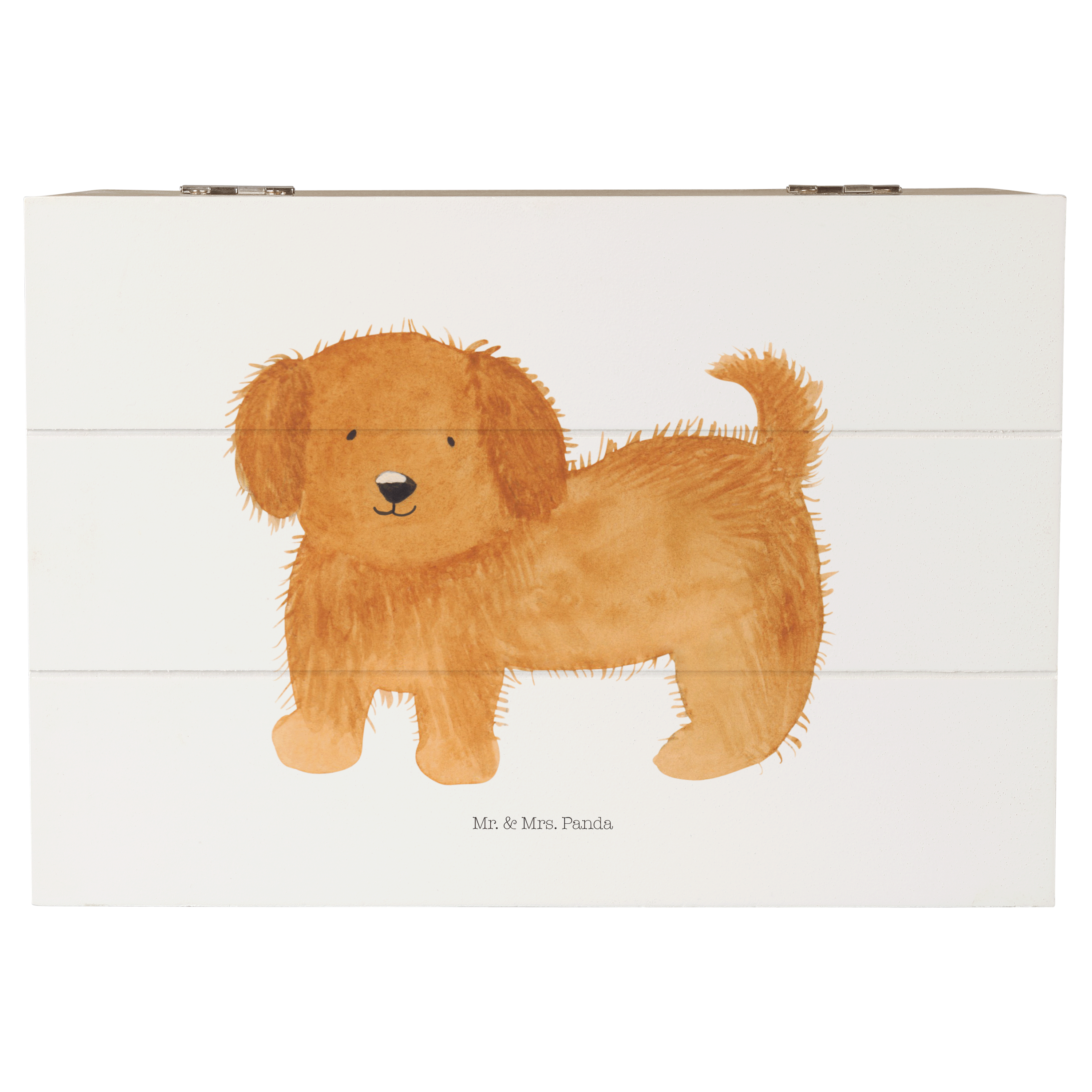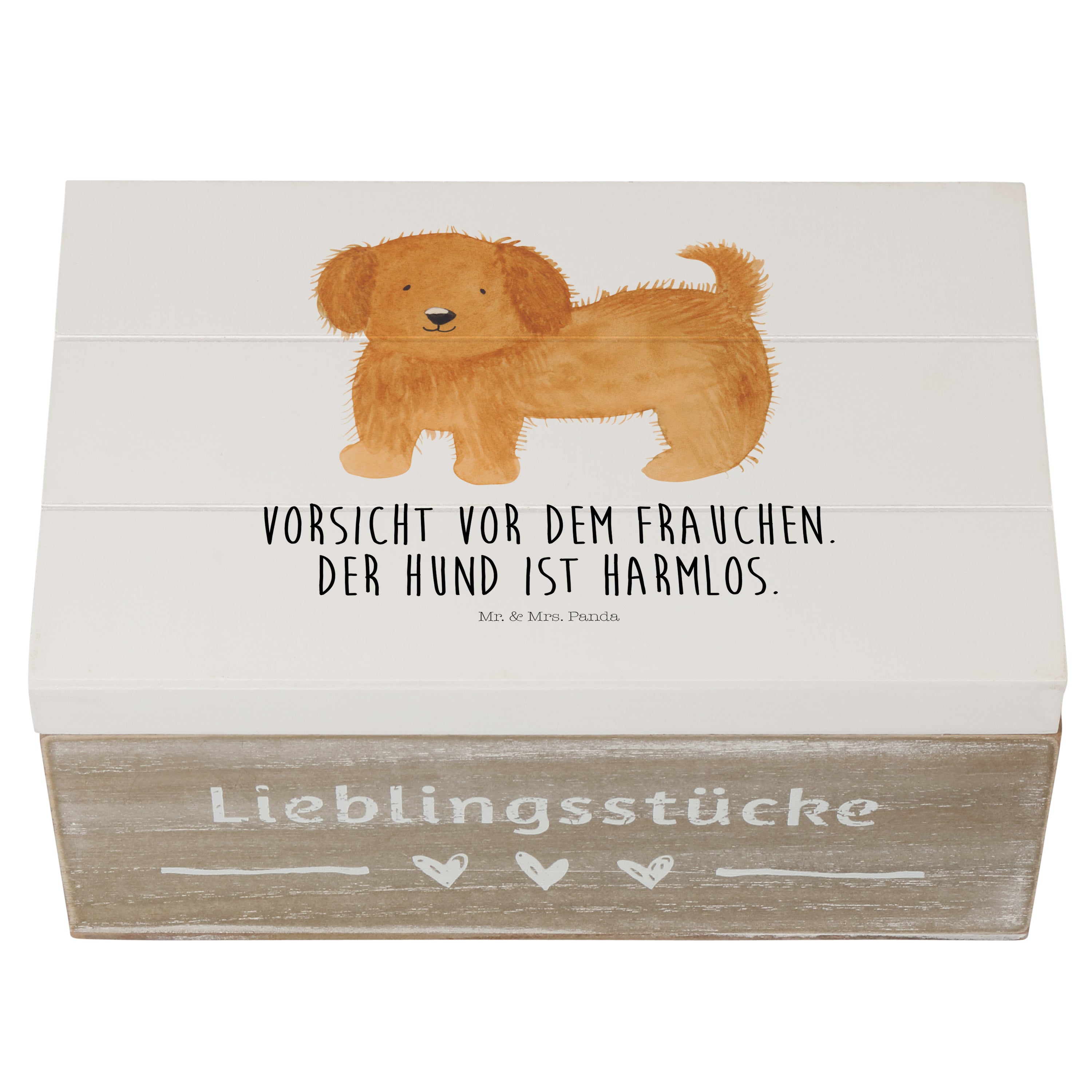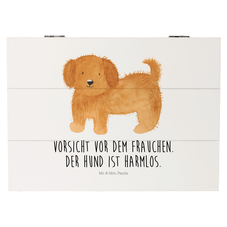 Holzkiste Hund flauschig - 25 x 18 cm - mit Spruch - Weiß