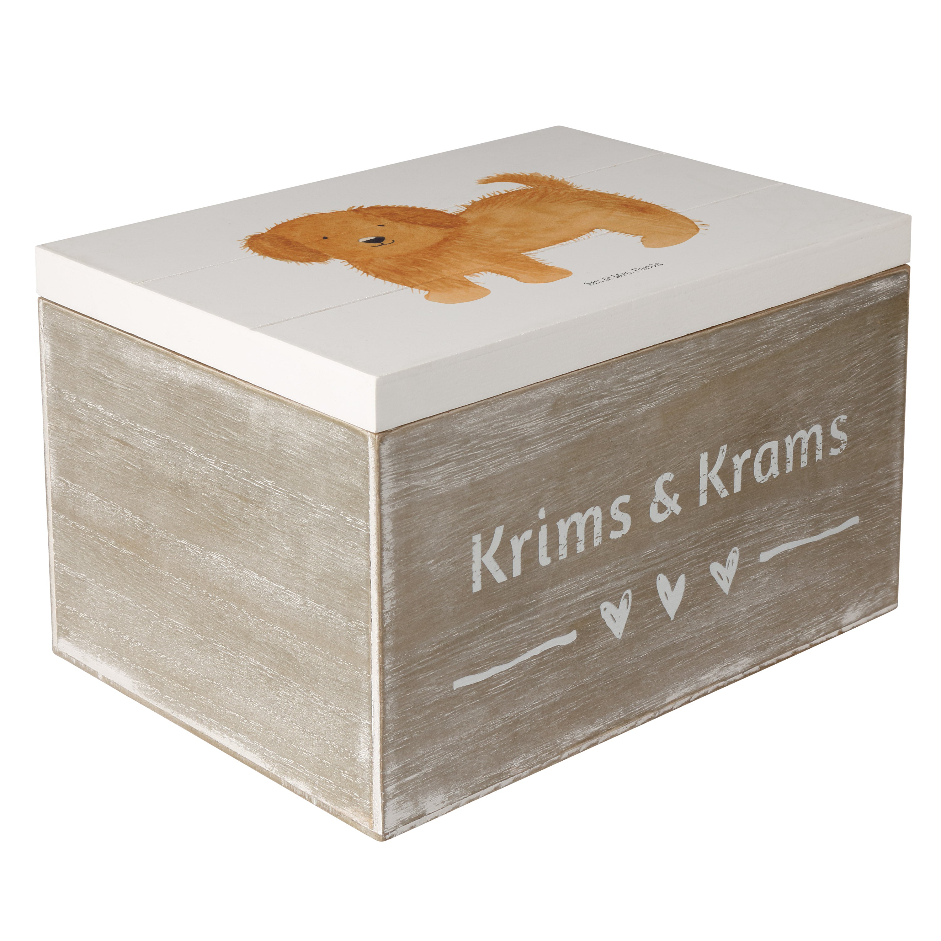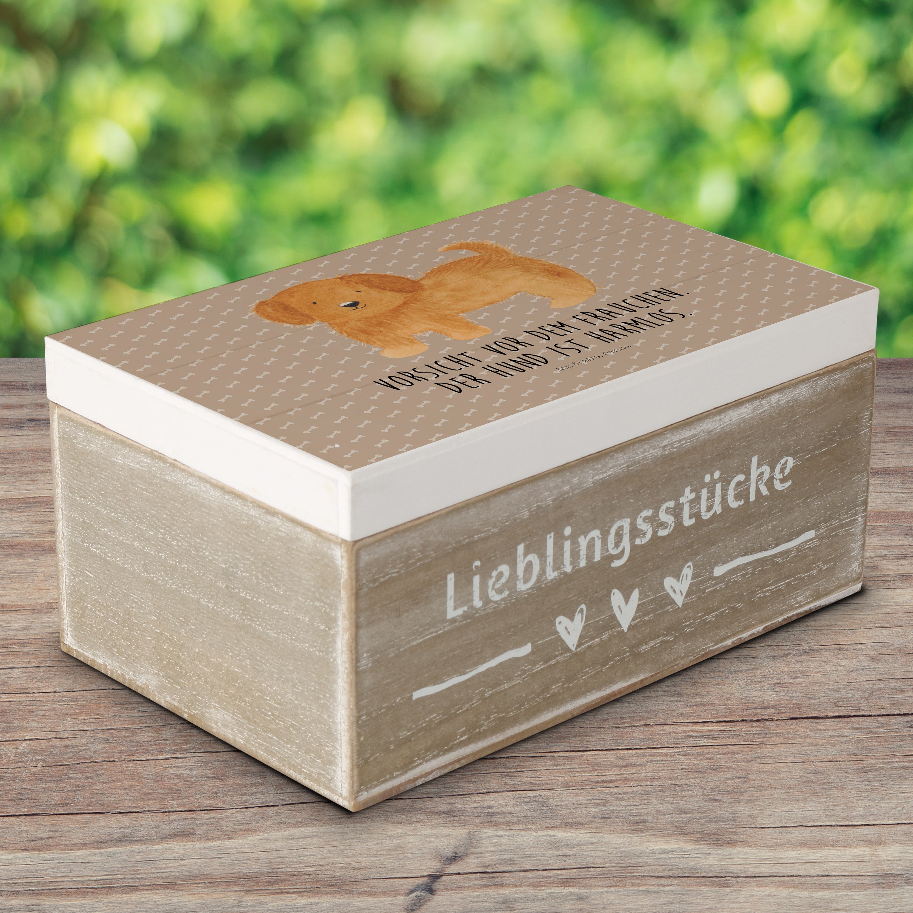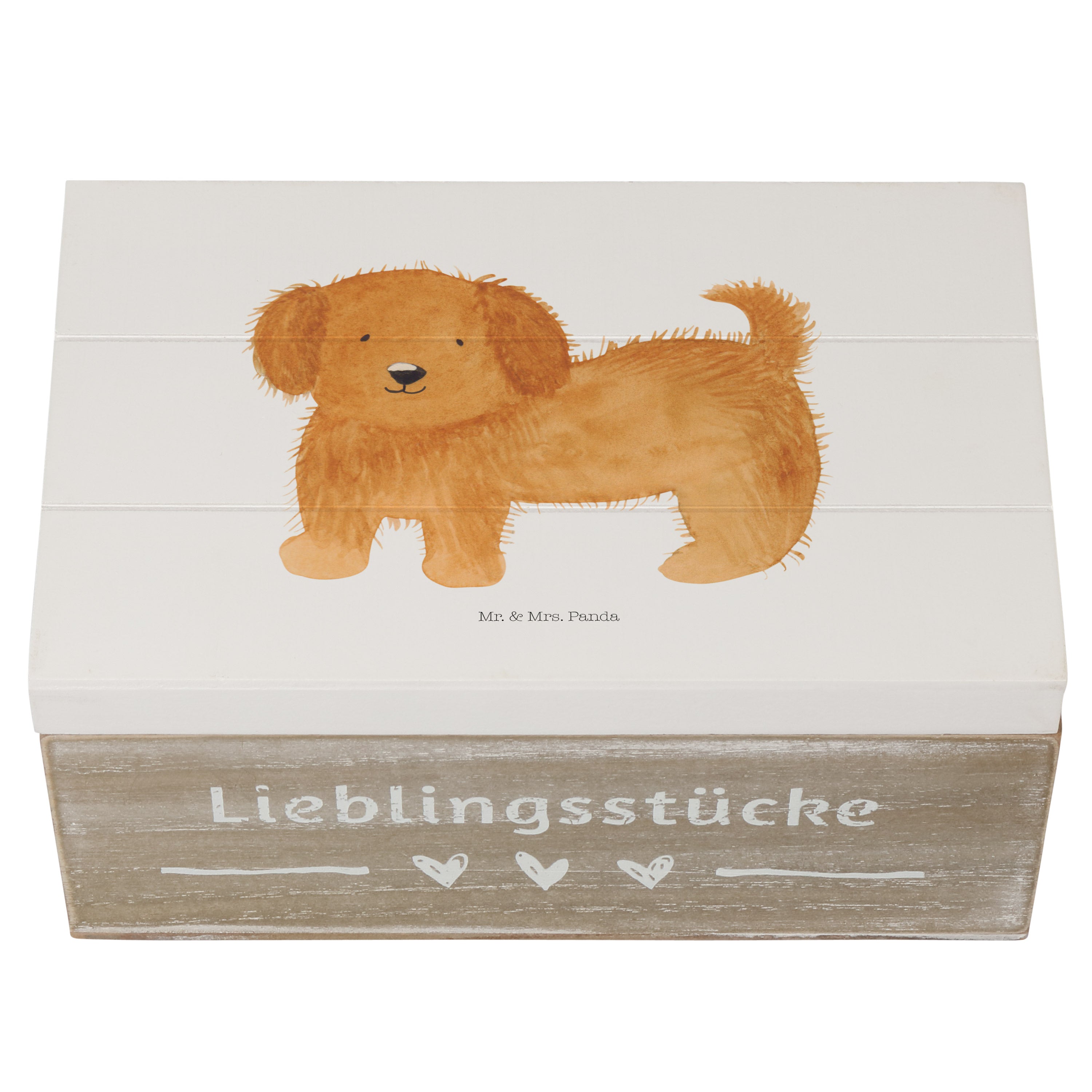 Holzkiste Hund flauschig - 25 x 18 cm - mit Spruch - Weiß