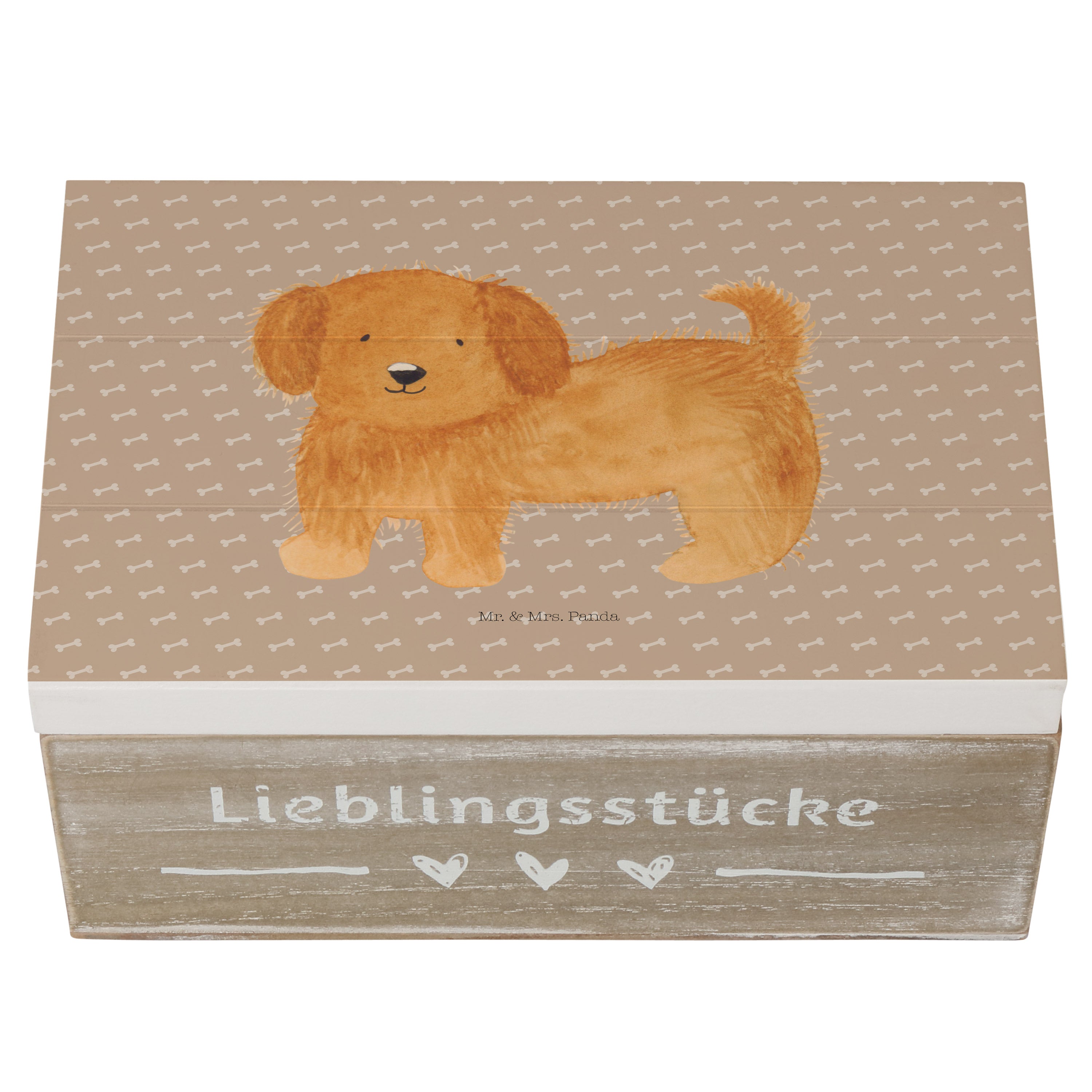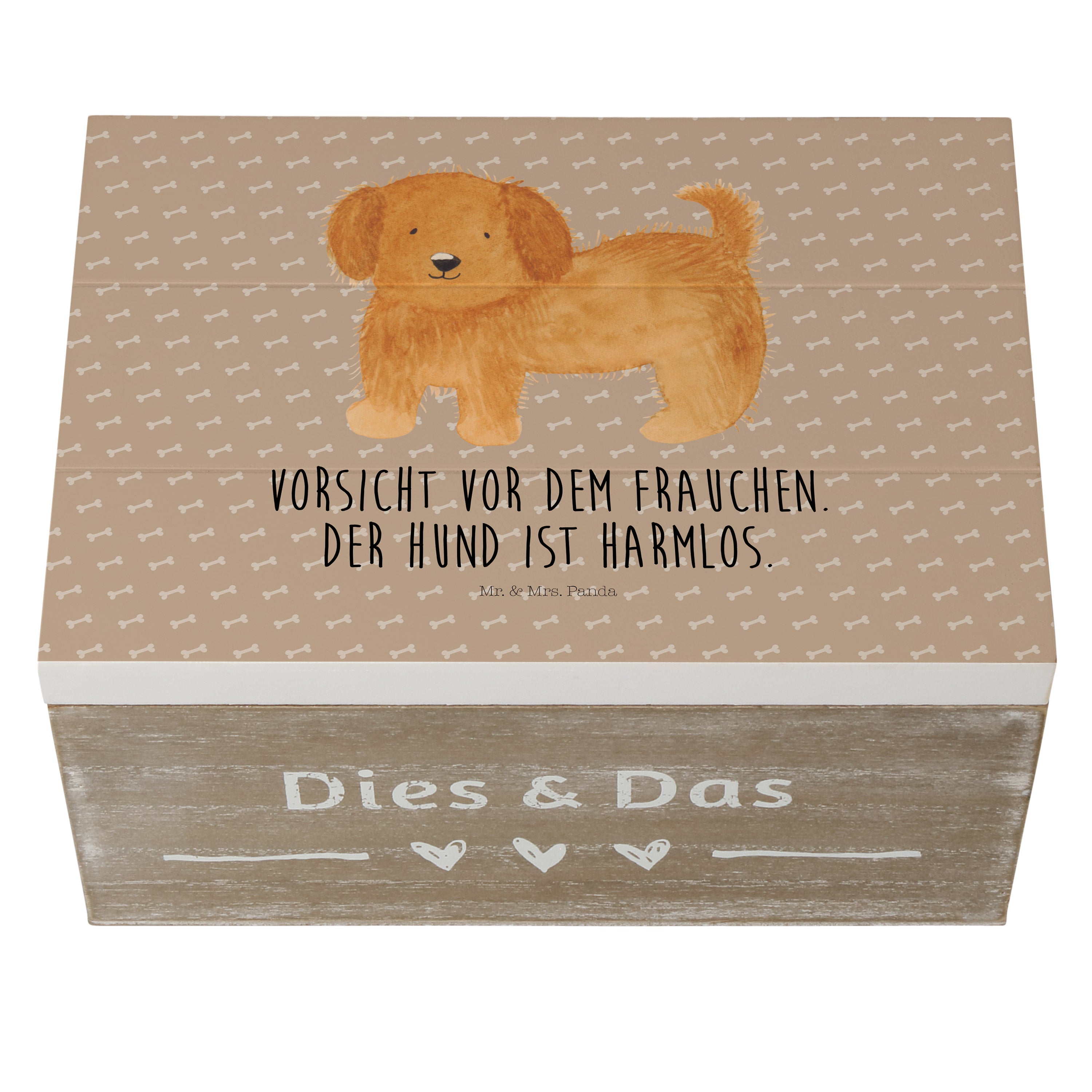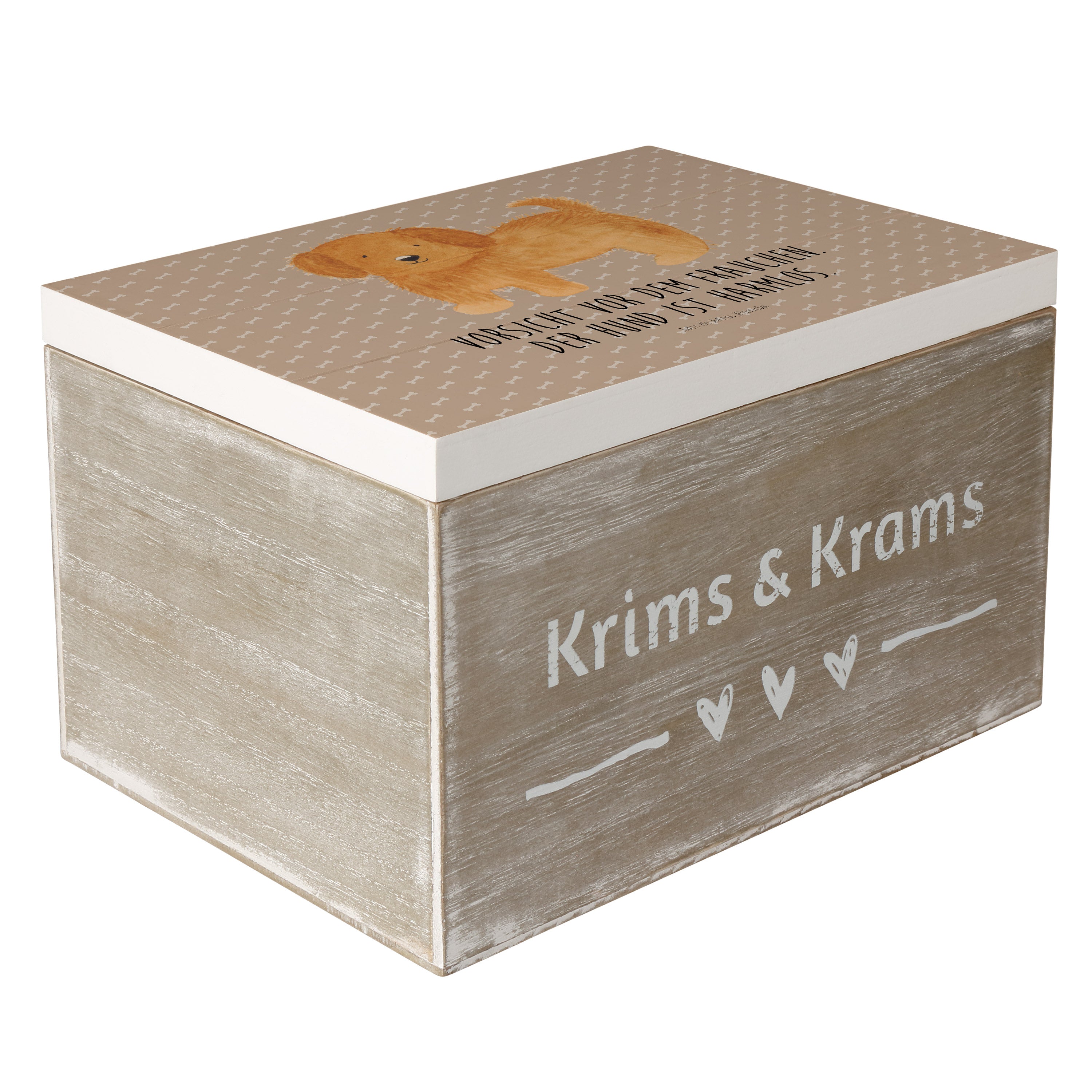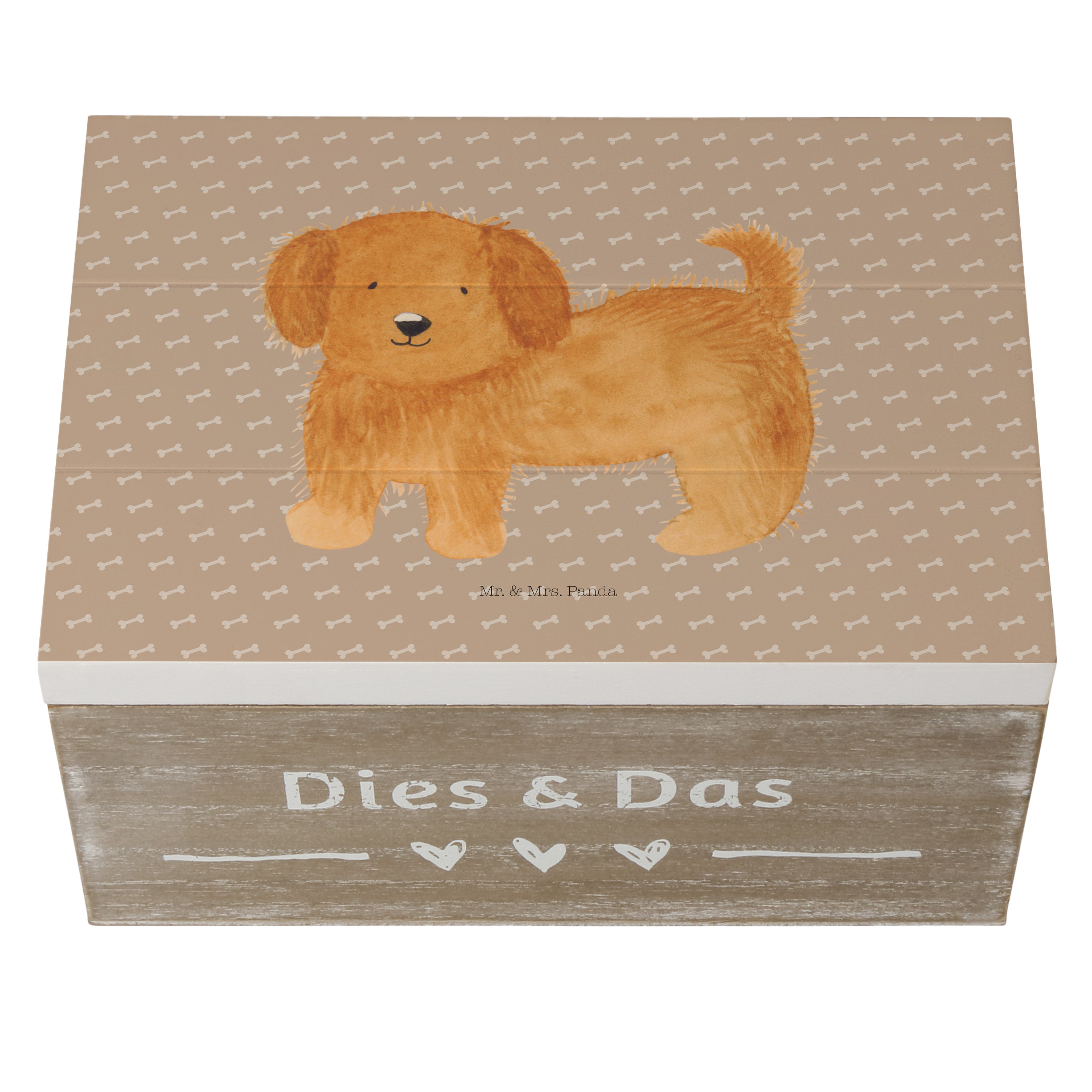 Holzkiste Hund flauschig - 25 x 18 cm - mit Spruch - Weiß