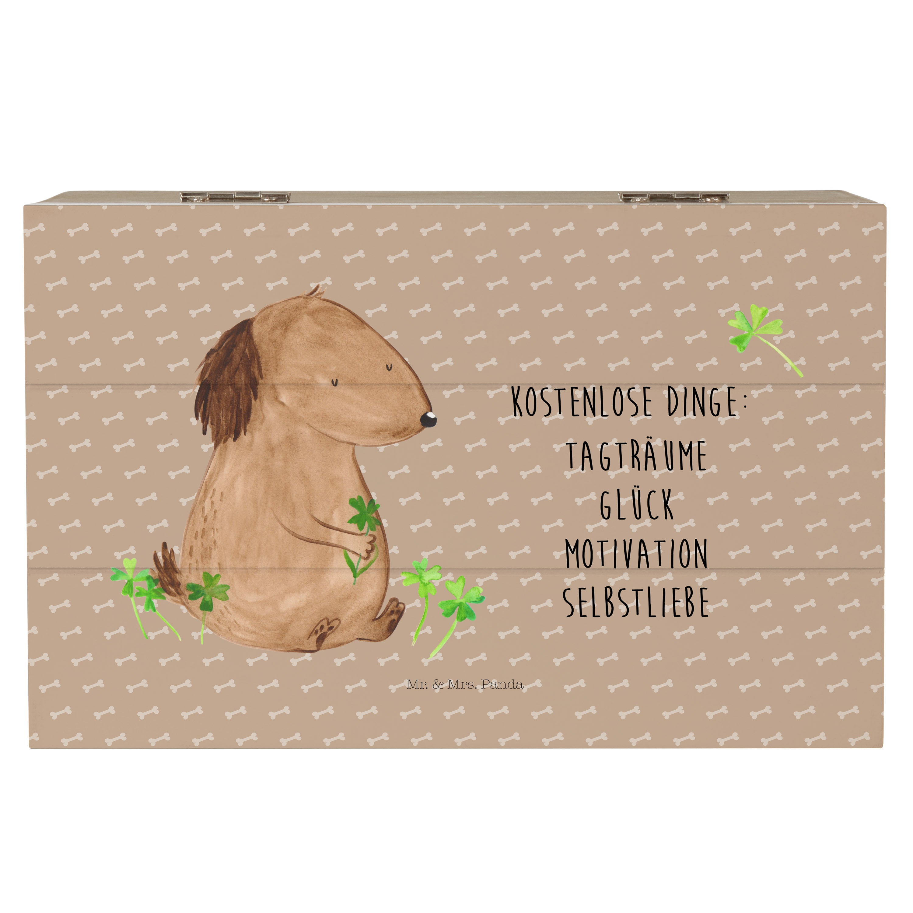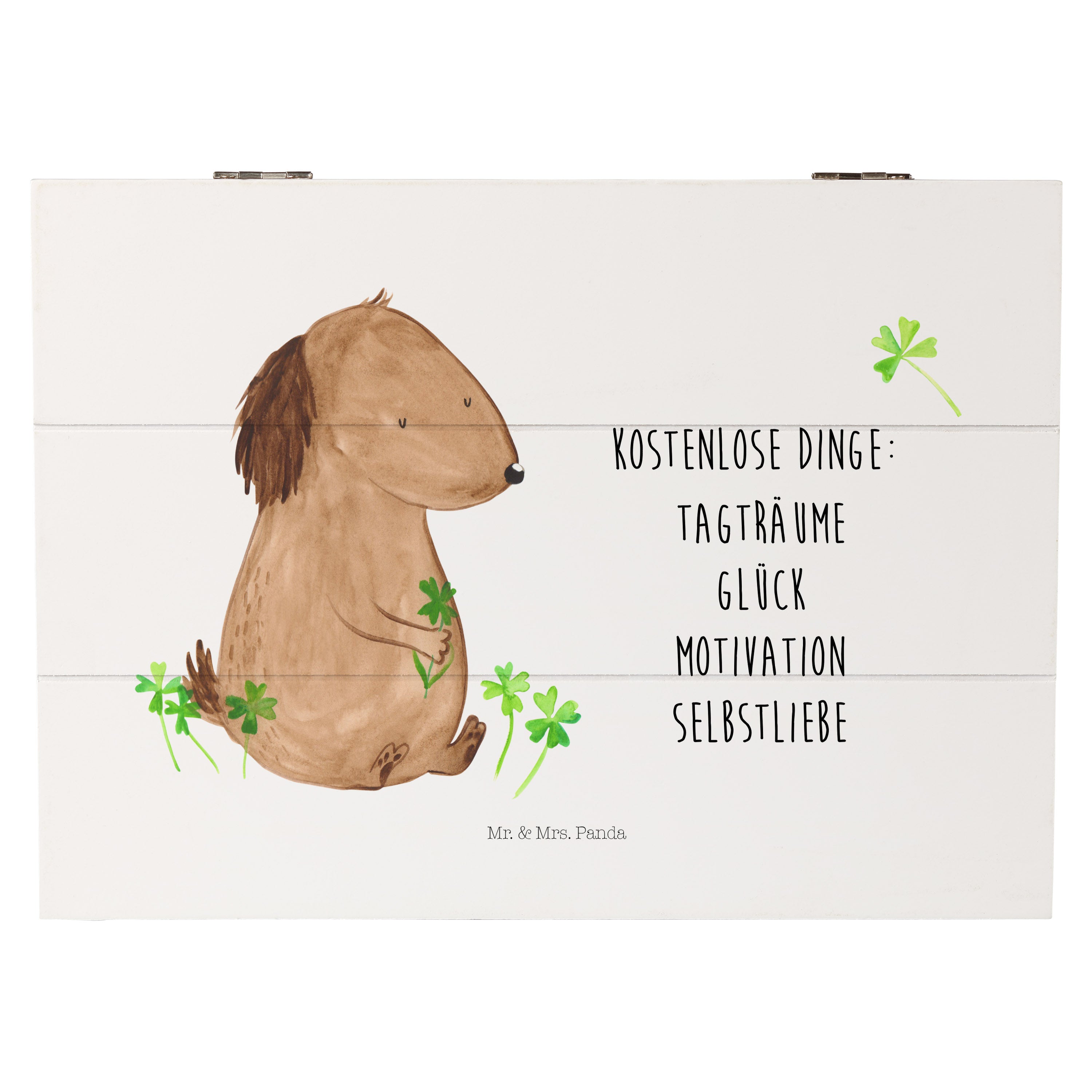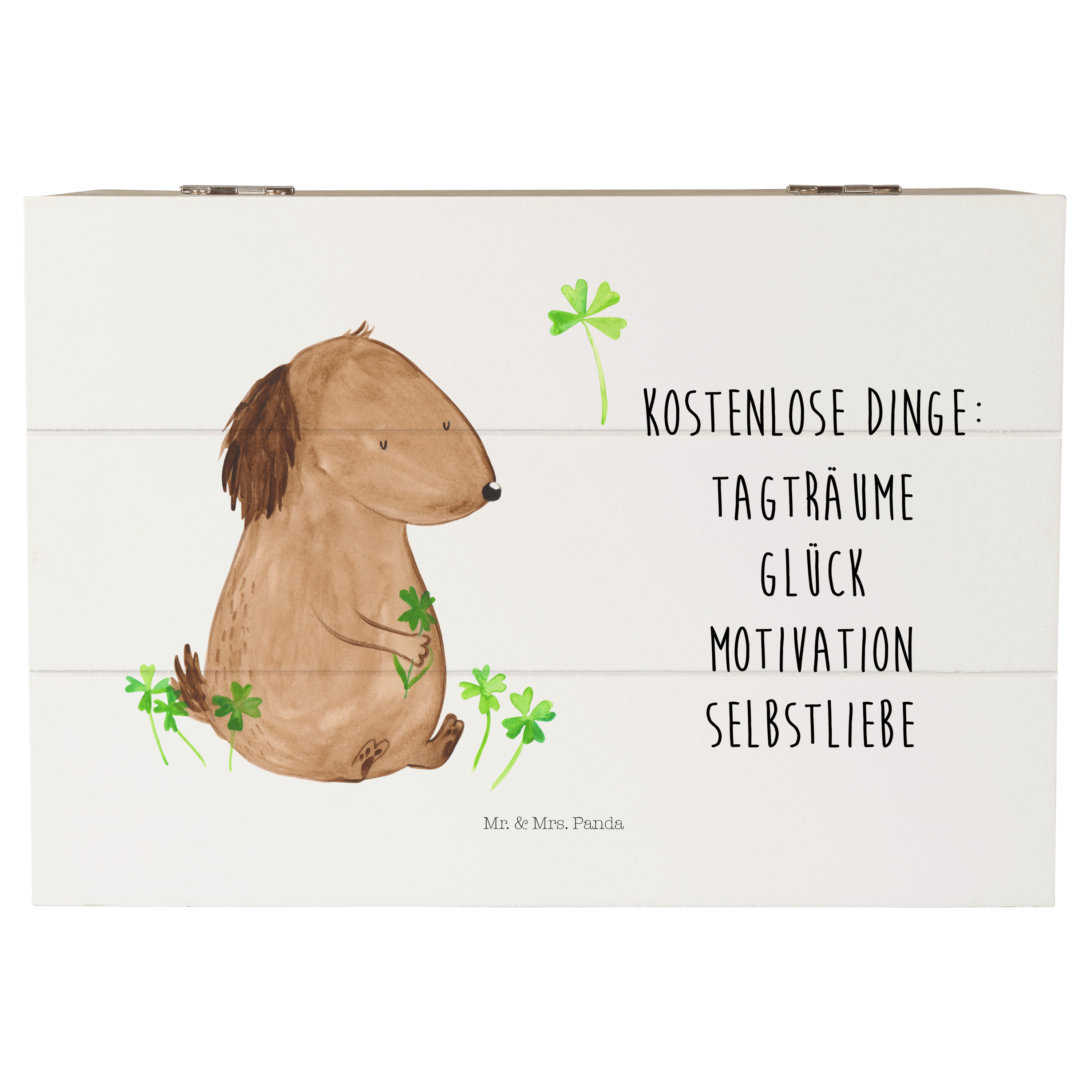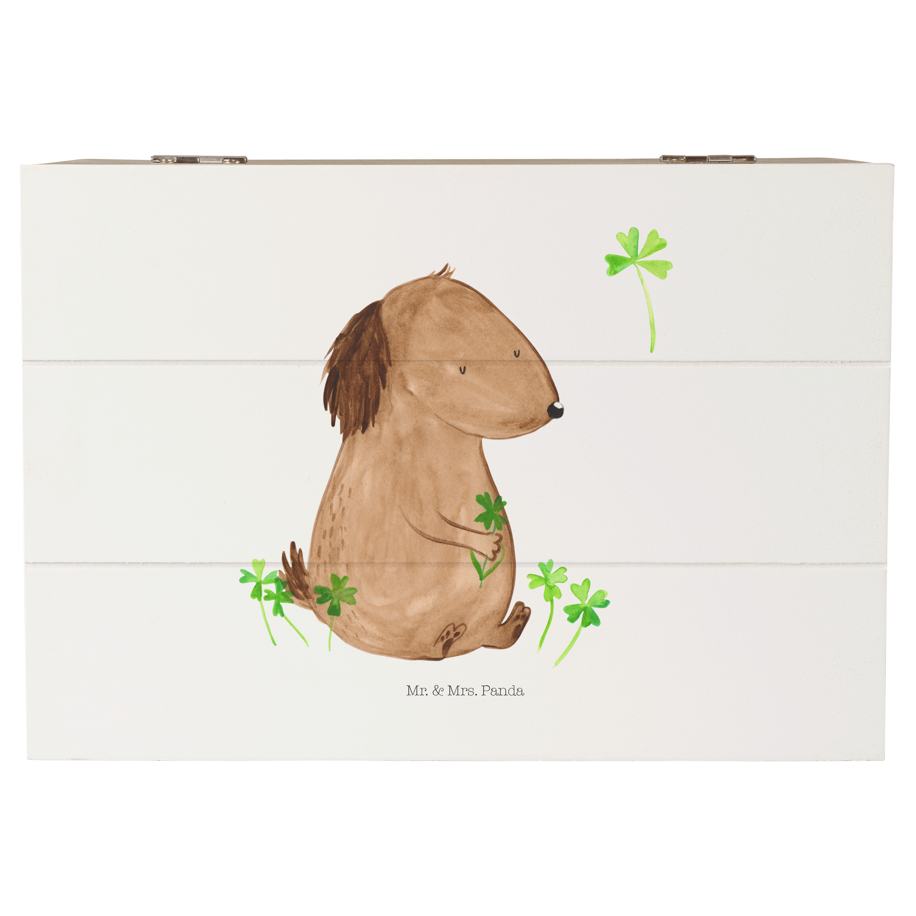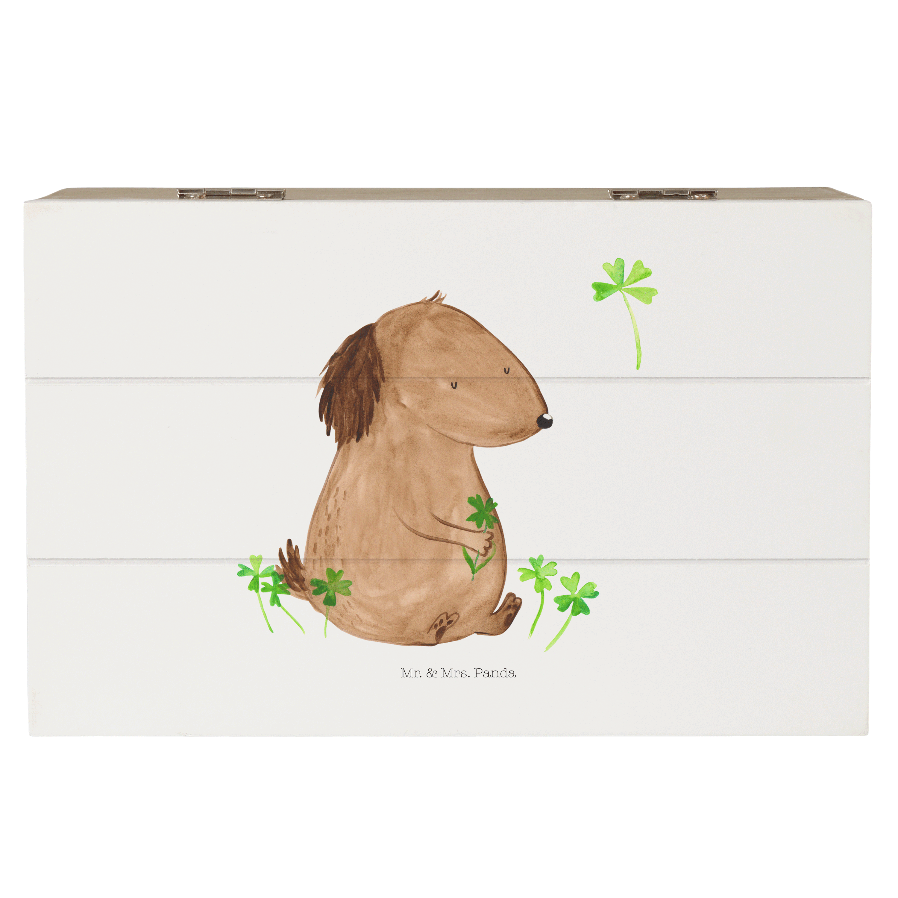 Holzkiste Hund Kleeblatt - 25 x 18 cm - mit Spruch - Weiß