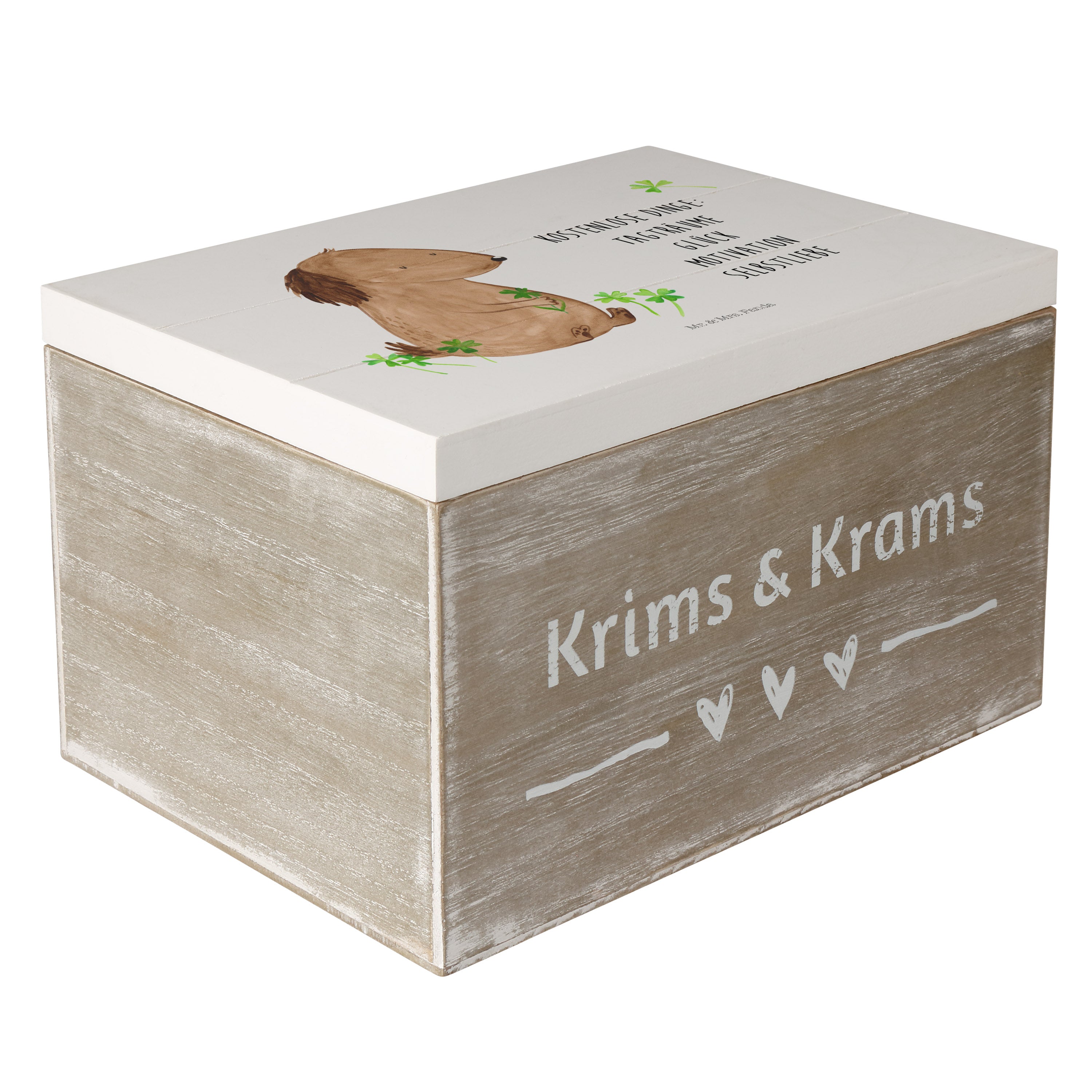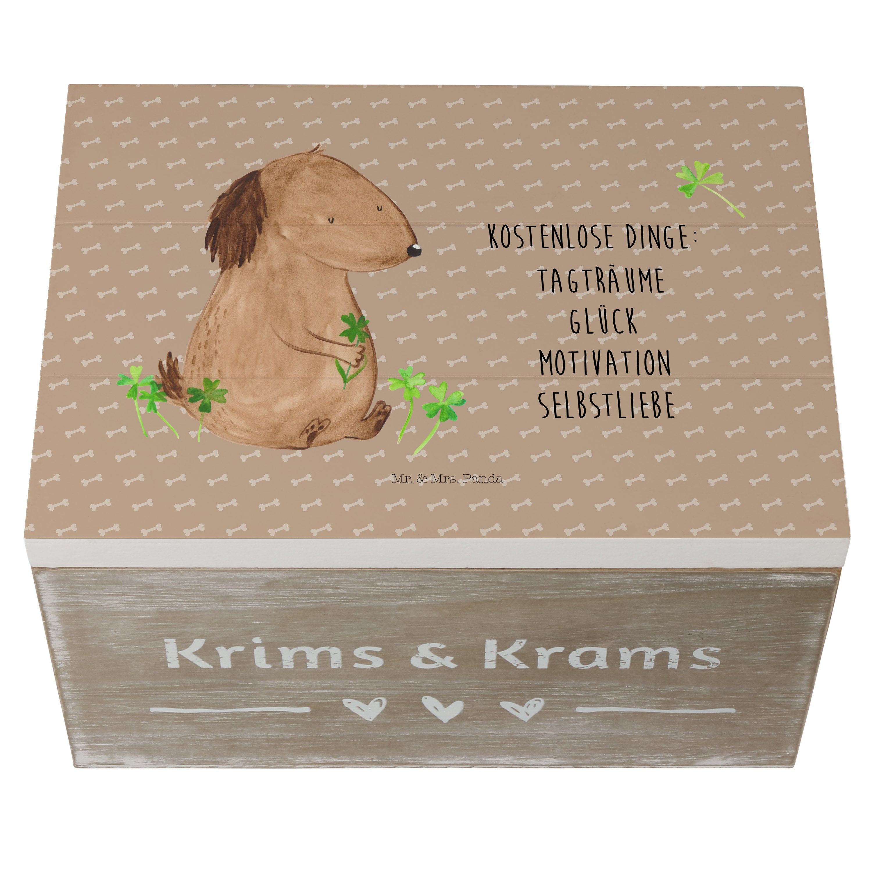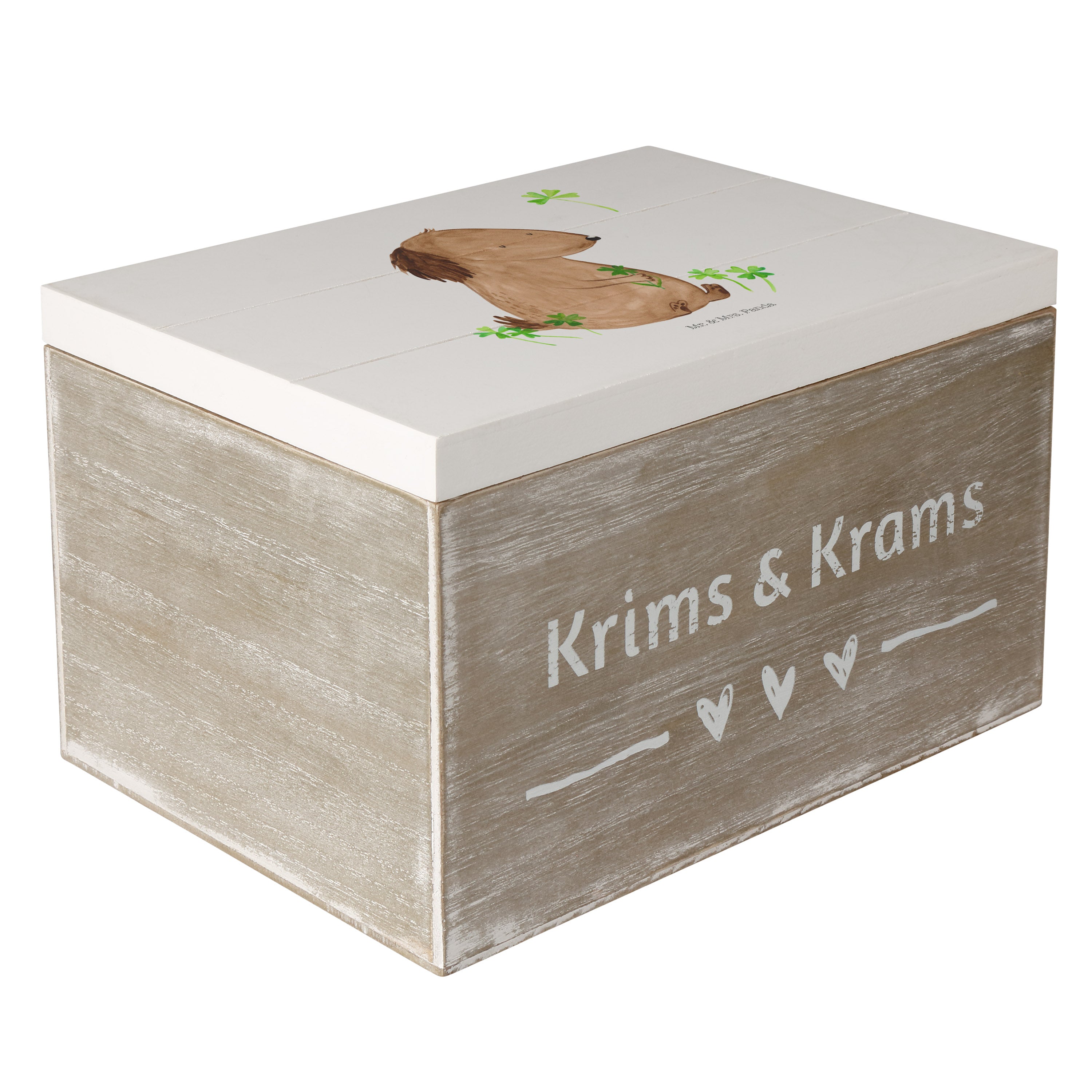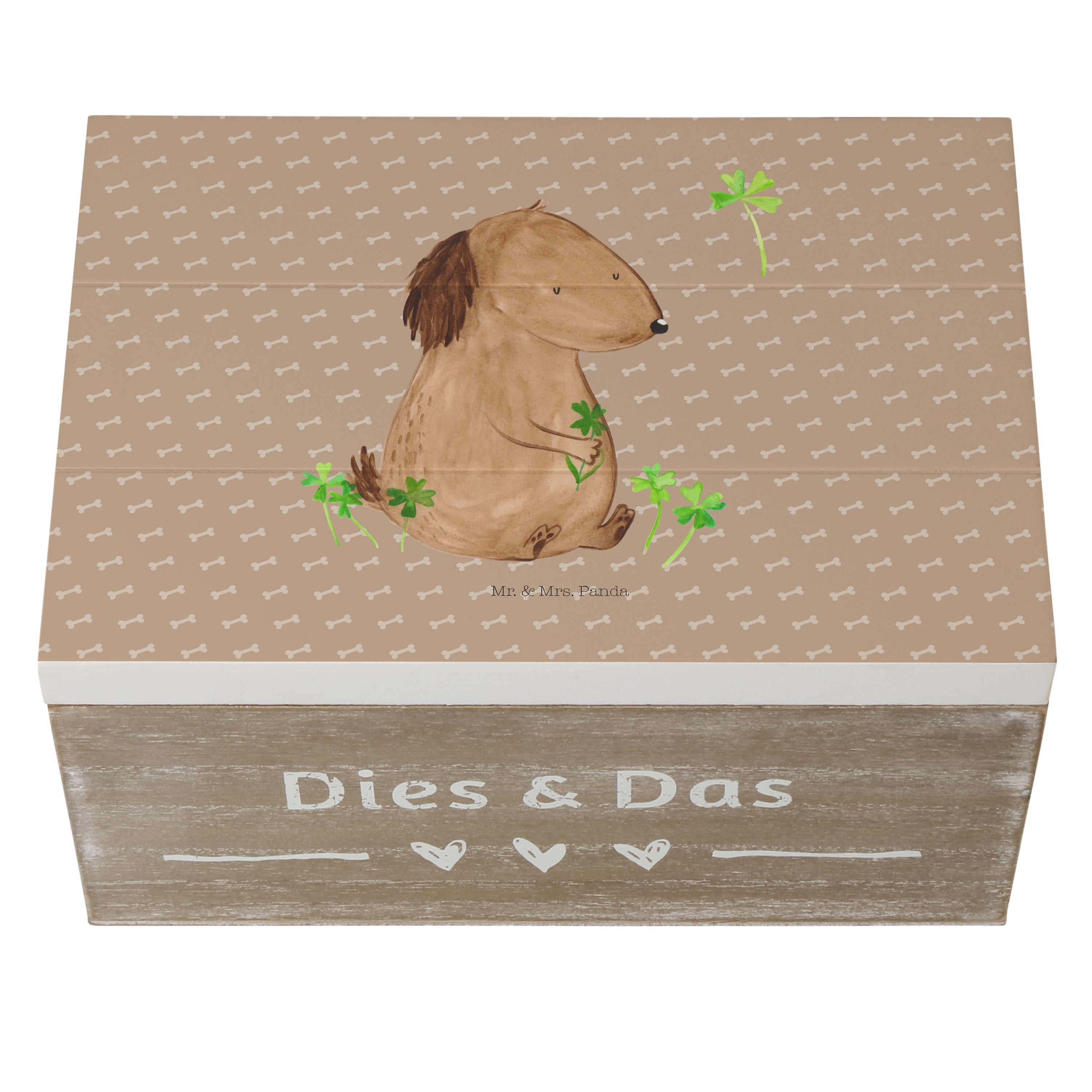 Holzkiste Hund Kleeblatt - 25 x 18 cm - mit Spruch - Weiß