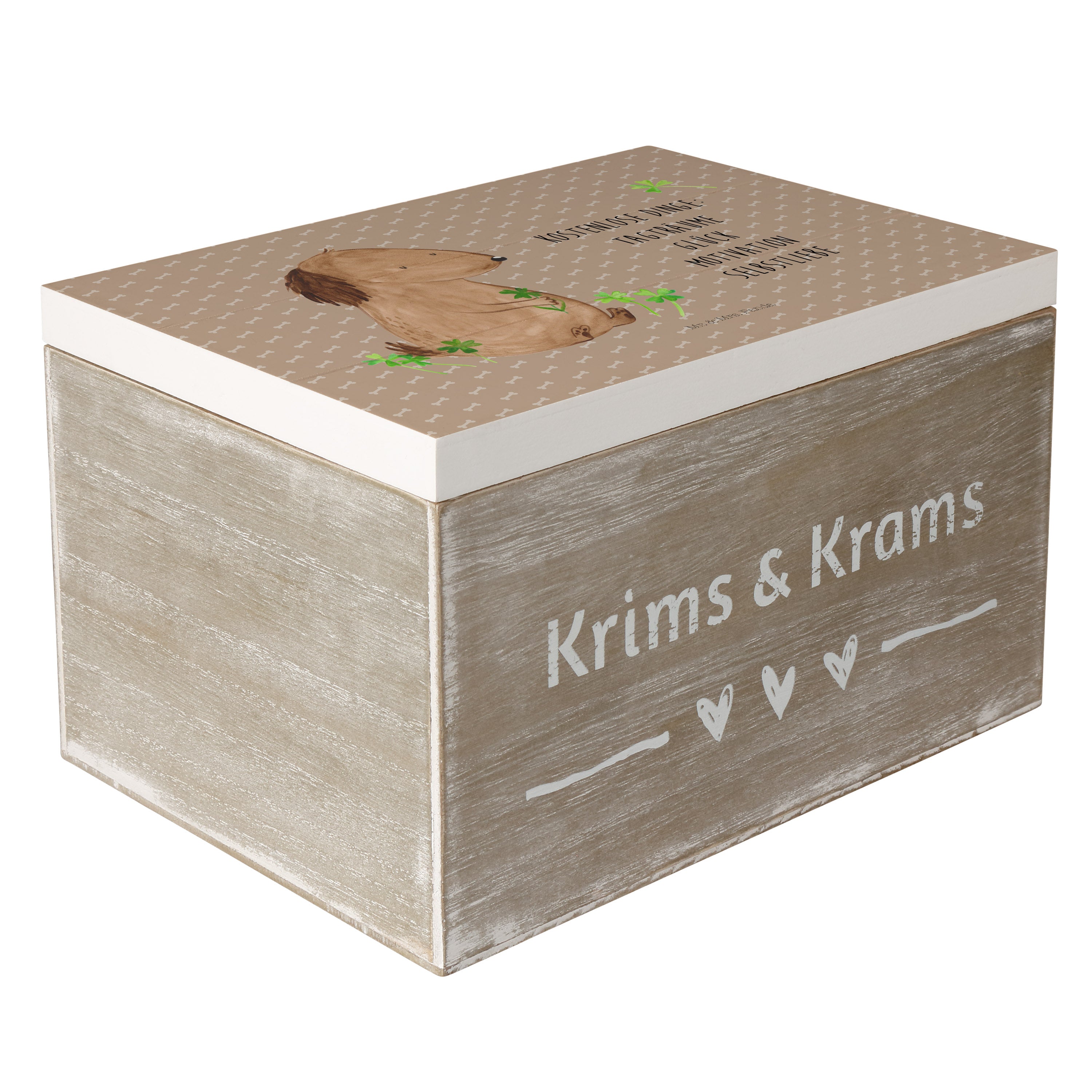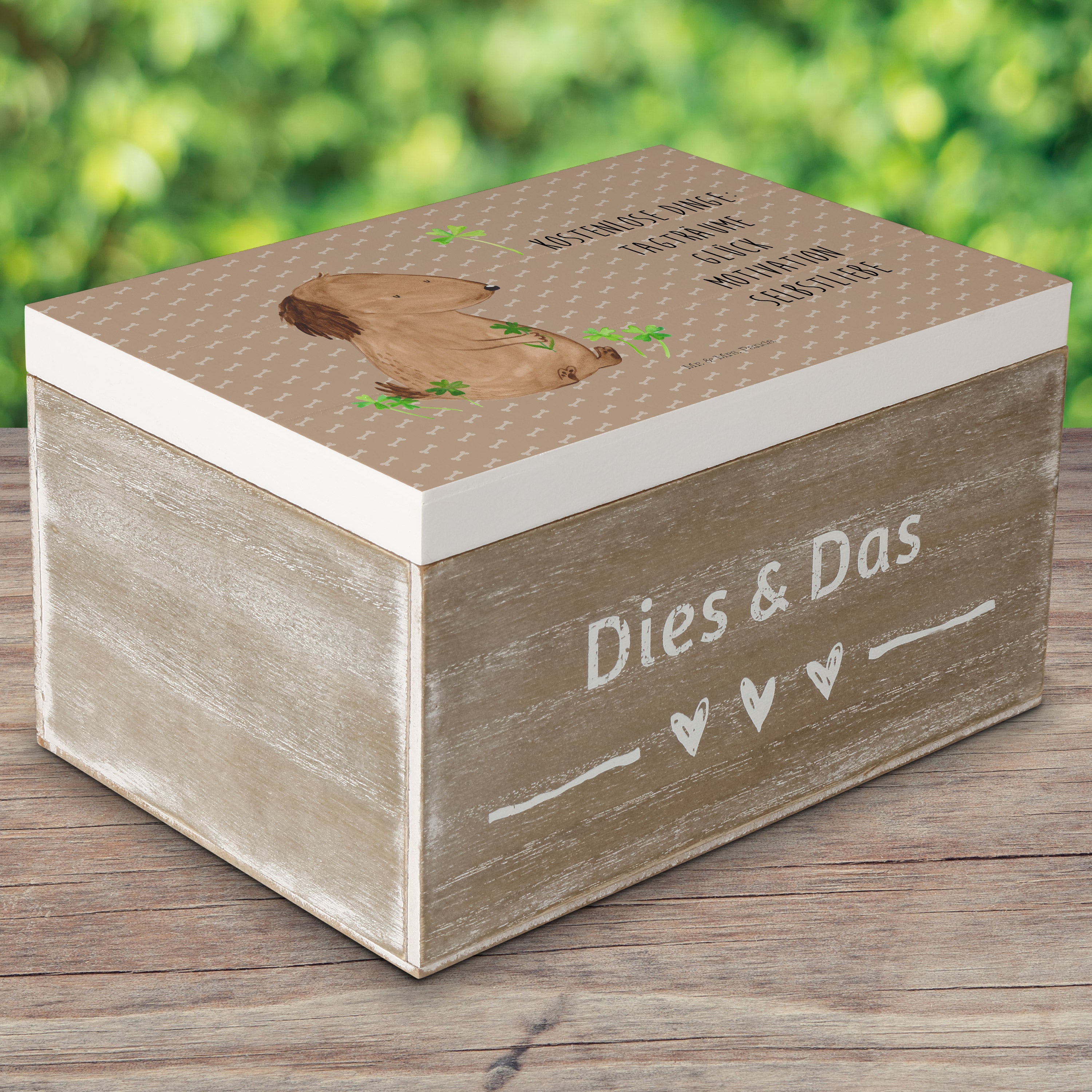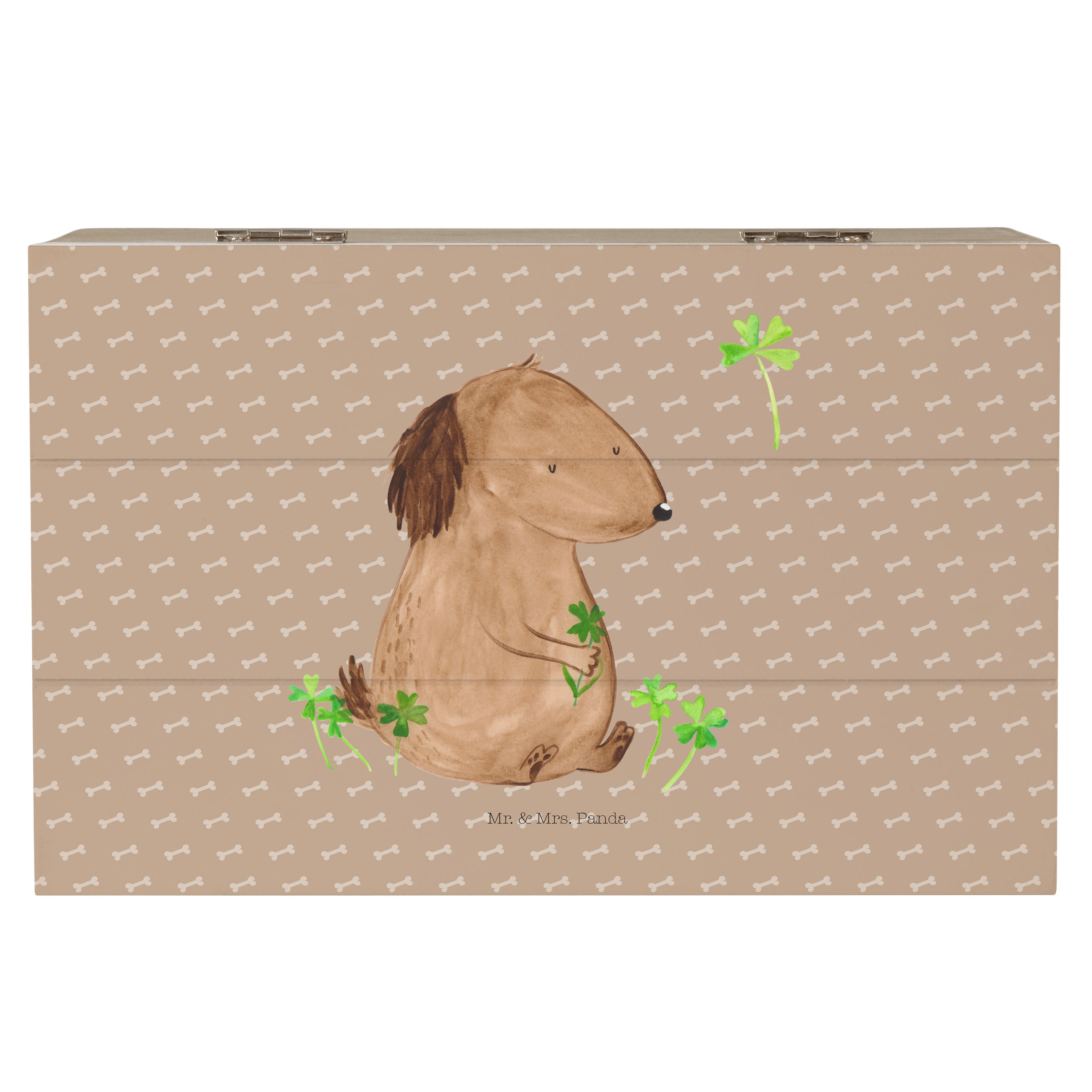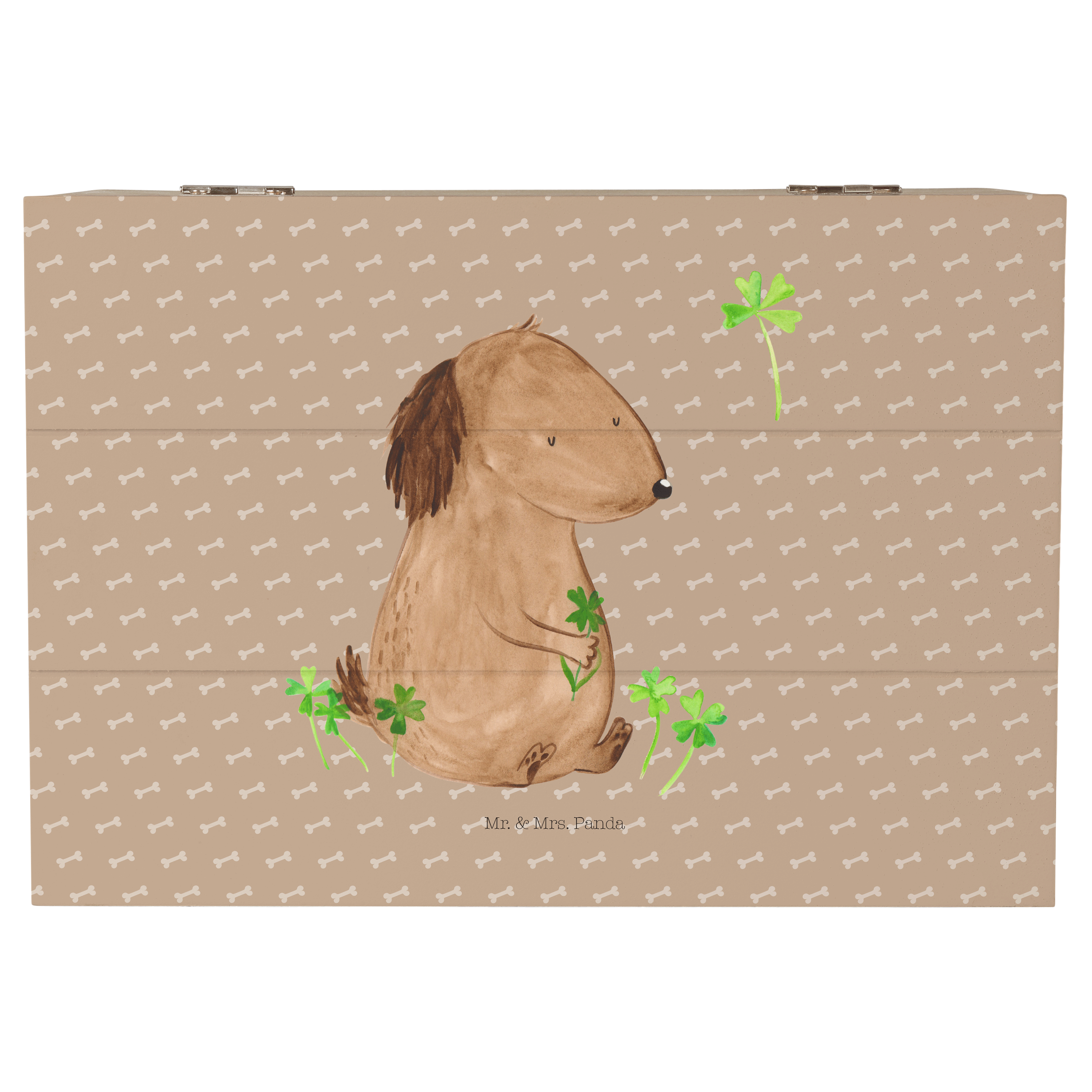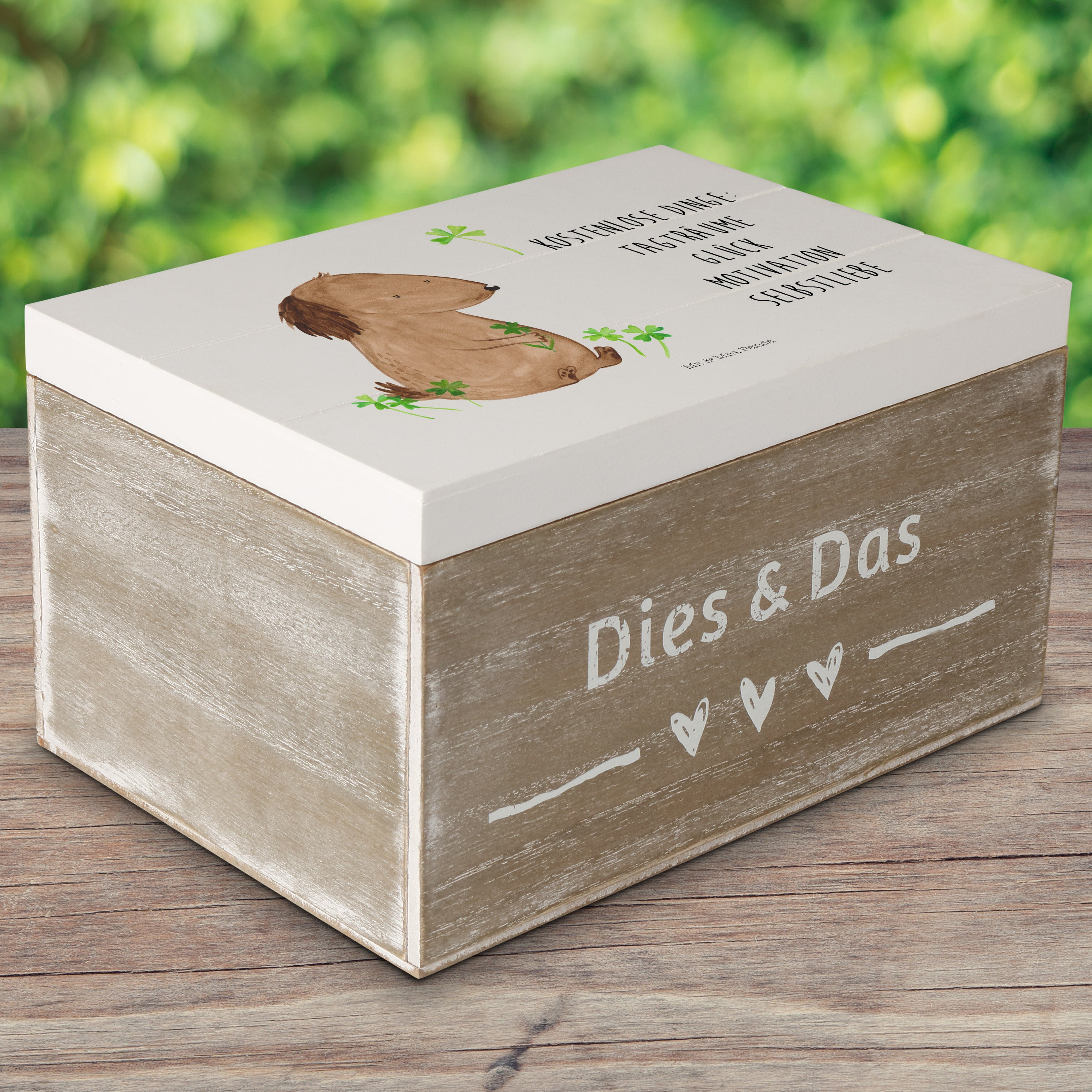 Holzkiste Hund Kleeblatt - 25 x 18 cm - mit Spruch - Weiß