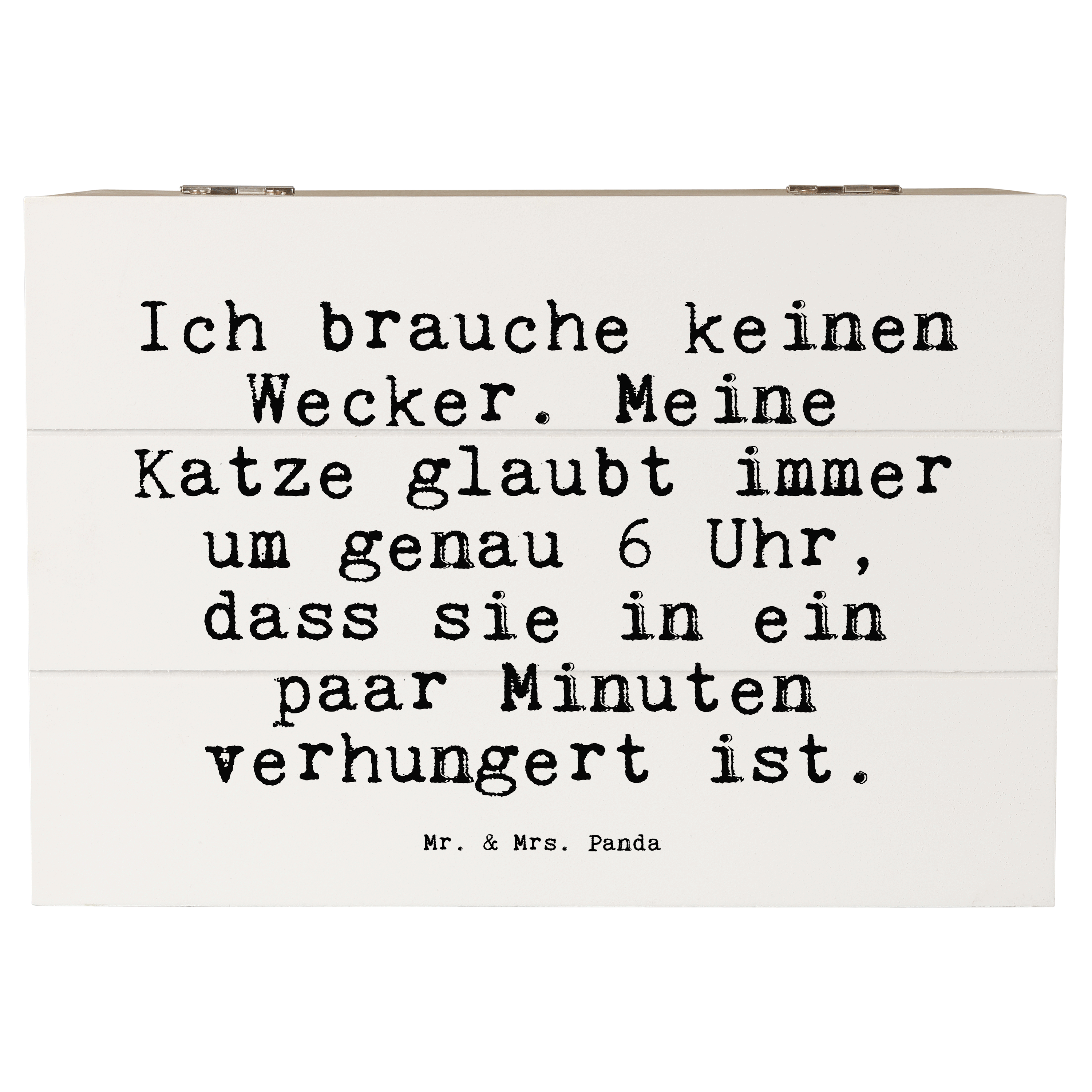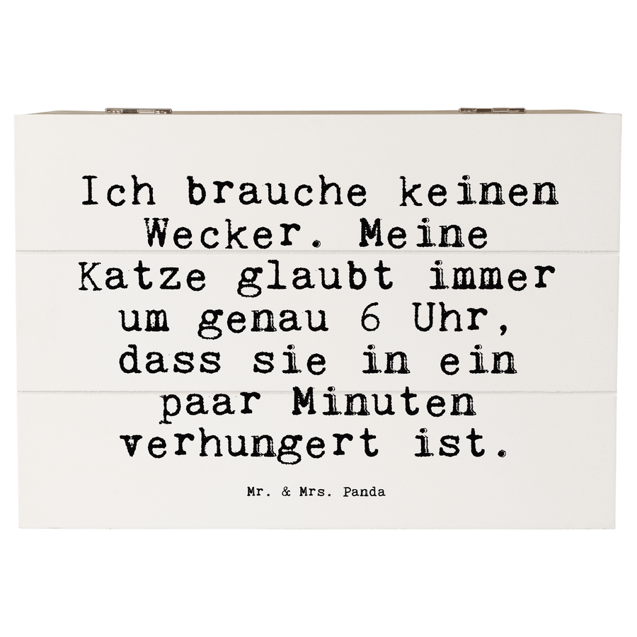 Holzkiste Sprüche und Zitate Ich brauche keinen Wecker. Meine Katze glaubt immer um genau 6 Uhr, dass sie in ein paar Minuten verhungert ist.