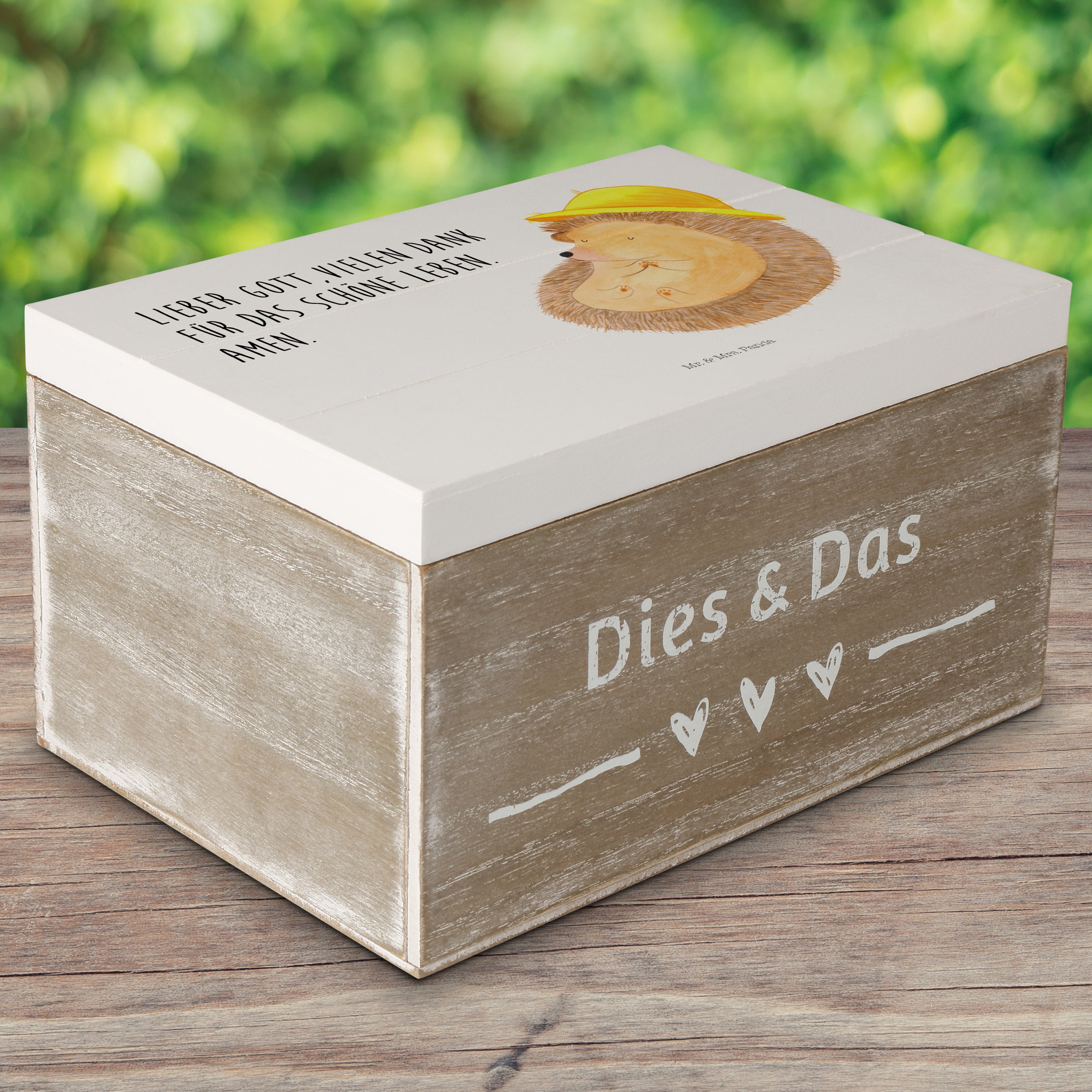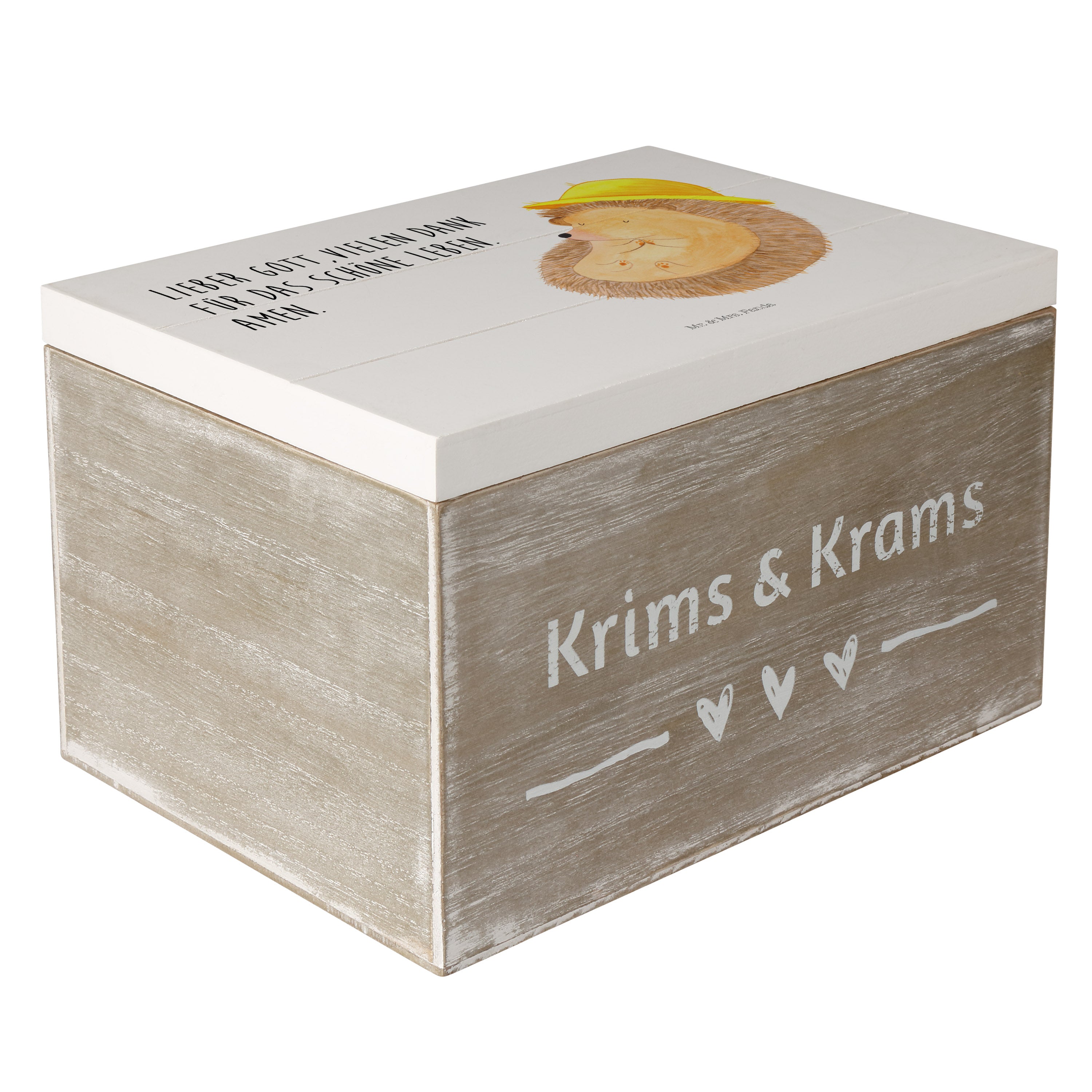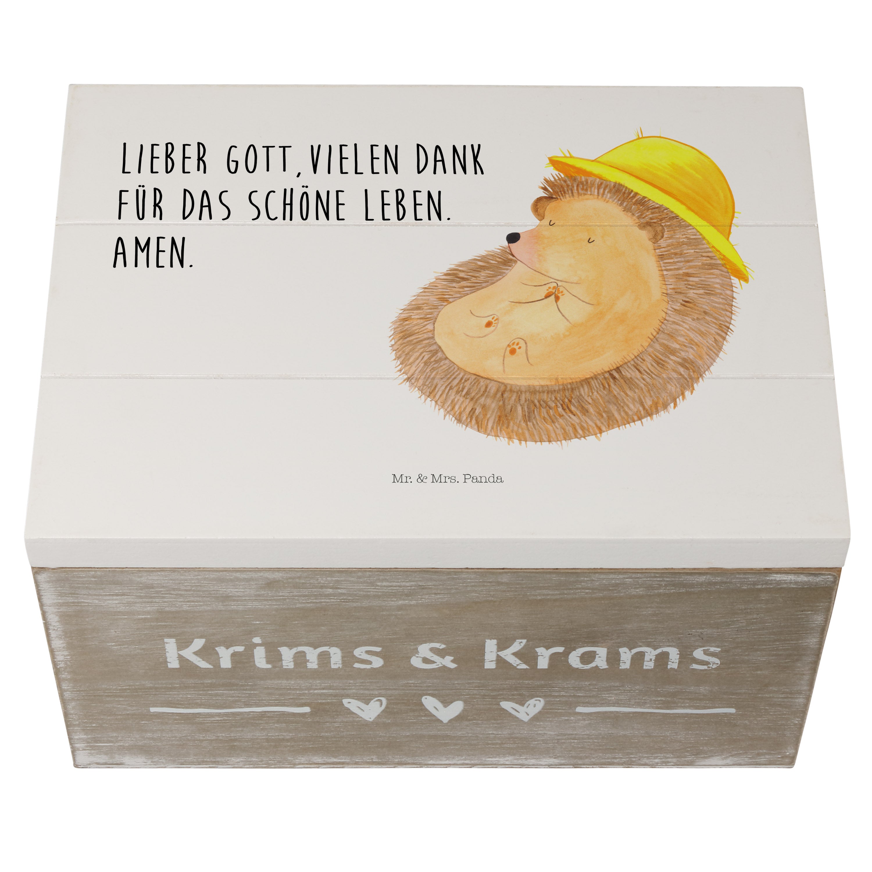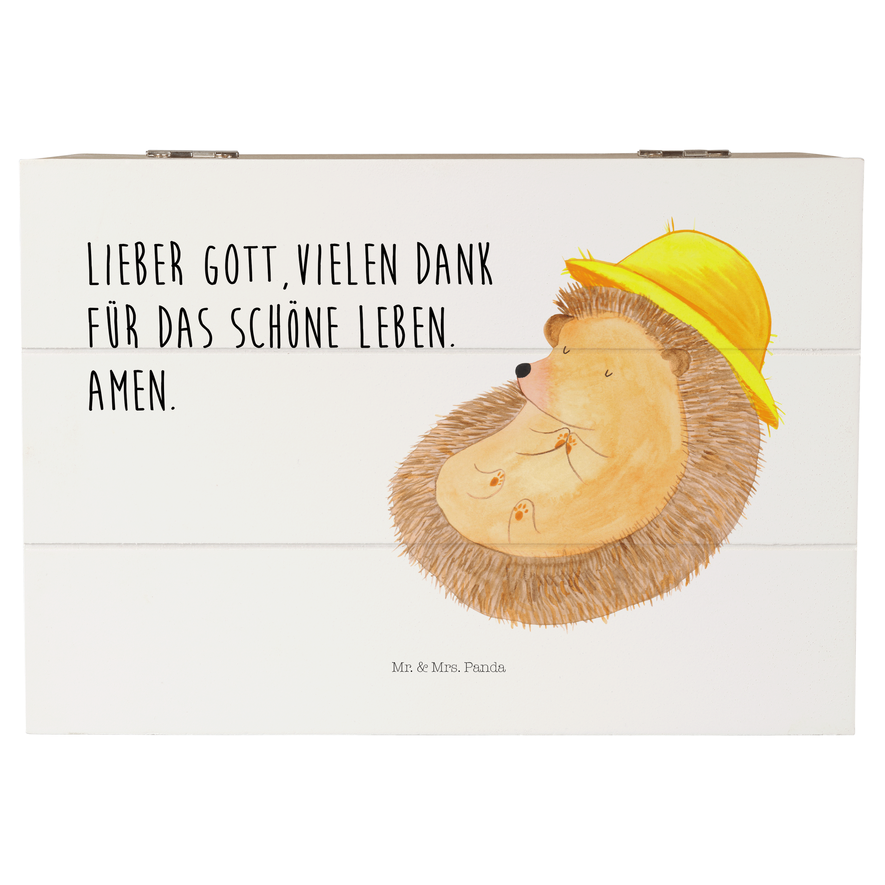 Holzkiste Igel betet - 25 x 18 cm - mit Spruch - Weiß