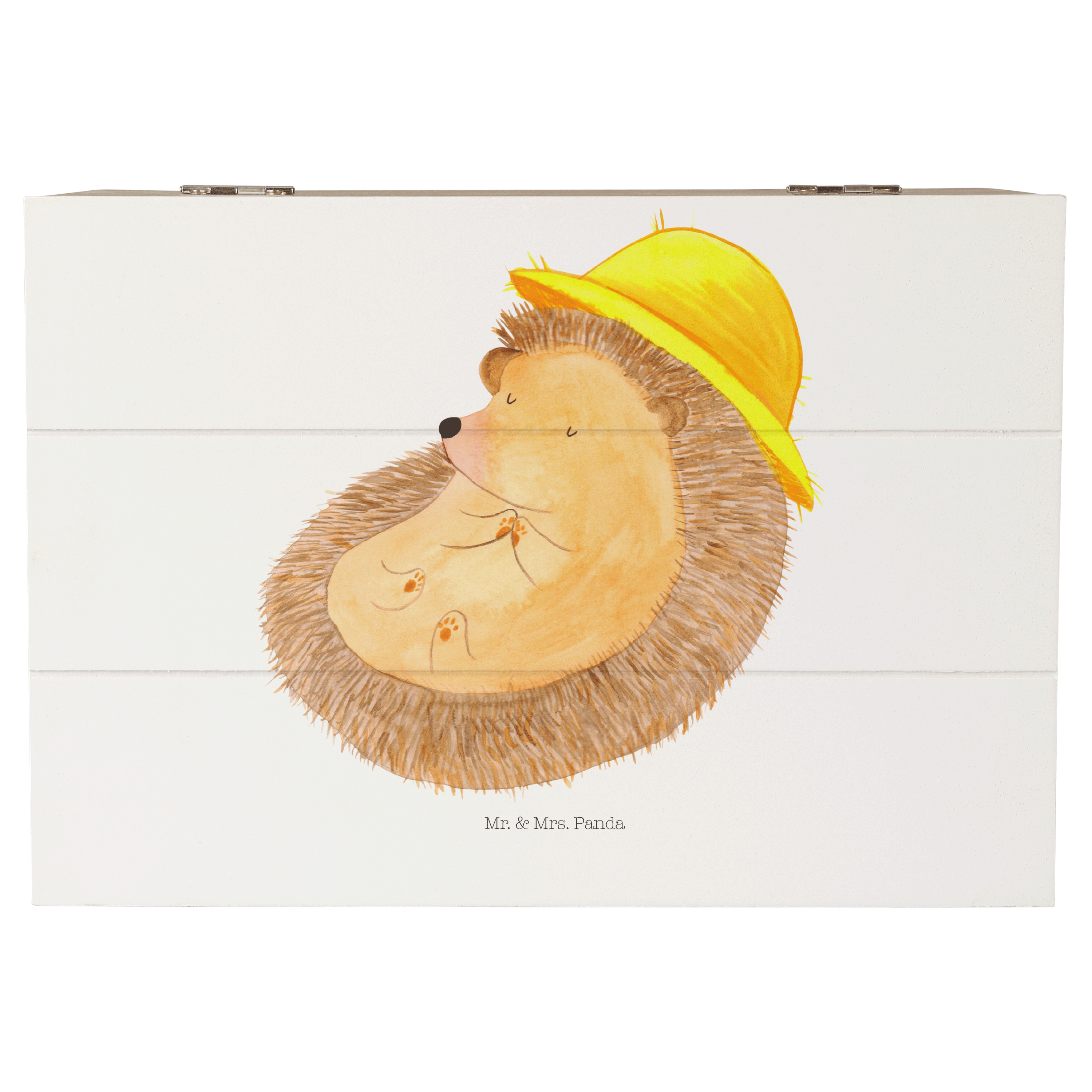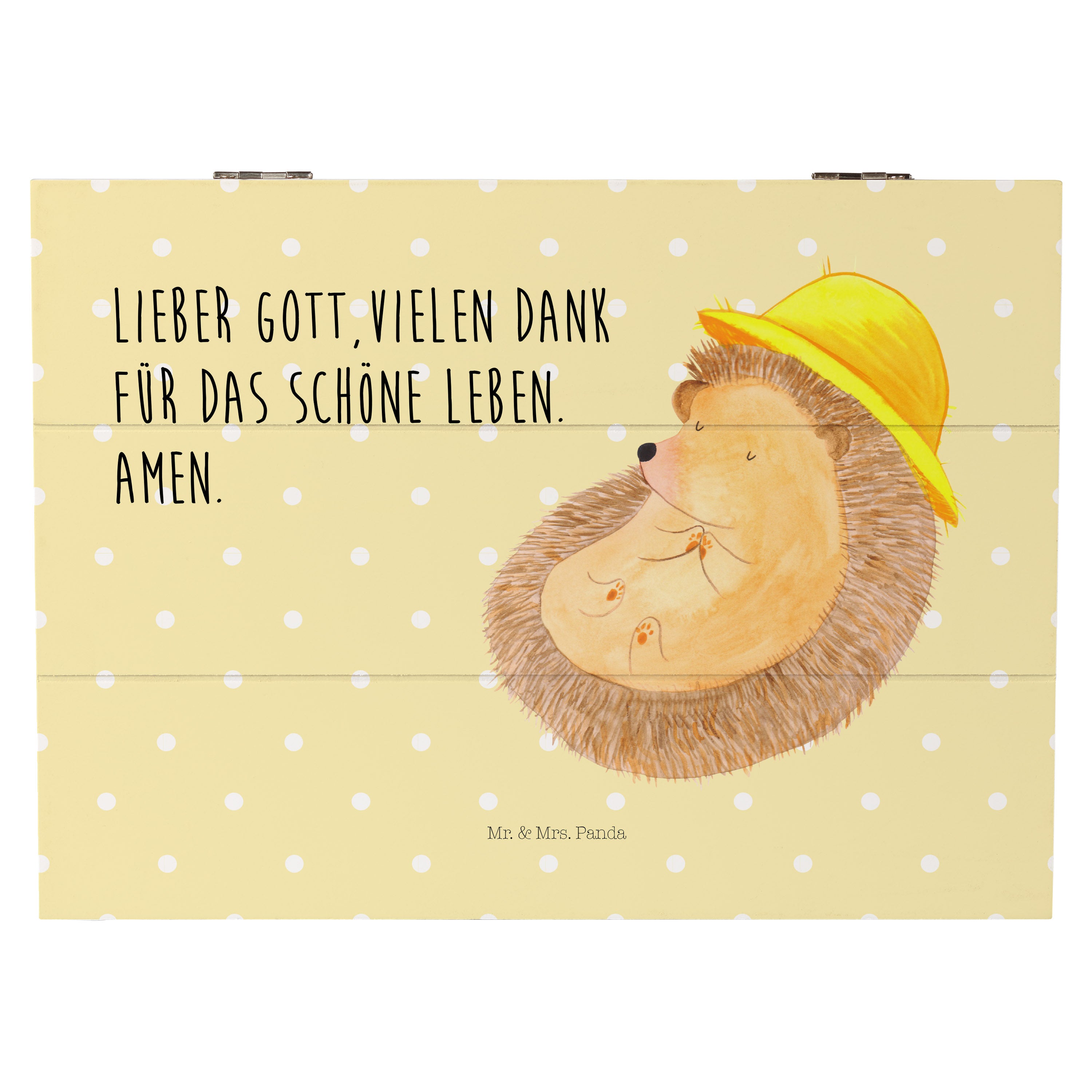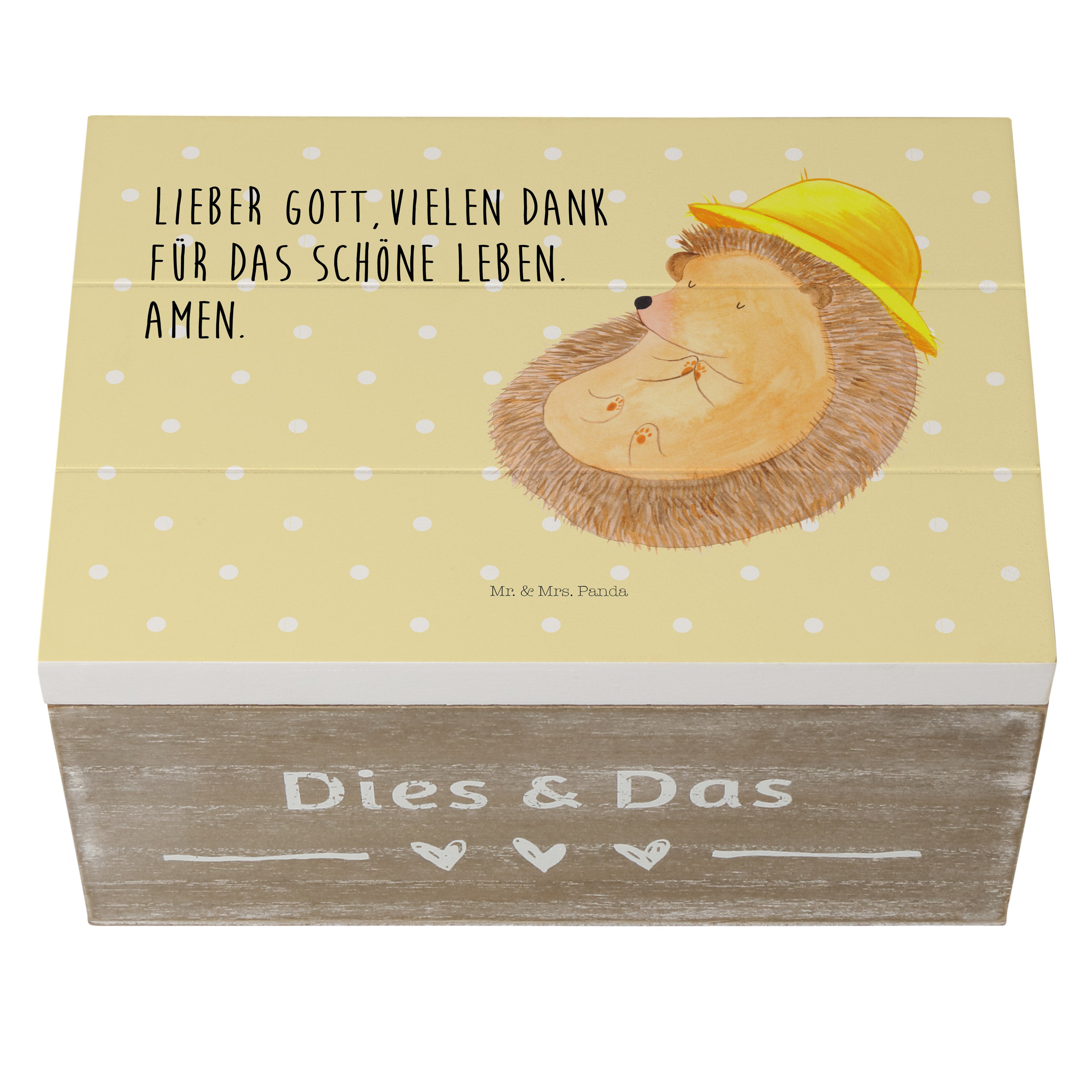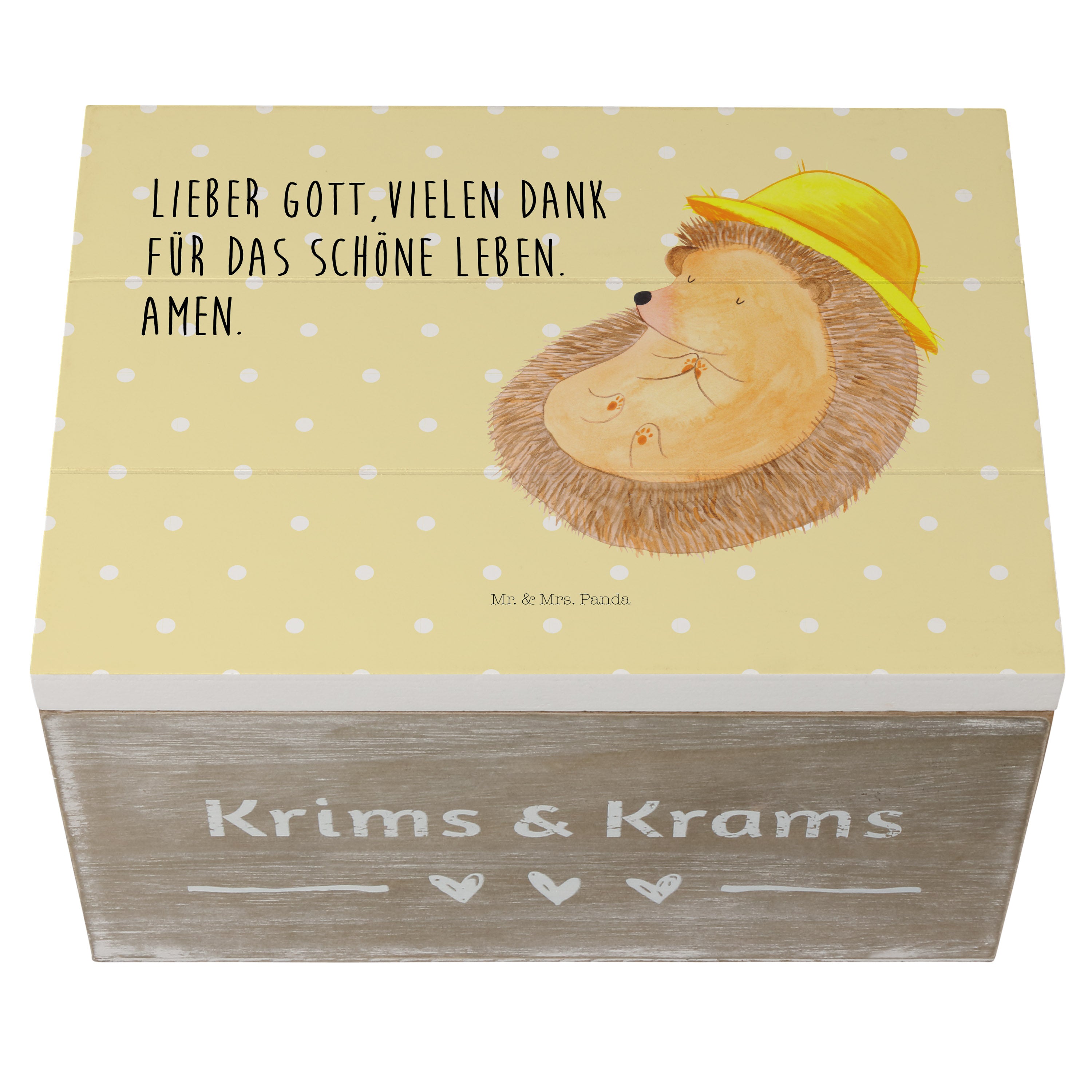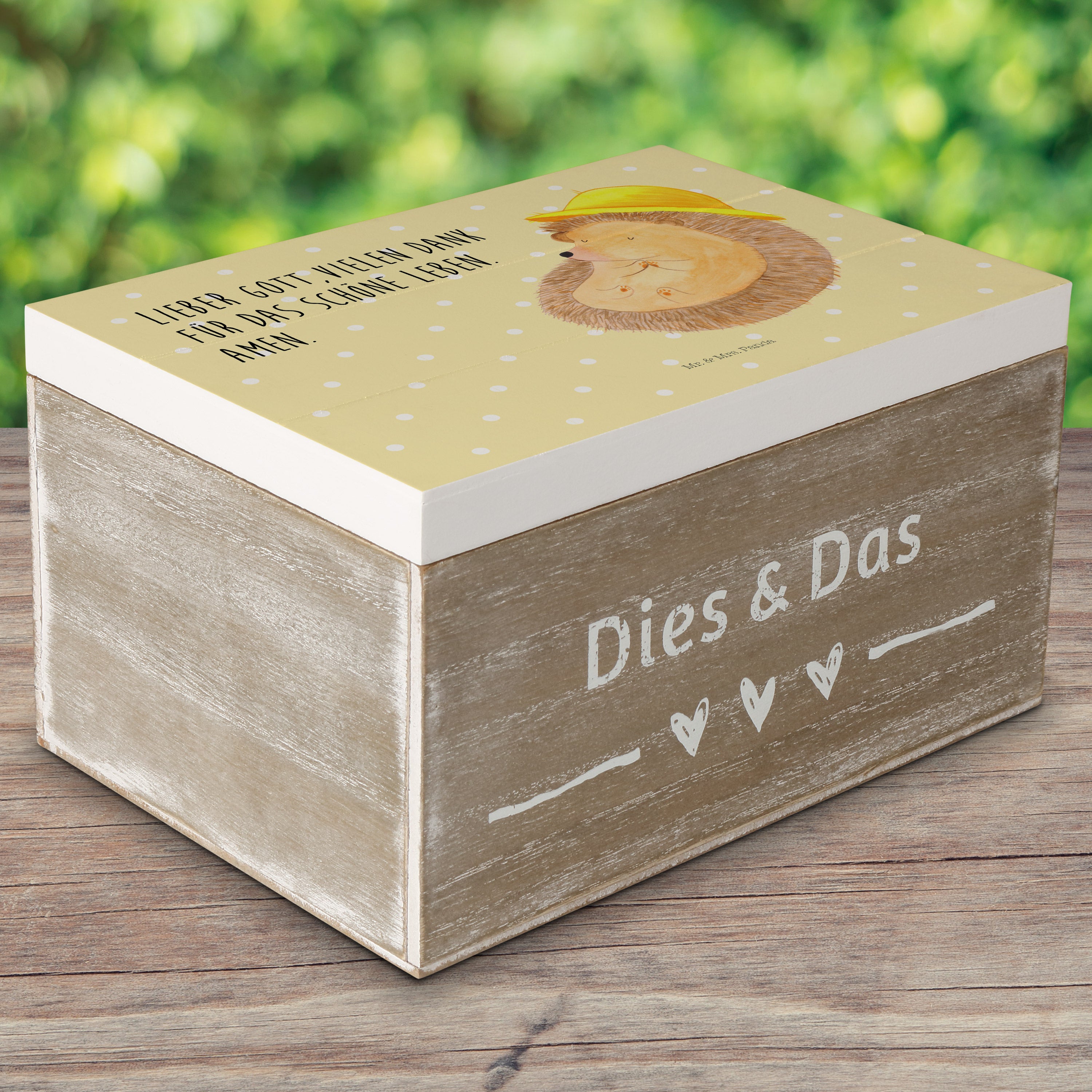 Holzkiste Igel betet - 25 x 18 cm - mit Spruch - Weiß