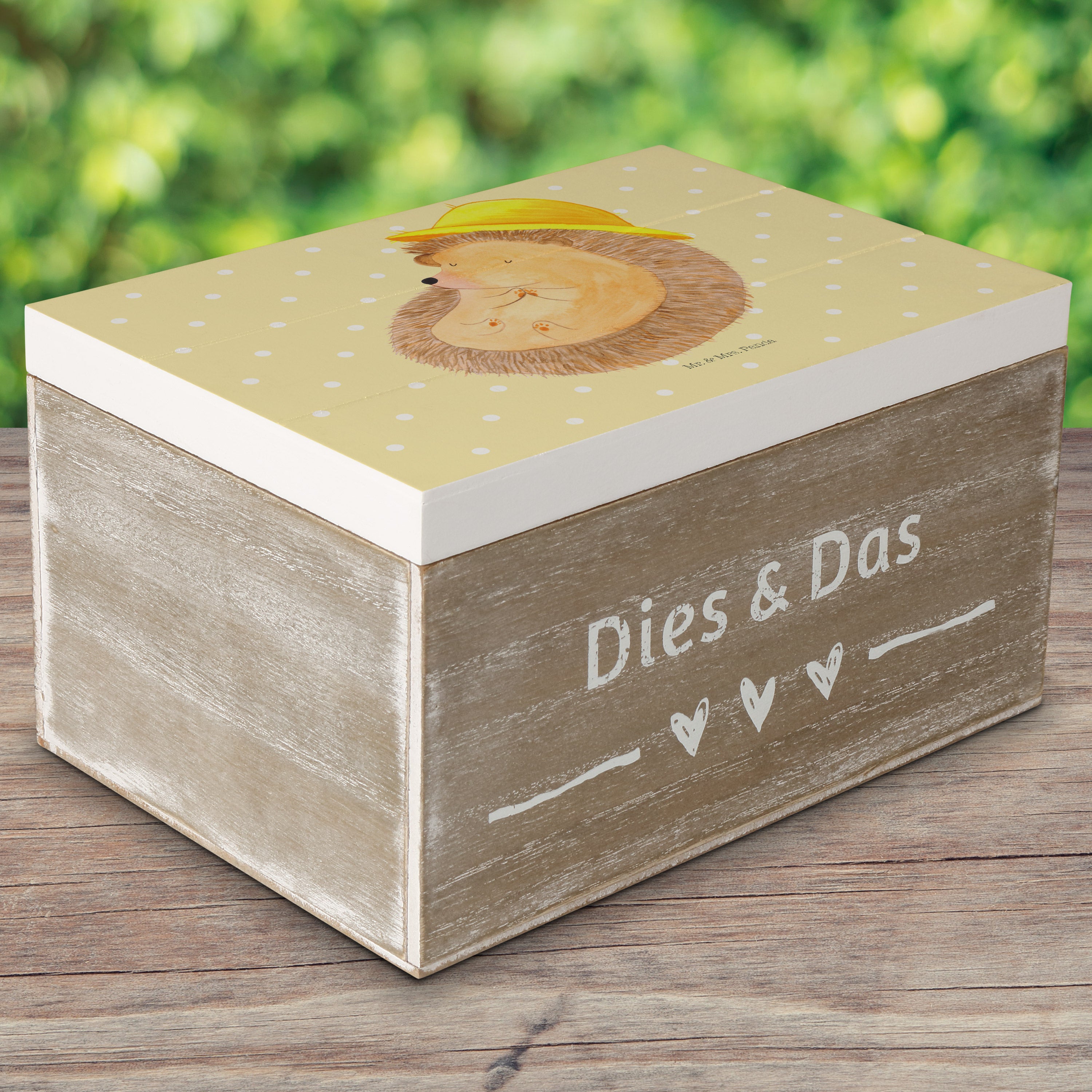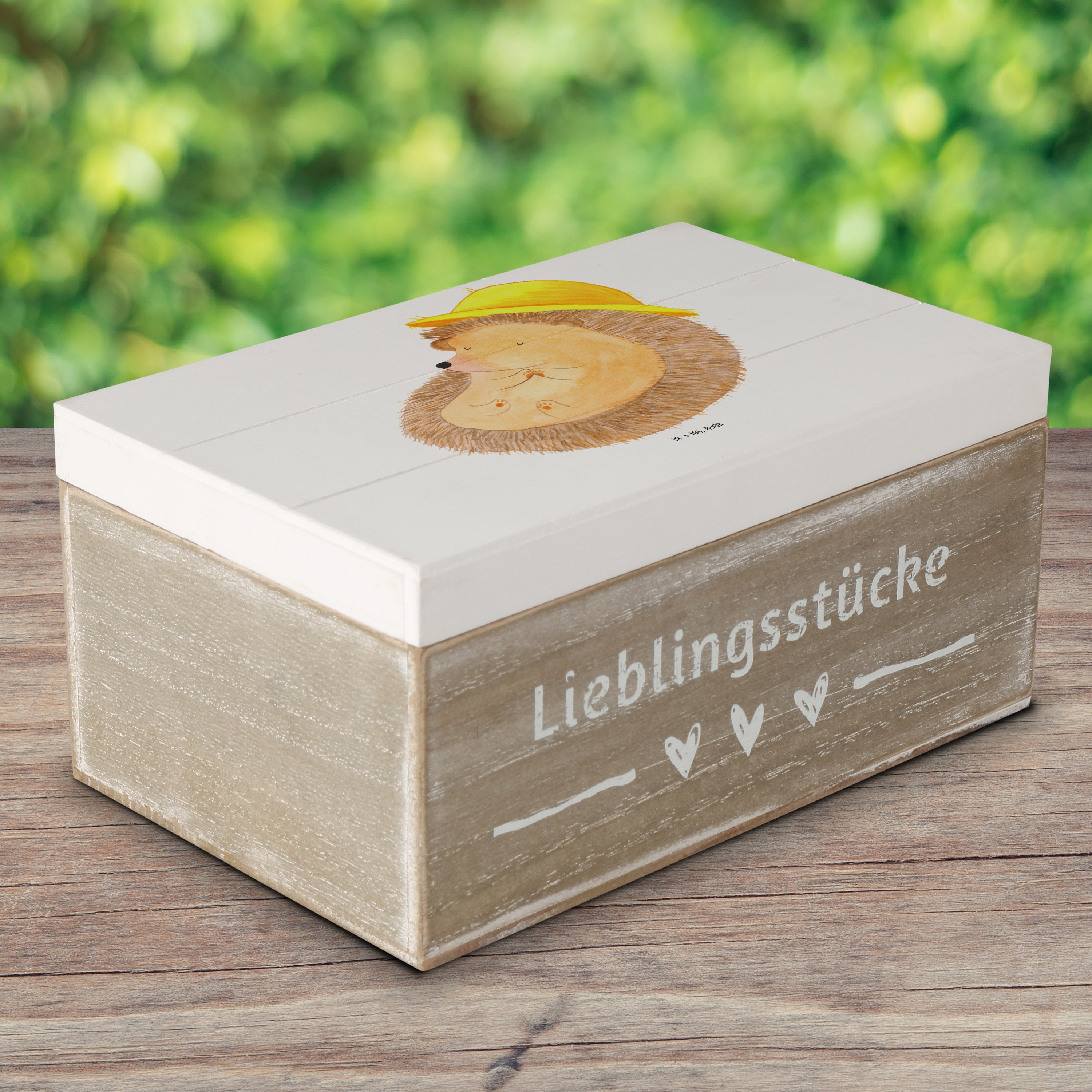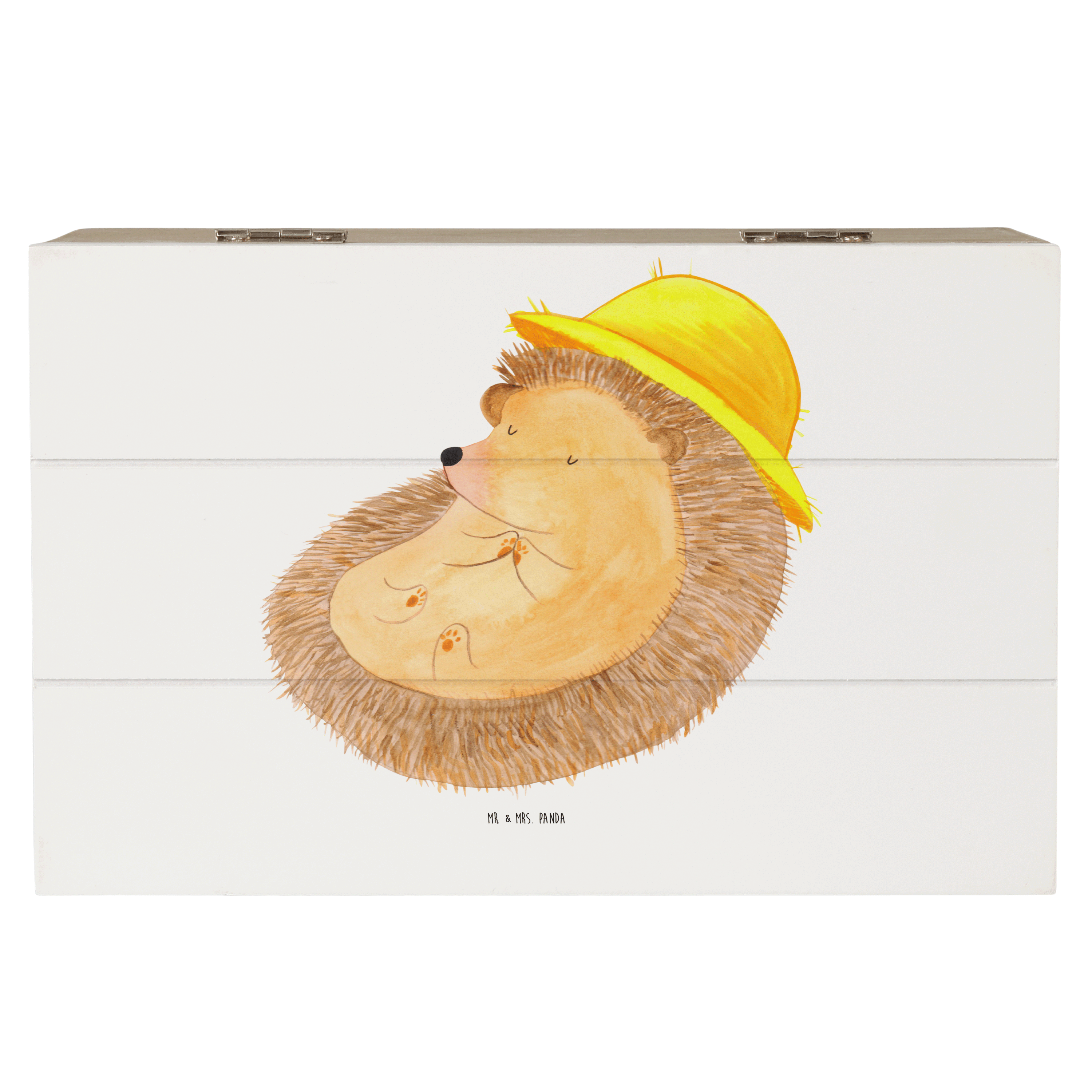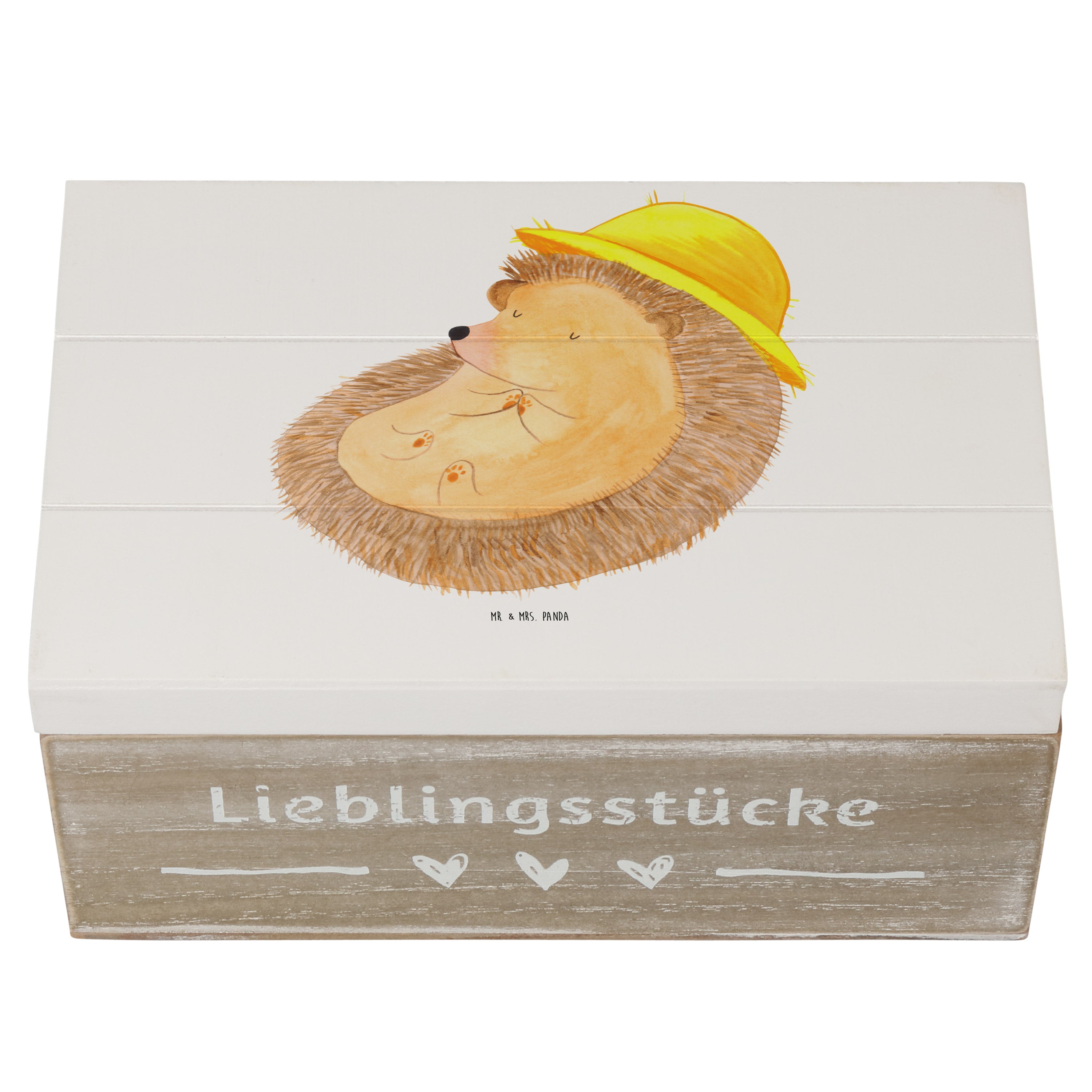 Holzkiste Igel betet - 25 x 18 cm - mit Spruch - Weiß