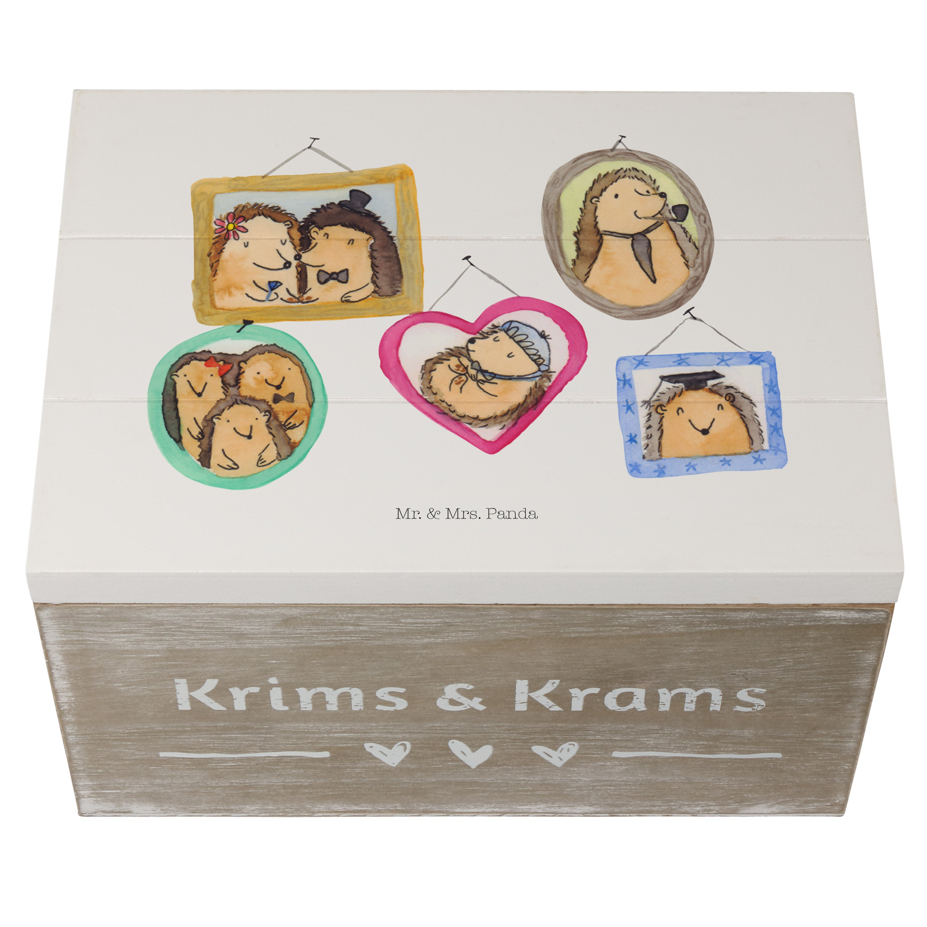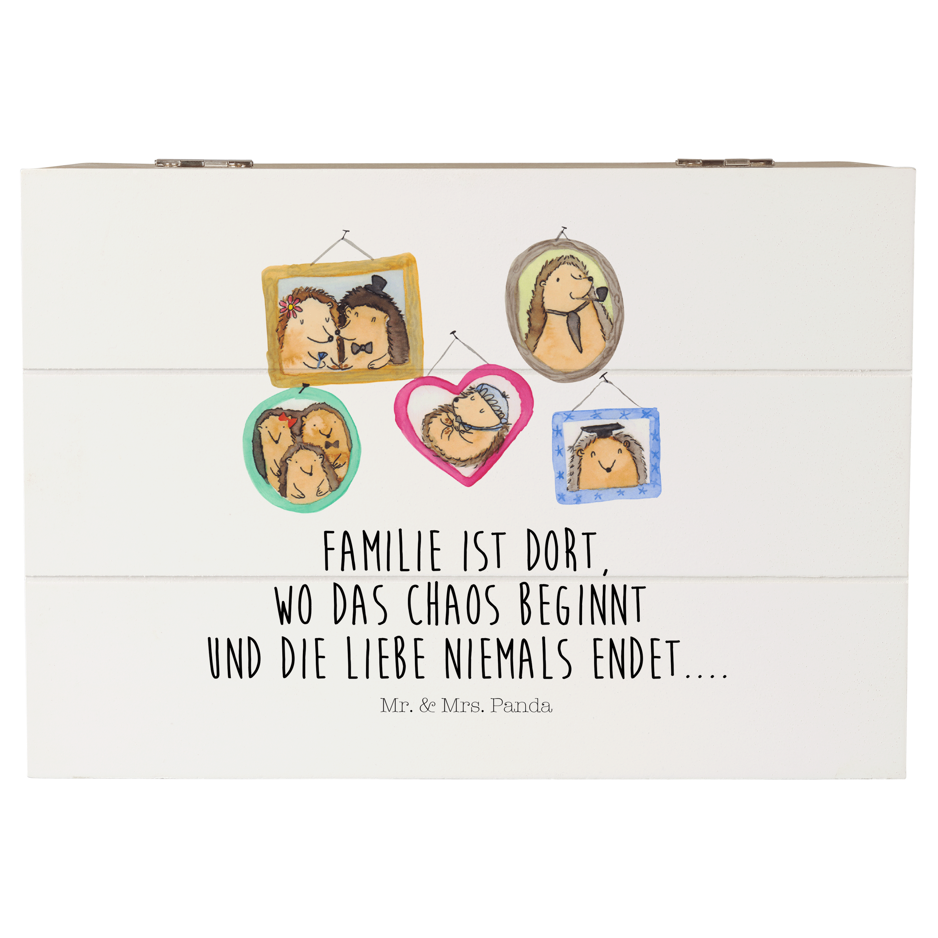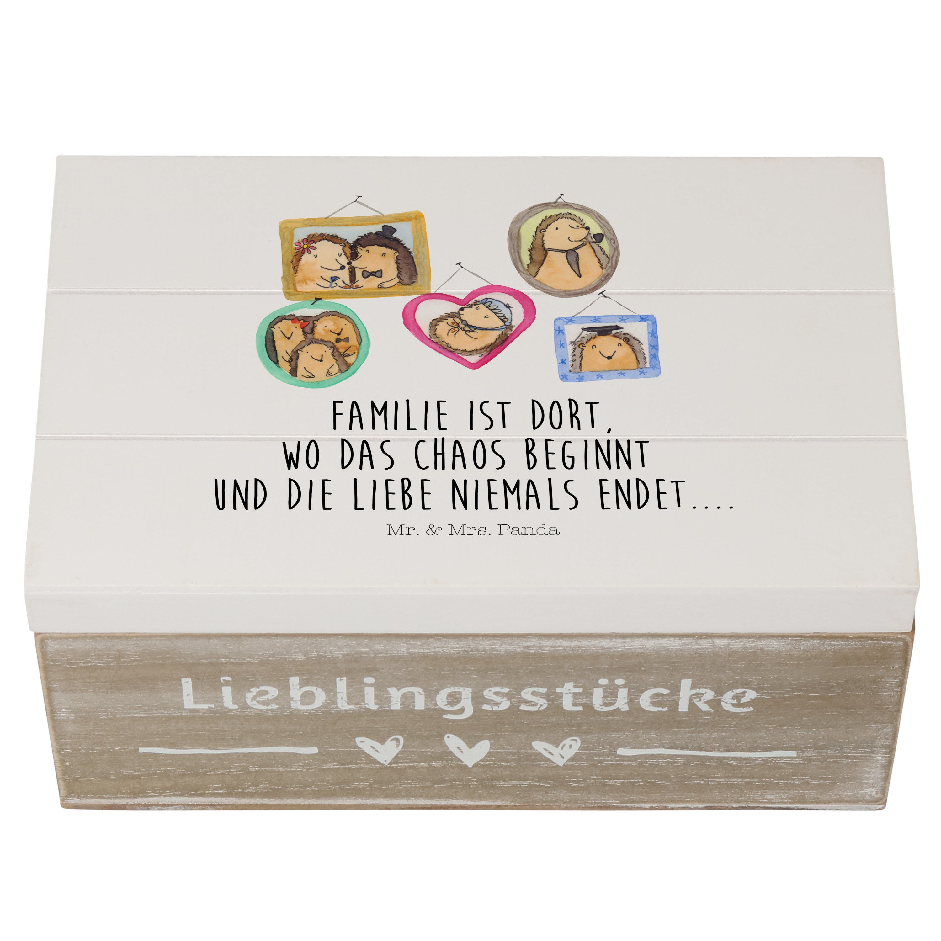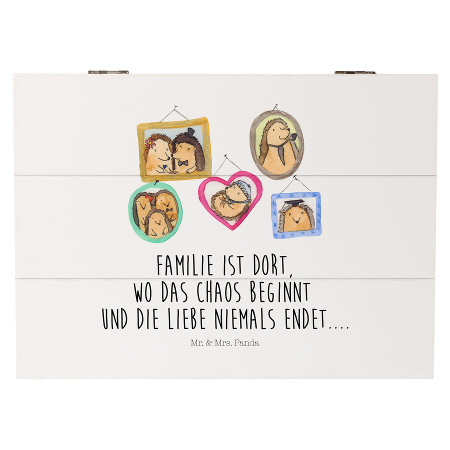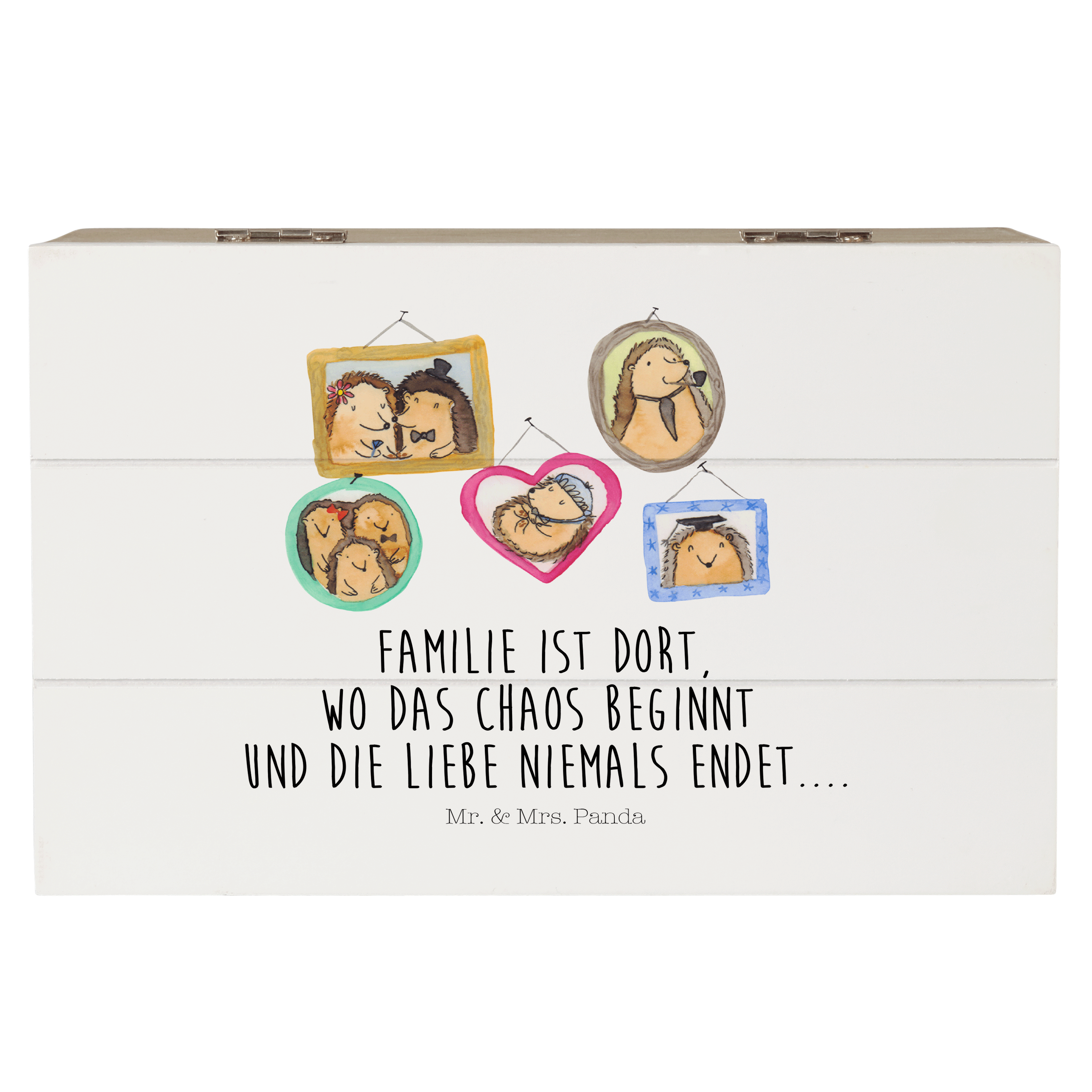Holzkiste Igel Familie - 25 x 18 cm - mit Spruch - Weiß