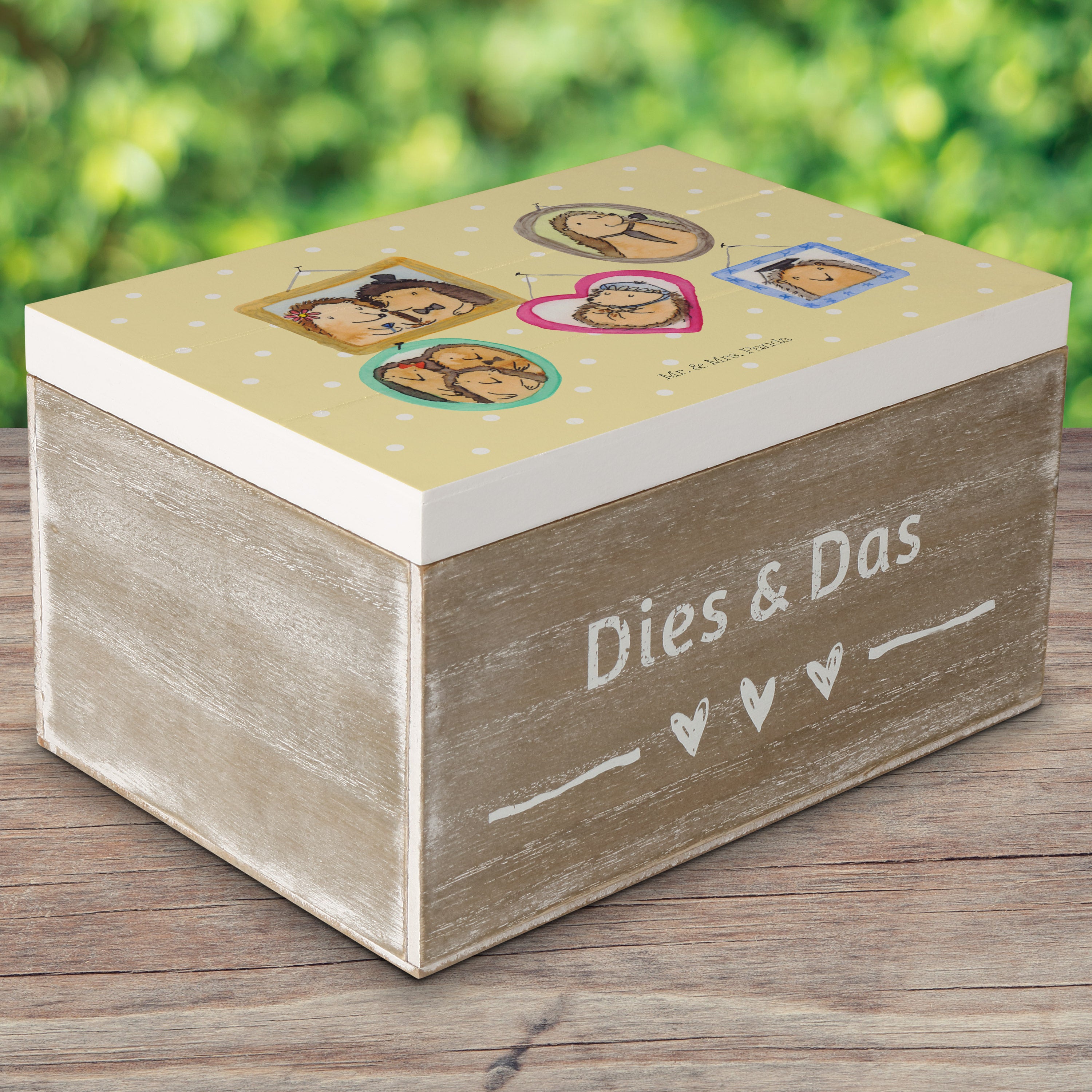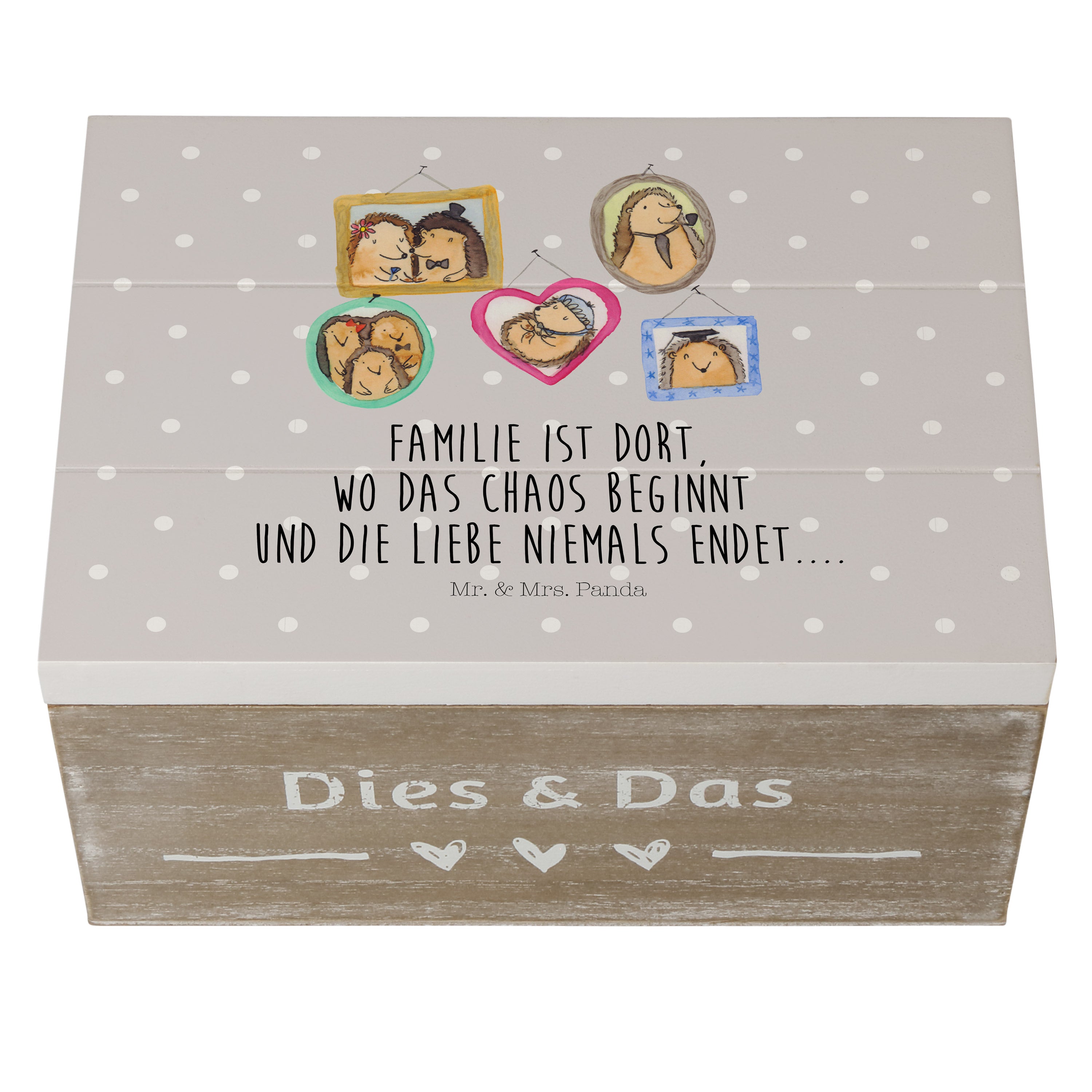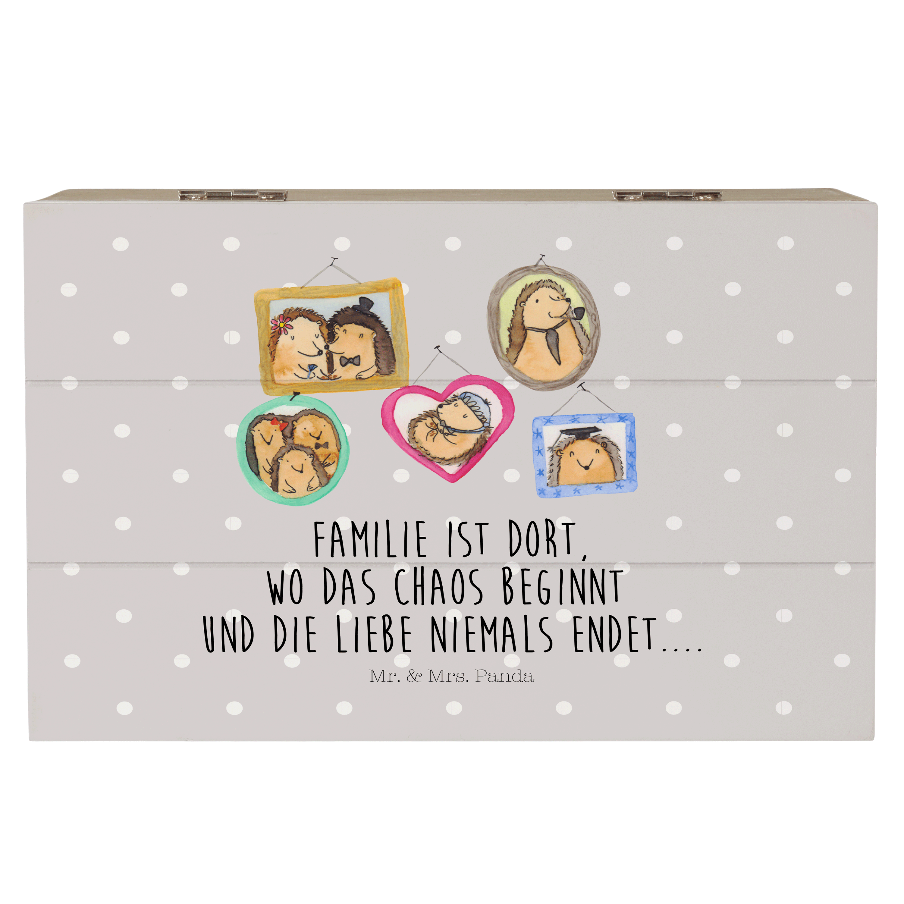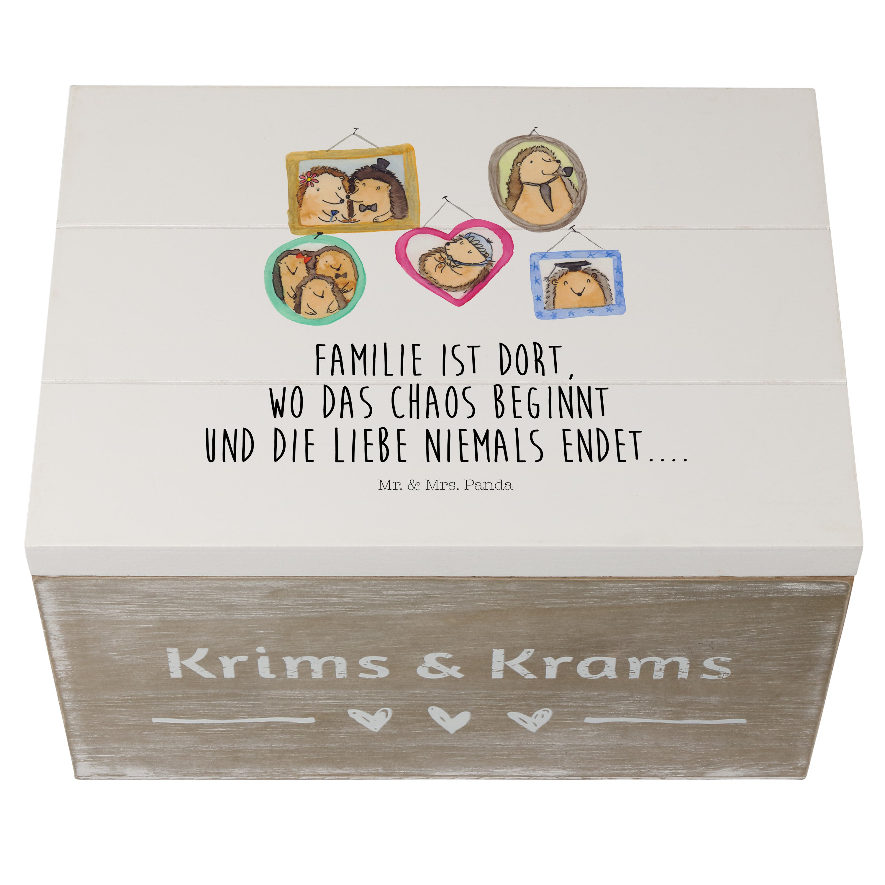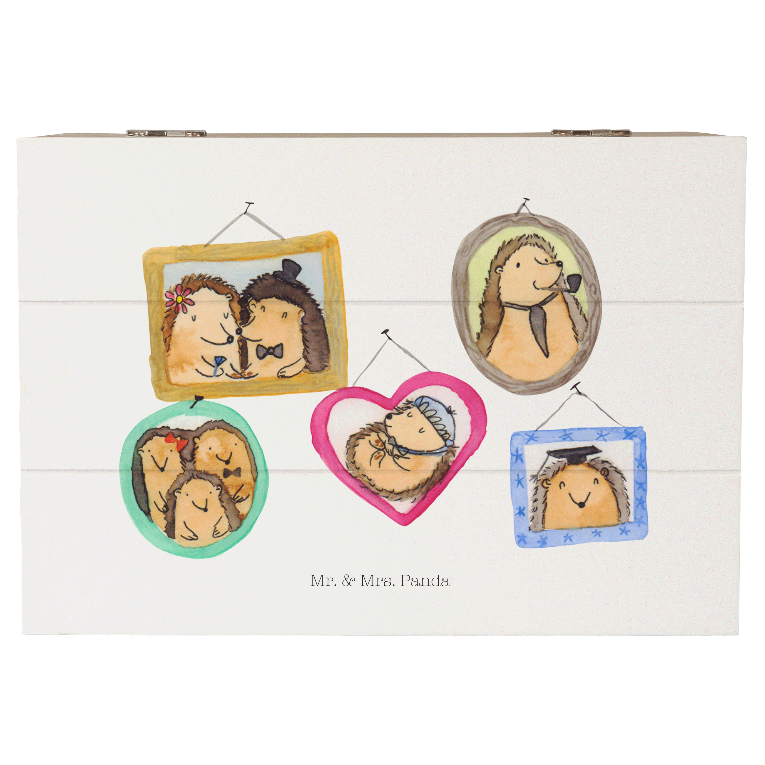Holzkiste Igel Familie - 25 x 18 cm - mit Spruch - Weiß