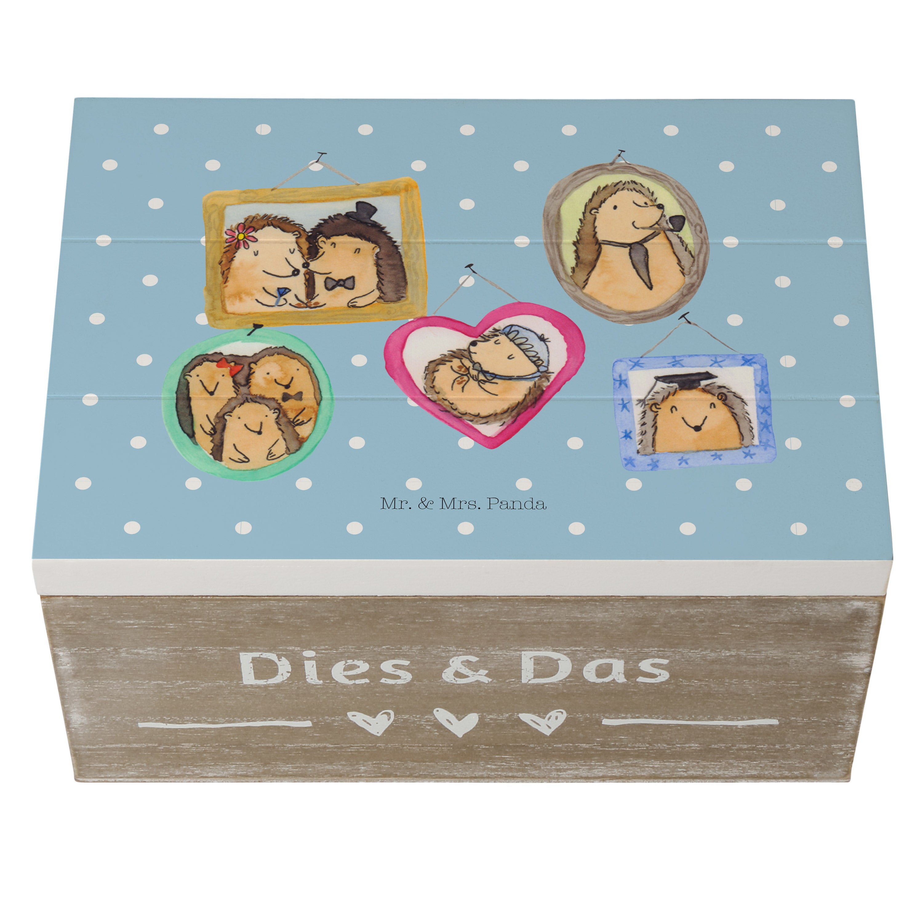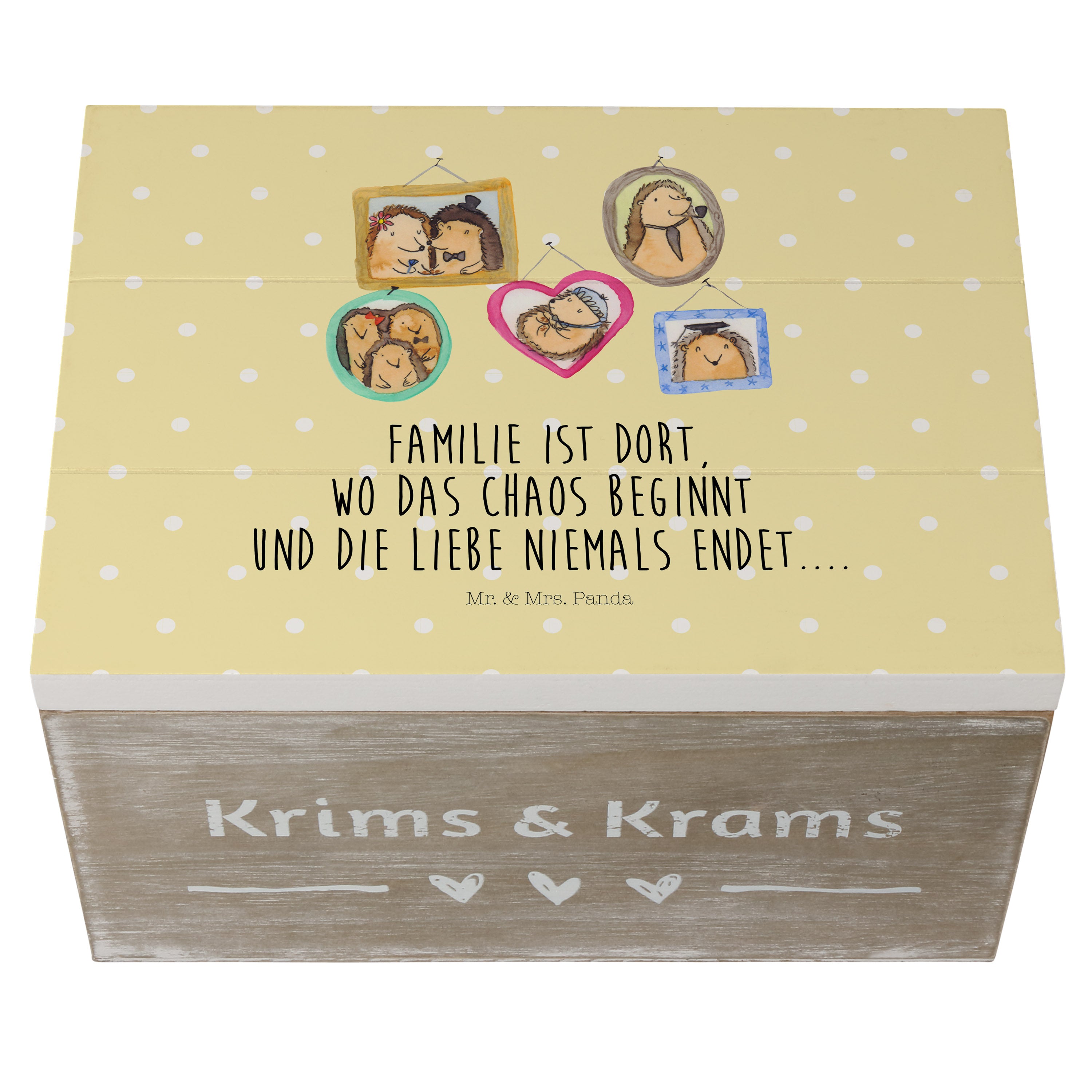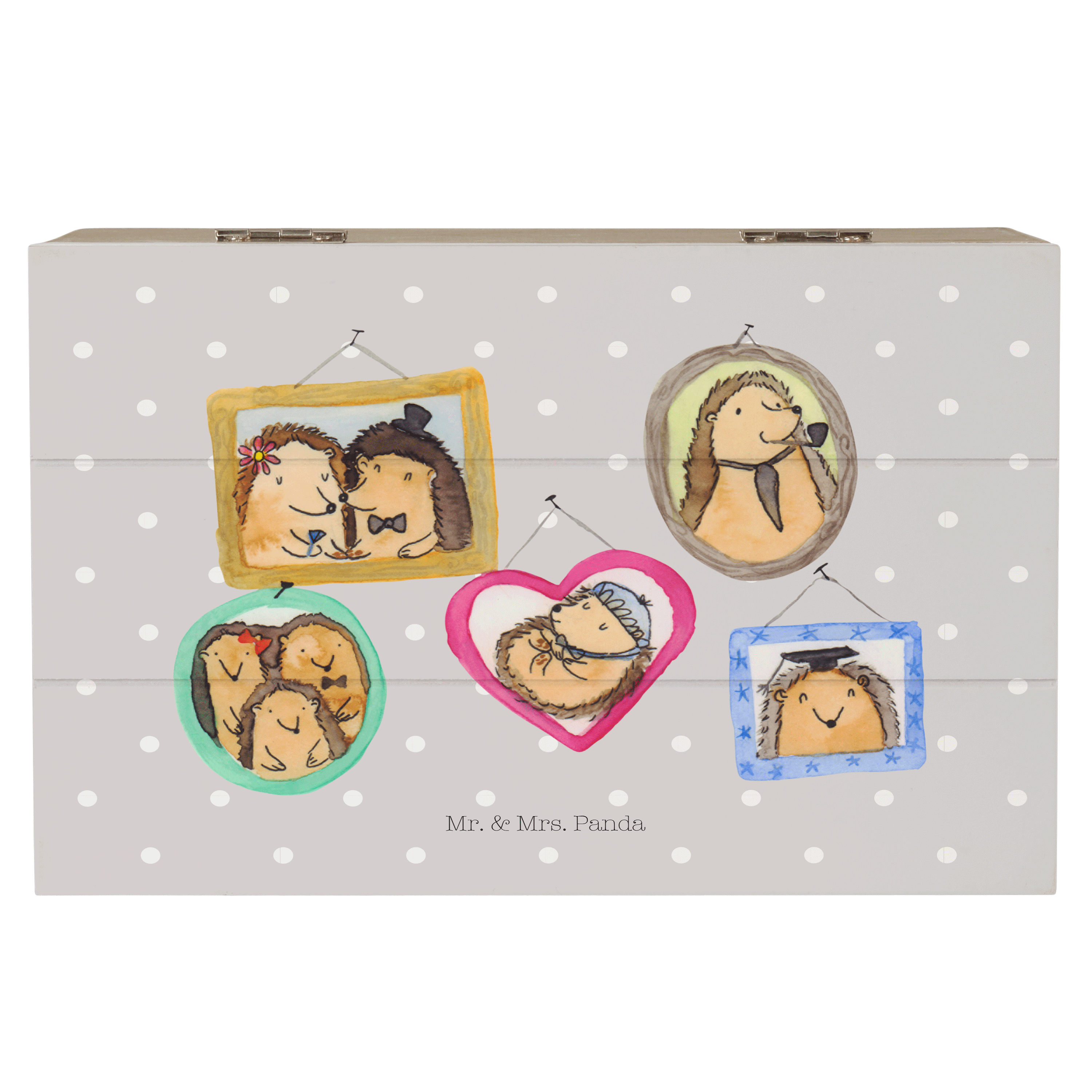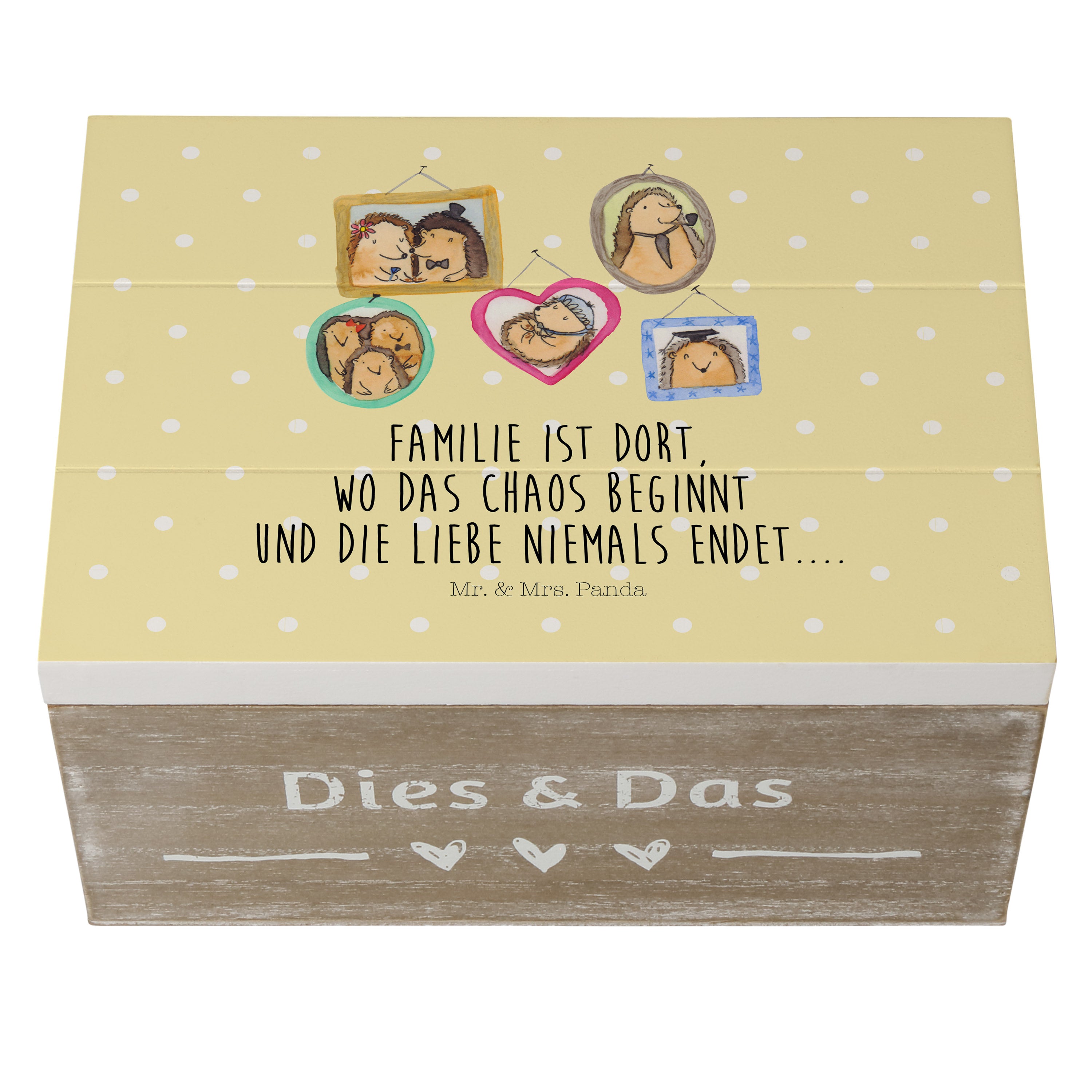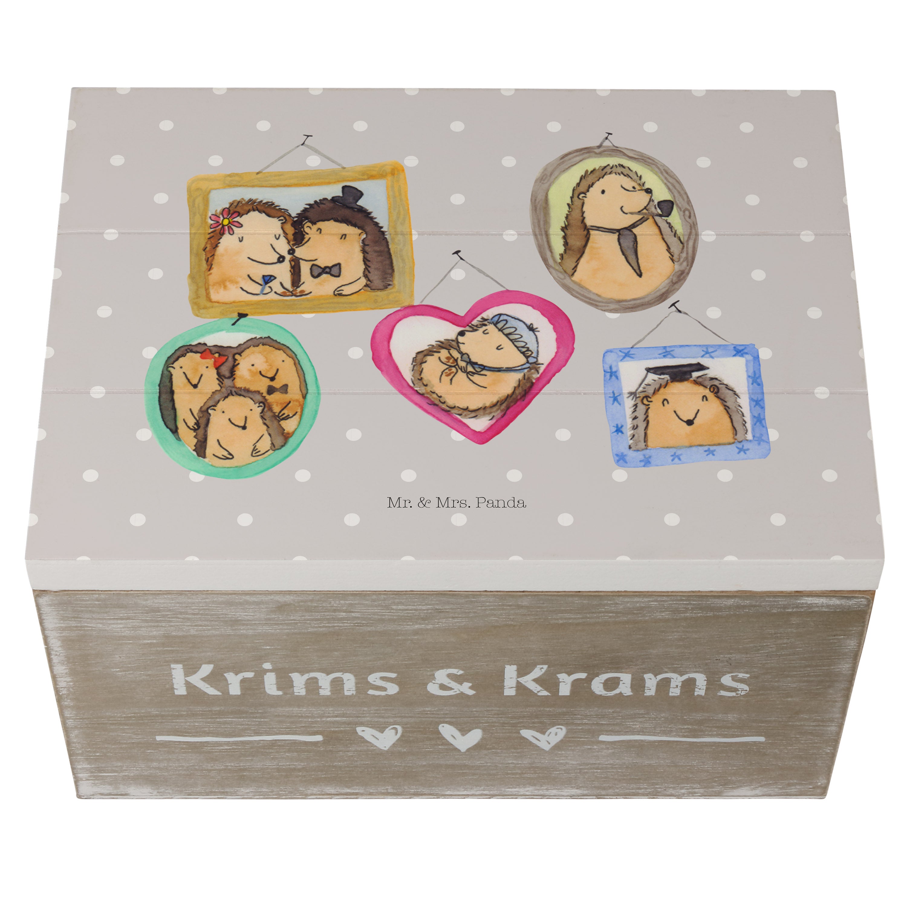 Holzkiste Igel Familie - 25 x 18 cm - mit Spruch - Weiß