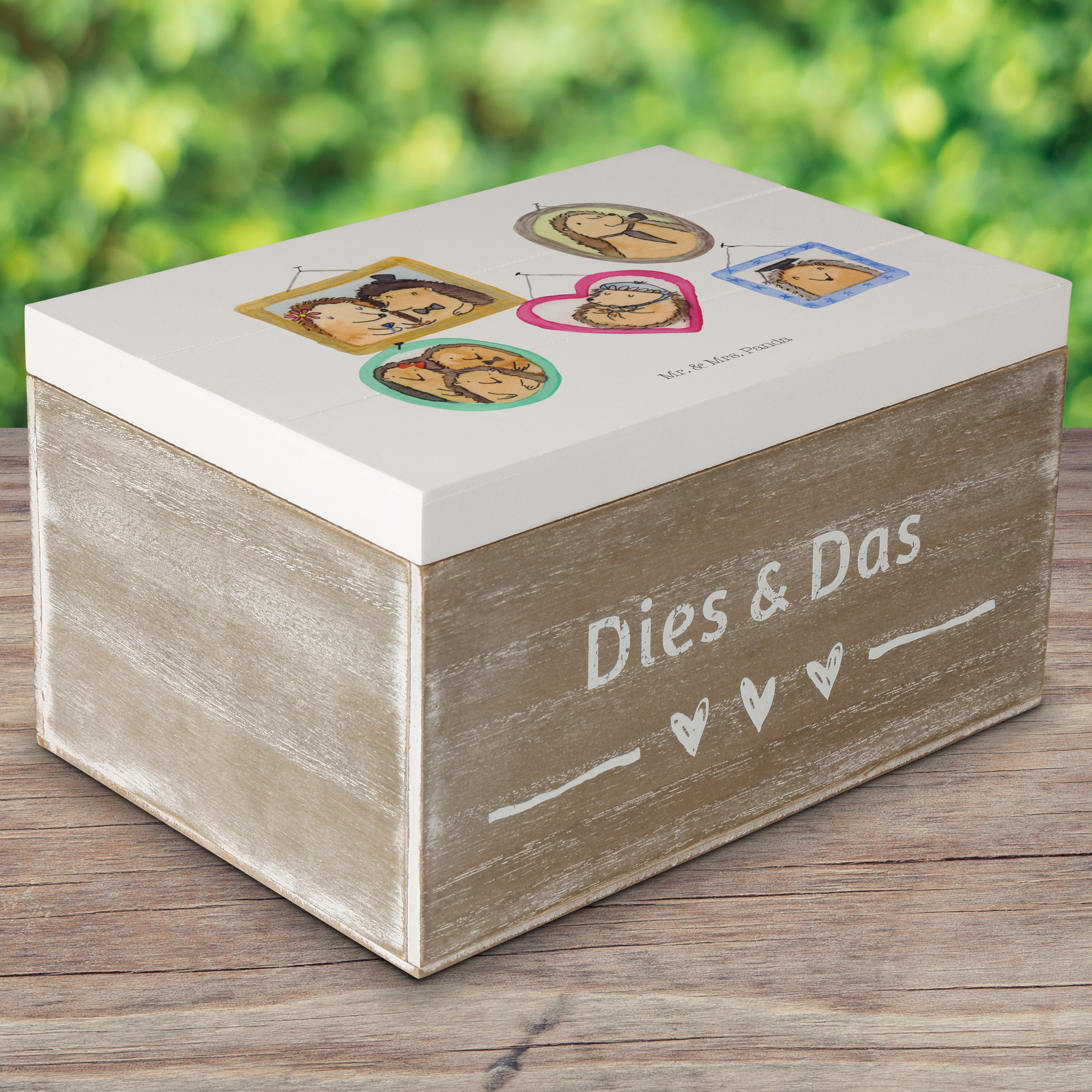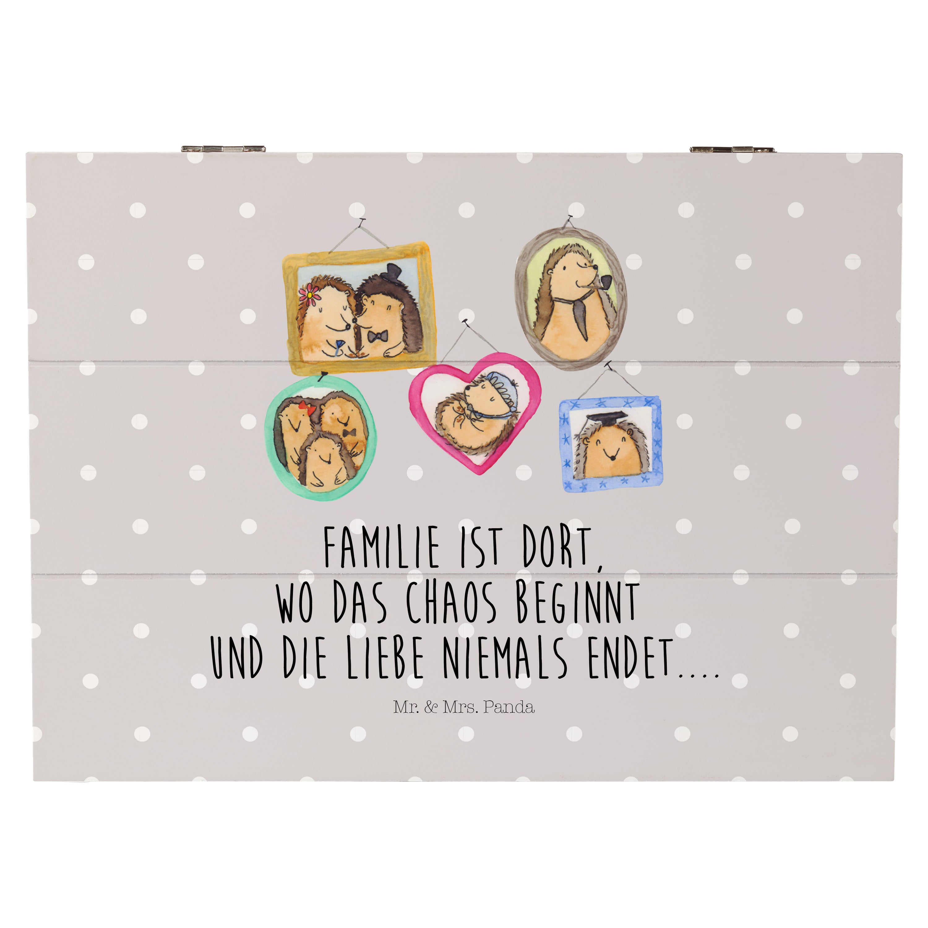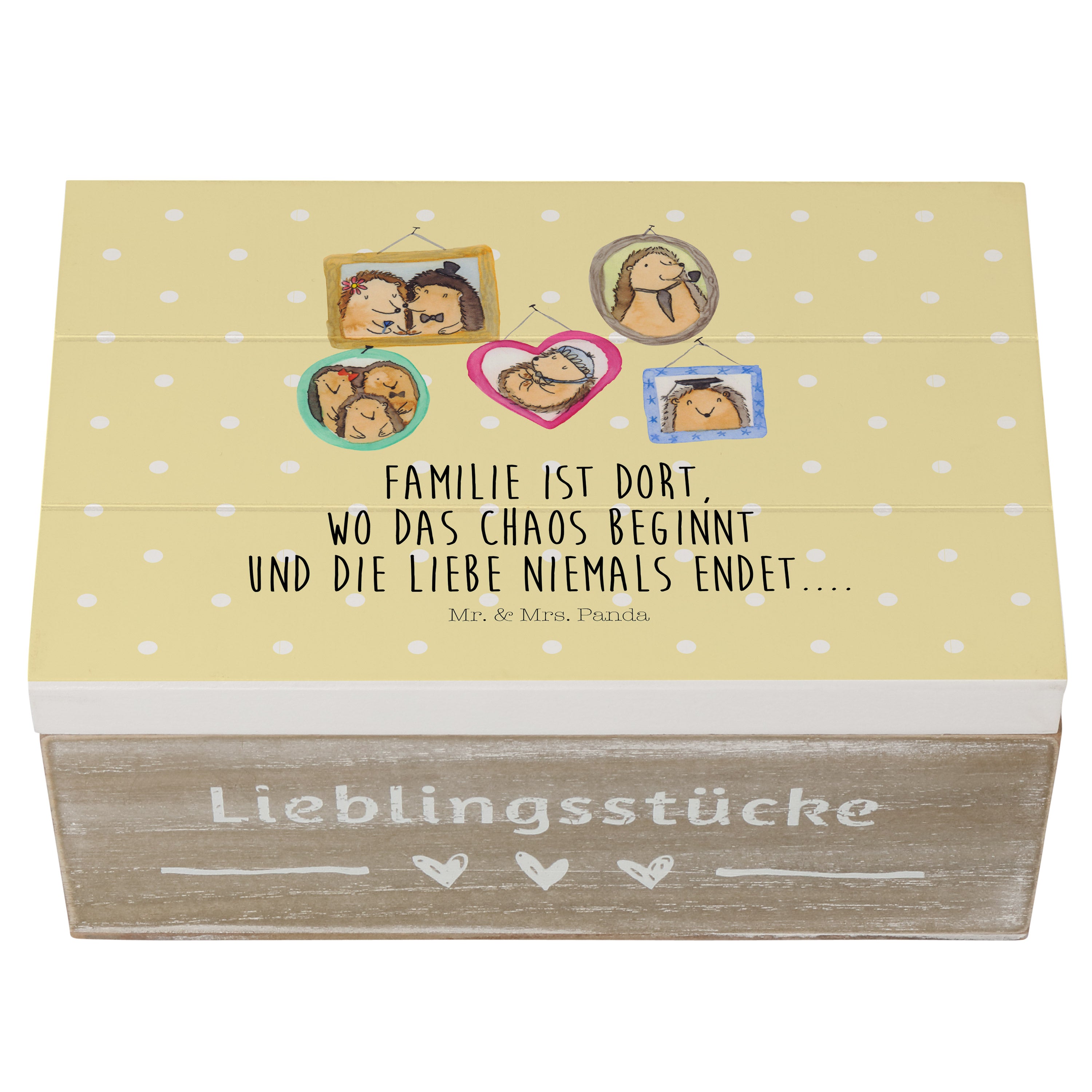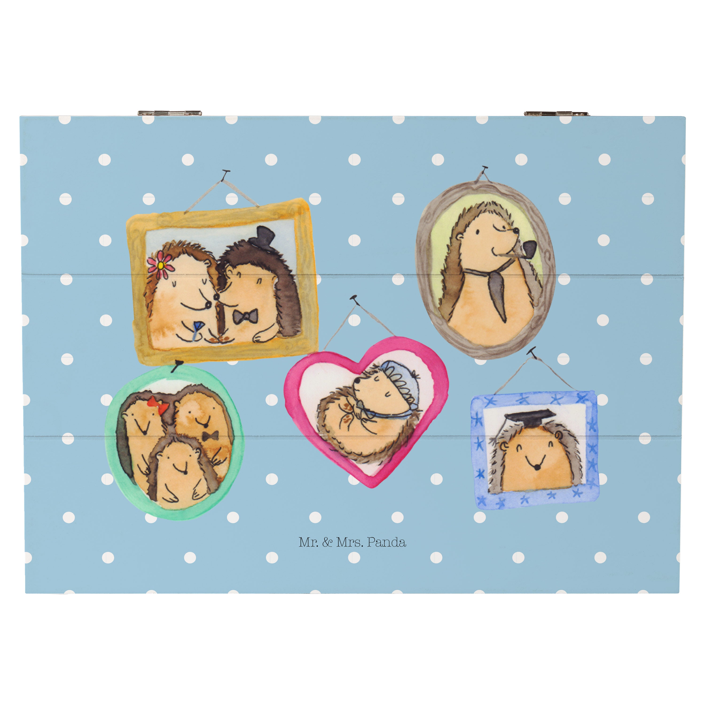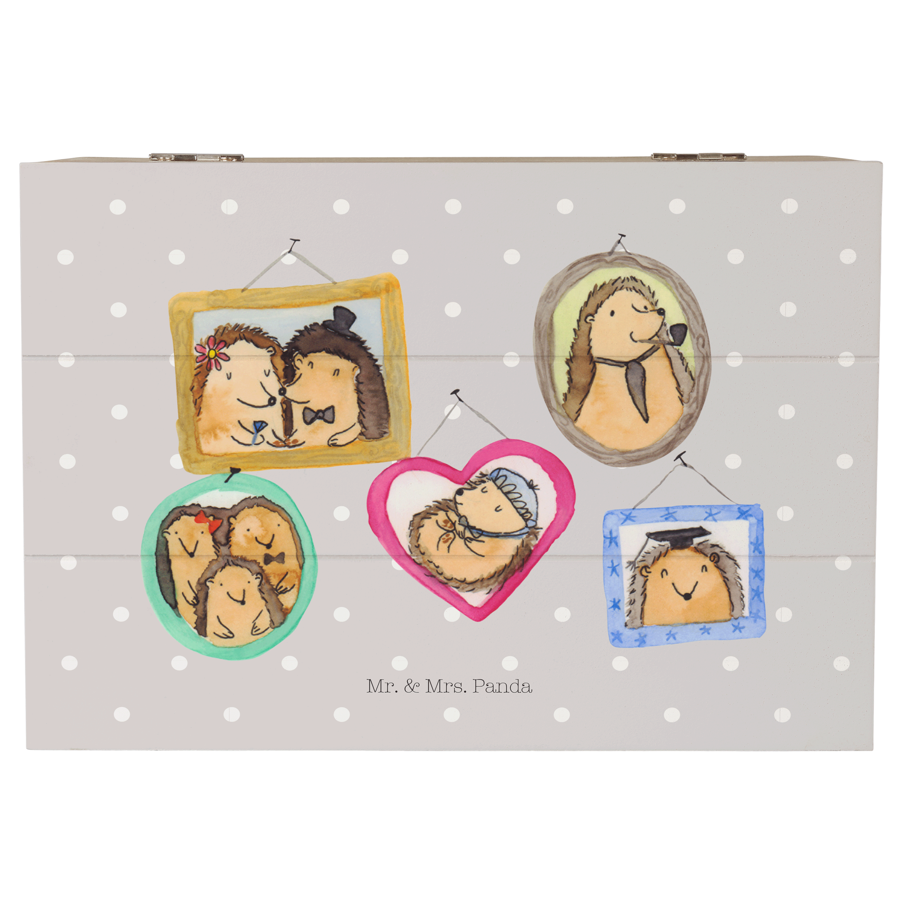 Holzkiste Igel Familie - 25 x 18 cm - mit Spruch - Weiß