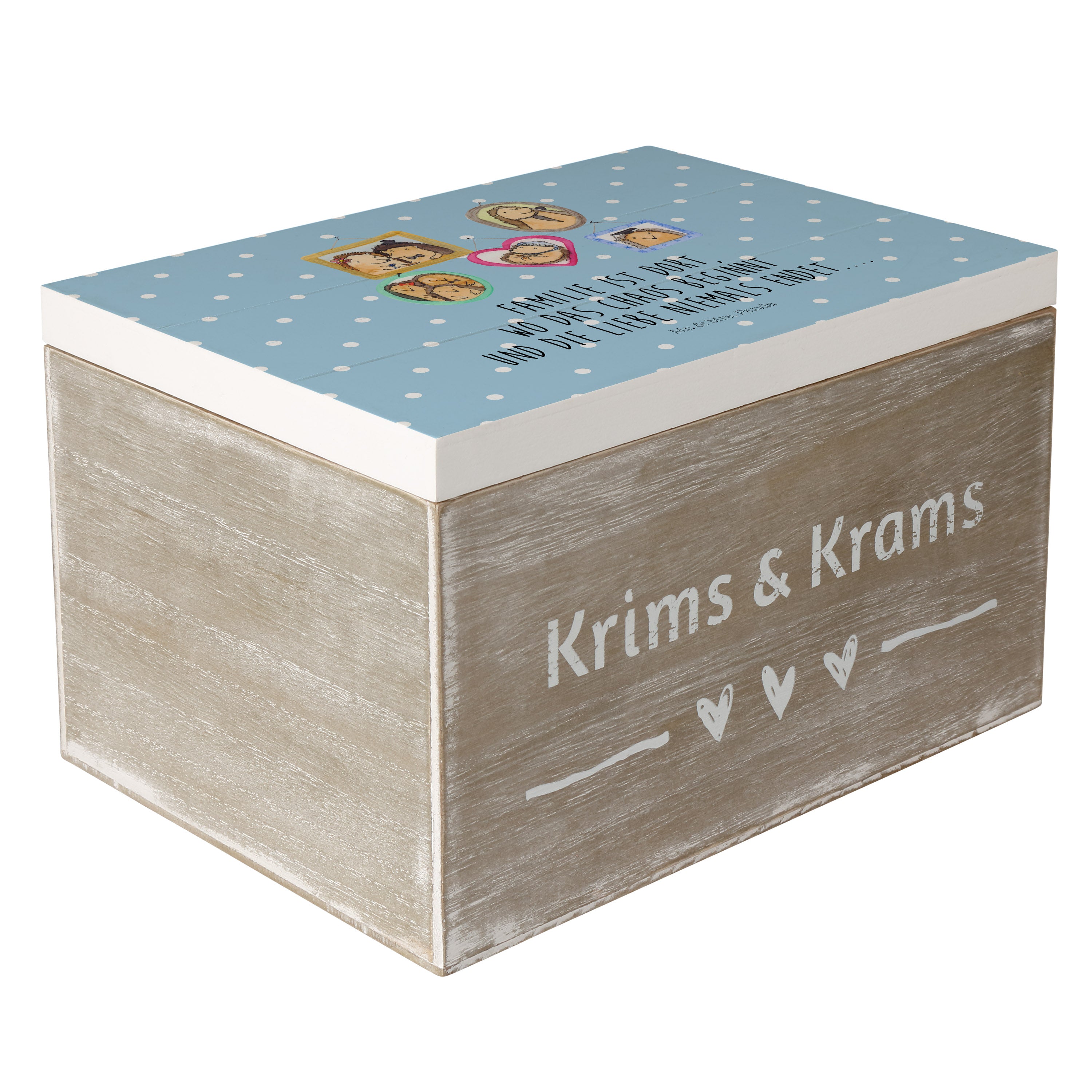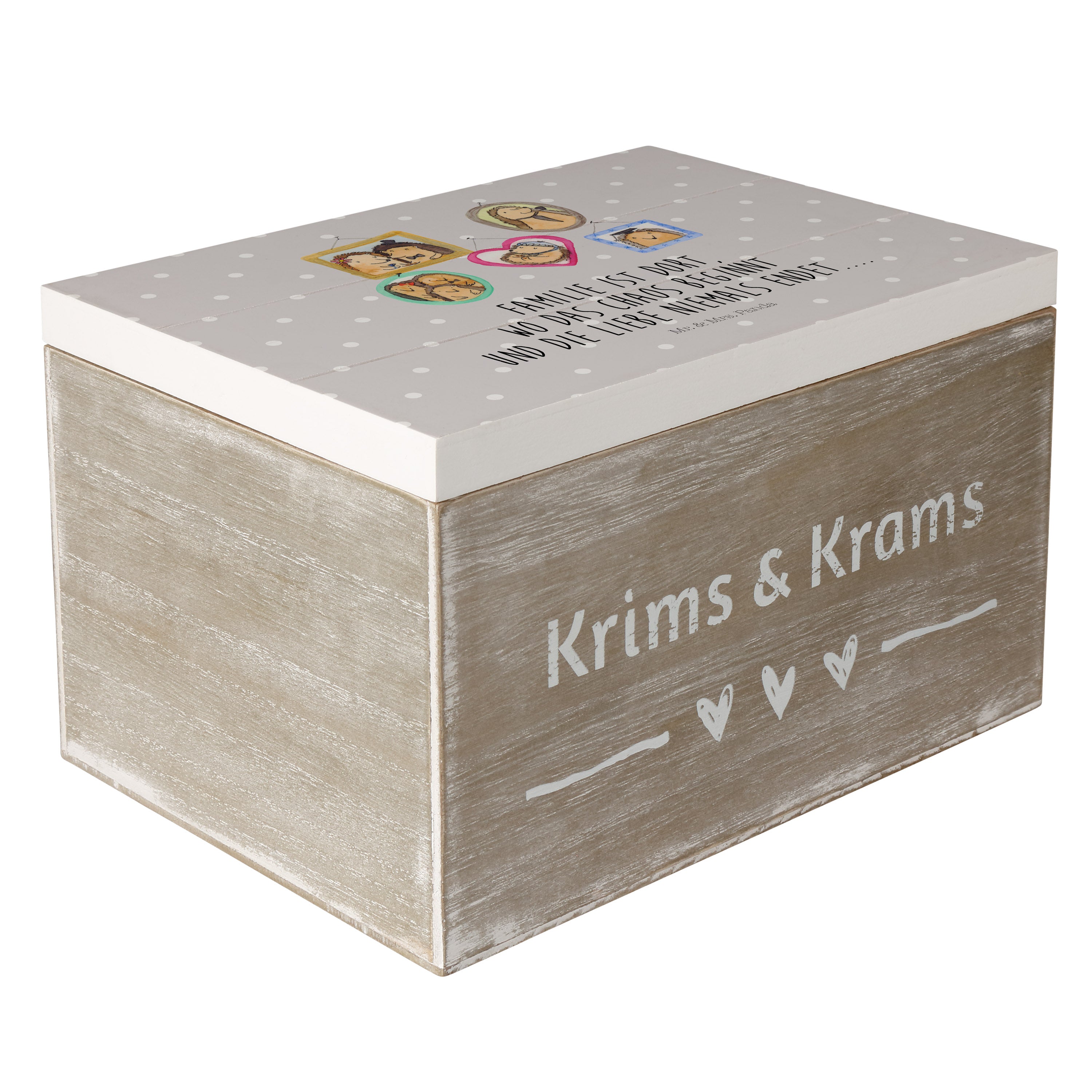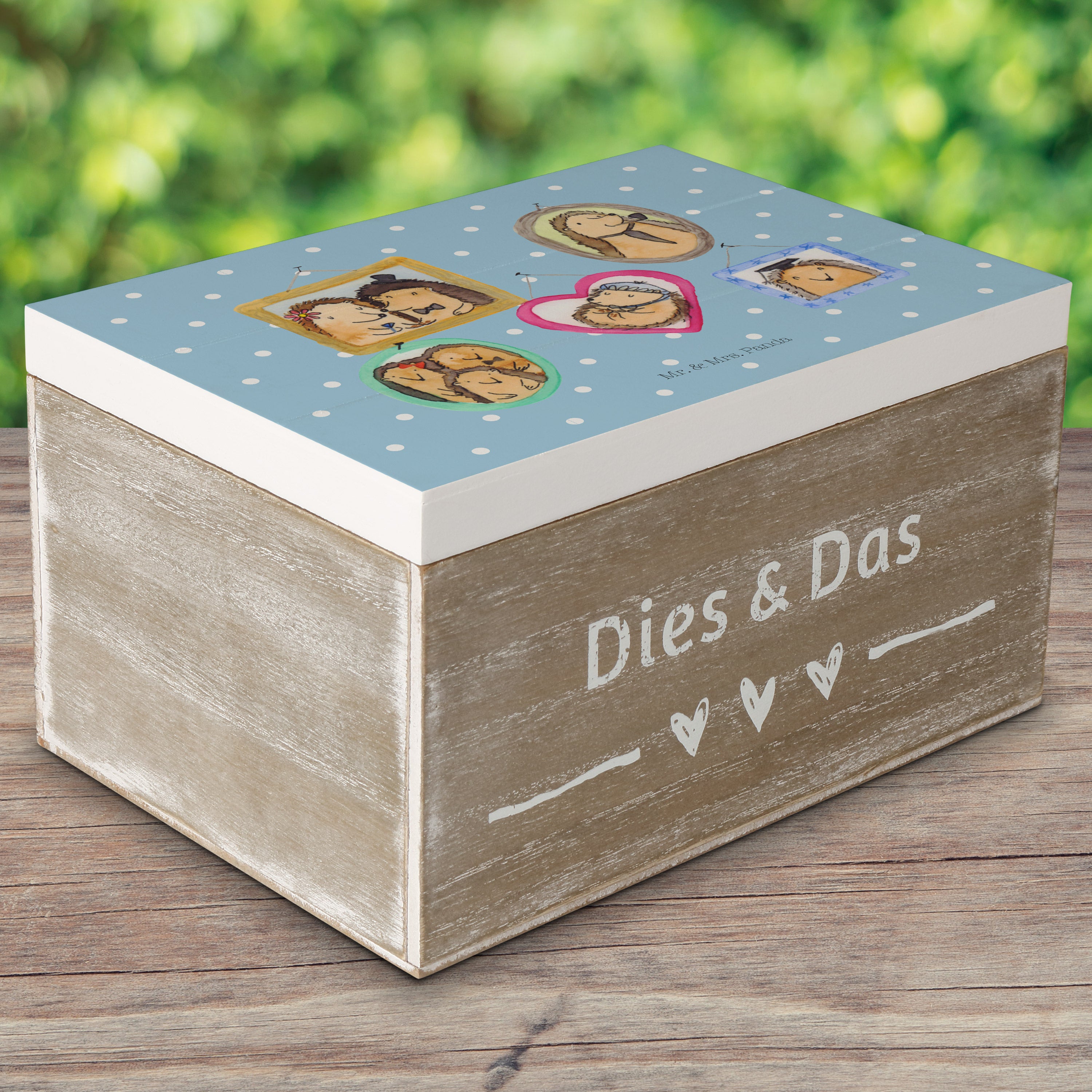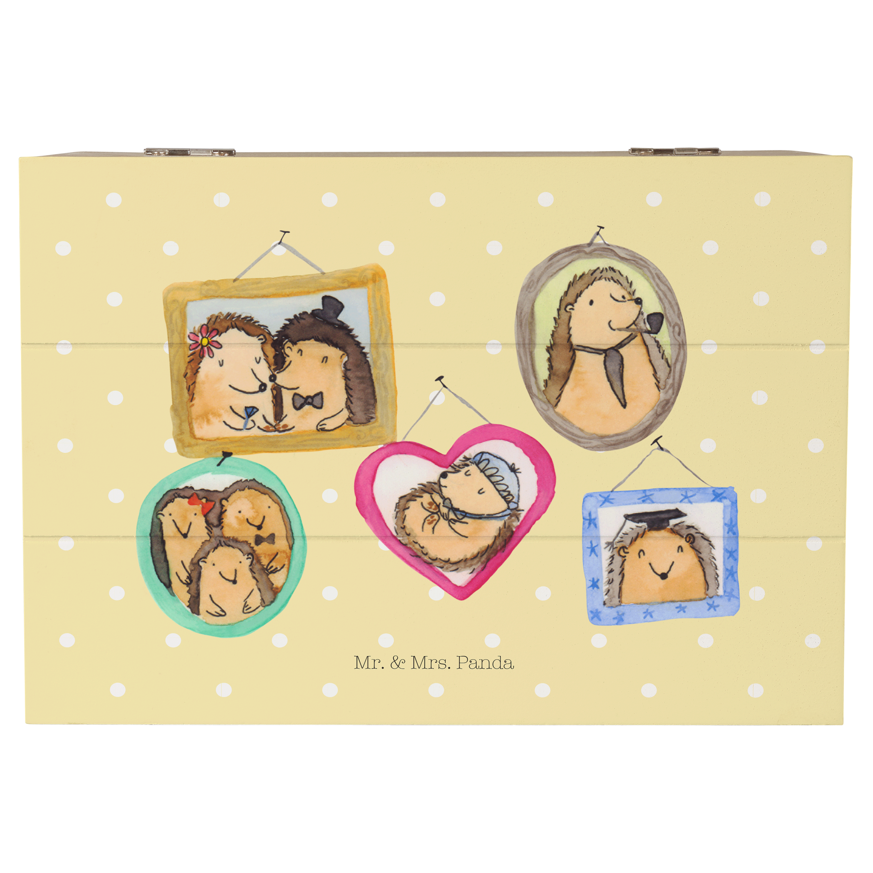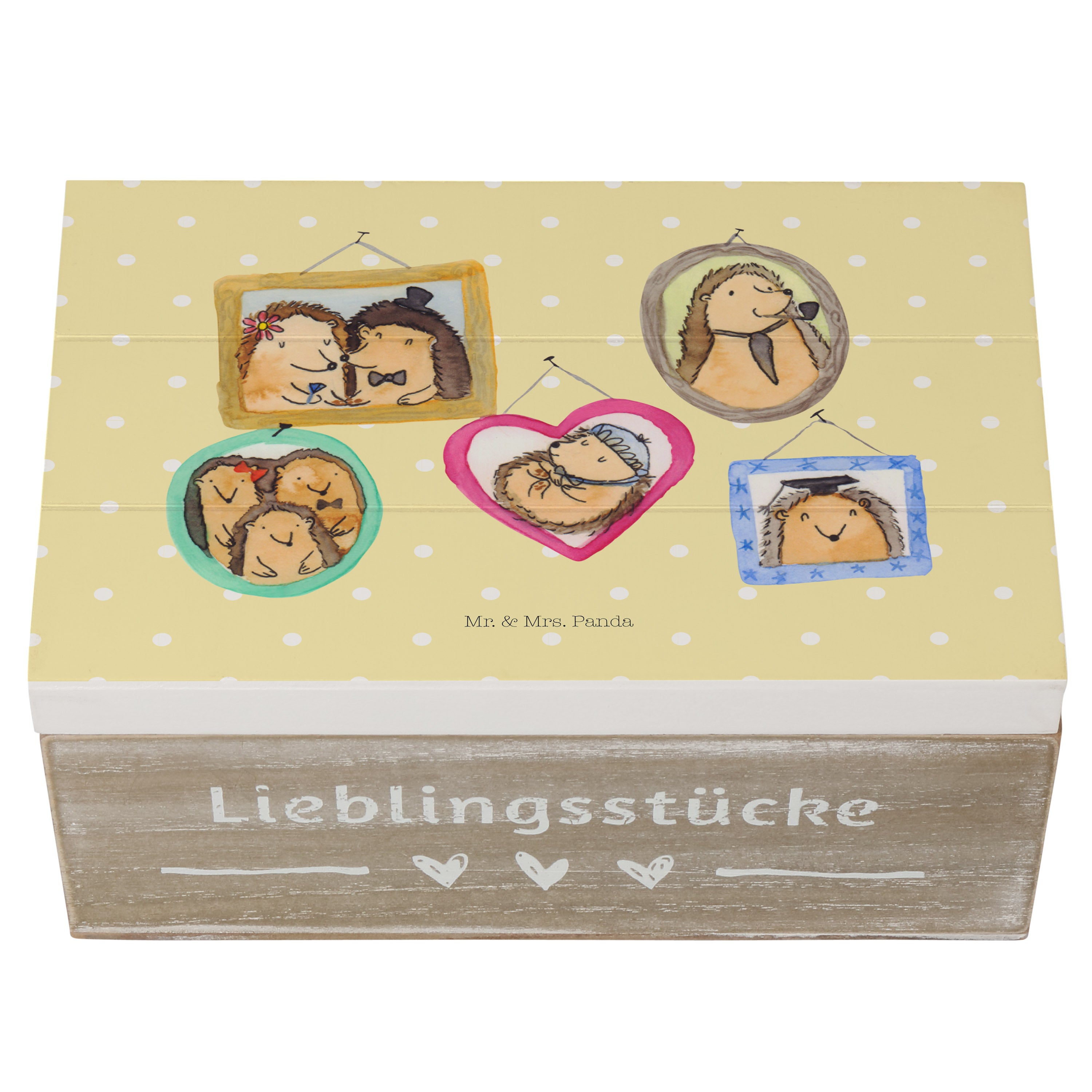 Holzkiste Igel Familie - 25 x 18 cm - mit Spruch - Weiß